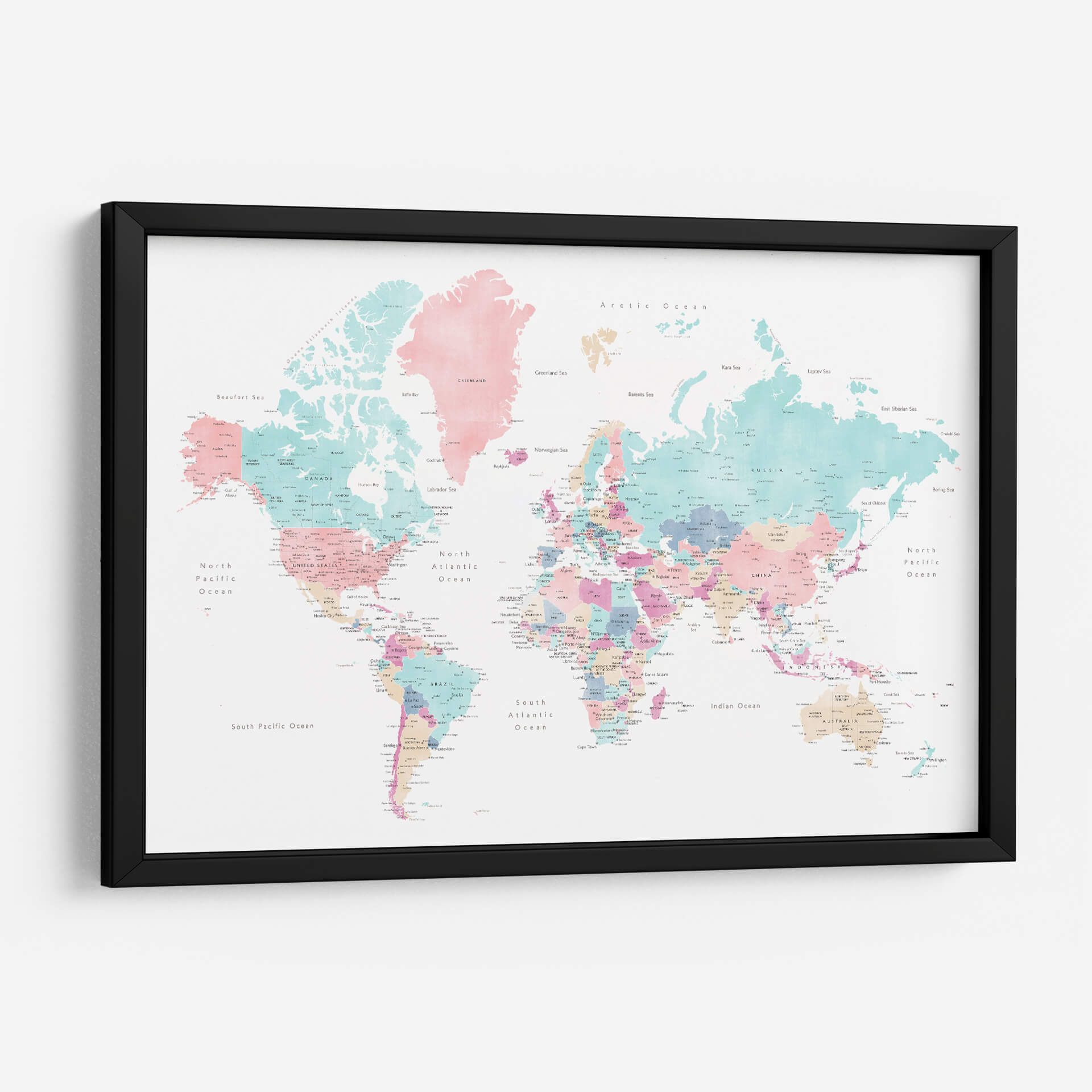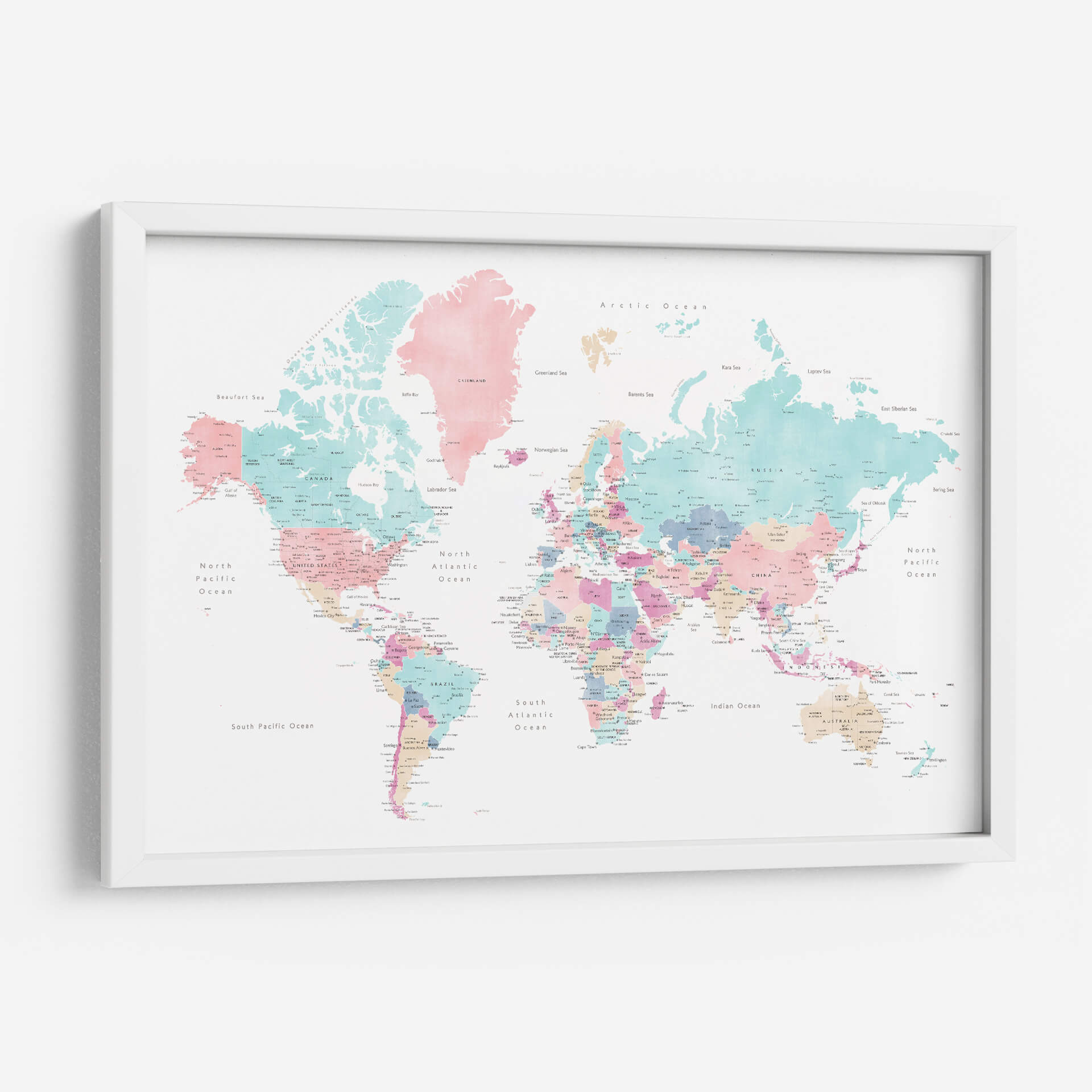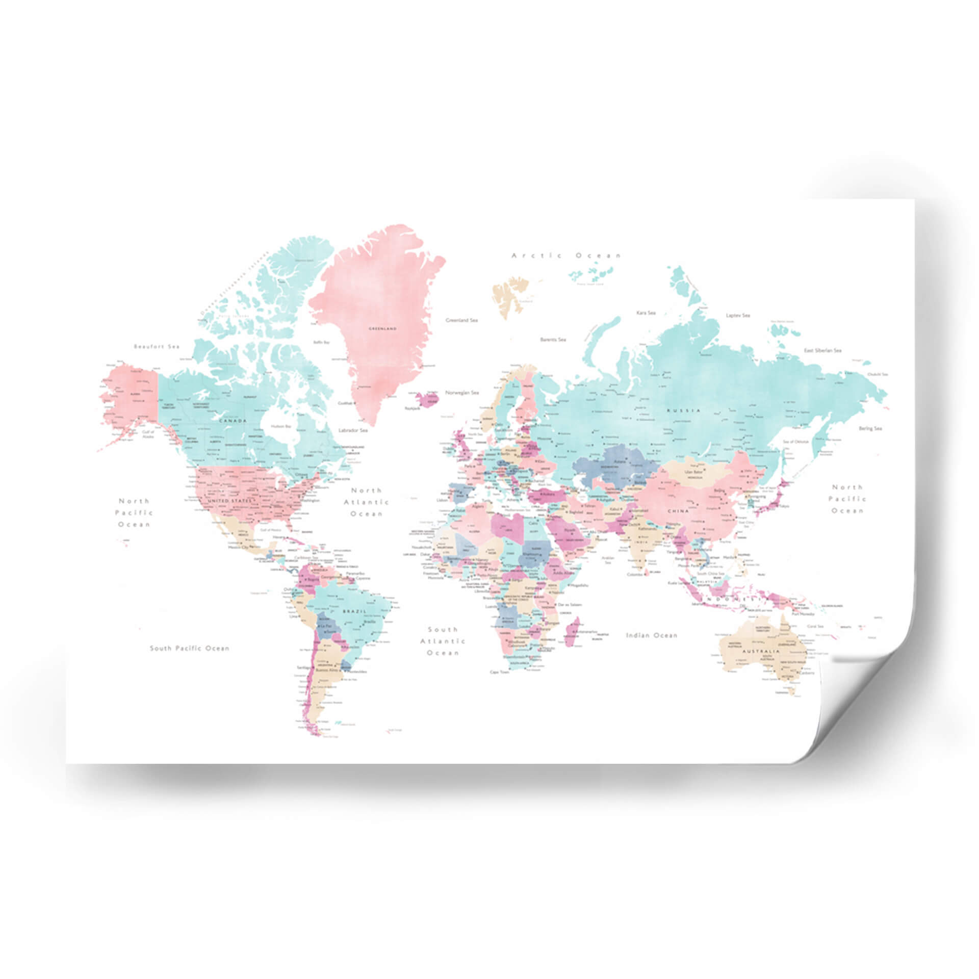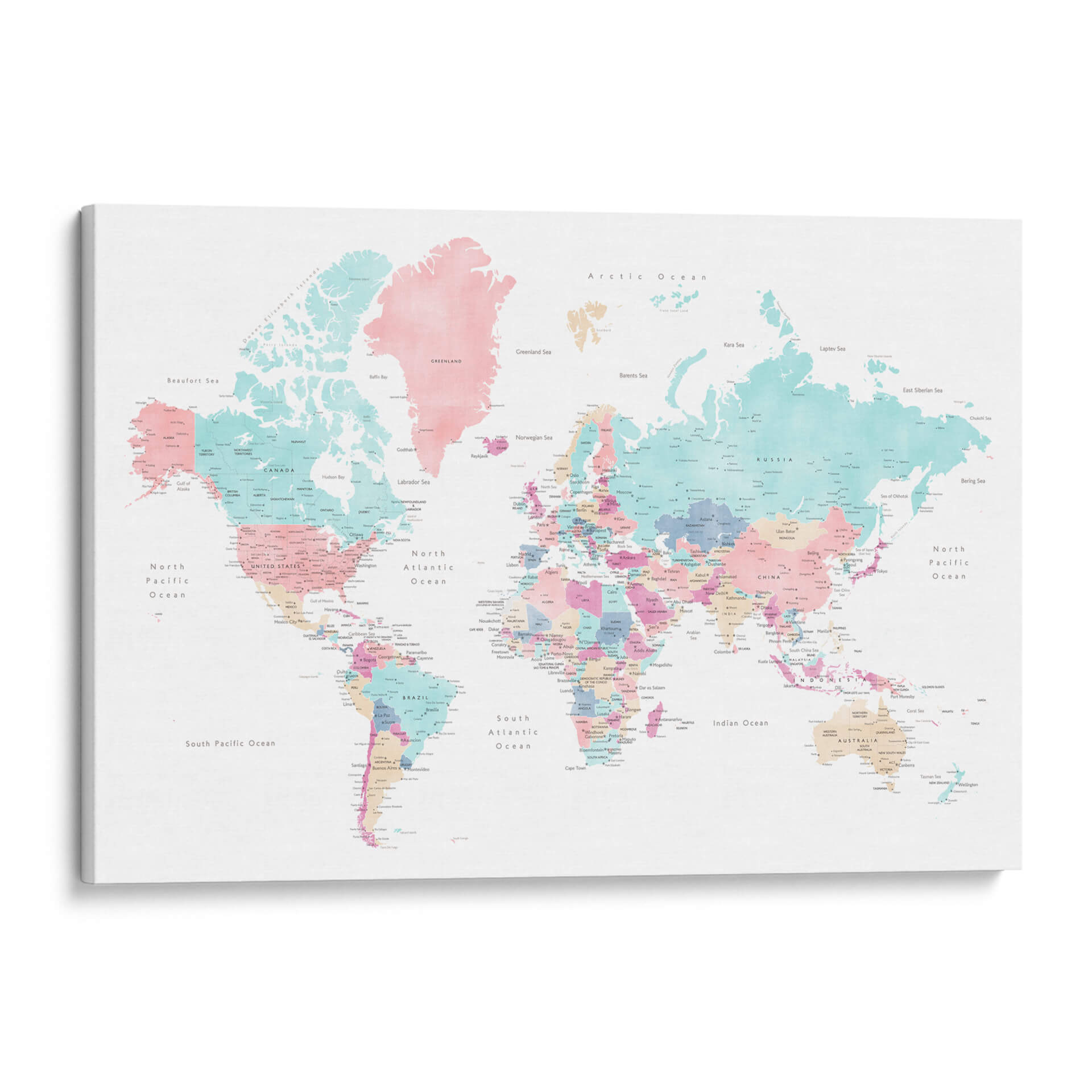 Embárquese en un viaje visual a través de continentes y océanos con este cautivador cuadro decorativo "Mapa mundial de pasteles desgastados". La obra, creada por Rosana Laiz Blursbyai, presenta una interpretación artística y sutil del mundo, utilizando una paleta de colores suaves y desgastados que evoca una sensación de nostalgia y descubrimiento. Tonos pastel de rosa, azul y verde se entrelazan, delineando países y mares con una delicadeza que invita a la contemplación. La composición detallada pero no abrumadora, permite apreciar la geografía global mientras se mantiene un aire etéreo y moderno. Este mapa del mundo desgastado es perfecto para inspirar conversaciones y añadir un toque de sofisticación a cualquier espacio, ya sea una sala de estar, una oficina o un dormitorio. Su estilo único lo convierte en un punto focal intrigante, ideal para aquellos que aman los viajes, la geografía o simplemente aprecian el arte con carácter y una narrativa visual sutil. Transforma tu pared en una ventana al mundo y deja que la serenidad de esta pieza llene tu hogar.
