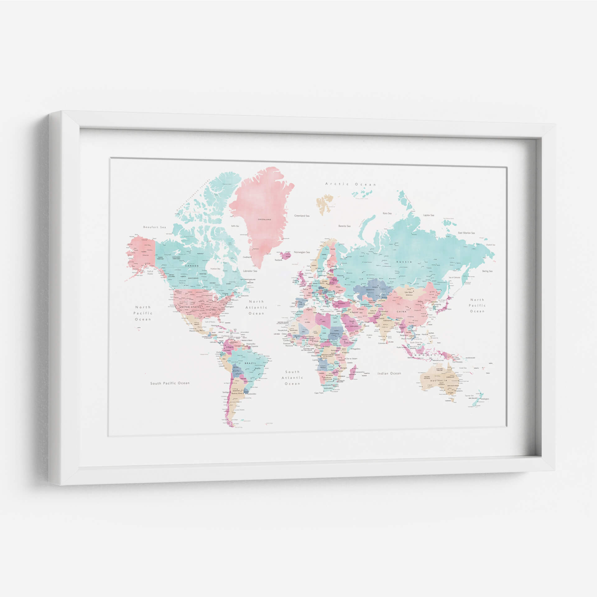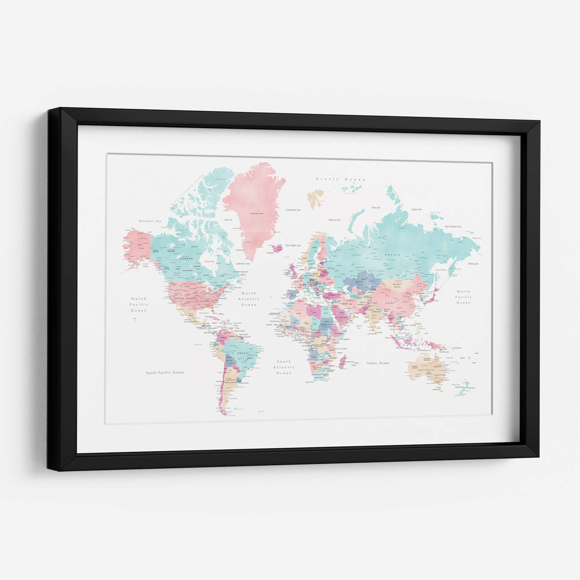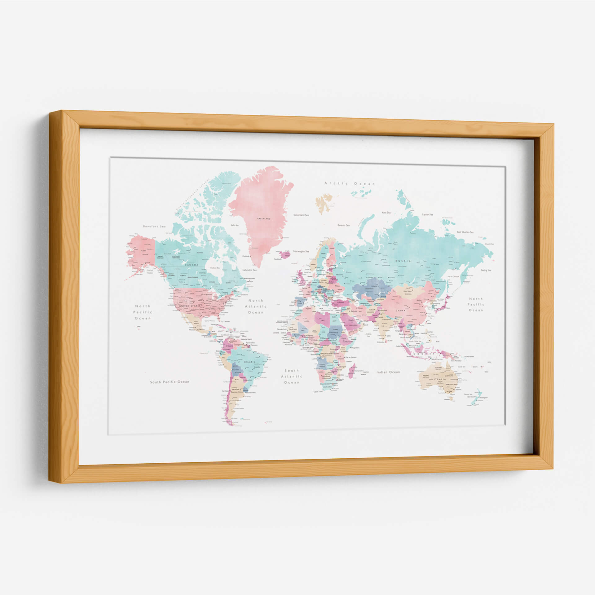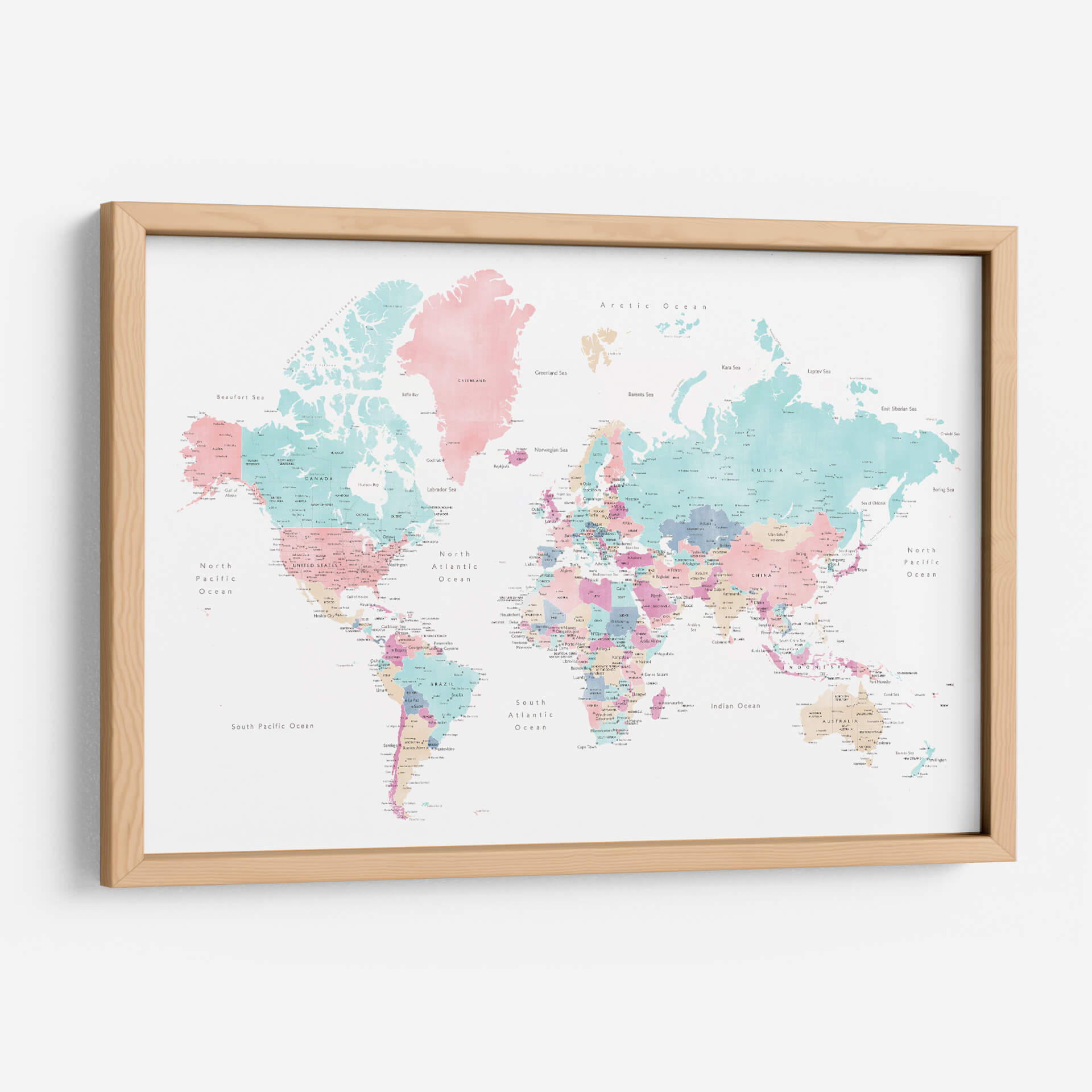 Embárquese en un viaje visual a través de continentes y océanos con este cautivador cuadro decorativo "Mapa mundial de pasteles desgastados". La obra, creada por Rosana Laiz Blursbyai, presenta una interpretación artística y sutil del mundo, utilizando una paleta de colores suaves y desgastados que evoca una sensación de nostalgia y descubrimiento. Tonos pastel de rosa, azul y verde se entrelazan, delineando países y mares con una delicadeza que invita a la contemplación. La composición detallada pero no abrumadora, permite apreciar la geografía global mientras se mantiene un aire etéreo y moderno. Este mapa del mundo desgastado es perfecto para inspirar conversaciones y añadir un toque de sofisticación a cualquier espacio, ya sea una sala de estar, una oficina o un dormitorio. Su estilo único lo convierte en un punto focal intrigante, ideal para aquellos que aman los viajes, la geografía o simplemente aprecian el arte con carácter y una narrativa visual sutil. Transforma tu pared en una ventana al mundo y deja que la serenidad de esta pieza llene tu hogar.
