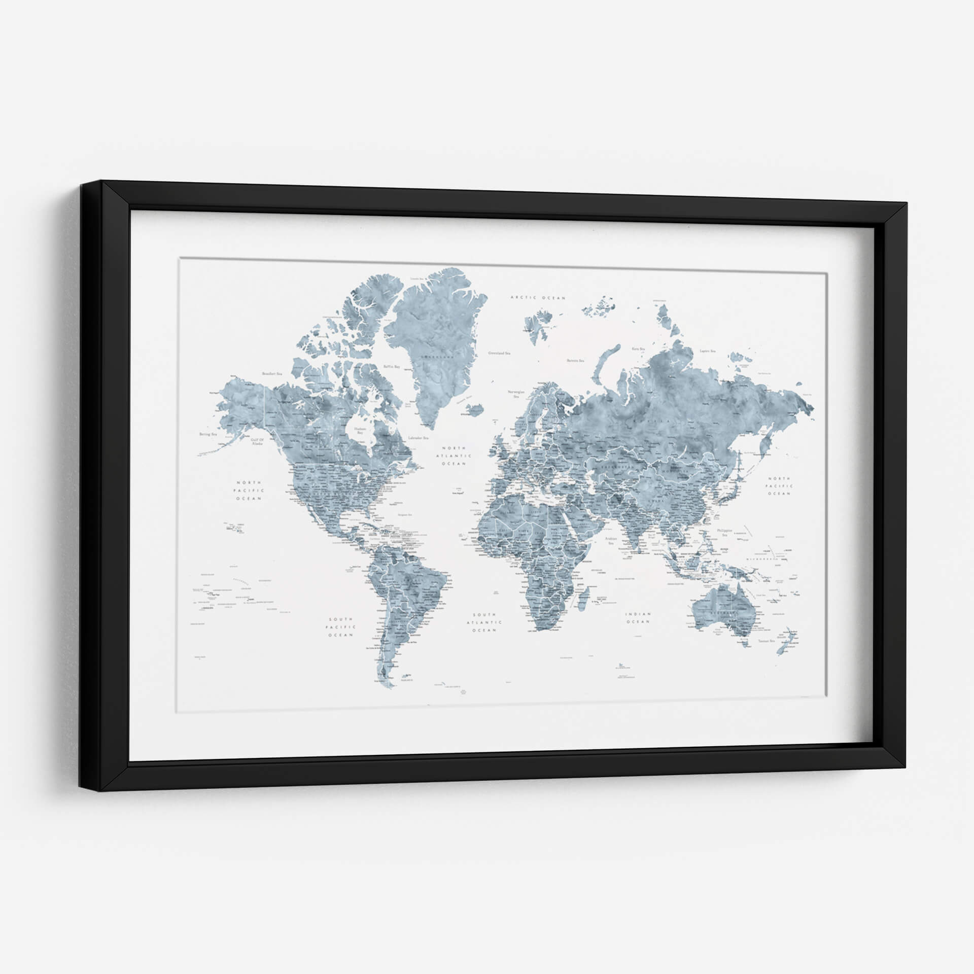 Embárcate en un viaje visual con nuestro detallado mapa mundial de Rosana Laiz Blursbyai, una obra de arte que captura la esencia de la exploración y la conexión global. Este cuadro decorativo, presentado en una paleta de suaves tonos azulados y grises, evoca una sensación de calma y sofisticación, ideal para inspirar tu espacio vital o de trabajo. Cada continente y océano está representado con una claridad asombrosa, permitiendo apreciar la intrincada red de ciudades, países y masas de agua. El estilo artístico, que combina la precisión cartográfica con un toque de acuarela etérea, crea una atmósfera única que estimula la curiosidad y el deseo de descubrir. Ya sea para un hogar moderno, una oficina ejecutiva o un estudio creativo, este mapa mundial se convierte en un punto focal cautivador. Su diseño atemporal y su ejecución artística lo convierten en la pieza perfecta para aquellos que buscan añadir un elemento de inteligencia y elegancia a su decoración. Transforma tus paredes en un lienzo de conocimiento y aventura con este exquisito cuadro decorativo, diseñado para resonar con el espíritu viajero y curioso que todos llevamos dentro. Es más que una simple representación geográfica; es una invitación a soñar con el próximo destino.