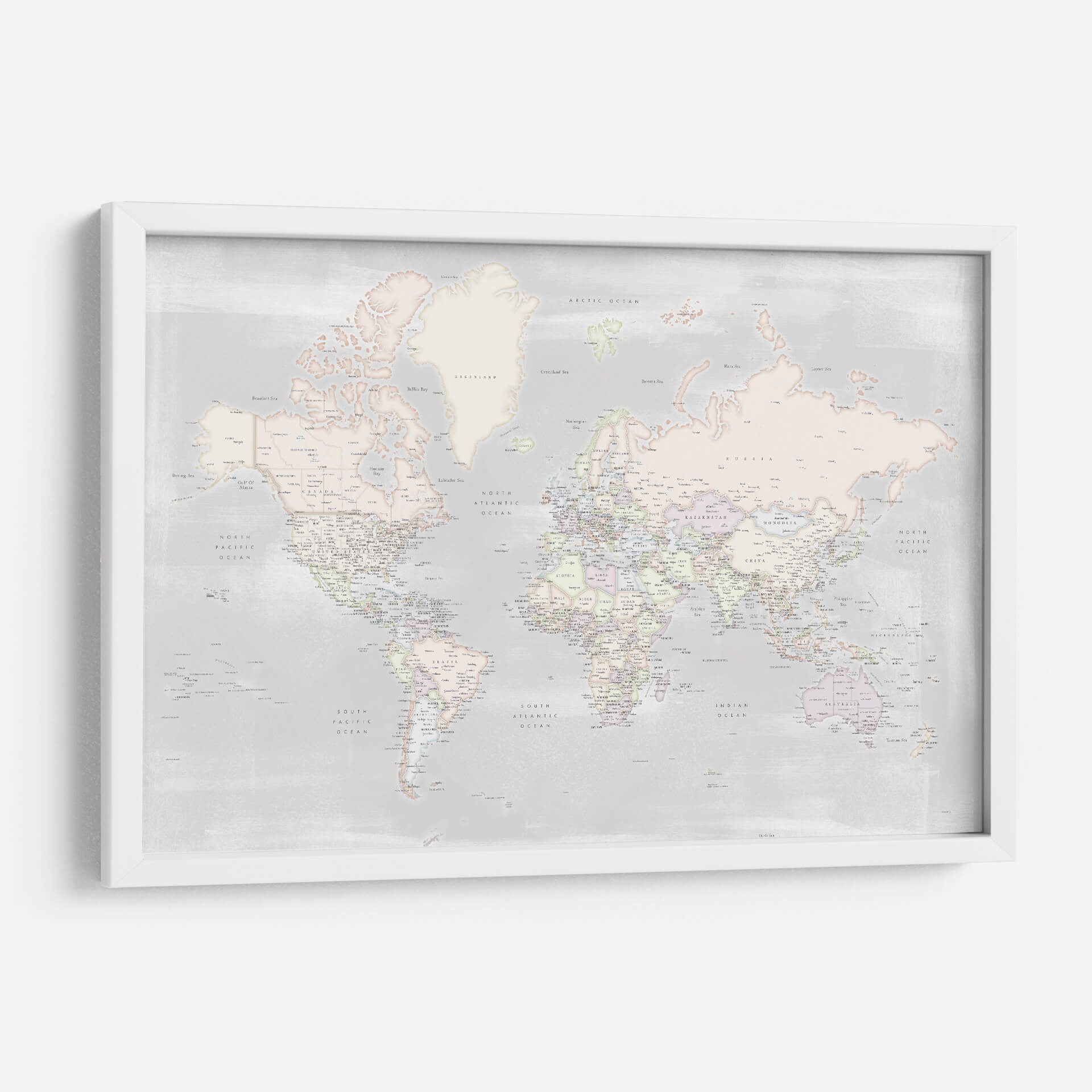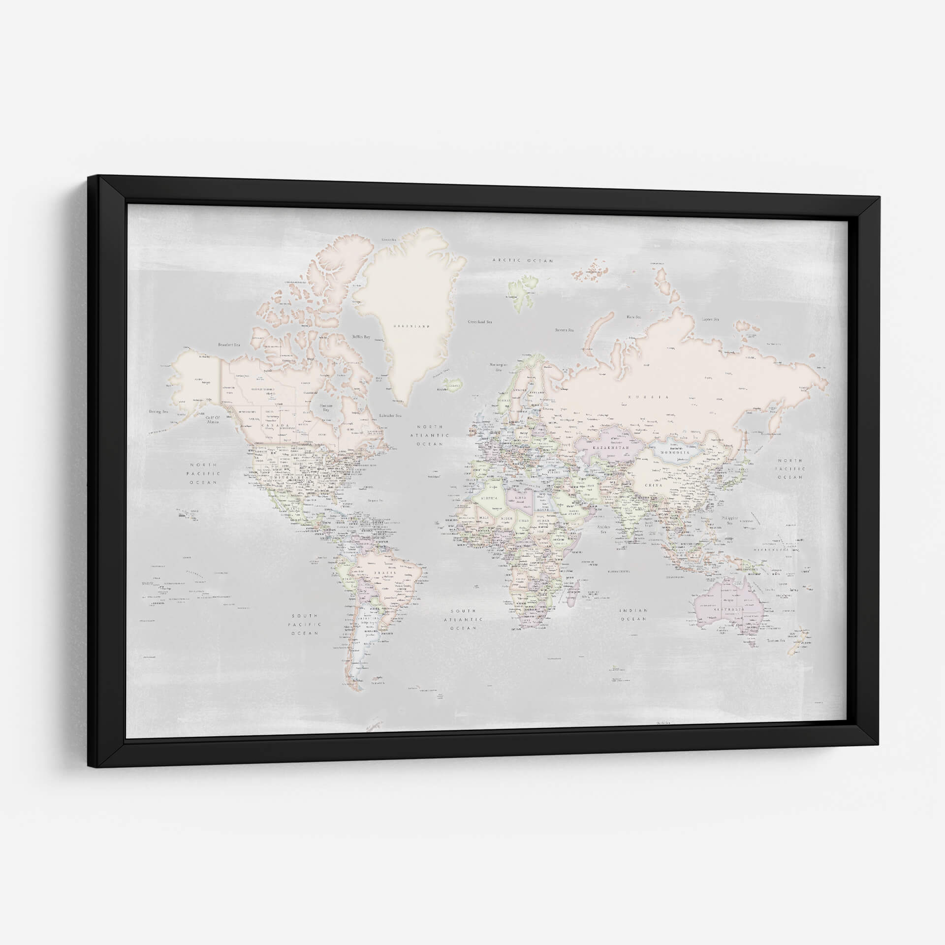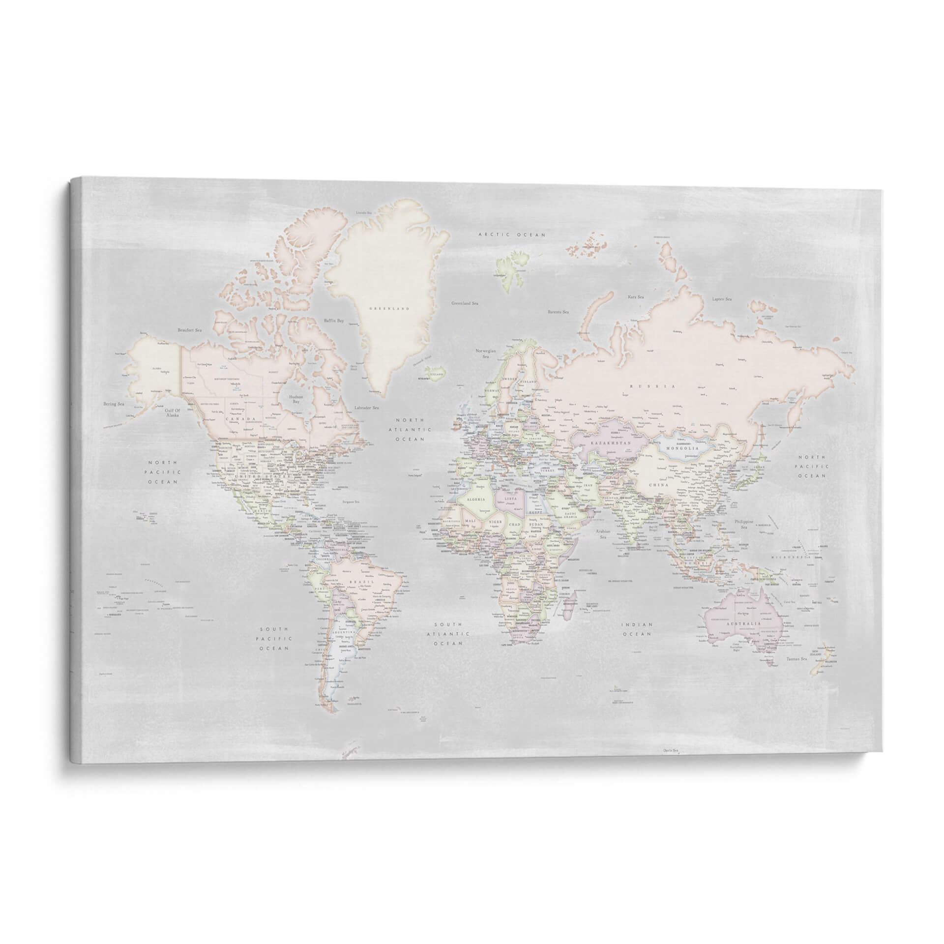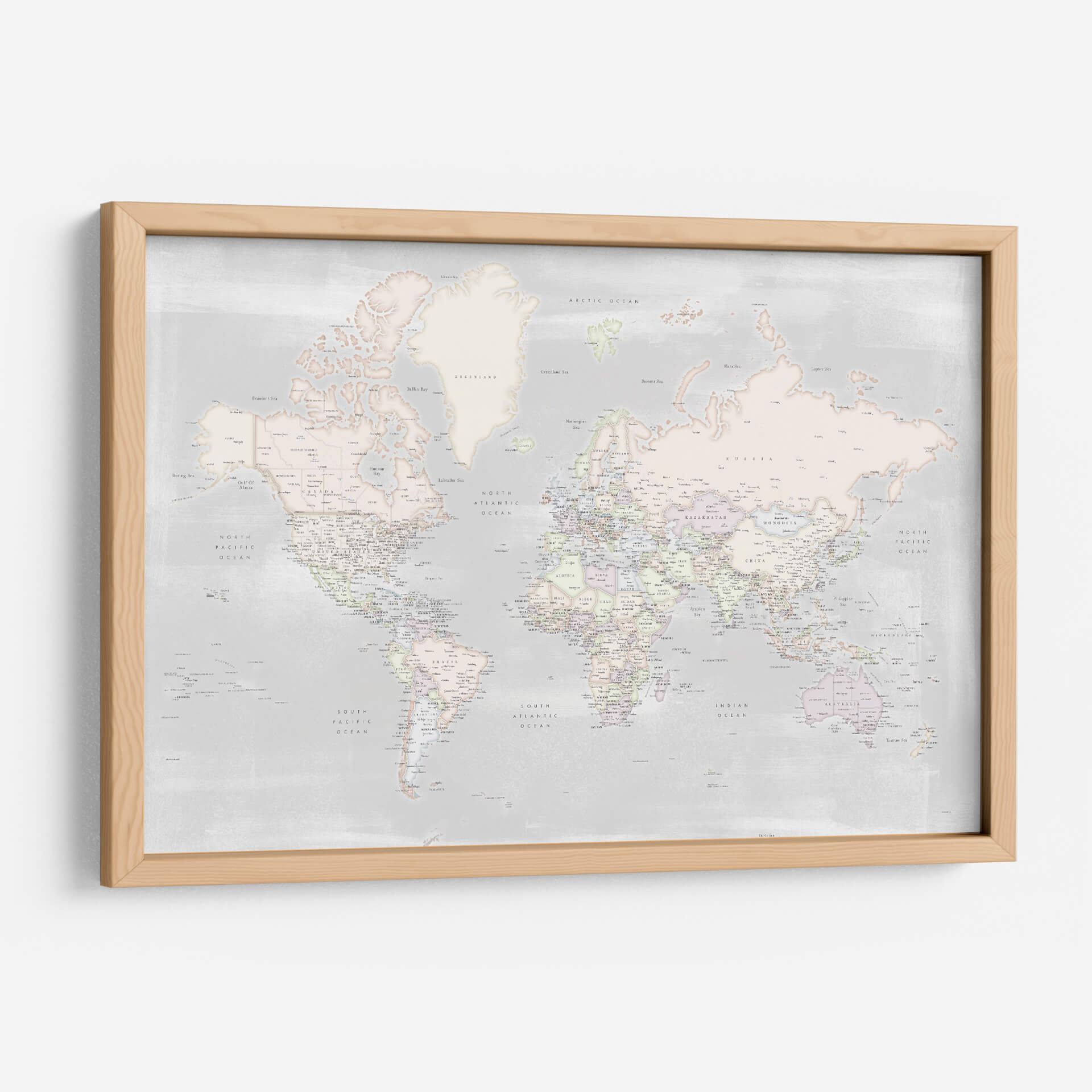 Embárcate en un viaje visual con este detallado mapa mundial, presentado en una paleta de colores pastel suave y serena. La obra de Rosana Laiz captura la esencia de nuestro planeta con una precisión exquisita, detallando países, océanos y ciudades con una delicadeza que invita a la exploración. El estilo contemporáneo y la sutileza de los tonos pastel crean una atmósfera de calma y sofisticación, ideal para cualquier espacio que busque un toque de elegancia y conocimiento geográfico. Este cuadro decorativo no es solo una representación del mundo, sino una ventana a la conexión global, perfecta para inspirar curiosidad y un sentido de unidad. Su diseño limpio y estético lo convierte en una pieza versátil, capaz de realzar desde un despacho moderno hasta un dormitorio acogedor. Añade un toque de inspiración geográfica y serenidad a tu hogar u oficina con este mapa mundial contemporáneo, una pieza que combina arte, educación y diseño de manera armoniosa. Es la elección perfecta para los amantes de la geografía, los viajeros empedernidos o cualquiera que aprecie el arte con un propósito.