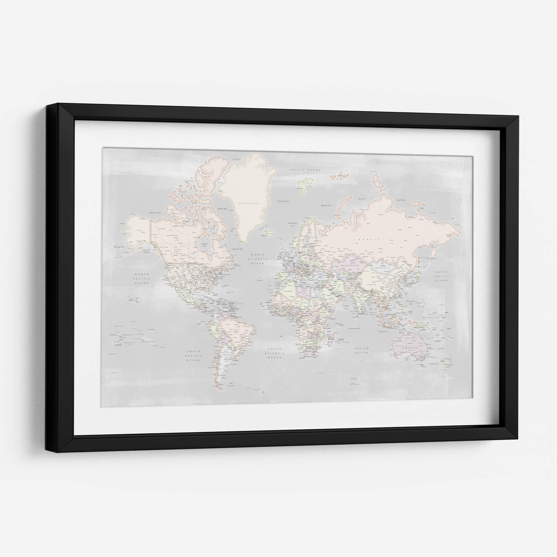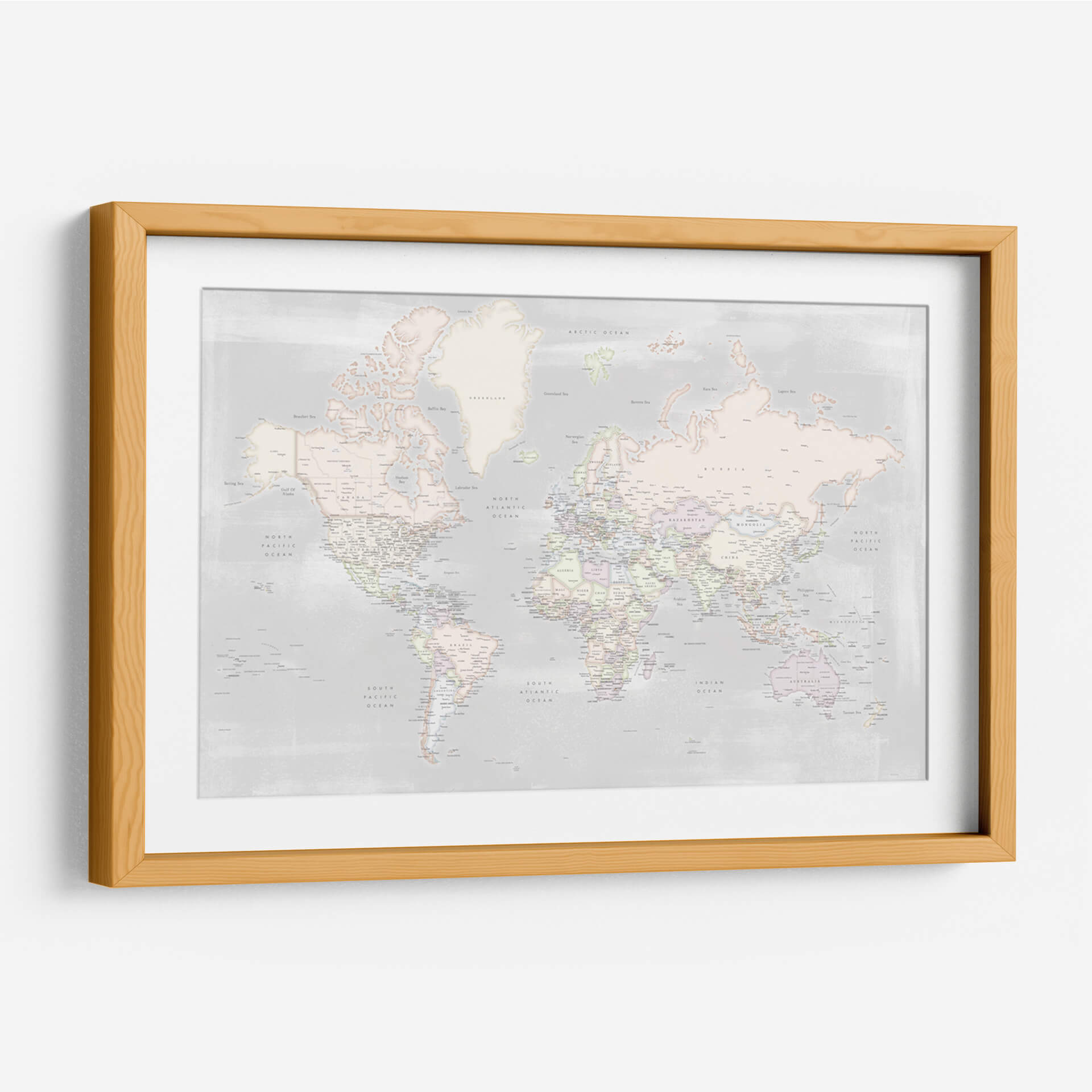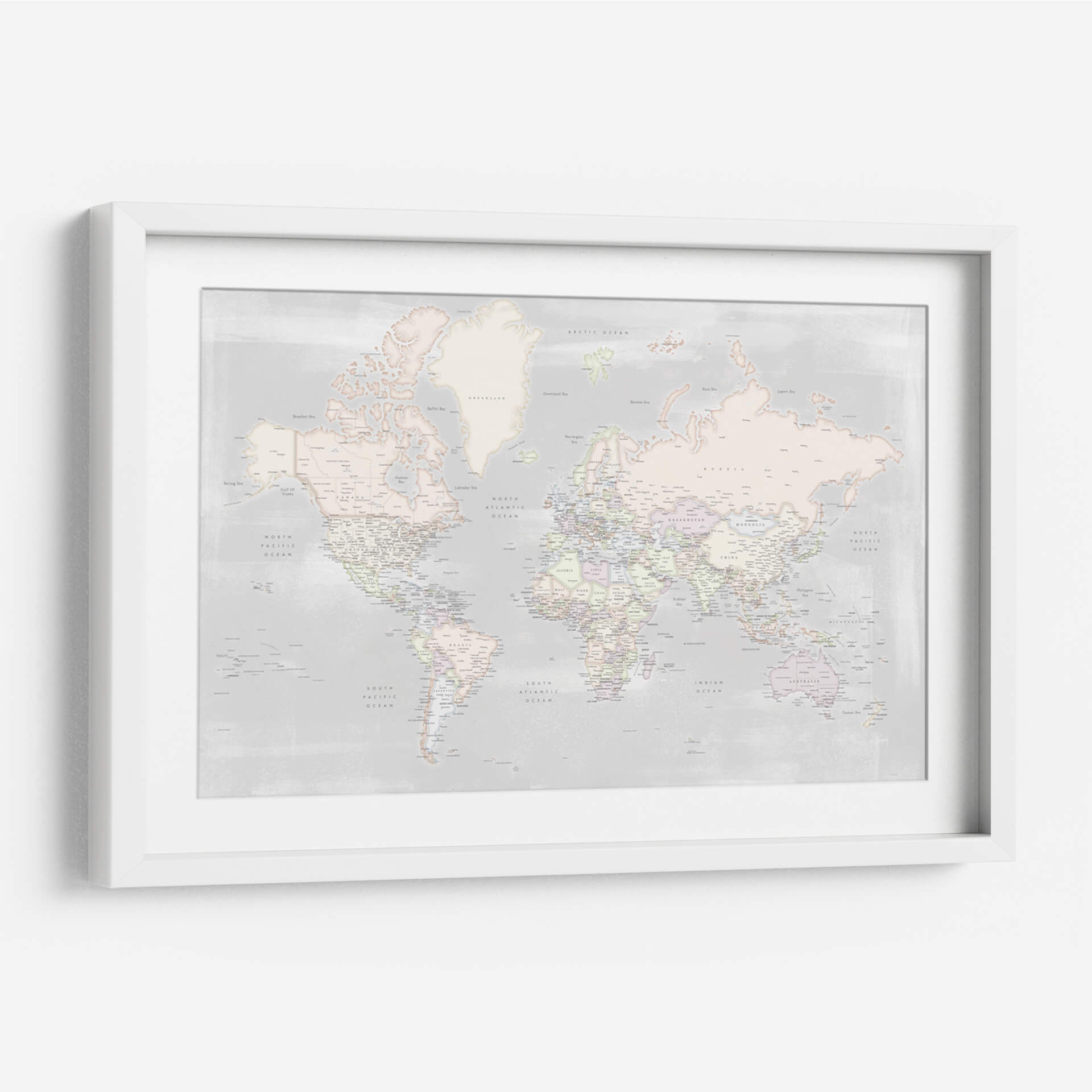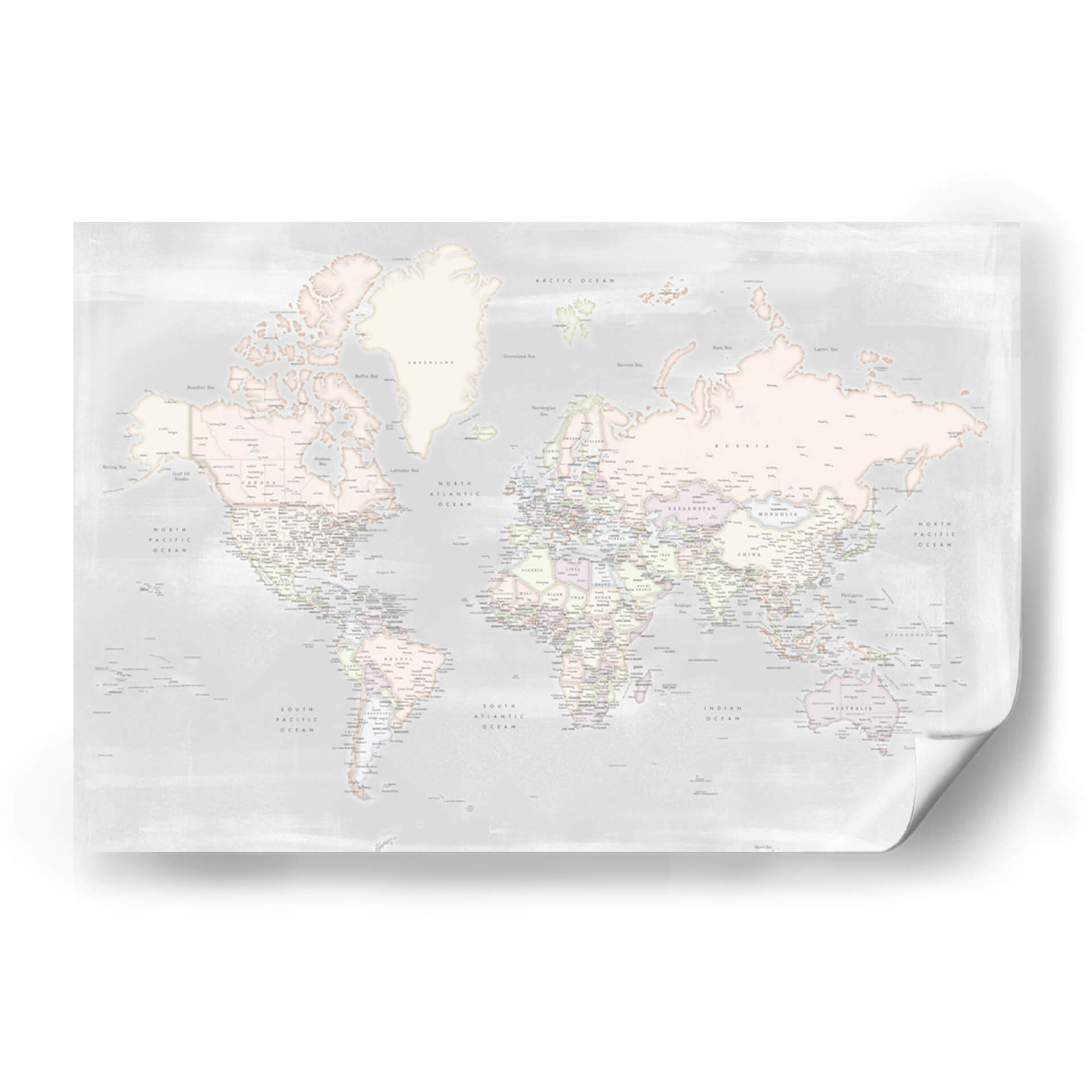 Embárcate en un viaje visual con este detallado mapa mundial, presentado en una paleta de colores pastel suave y serena. La obra de Rosana Laiz captura la esencia de nuestro planeta con una precisión exquisita, detallando países, océanos y ciudades con una delicadeza que invita a la exploración. El estilo contemporáneo y la sutileza de los tonos pastel crean una atmósfera de calma y sofisticación, ideal para cualquier espacio que busque un toque de elegancia y conocimiento geográfico. Este cuadro decorativo no es solo una representación del mundo, sino una ventana a la conexión global, perfecta para inspirar curiosidad y un sentido de unidad. Su diseño limpio y estético lo convierte en una pieza versátil, capaz de realzar desde un despacho moderno hasta un dormitorio acogedor. Añade un toque de inspiración geográfica y serenidad a tu hogar u oficina con este mapa mundial contemporáneo, una pieza que combina arte, educación y diseño de manera armoniosa. Es la elección perfecta para los amantes de la geografía, los viajeros empedernidos o cualquiera que aprecie el arte con un propósito.