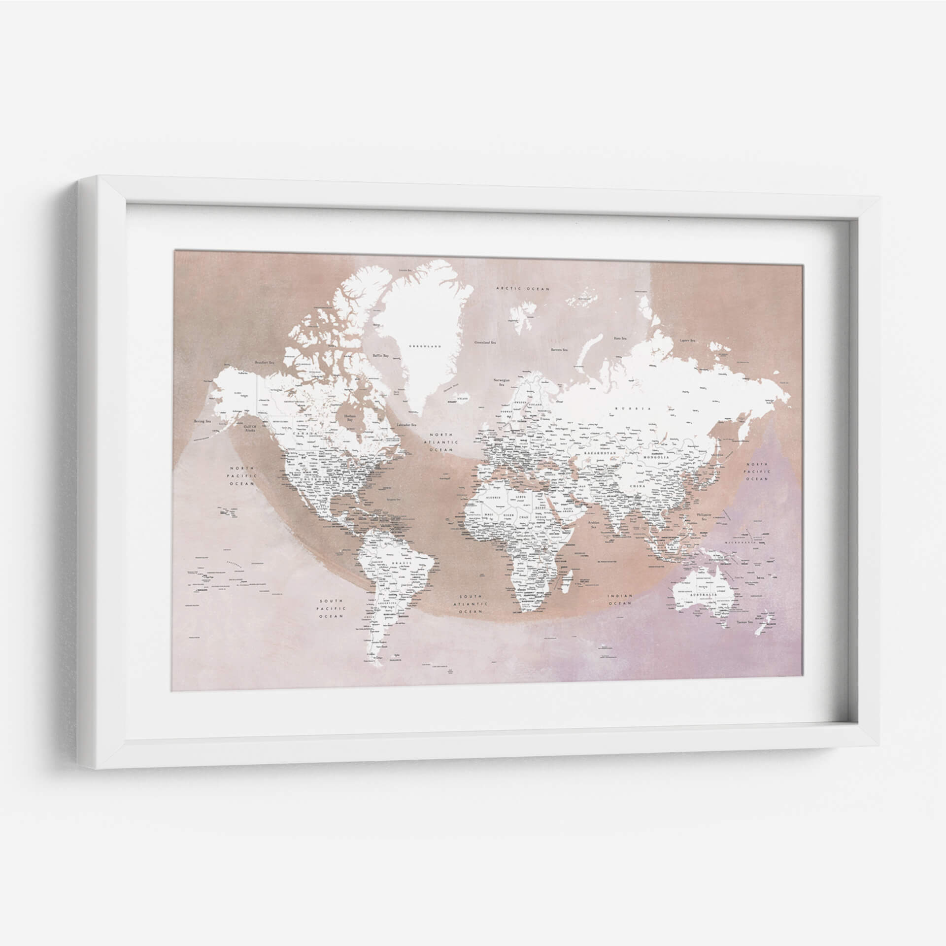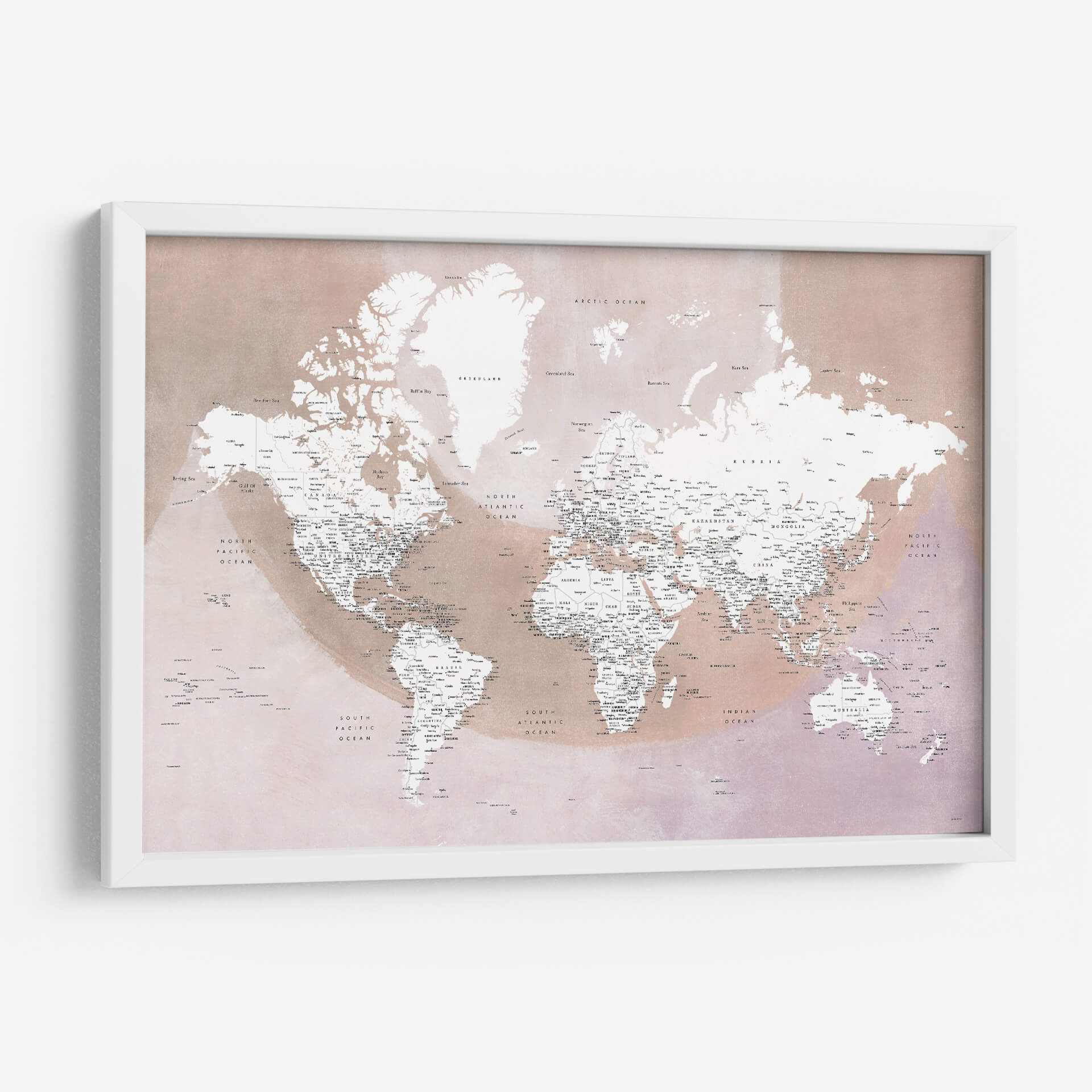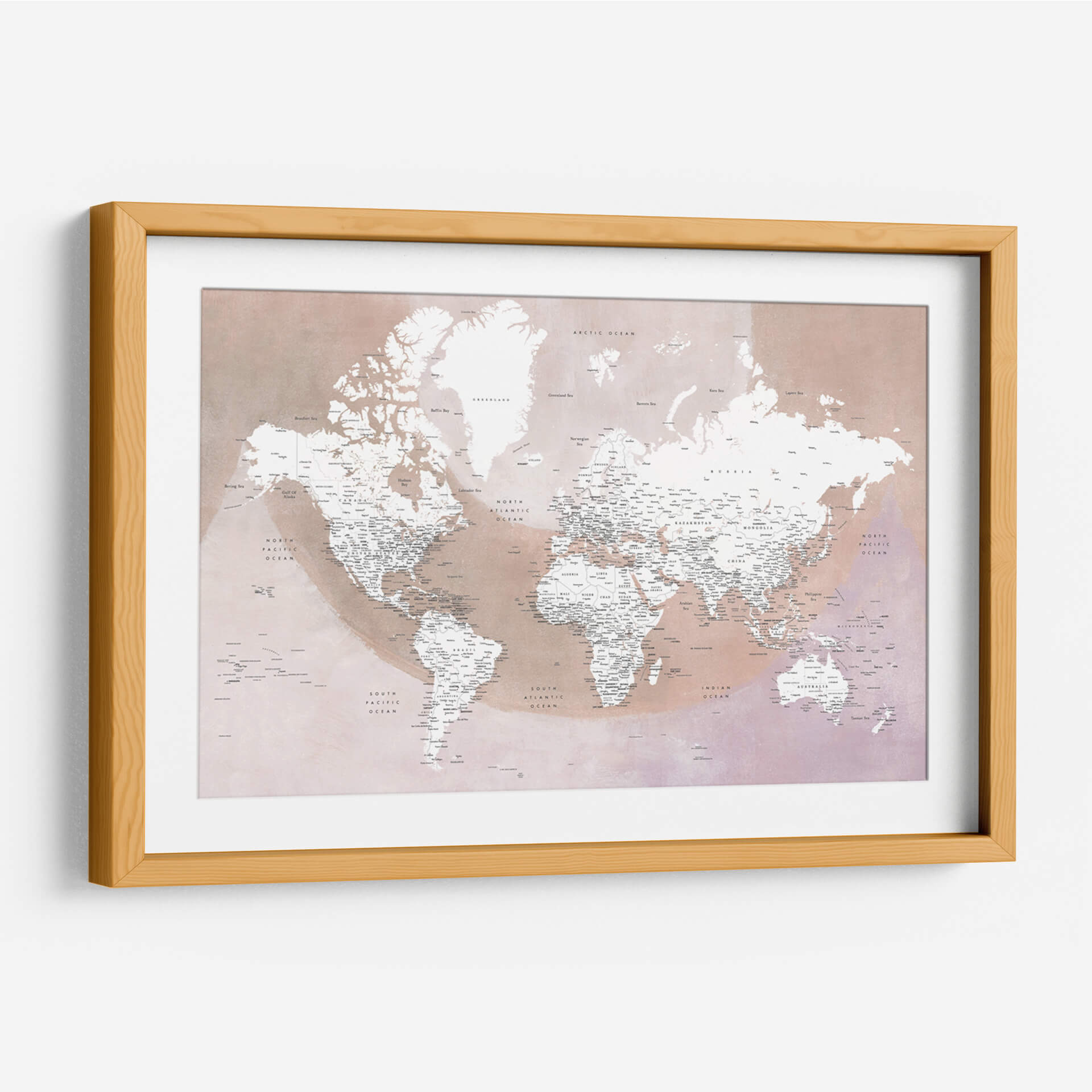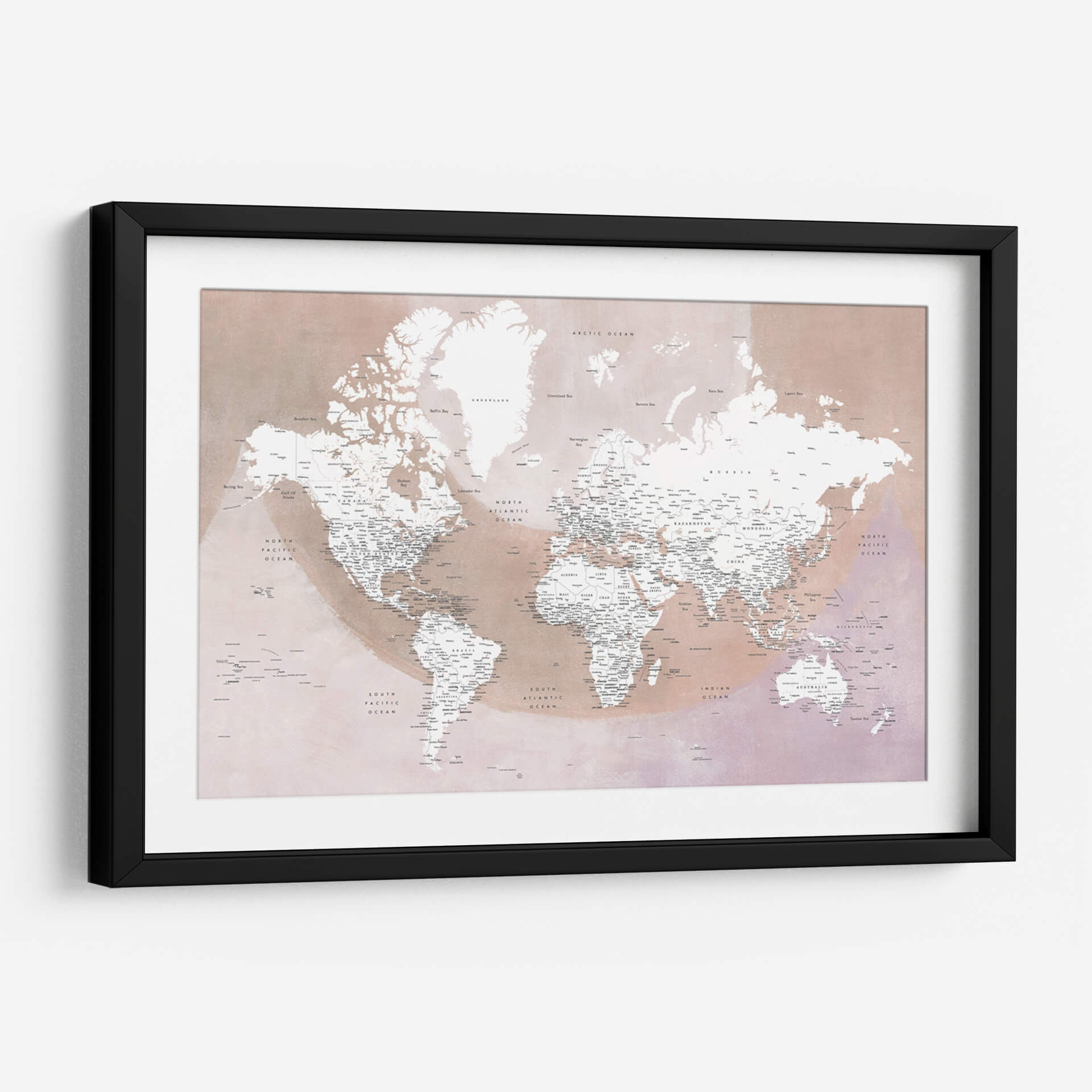 Descubre el mundo con este detallado mapa mundial en tonos empolvados, una obra de arte que combina la geografía con un diseño contemporáneo. La paleta de colores suaves, que van desde el beige rosado hasta toques de lavanda sutil, crea una atmósfera serena y sofisticada, perfecta para enriquecer cualquier espacio del hogar u oficina. Cada país y ciudad está representado con una claridad excepcional, invitando a la exploración y al descubrimiento. Este cuadro decorativo no solo es una pieza informativa, sino también un elemento de diseño que aporta profundidad y carácter. Ideal para los amantes de los viajes, la geografía, o simplemente para aquellos que buscan una decoración de pared elegante y atemporal. Su estilo moderno y minimalista asegura que se integre armoniosamente en diversos estilos decorativos, desde el escandinavo hasta el contemporáneo. Transforma tu sala de estar, estudio o dormitorio en un centro de inspiración global con este mapa mundial de alta calidad, una pieza que fomenta la curiosidad y añade un toque de distinción.