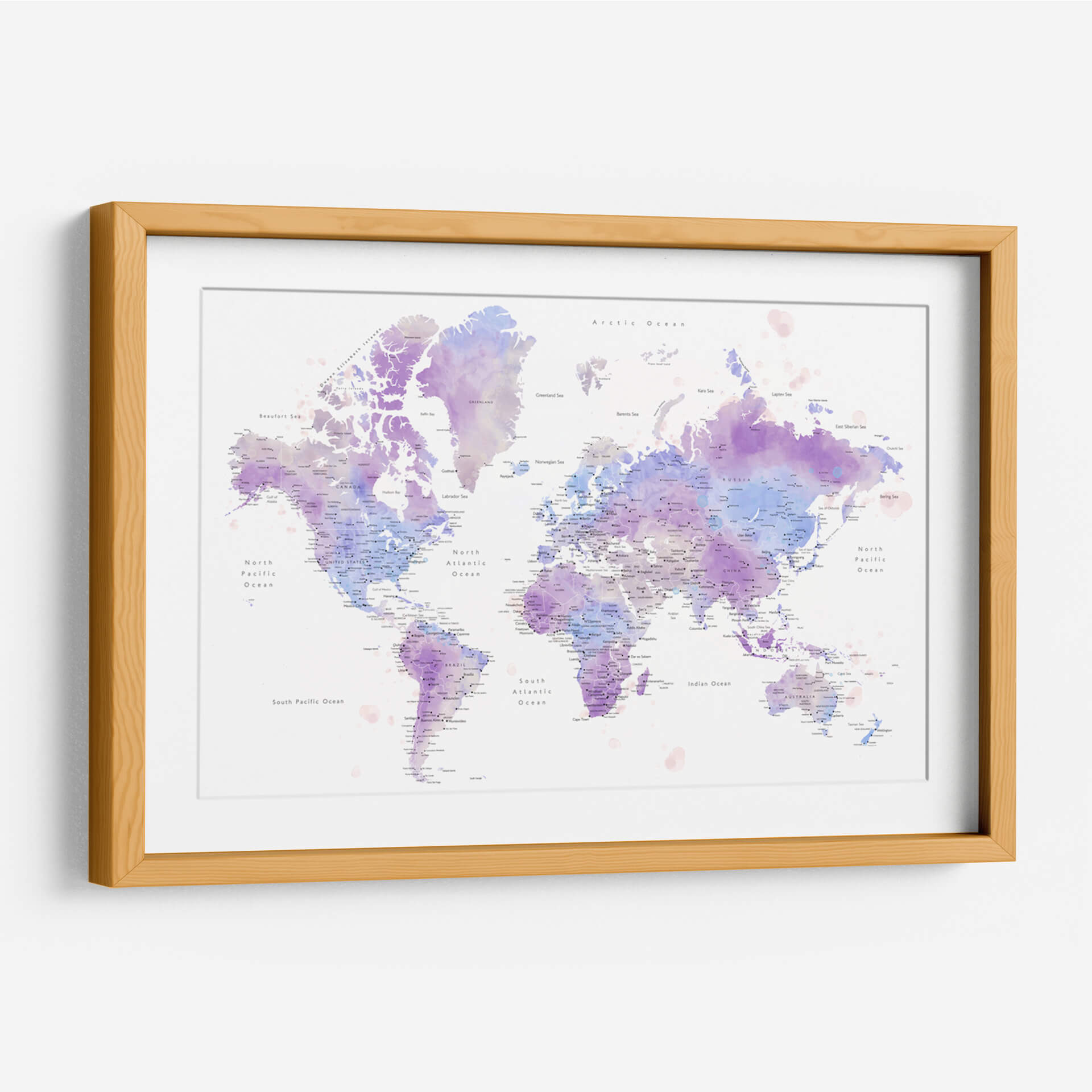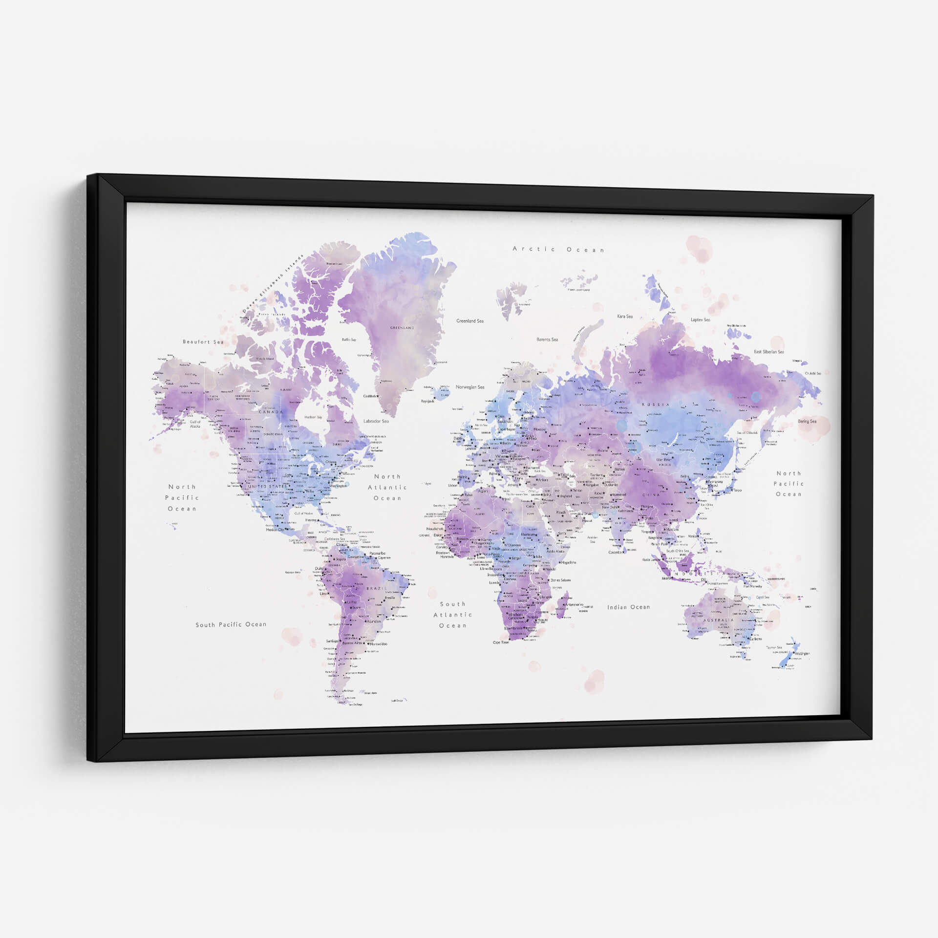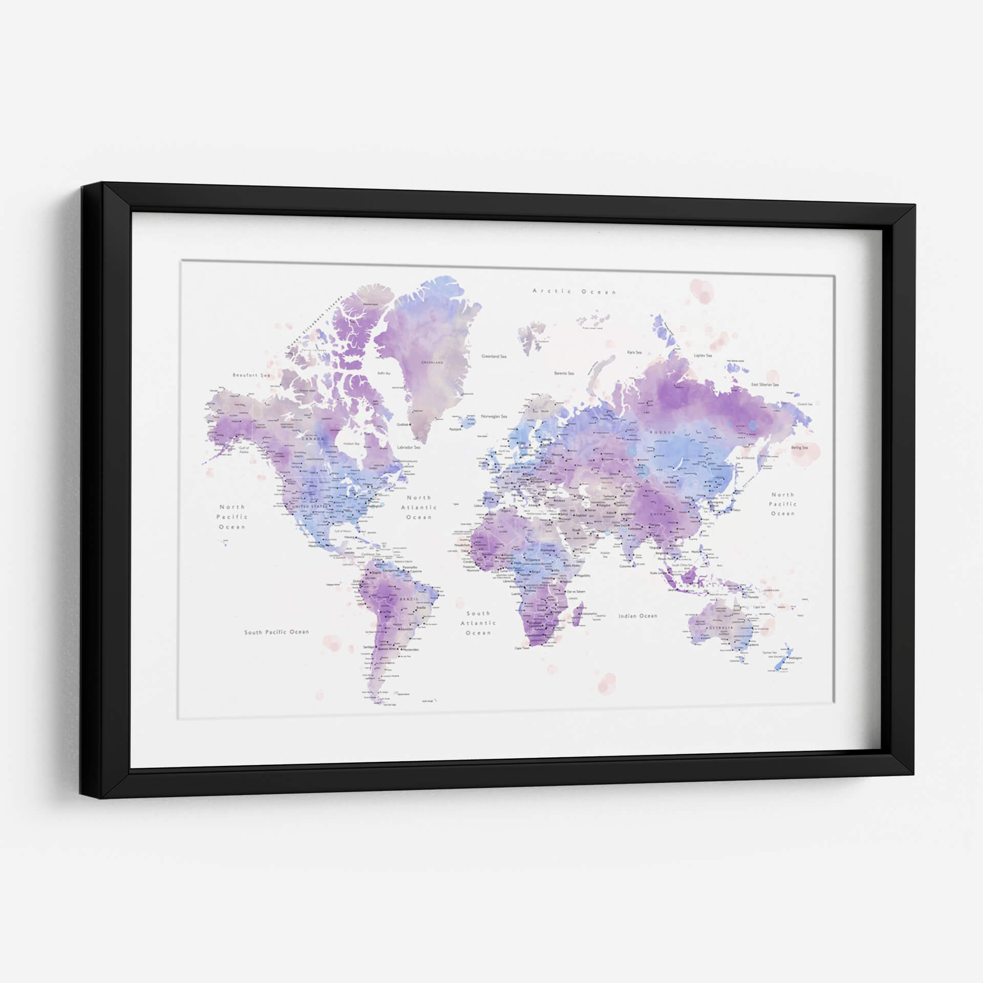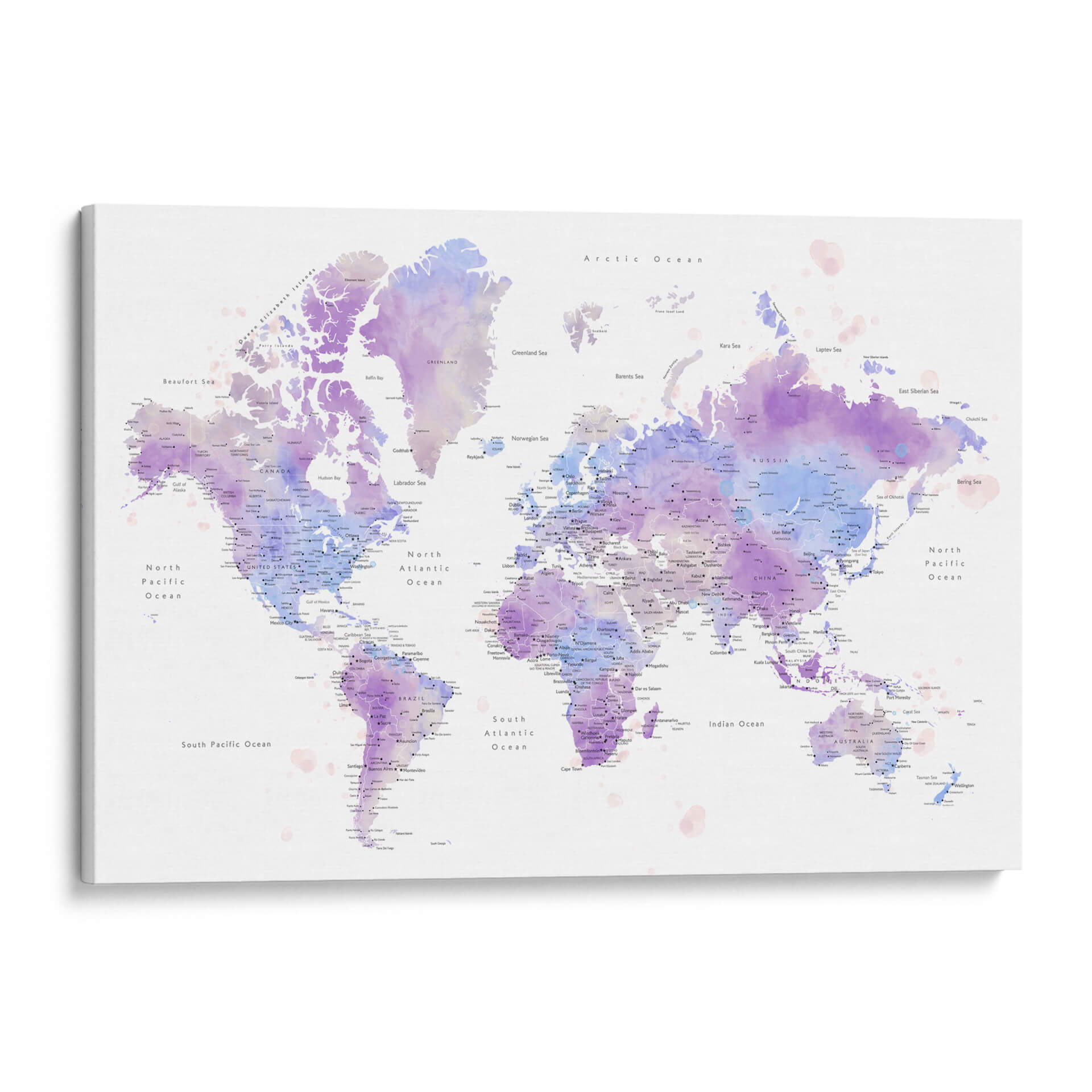Mapa mundial en acuarela con ciudades Gina - Rosana Laiz Blursbyai
