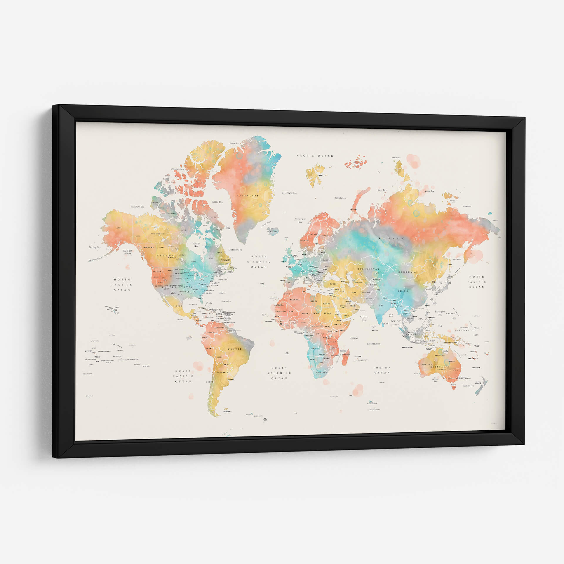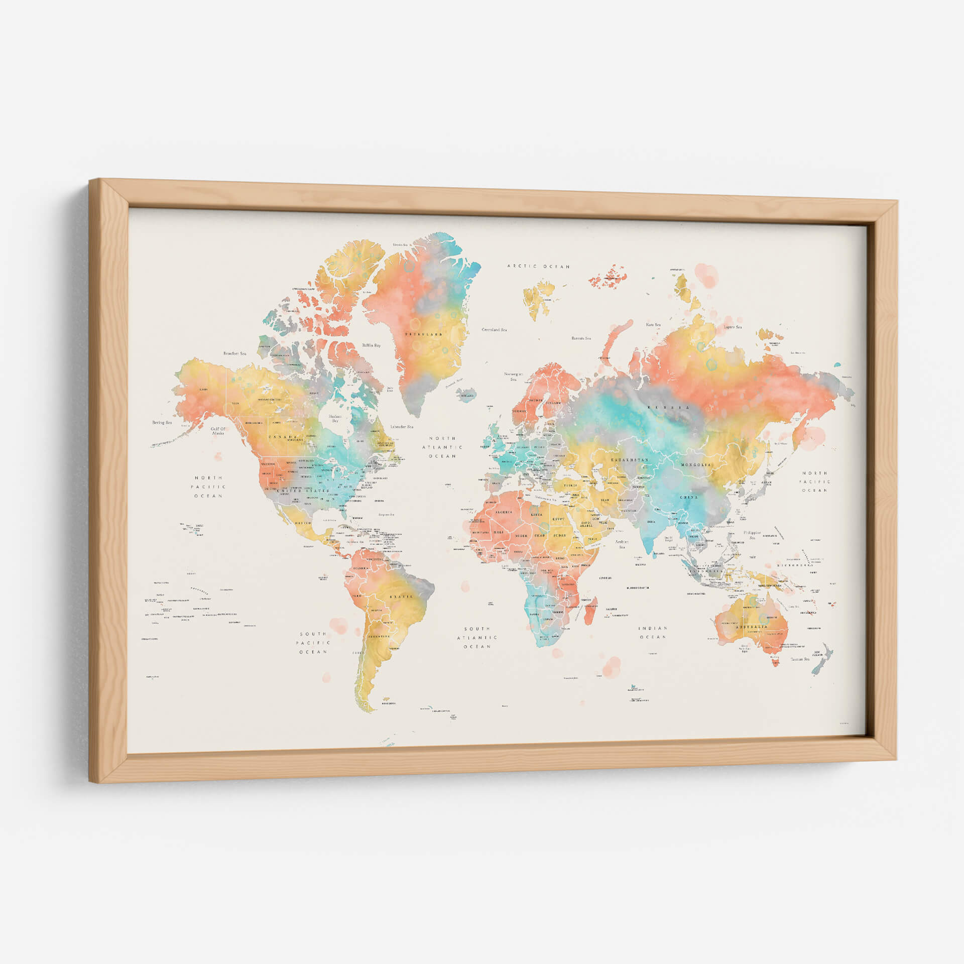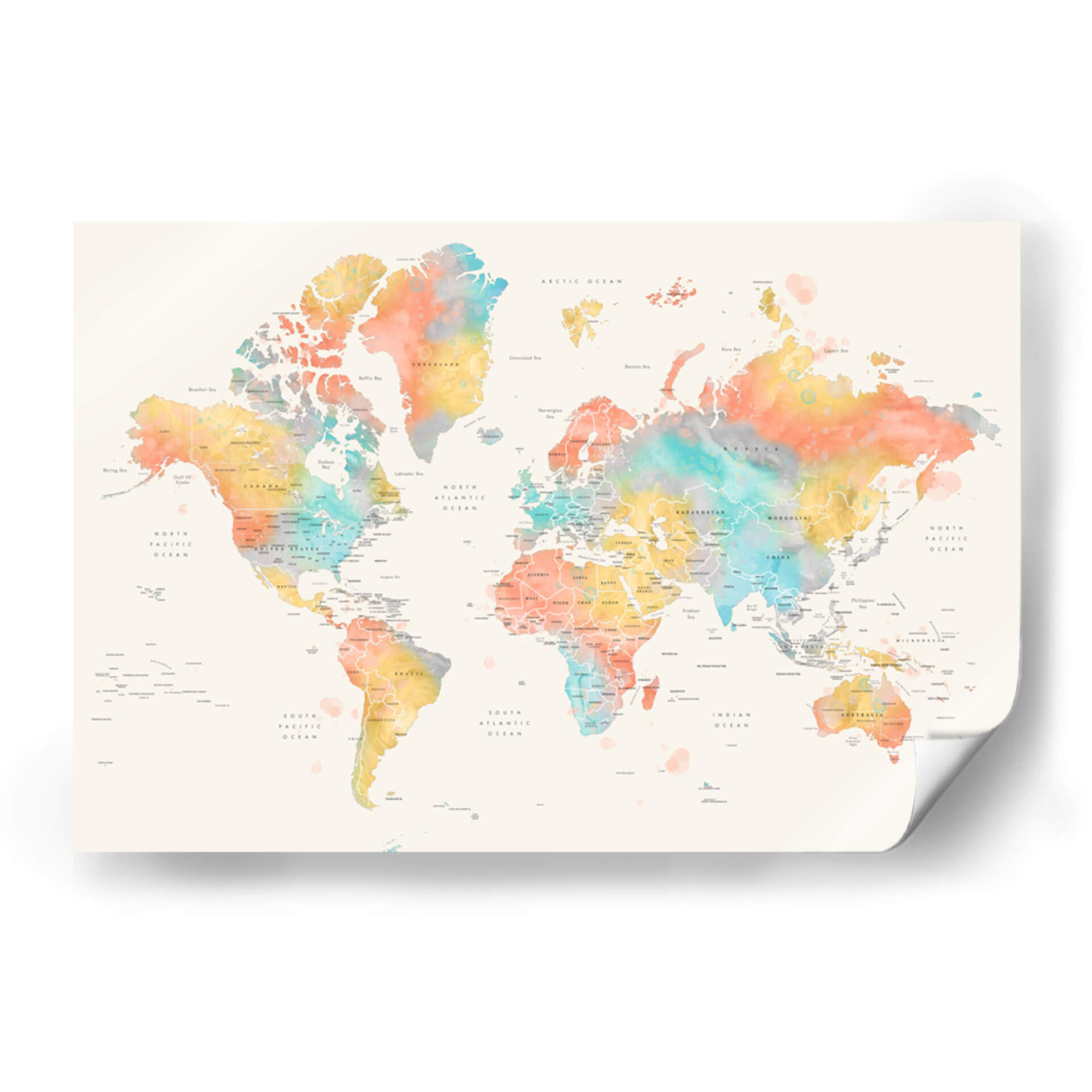 Mapa mundial en acuarela con países Fifi - Rosana Laiz Blursbyai