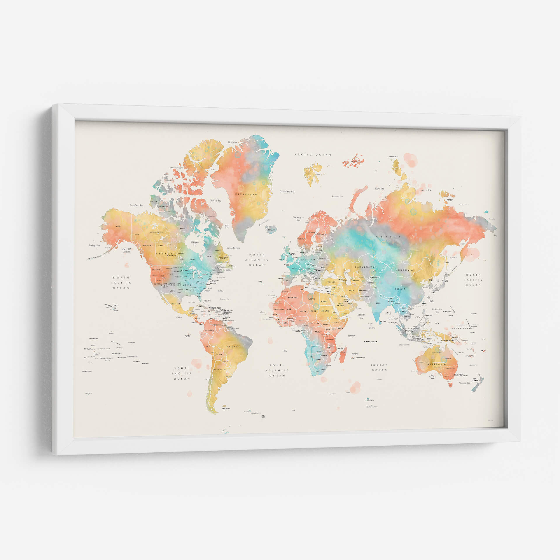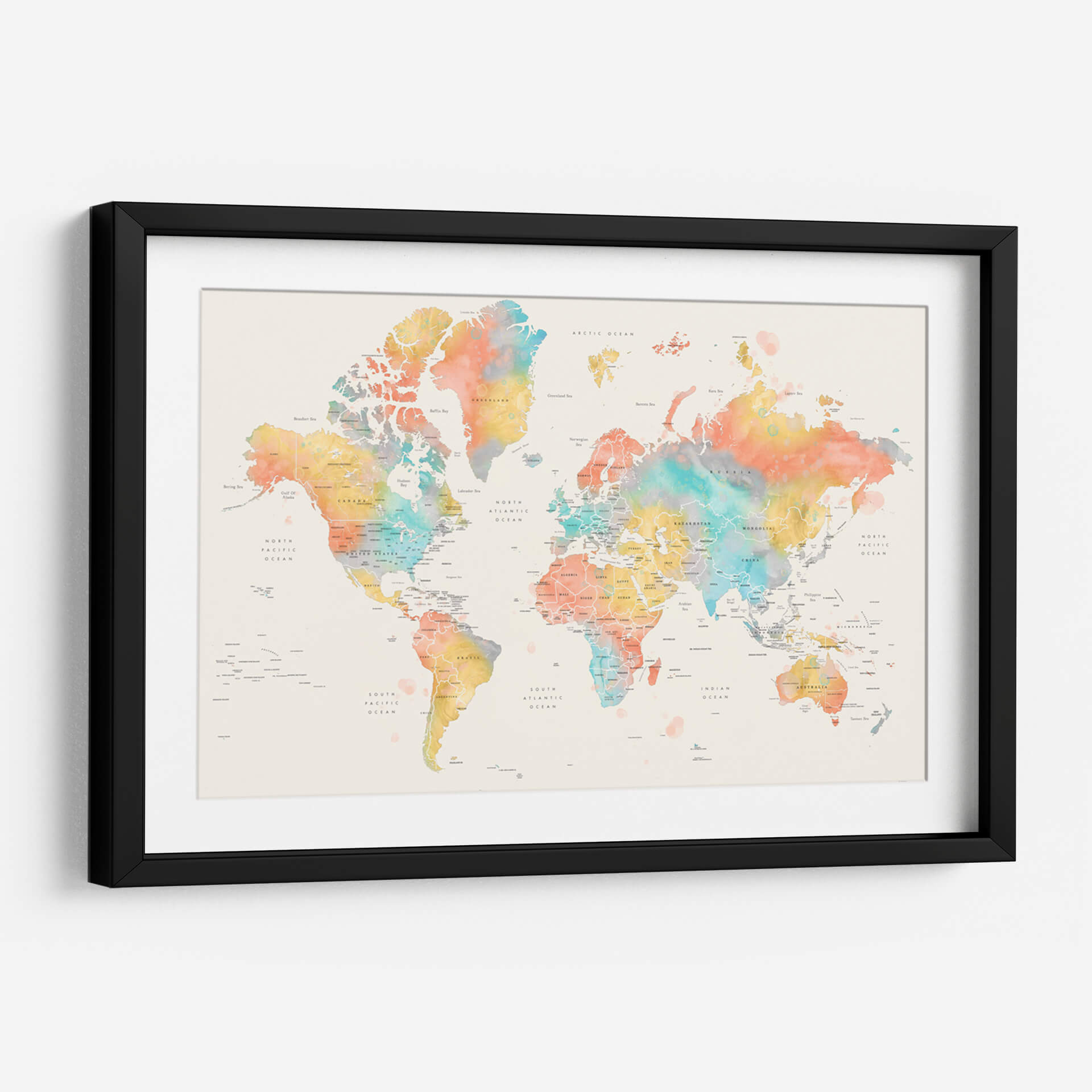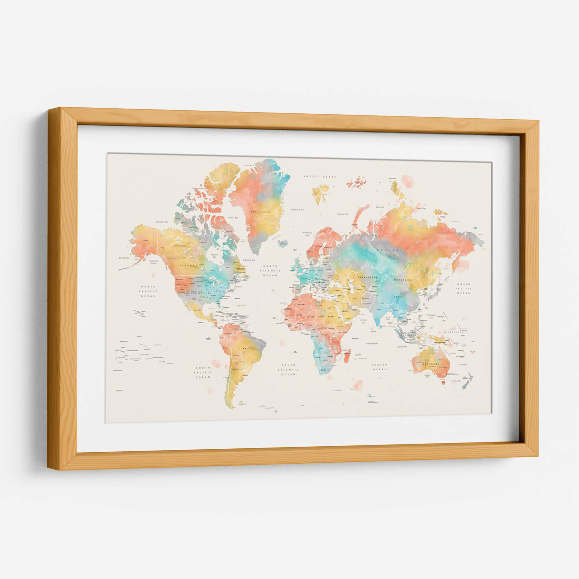 Mapa mundial en acuarela con países Fifi - Rosana Laiz Blursbyai