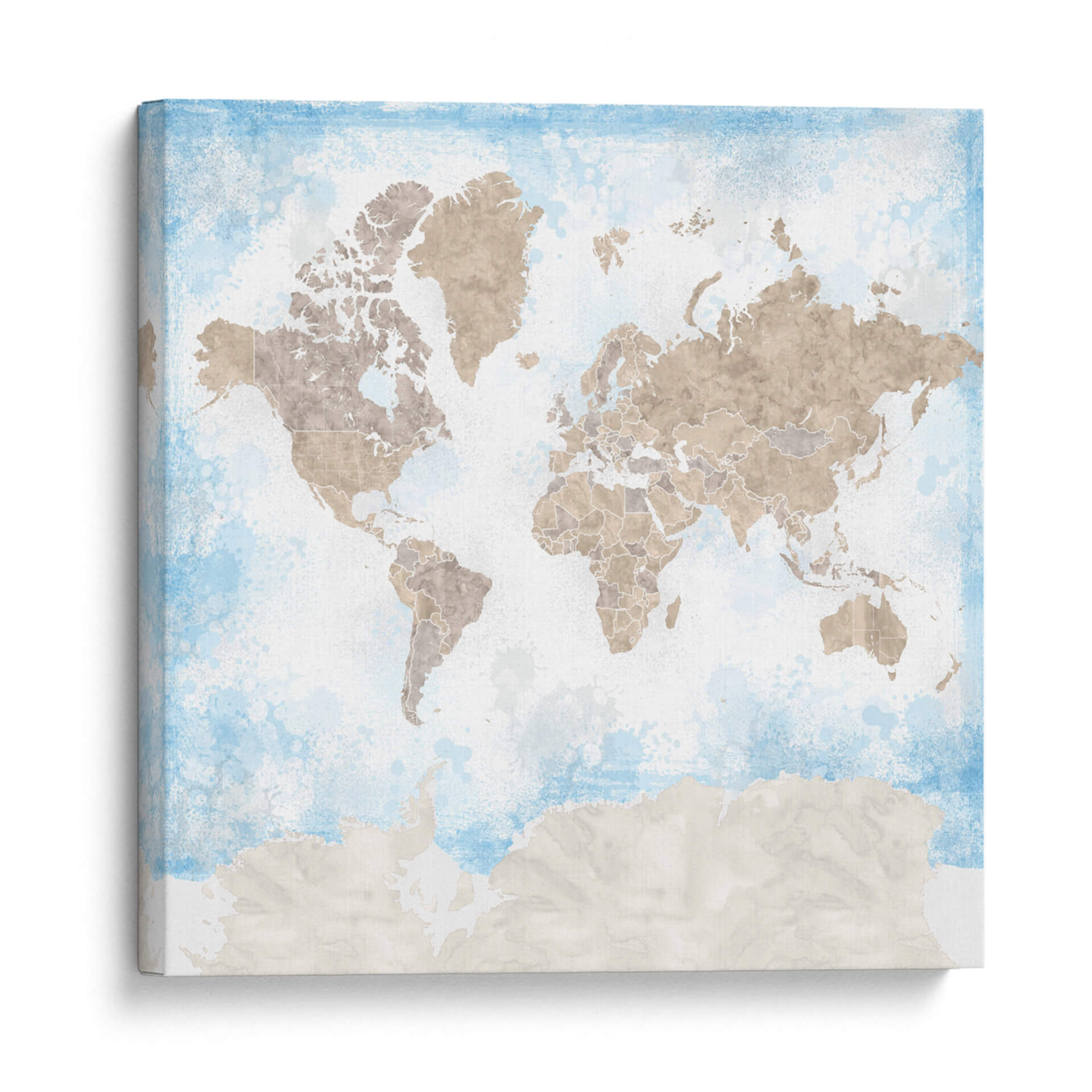 Embárcate en un viaje visual a través de nuestro cautivador cuadro decorativo 'Mapa mundial Gada', una pieza que redefine la cartografía artística. Esta obra evoca una sensación de aventura y descubrimiento, presentando un mapa del mundo con un tratamiento texturizado y acuarelado que le confiere una profundidad única. Los continentes se despliegan en tonos tierra, contrastando sutilmente con un fondo etéreo de salpicaduras en azul cielo y blanco, que recuerdan a las aguas serenas de un océano vasto o al cielo despejado. La composición, aunque representa una estructura familiar, se presenta con un estilo contemporáneo y ligeramente abstracto, invitando a la contemplación y a la reflexión sobre la interconexión global. Cada salpicadura de color y cada trazo sutil añaden una textura y un carácter orgánico que hacen de este cuadro una pieza dinámica y llena de vida. Es la decoración de pared perfecta para inspirar curiosidad y un sentido de exploración en tu hogar u oficina. Ideal para quienes aman los viajes, la geografía o simplemente buscan una pieza de arte única que añada un toque de sofisticación y carácter a cualquier espacio, desde un estudio moderno hasta un salón acogedor. Permite que 'Mapa mundial Gada' sea tu ventana al mundo y despierte tu espíritu aventurero cada día.