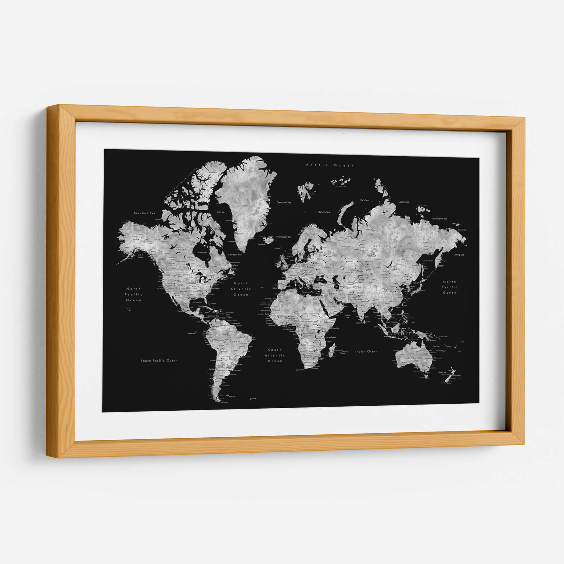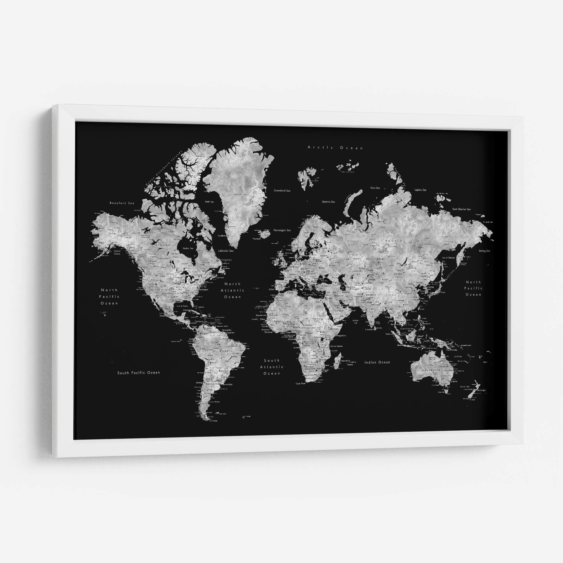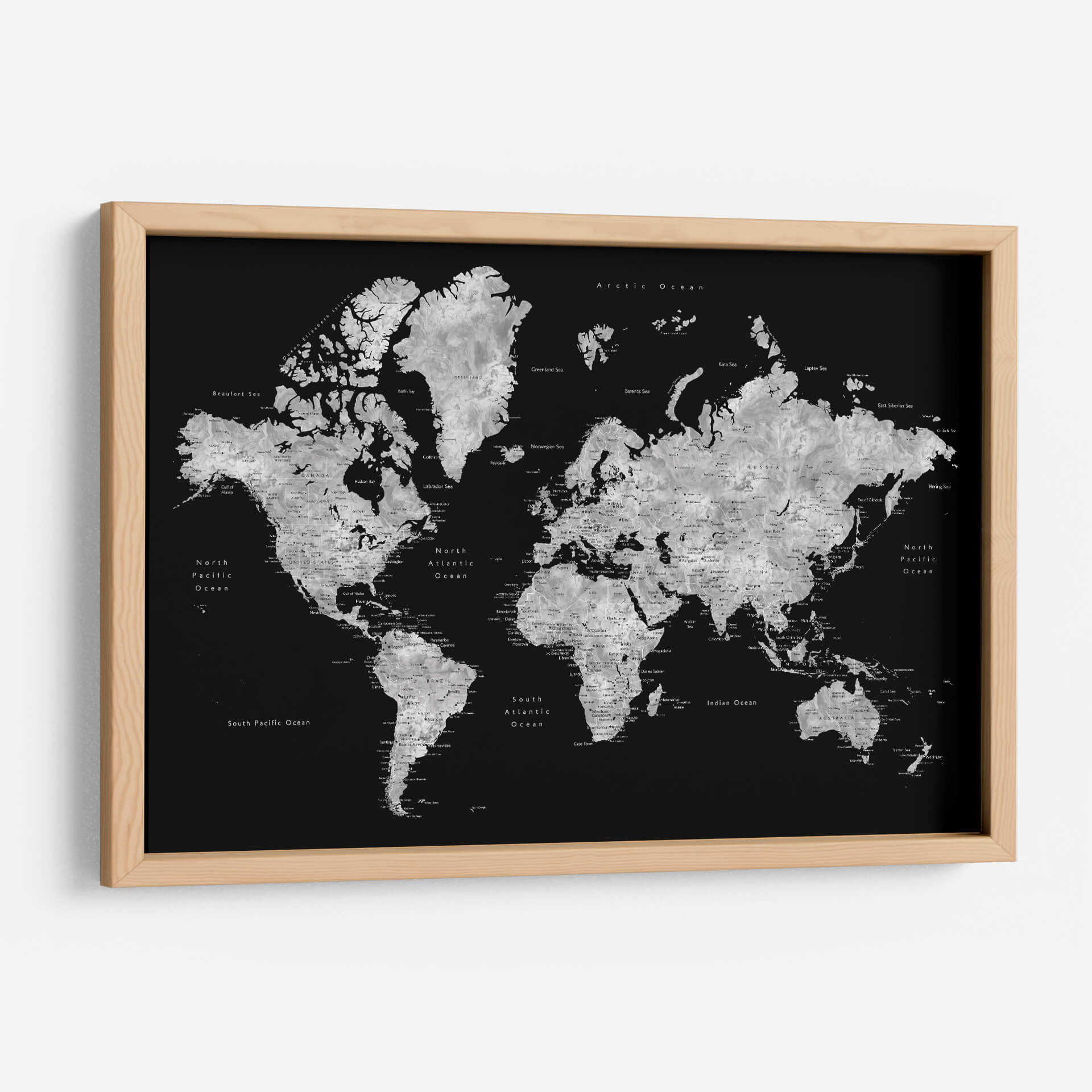 Sumérgete en la elegancia moderna con nuestro cuadro decorativo 'Mapa mundial gris con ciudades'. Esta obra de arte contemporánea presenta una representación detallada del mundo en una sofisticada paleta de grises sobre un fondo negro profundo. La precisión de los continentes y la sutil inclusión de nombres de ciudades clave invitan a la contemplación y al descubrimiento, evocando una sensación de orden y conocimiento global. El estilo minimalista y la composición clara hacen de este cuadro una pieza versátil, perfecta para añadir un toque de intelectualidad y estilo a cualquier espacio. Ideal para oficinas, salas de estudio o salones que buscan una declaración visual impactante pero refinada. Su diseño monocromático se integra armoniosamente con diversas decoraciones, desde lo industrial hasta lo escandinavo, proporcionando un punto focal que inspira conversaciones y viajes imaginarios. Transforma tu pared en un lienzo de exploración y sofisticación con este mapa mundial artístico, un recordatorio constante de la vastedad y la interconexión de nuestro planeta.