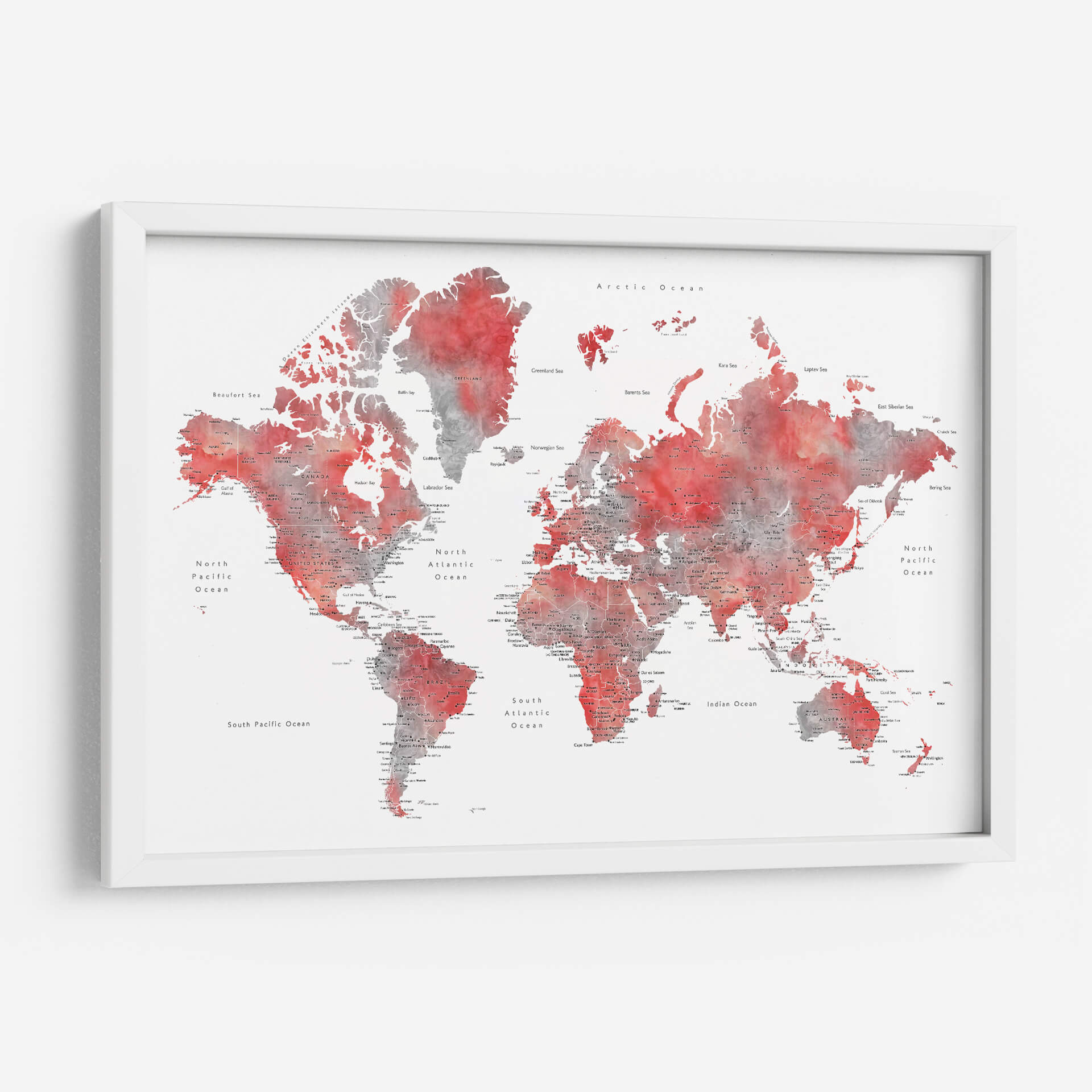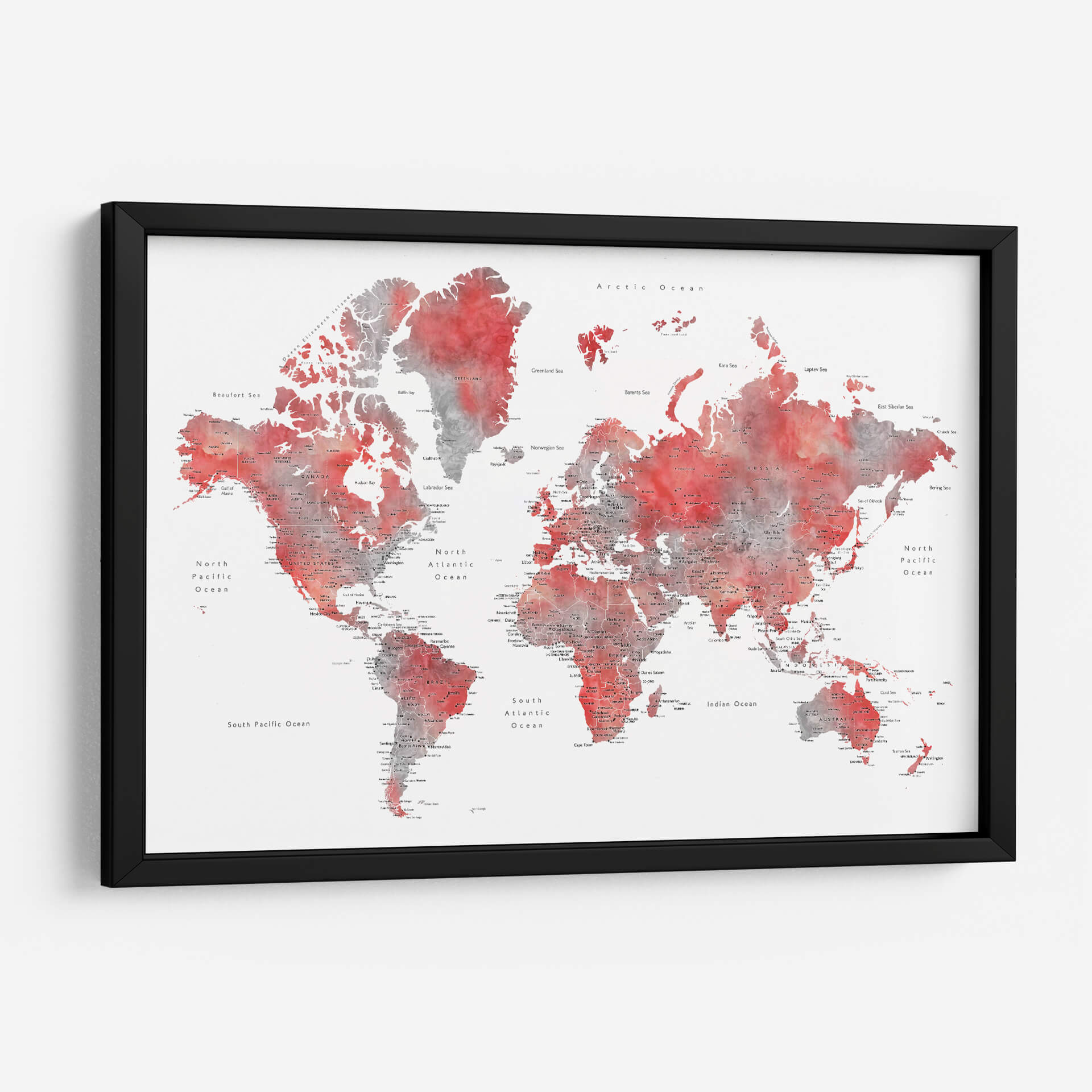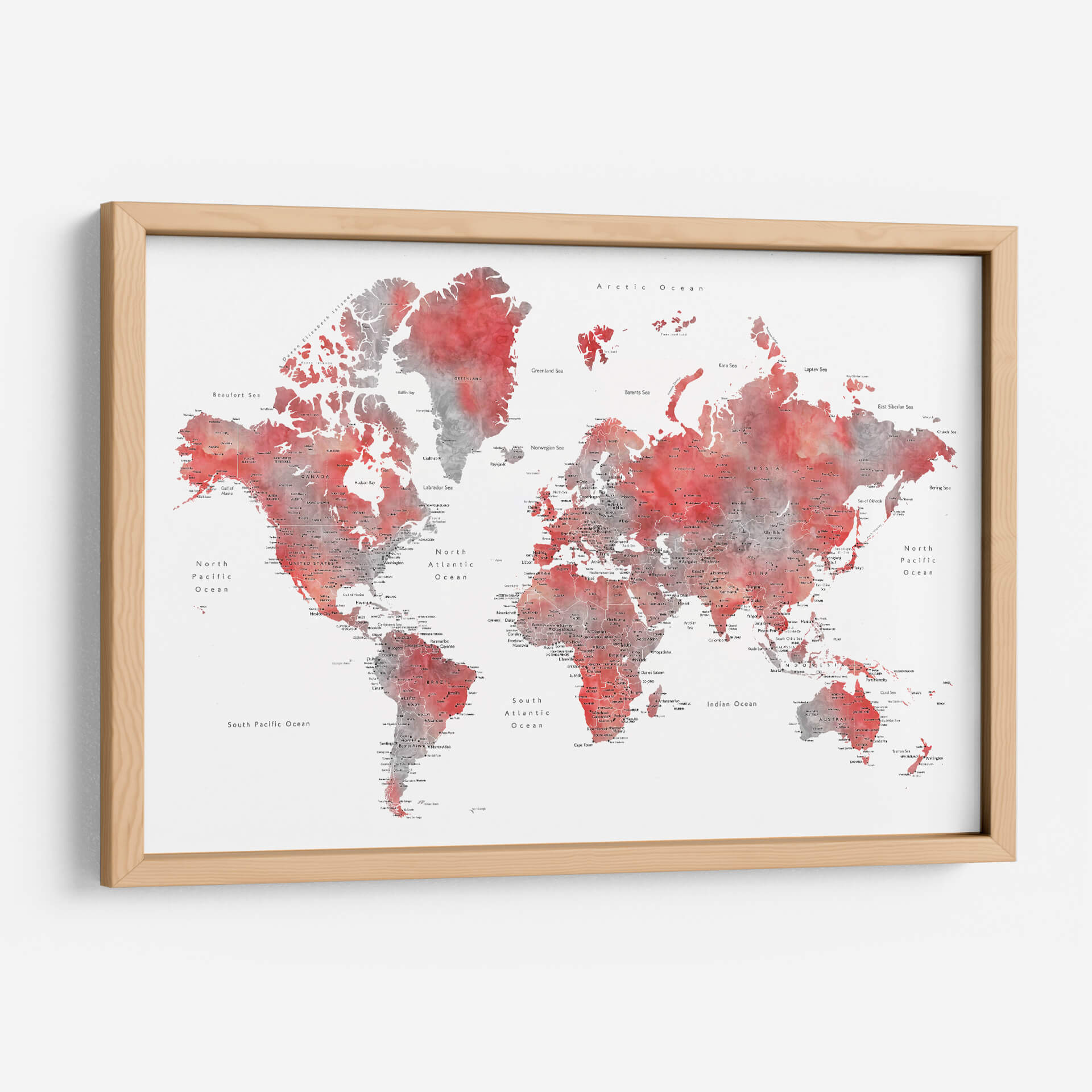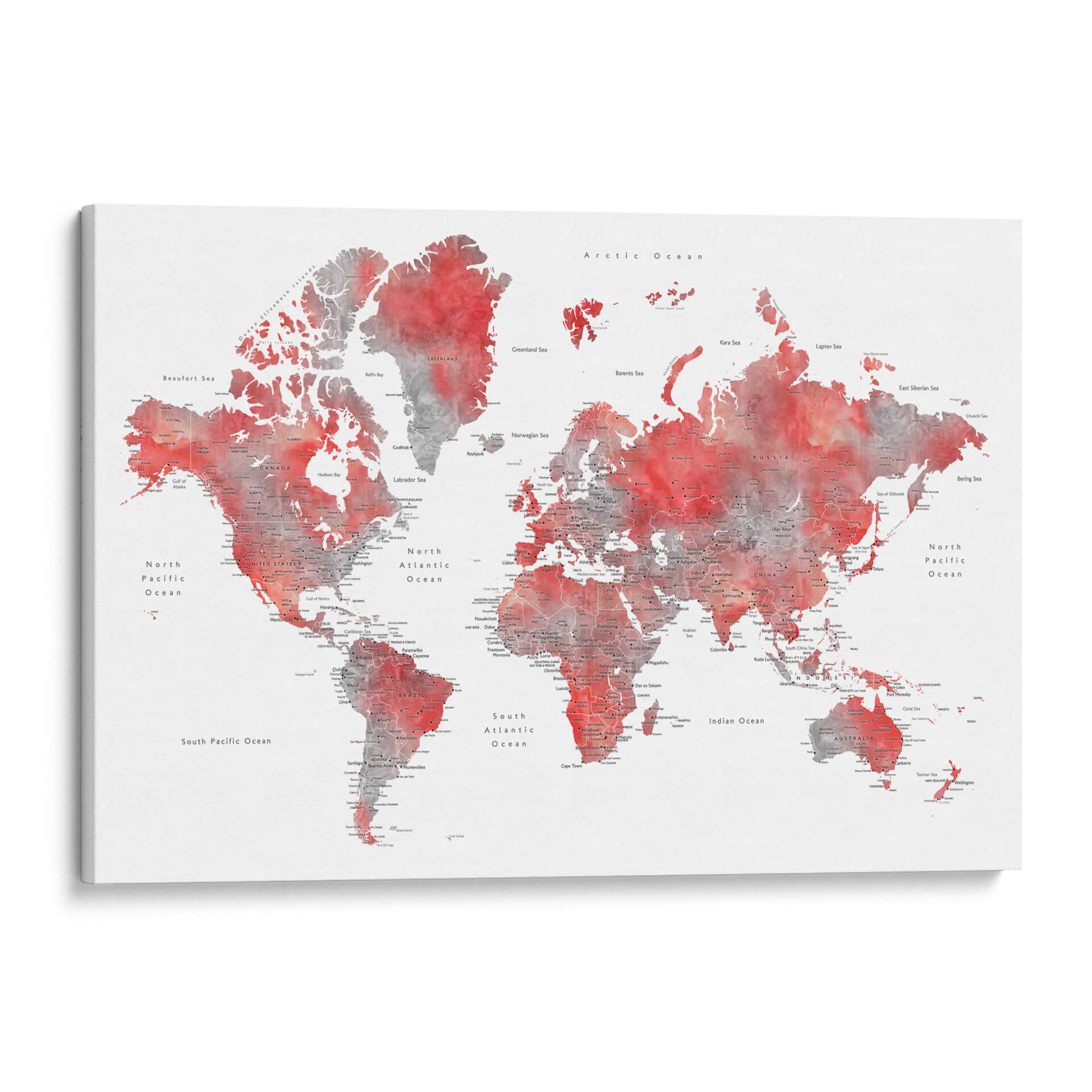 Mapa mundial rojo con ciudades Lyssah - Rosana Laiz Blursbyai
