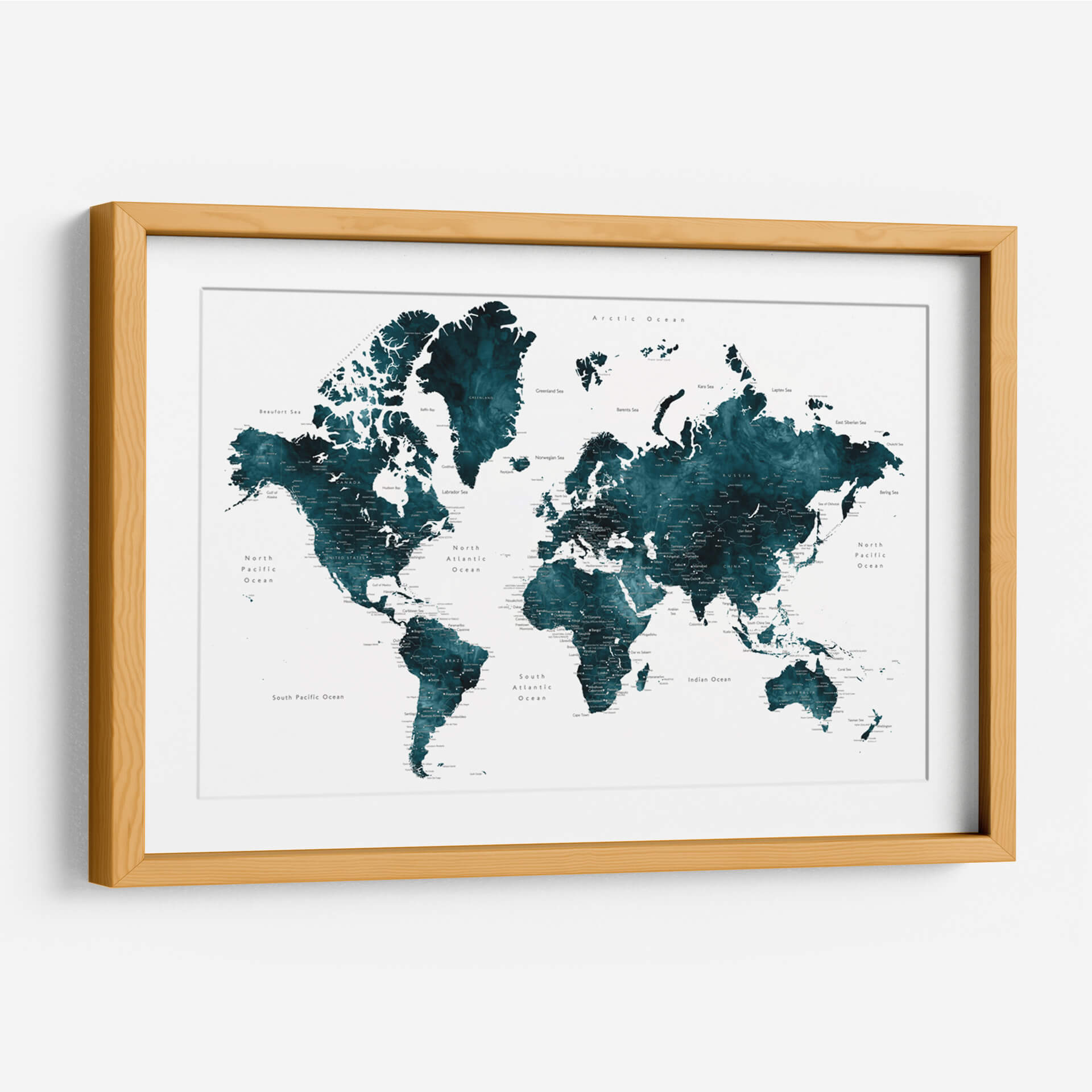 Embárcate en un viaje visual por el mundo con este cautivador cuadro decorativo de mapa mundial en tonos verde azulado oscuro. La obra, titulada 'Mapa mundial verde azulado oscuro con ciudades Makani' por Rosana Laiz Blursbyai, fusiona la geografía con un arte moderno y estilizado. La paleta de colores profundos y enigmáticos evoca una sensación de sofisticación y misterio, perfecta para añadir un toque de elegancia a cualquier espacio. Las sutiles texturas y la representación detallada de las ciudades invitan a la contemplación y al descubrimiento, haciendo de este mapa una pieza funcional y decorativa. Su diseño contemporáneo y su atmósfera serena lo convierten en una adición ideal para oficinas, salas de estar o estudios, inspirando conversaciones y fomentando un sentido de conexión global. Este cuadro decorativo no solo embellece tu pared, sino que también despierta la curiosidad y el deseo de explorar, aportando profundidad y carácter a tu decoración.