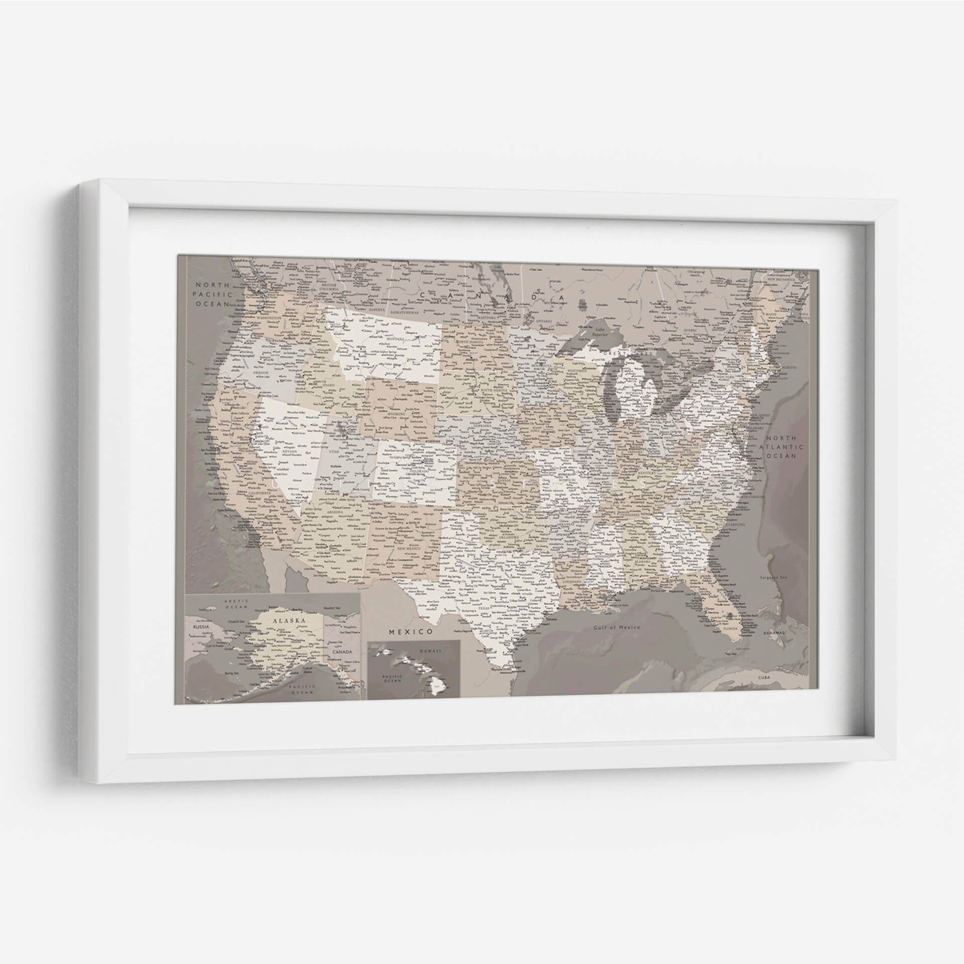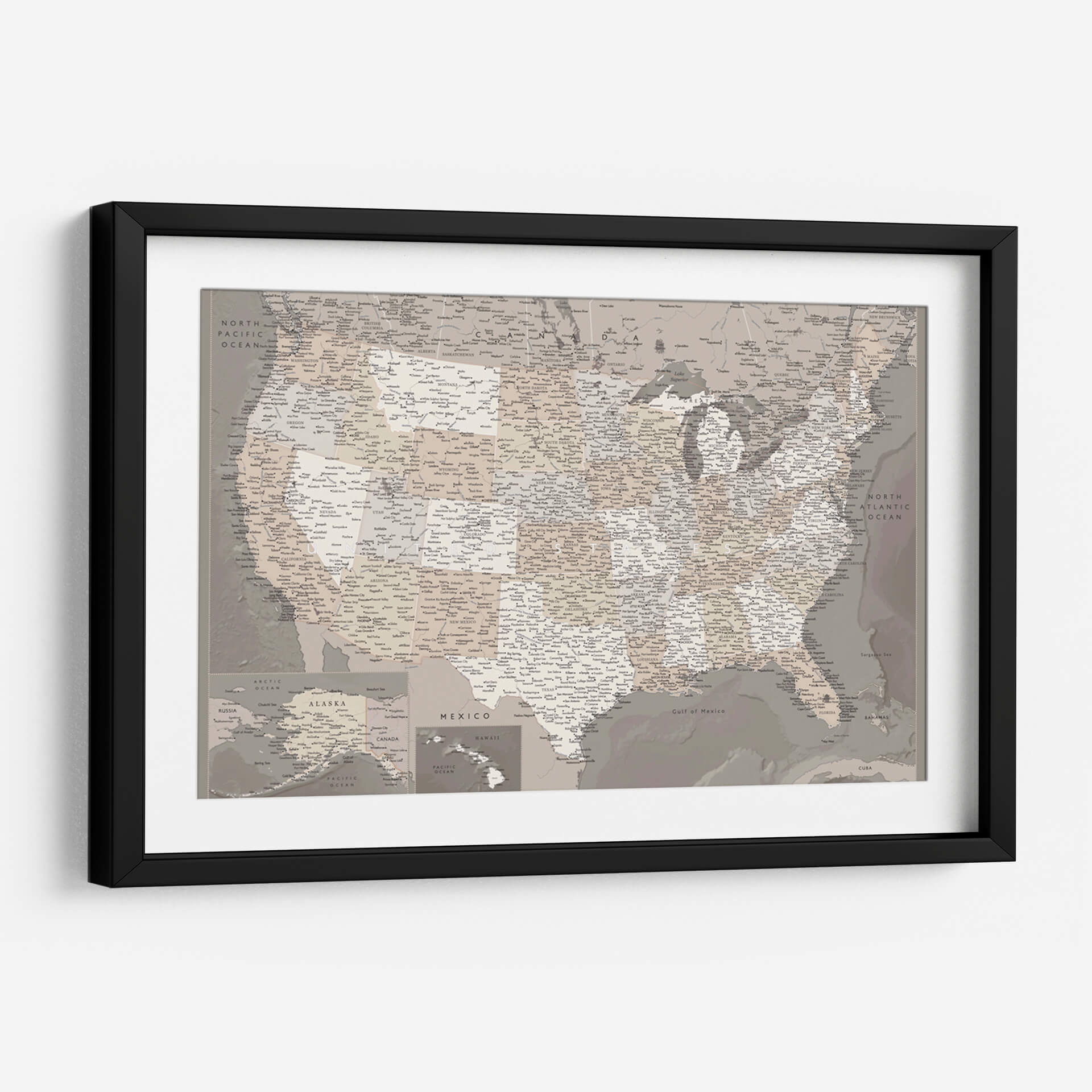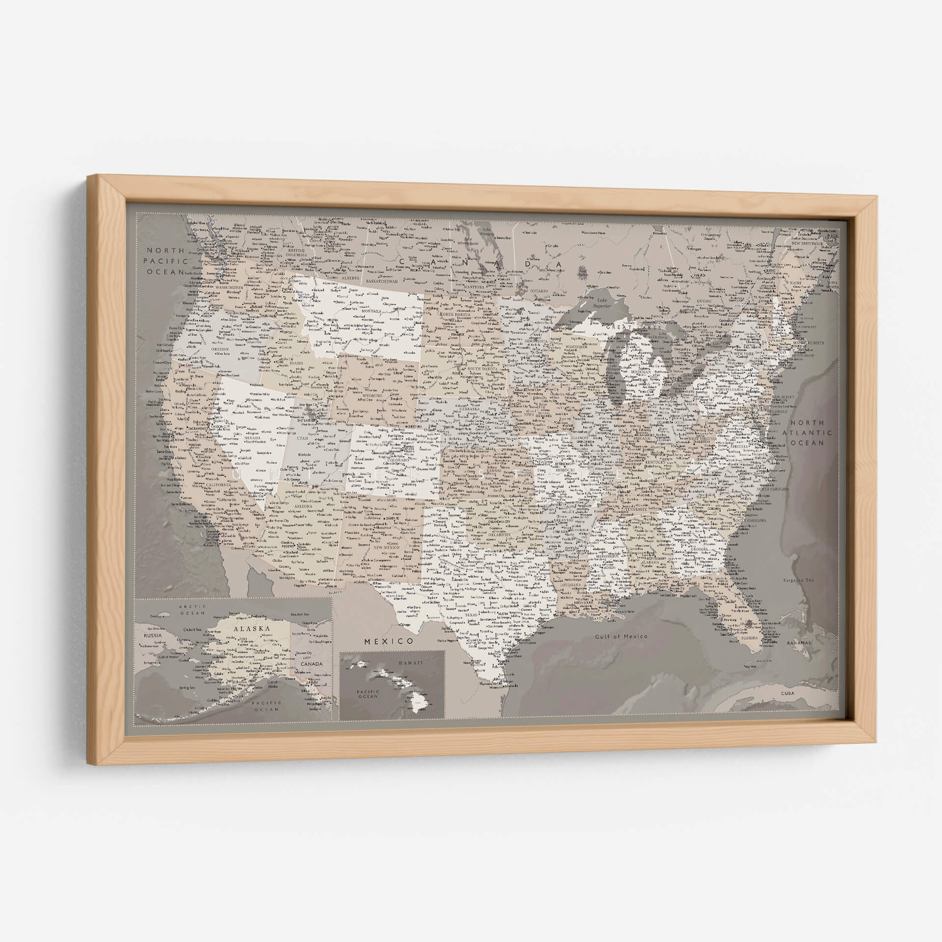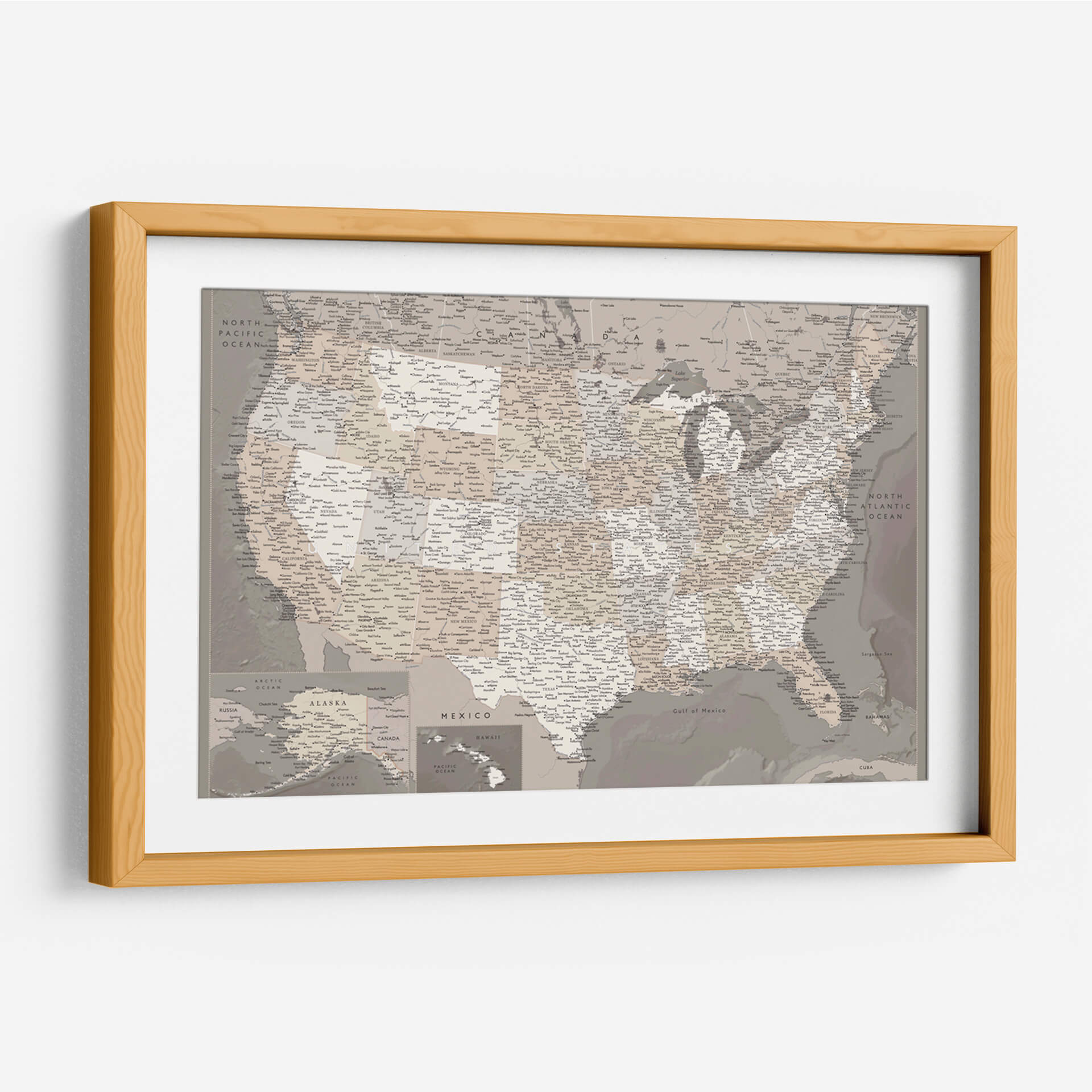 Embárcate en un viaje visual por el corazón de América con este detallado mapa de los Estados Unidos, una obra de arte que combina precisión geográfica y una estética cautivadora. Cada estado, ciudad y carretera está meticulosamente representado, invitando a la exploración y al descubrimiento. La paleta de colores neutros y terrosos, con sutiles acentos en tonos grises y beige, confiere a esta pieza una elegancia atemporal, permitiendo que se integre armoniosamente en cualquier estilo decorativo, desde el moderno hasta el clásico. La composición, rica en detalles, evoca una sensación de orden y conocimiento, ideal para un estudio, oficina o sala de estar donde la inspiración y la planificación son clave. Más que un simple mapa, es una invitación a soñar con aventuras, recordar viajes o simplemente apreciar la vasta belleza de la nación. Añade un toque de sofisticación y cultura a tu hogar u oficina con este cuadro decorativo que es tanto educativo como estéticamente placentero, sirviendo como un punto de partida para conversaciones y una fuente constante de inspiración geográfica. Perfecto para los amantes de la geografía, los viajeros empedernidos y aquellos que buscan una decoración de pared única y significativa.