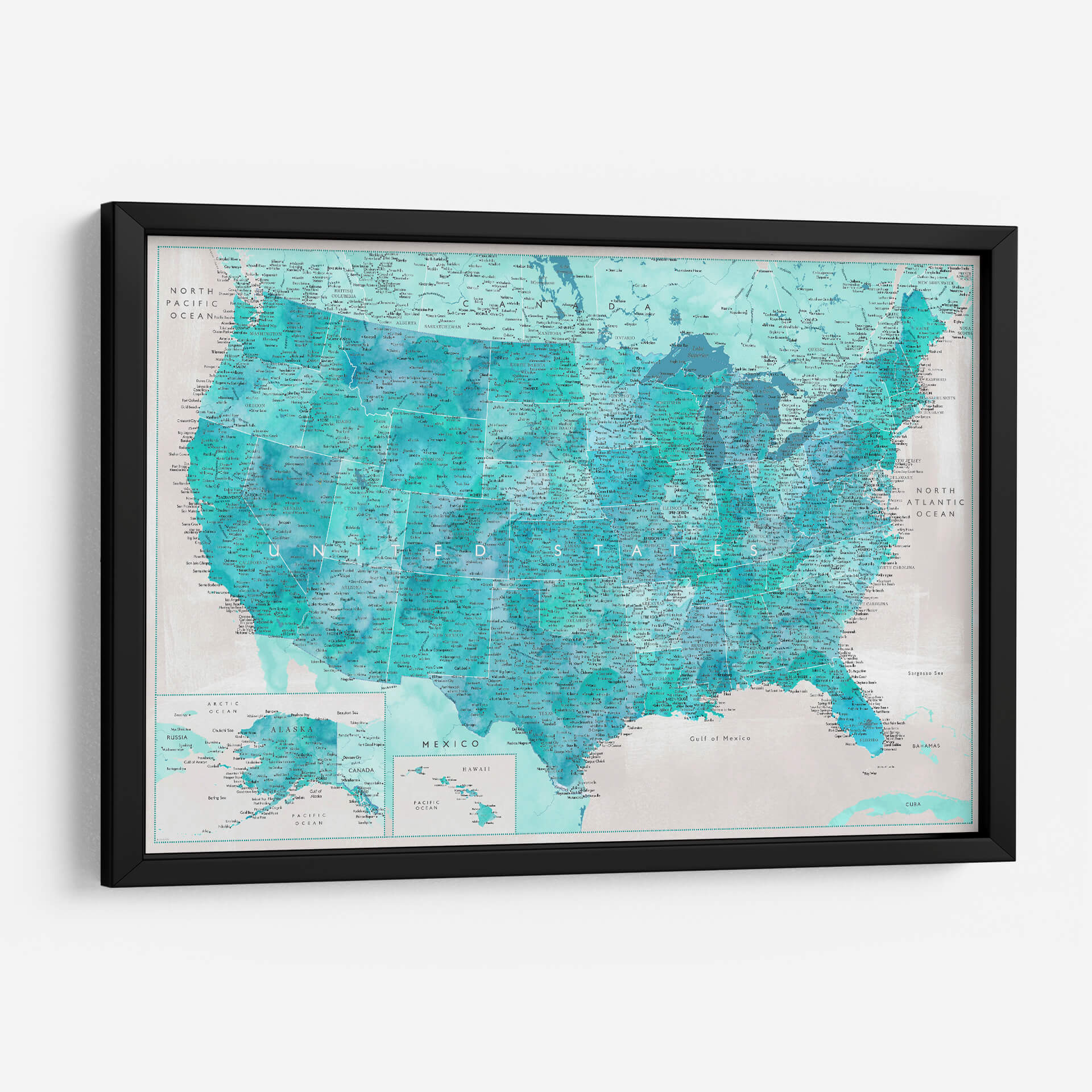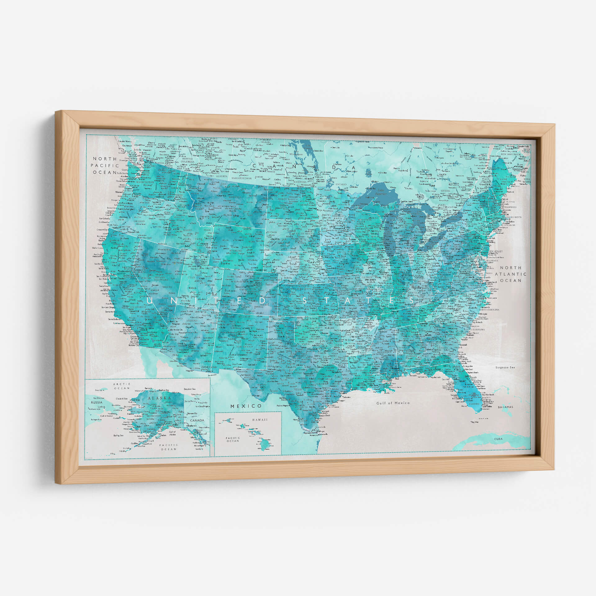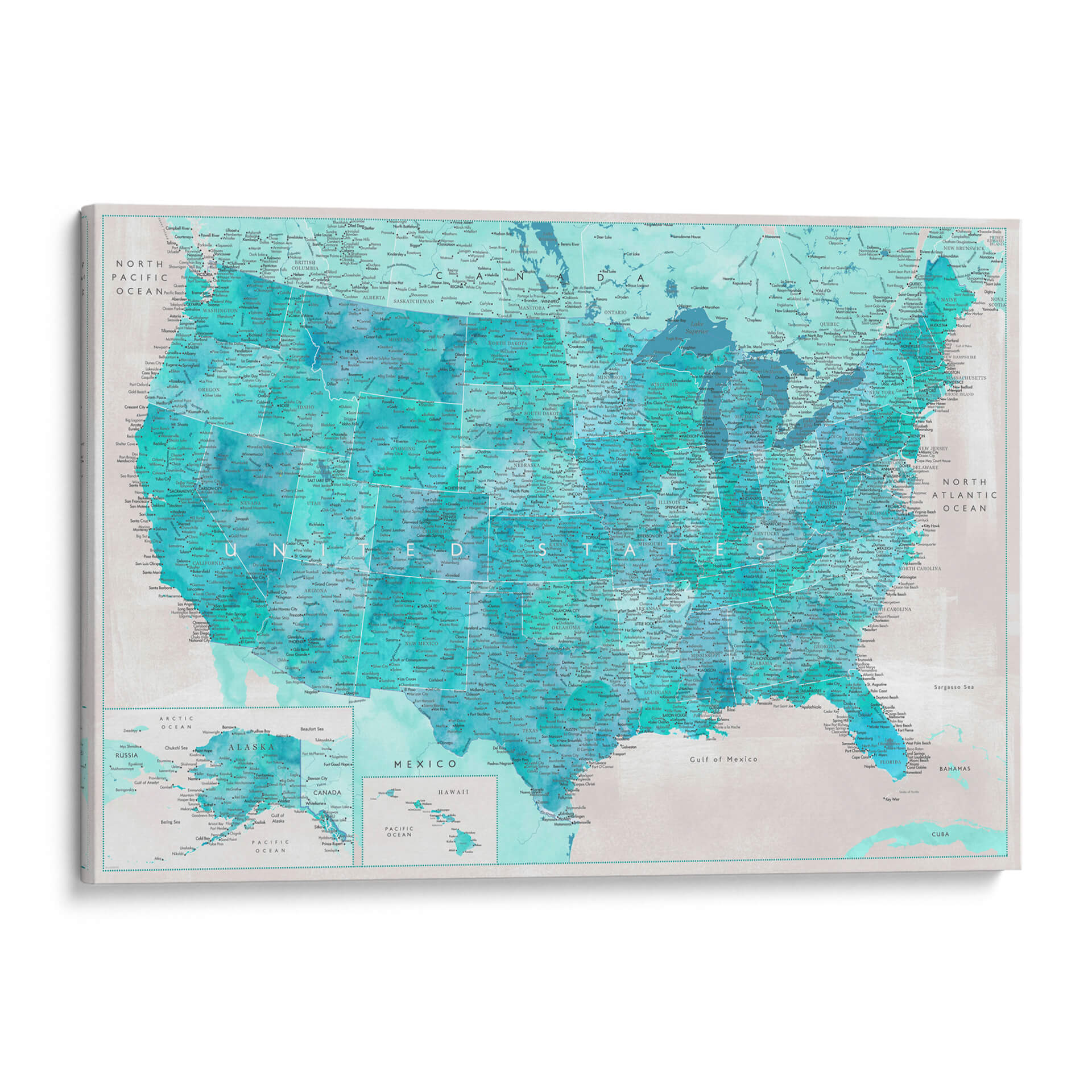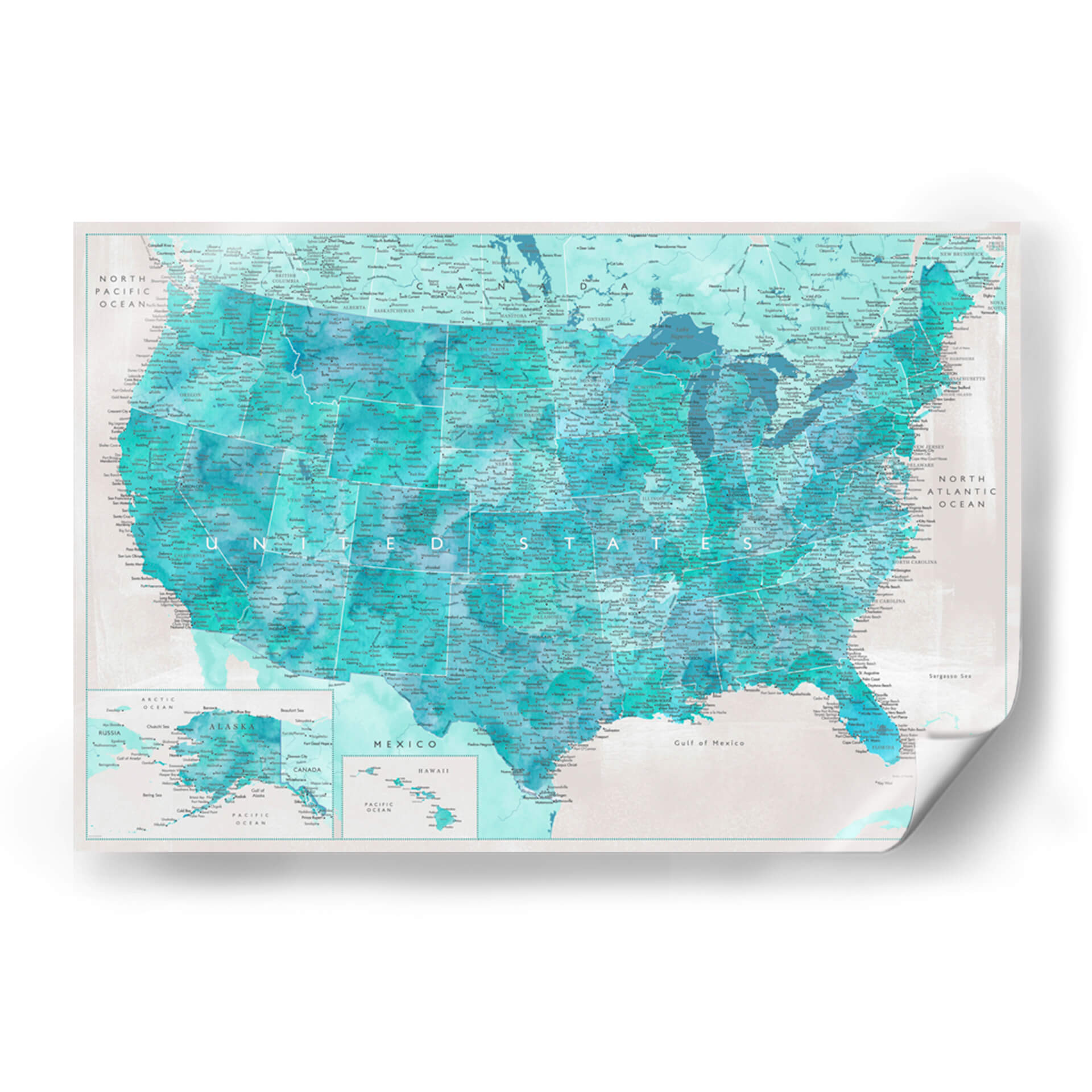 Transforma tu espacio con este detallado cuadro decorativo del mapa de los Estados Unidos, una obra de arte que combina la geografía con un estilo artístico cautivador. La artista Rosana Laiz Blursbyai presenta una interpretación única de la cartografía, utilizando una paleta de tonos turquesa y azules que evocan la serenidad del océano y la vastedad del cielo. Cada estado, ciudad y río está representado con una precisión que invita a la exploración visual, mientras que las texturas acuosas añaden una dimensión moderna y artística. Este mapa detallado de EE. UU. es más que una simple representación geográfica; es una pieza de conversación que estimula la curiosidad y el sentido de la aventura. Su diseño contemporáneo y su paleta de colores versátil lo convierten en la elección perfecta para una sala de estar, una oficina o un estudio, aportando un toque de sofisticación y conocimiento. Imagina este cuadro decorativo como el punto focal de tu pared, inspirando planes de viaje o simplemente admirando la belleza intrínseca de la tierra. Una adición excepcional para amantes de la geografía, el arte moderno y la decoración de interiores con carácter.