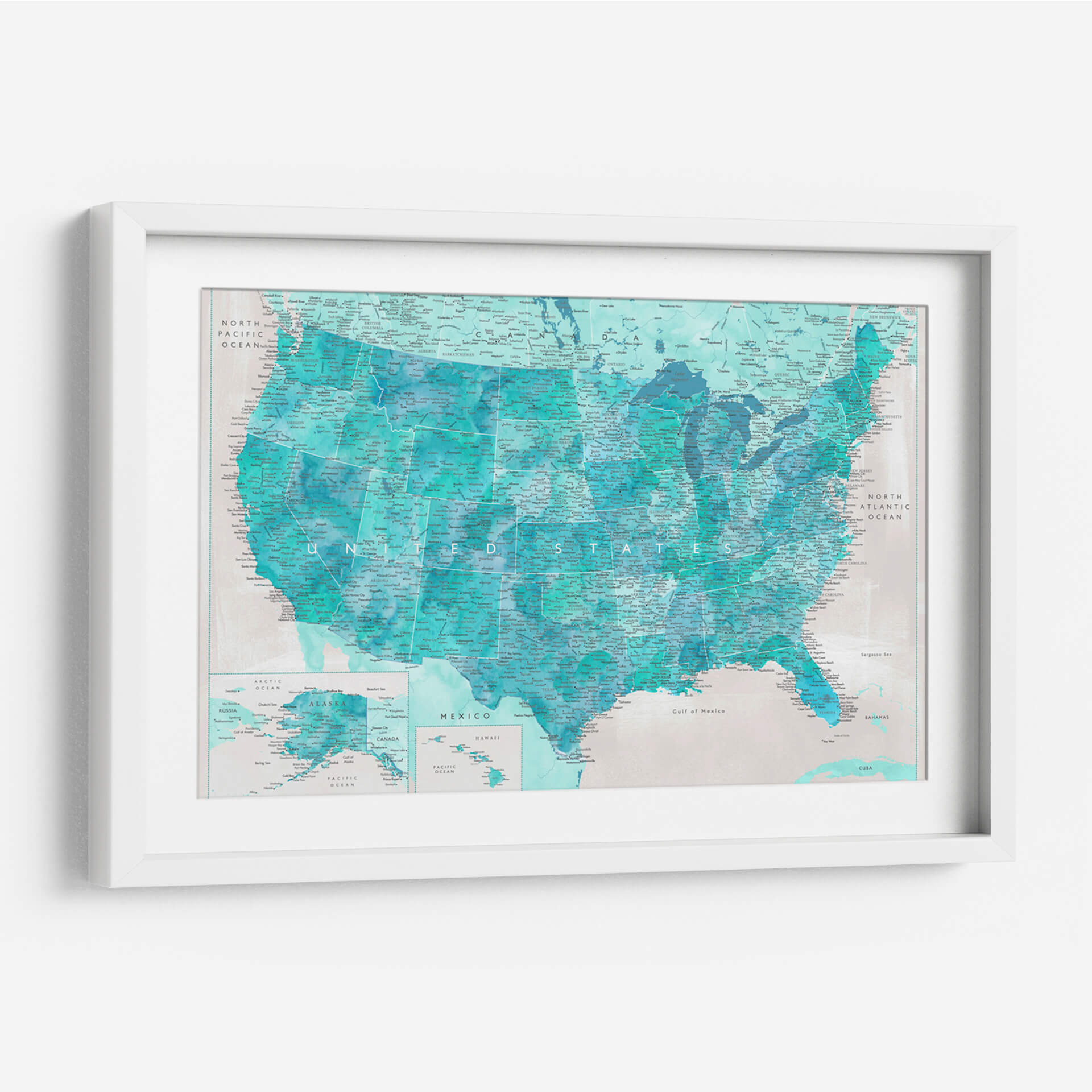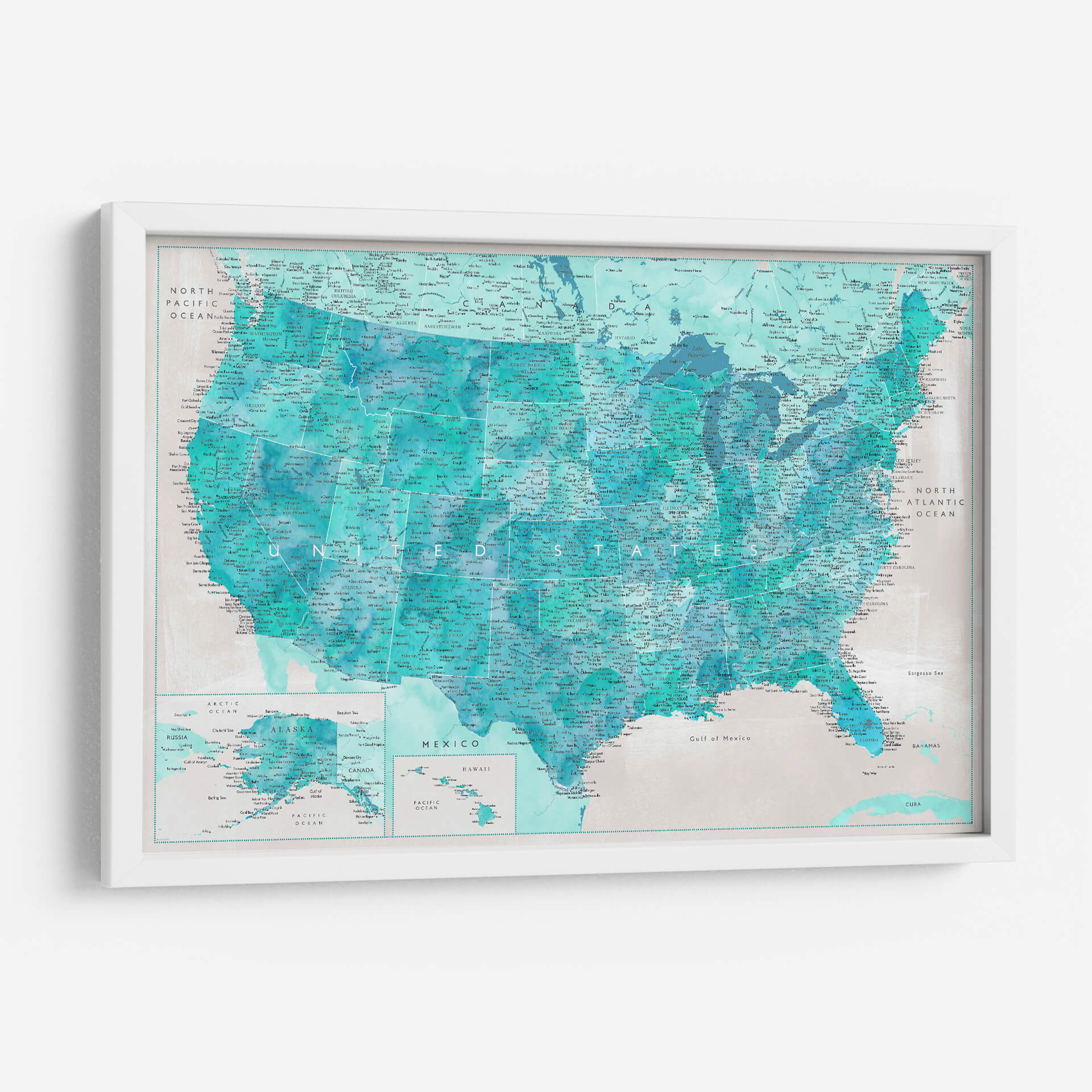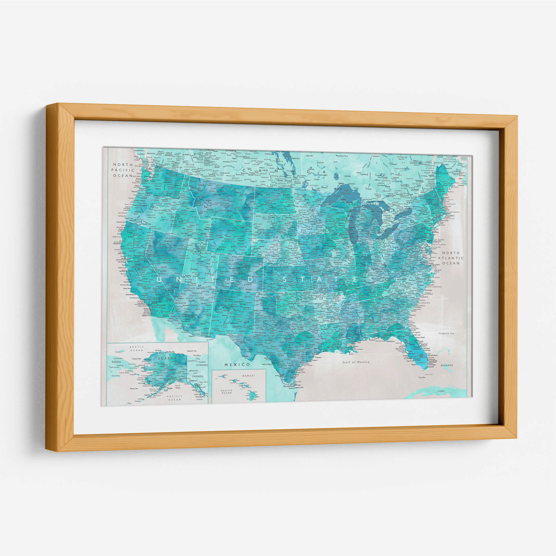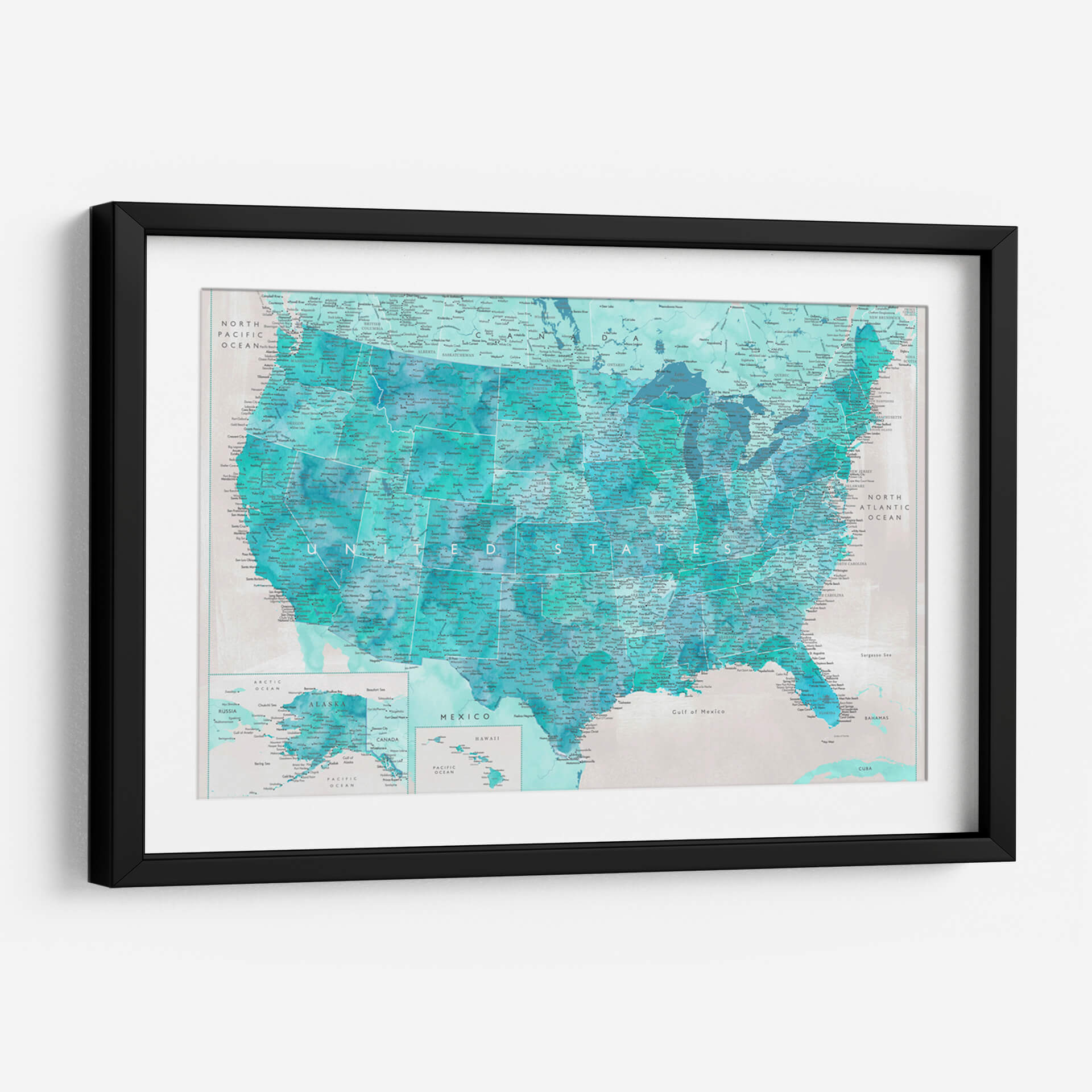 Transforma tu espacio con este detallado cuadro decorativo del mapa de los Estados Unidos, una obra de arte que combina la geografía con un estilo artístico cautivador. La artista Rosana Laiz Blursbyai presenta una interpretación única de la cartografía, utilizando una paleta de tonos turquesa y azules que evocan la serenidad del océano y la vastedad del cielo. Cada estado, ciudad y río está representado con una precisión que invita a la exploración visual, mientras que las texturas acuosas añaden una dimensión moderna y artística. Este mapa detallado de EE. UU. es más que una simple representación geográfica; es una pieza de conversación que estimula la curiosidad y el sentido de la aventura. Su diseño contemporáneo y su paleta de colores versátil lo convierten en la elección perfecta para una sala de estar, una oficina o un estudio, aportando un toque de sofisticación y conocimiento. Imagina este cuadro decorativo como el punto focal de tu pared, inspirando planes de viaje o simplemente admirando la belleza intrínseca de la tierra. Una adición excepcional para amantes de la geografía, el arte moderno y la decoración de interiores con carácter.