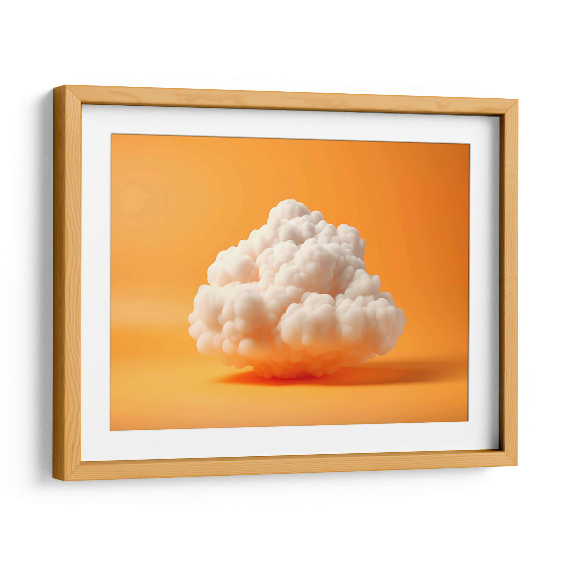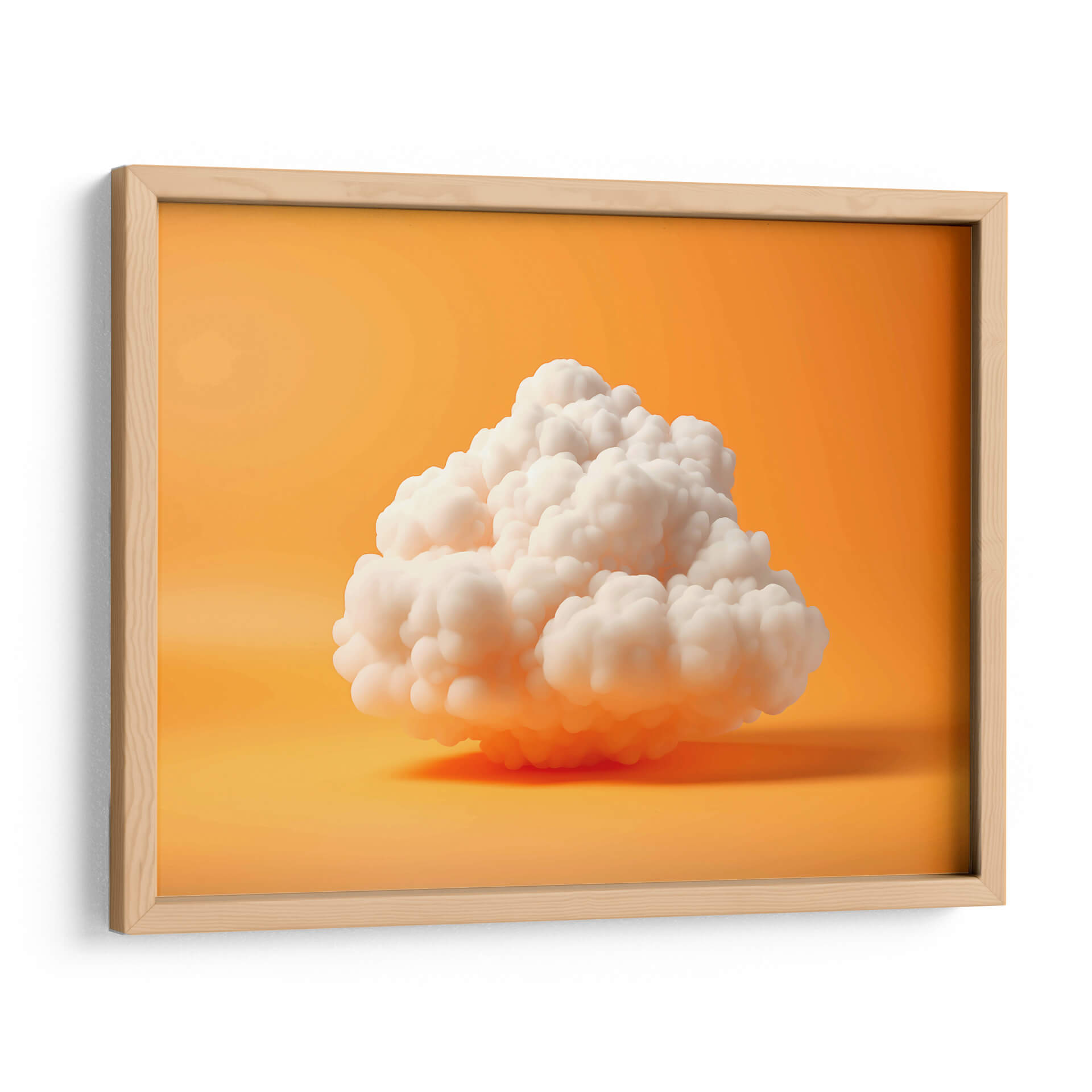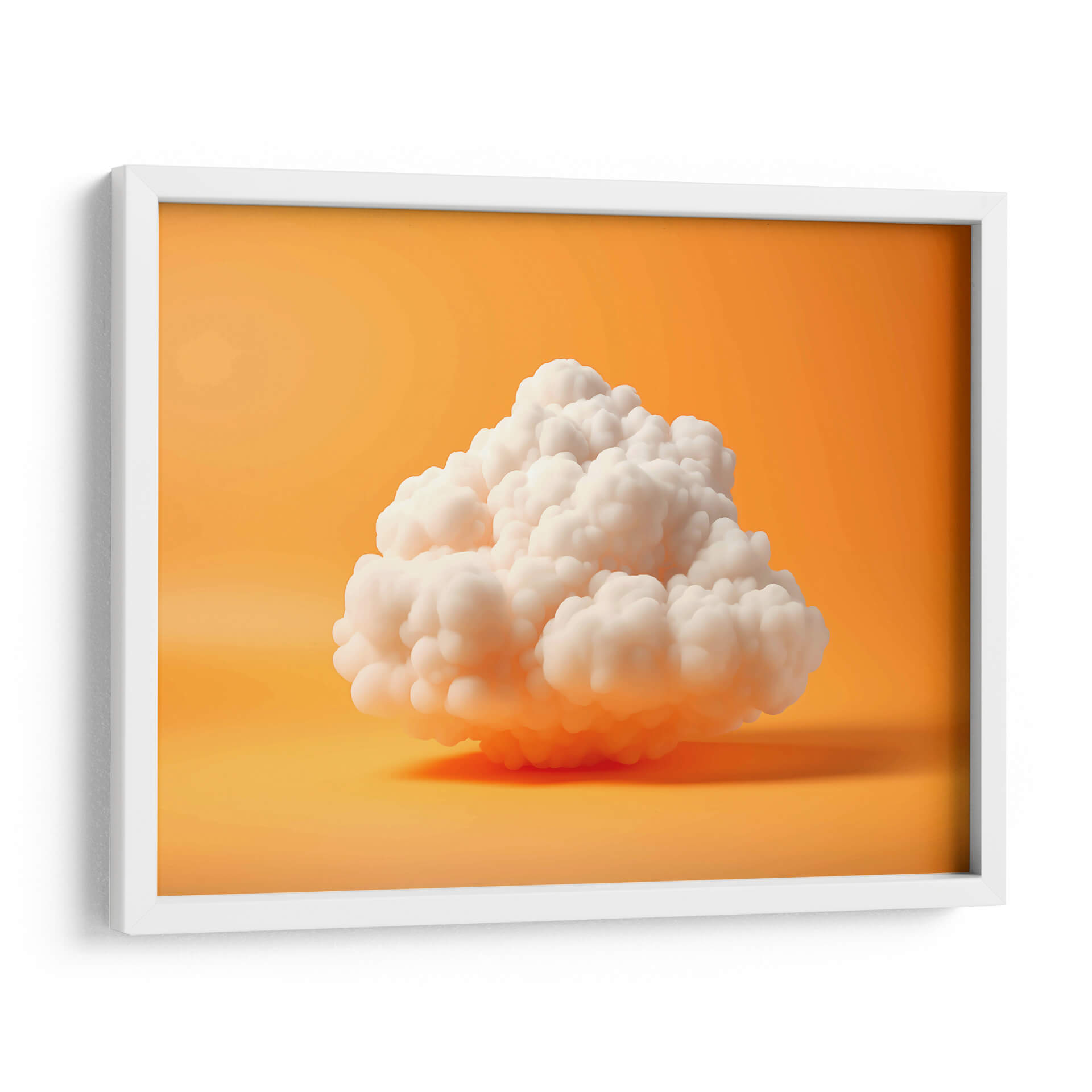 Sumérgete en la serenidad etérea de "Mi Nube - 1", una obra de arte digital que captura la delicadeza y la ligereza de una nube flotando en un cielo vibrante. Los tonos cálidos y envolventes del fondo naranja crean un contraste cautivador con la pureza blanca de la nube central, generando una atmósfera de paz y tranquilidad. La composición minimalista y la textura suave de la nube invitan a la contemplación, aportando un toque de ensueño y calma a cualquier espacio. Este cuadro decorativo es ideal para quienes buscan infundir serenidad en su hogar u oficina, funcionando a la perfección en ambientes modernos, minimalistas o escandinavos. Su diseño simple pero impactante se convierte en un punto focal sutil, capaz de transformar una habitación en un oasis de paz. "Mi Nube - 1" es más que una decoración; es una invitación a la introspección y a encontrar la belleza en la simplicidad, perfecta para añadir un toque de ligereza y optimismo a tu día a día y a tus espacios más personales. Descubre la magia de tener una nube de serenidad en tu pared.