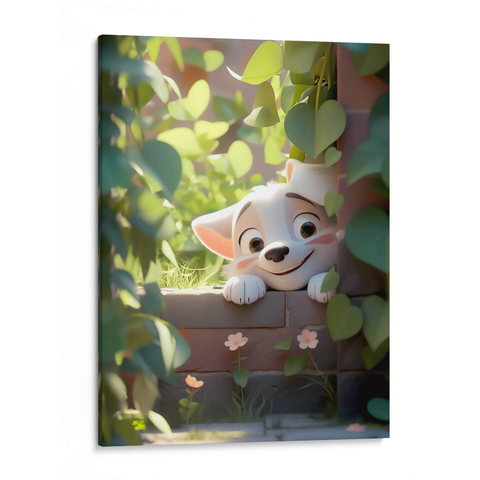 Descubre la ternura y la alegría que 'Mi Perro Amigo - 14' de DeLaVegaGaming trae a tu hogar. Este encantador cuadro decorativo captura un momento juguetón y adorable, con un tierno cachorro asomándose traviesamente entre la vegetación exuberante y una pared de ladrillos. La paleta de colores, dominada por verdes frescos y tonos cálidos de la piel del perro, crea una atmósfera de inocencia y felicidad. Las grandes y expresivas ojos del perro invitan a la conexión emocional, mientras que la suave luz que ilumina la escena añade una sensación de calidez y paz. Su estilo, una mezcla de ilustración digital con un toque de realismo encantador, lo hace perfecto para espacios que buscan un toque de personalidad y dulzura. Ideal para habitaciones infantiles, salas de estar modernas o cualquier rincón que necesite una dosis de optimismo y compañía. Este cuadro no es solo una pieza decorativa, es una ventana a la alegría pura y la lealtad incondicional de nuestros amigos peludos, convirtiendo cualquier pared en un punto de encuentro para sonrisas y buenos momentos. Añade este toque de encanto a tu decoración y deja que la personalidad única de este perrito ilumine tu día a día.