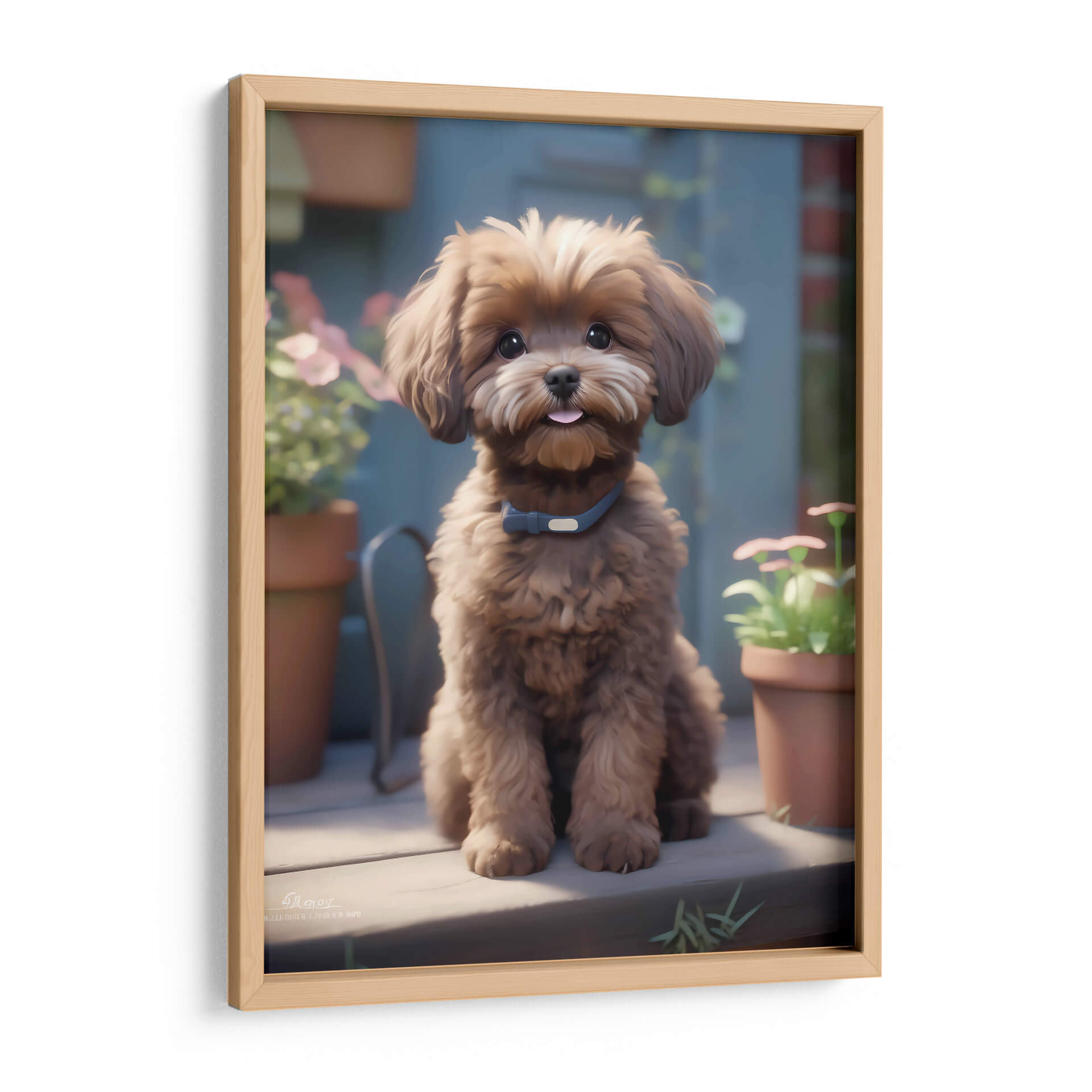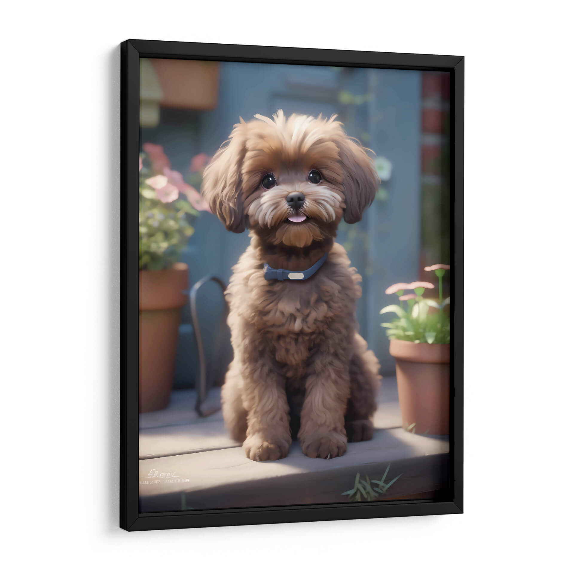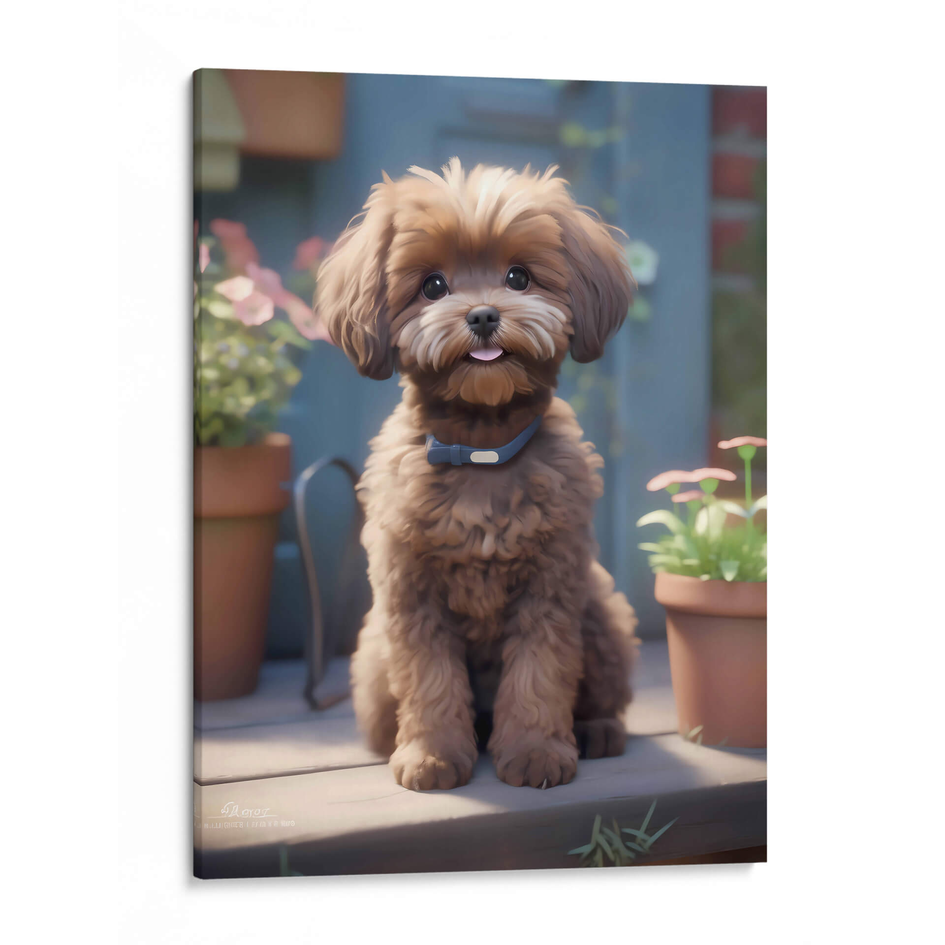 Captura la alegría y la ternura de la amistad con este adorable cuadro decorativo "Mi Perro Amigo - 24". La obra presenta un tierno perrito de pelaje castaño, sentado con una expresión juguetona y su pequeña lengua asomando, rodeado de un entorno botánico que evoca un jardín soleado. Los colores cálidos del pelaje del perro contrastan sutilmente con los tonos verdes y rosados de las flores en macetas, creando una atmósfera acogedora y llena de vida. La técnica digital utilizada resalta la textura del pelo y la dulzura de sus grandes ojos, invitando a una conexión emocional inmediata. Este cuadro es ideal para añadir un toque de calidez y personalidad a cualquier espacio, desde una sala de estar o dormitorio hasta una oficina o habitación infantil. Su estilo realista pero con un toque de fantasía lo convierte en un punto focal encantador que transmitirá felicidad y compañerismo. Perfecto para amantes de los perros y para quienes buscan una pieza de arte que alegre el alma y complemente una decoración hogareña o moderna.
