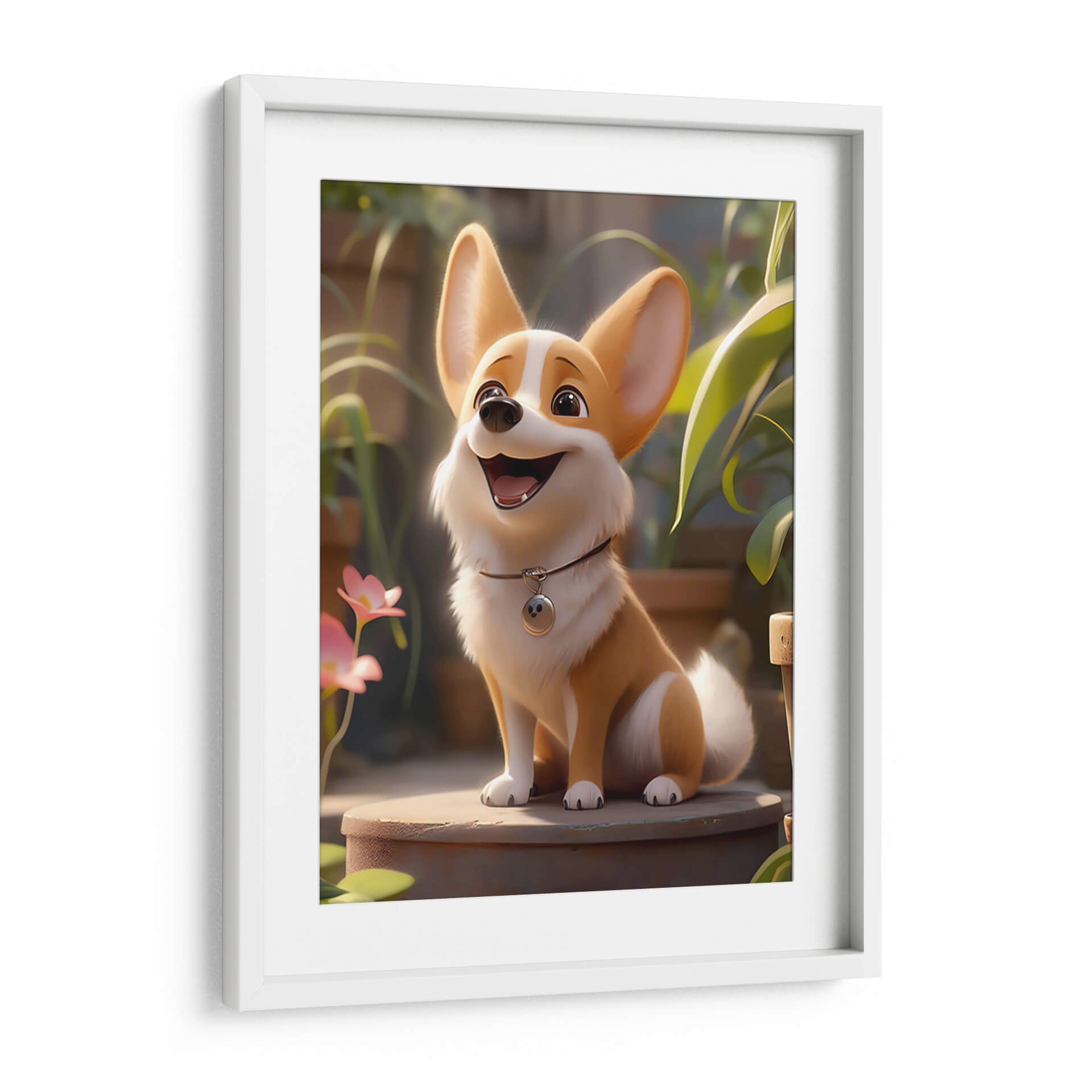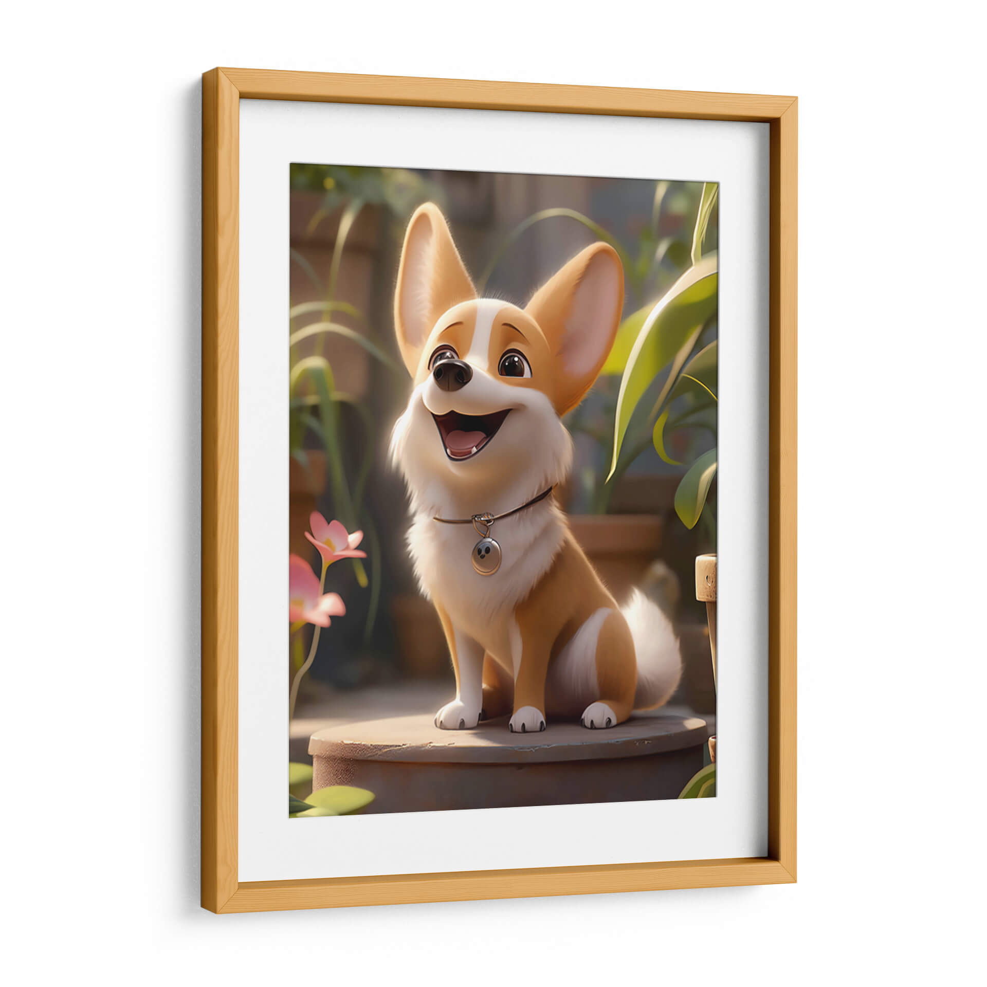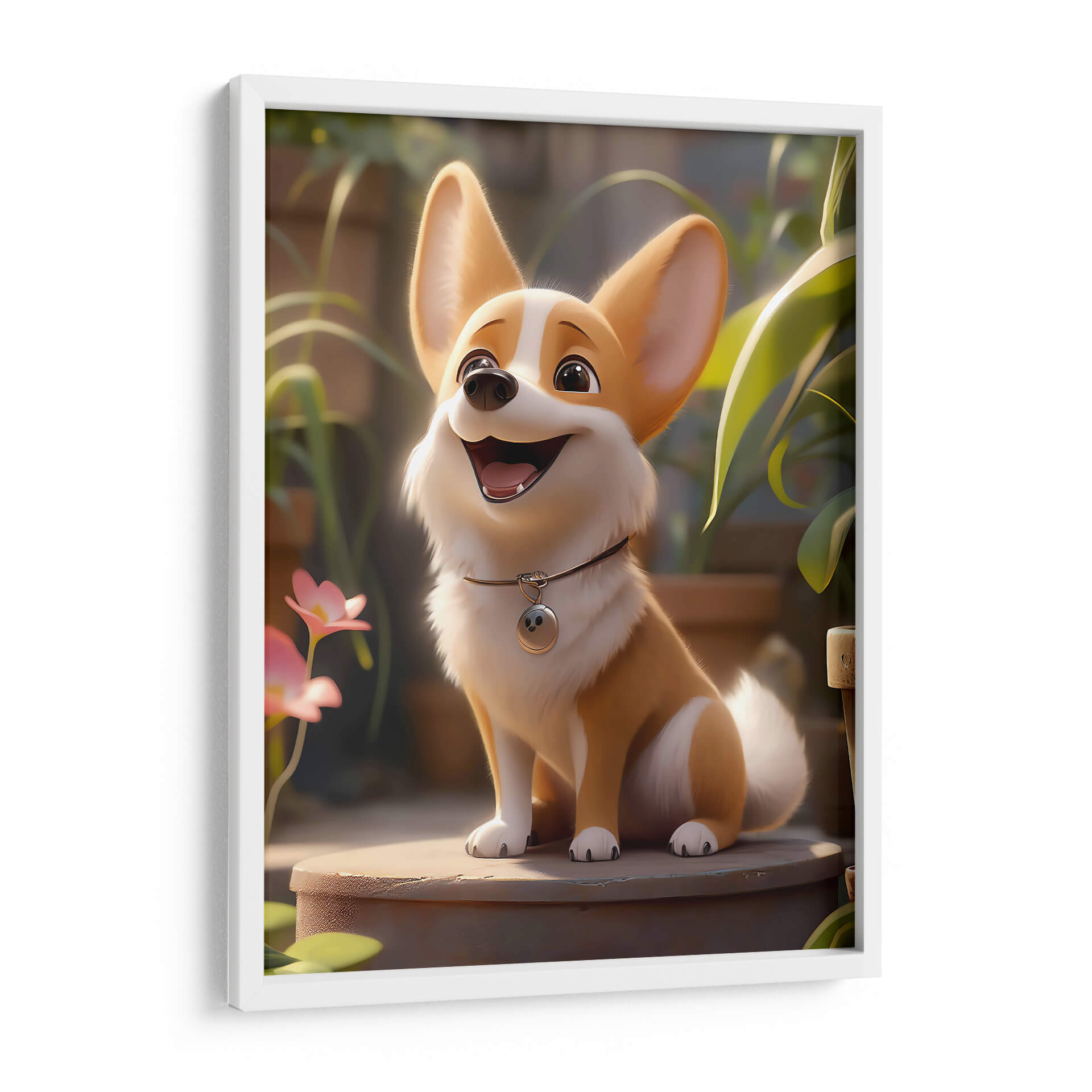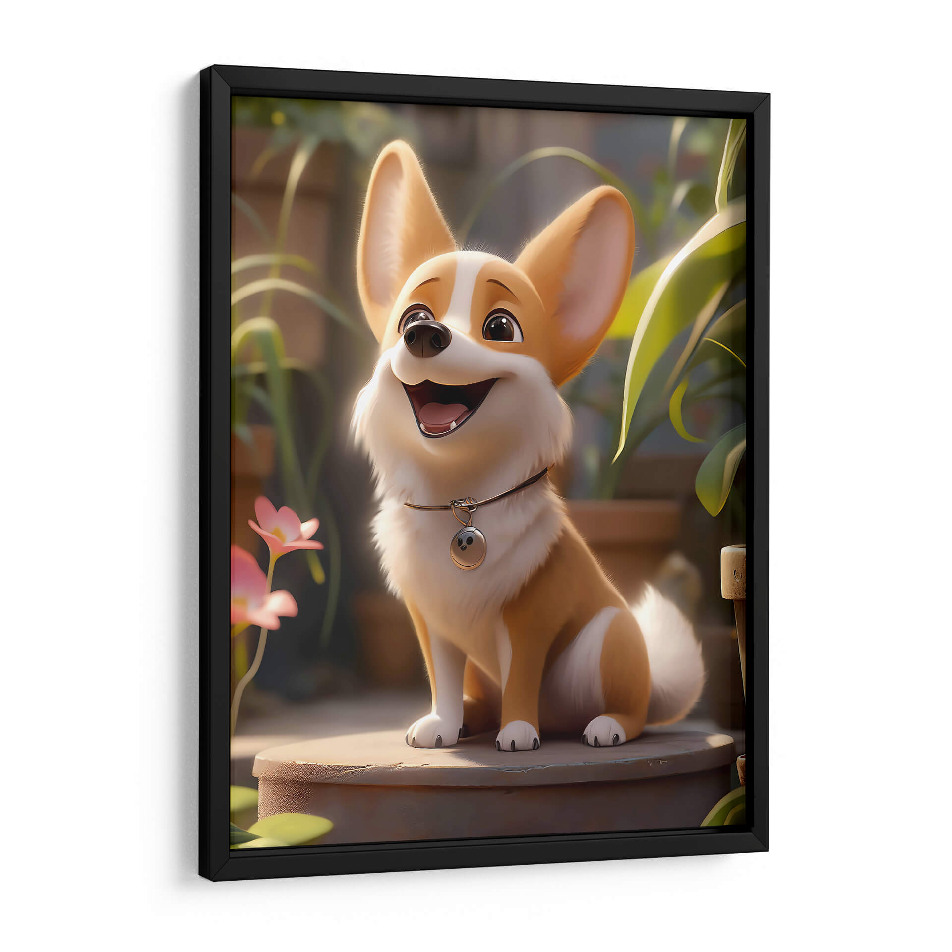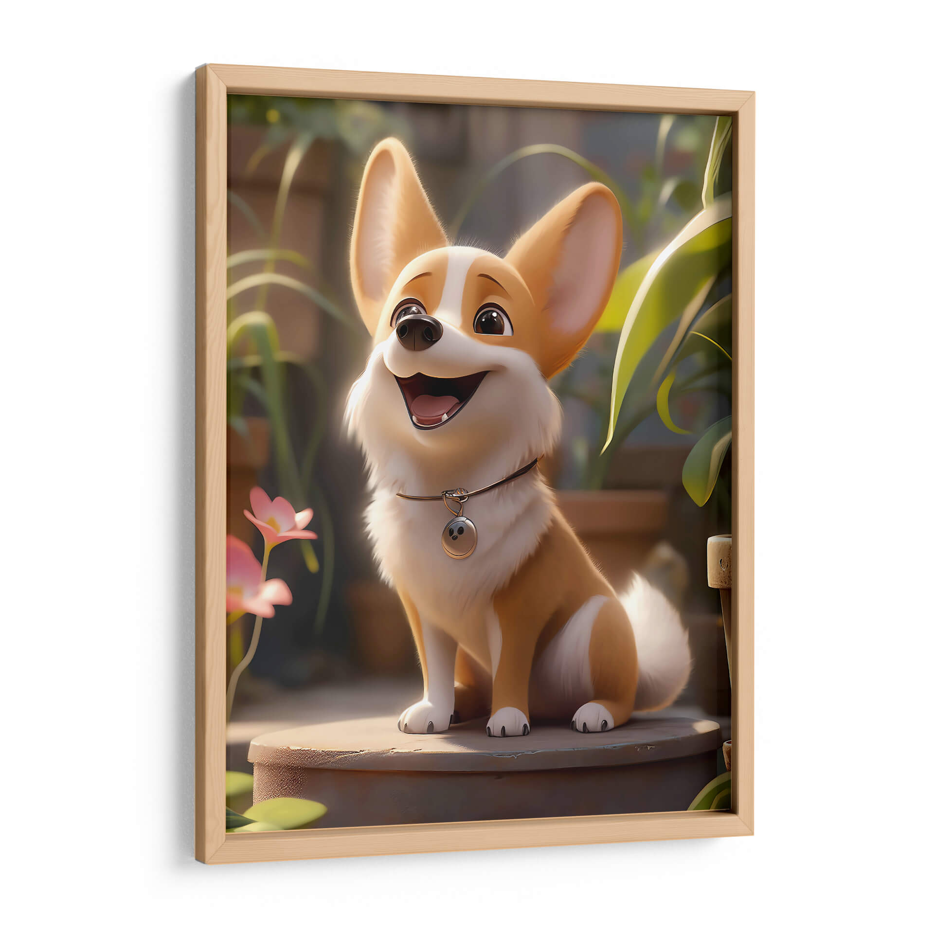 Este encantador cuadro decorativo, titulado "Mi Perro Amigo - 6", captura la alegría pura y la lealtad incondicional de un corgi con un estilo de ilustración digital vibrante y amigable. La obra presenta a un adorable corgi sentado en un entorno exterior, rodeado de vegetación exuberante y flores delicadas, con una expresión de felicidad radiante y orejas grandes y atentas. La paleta de colores cálidos, dominada por los tonos anaranjados y cremas del pelaje del perro, contrasta armoniosamente con los verdes suaves del fondo y los toques rosados de las flores, creando una atmósfera acogedora y optimista. El estilo artístico, con sus líneas suaves y su acabado digital pulido, aporta un toque moderno y juguetón a la pieza, ideal para quienes buscan infundir vitalidad y calidez en sus espacios. Este cuadro es perfecto para amantes de los perros, especialmente de la raza corgi, y para aquellos que desean añadir un elemento de ternura y alegría a su decoración. Colócalo en una sala de estar, una habitación infantil o incluso una oficina para inyectar una dosis de felicidad y un recordatorio constante de la amistad. Su diseño optimista lo convierte en un punto focal encantador que sin duda provocará sonrisas.