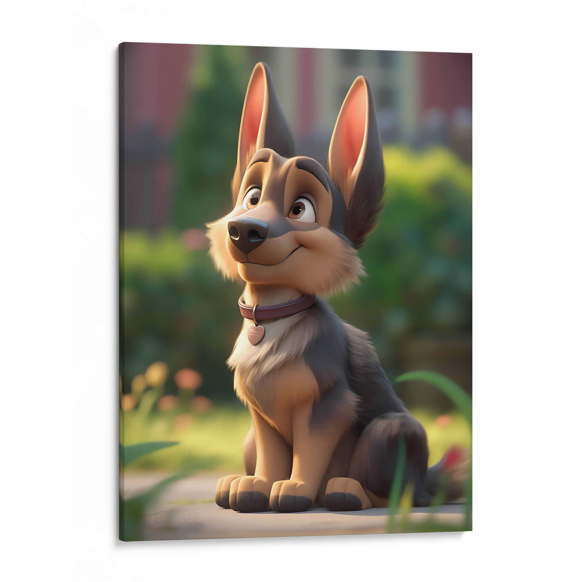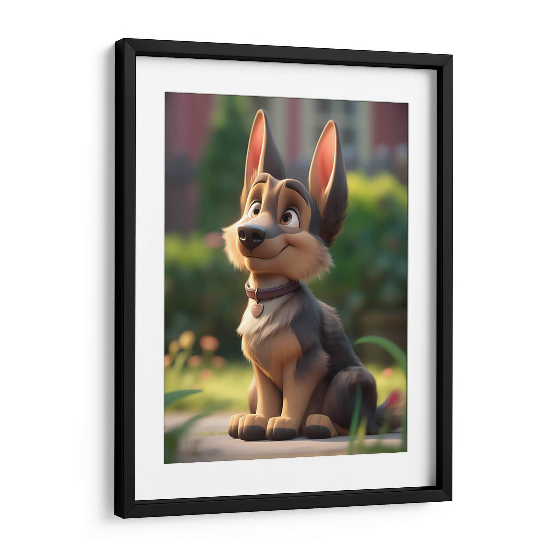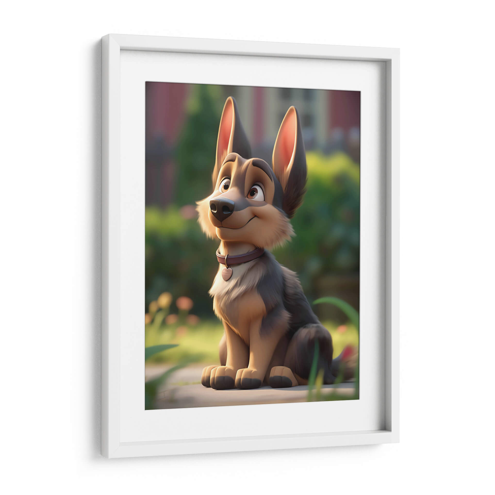 Este encantador cuadro decorativo, titulado "Mi Perro Amigo - 9" por DeLaVegaGaming, captura la esencia juguetona y leal de un compañero canino. La obra presenta un diseño estilizado y animado de un perro de raza pastor alemán sentado pacientemente en un entorno natural, con un suave enfoque en el fondo que resalta al protagonista. Los colores predominantes son tonos tierra cálidos y naturales, con acentos de verde exuberante y un toque de color en el collar del perro, que añade un punto de interés visual. El estilo de ilustración digital evoca una sensación de alegría y ternura, perfecta para añadir un toque de calidez a cualquier espacio. La composición, centrada en el amigable animal, invita a la conexión emocional y a la admiración. Ideal para salones, dormitorios o cuartos infantiles, este cuadro decorativo es una pieza única que celebra el amor por las mascotas y el espíritu alegre de la vida. Su estética amigable lo convierte en un regalo perfecto para amantes de los perros y para quienes buscan una decoración con personalidad y sentimiento positivo.