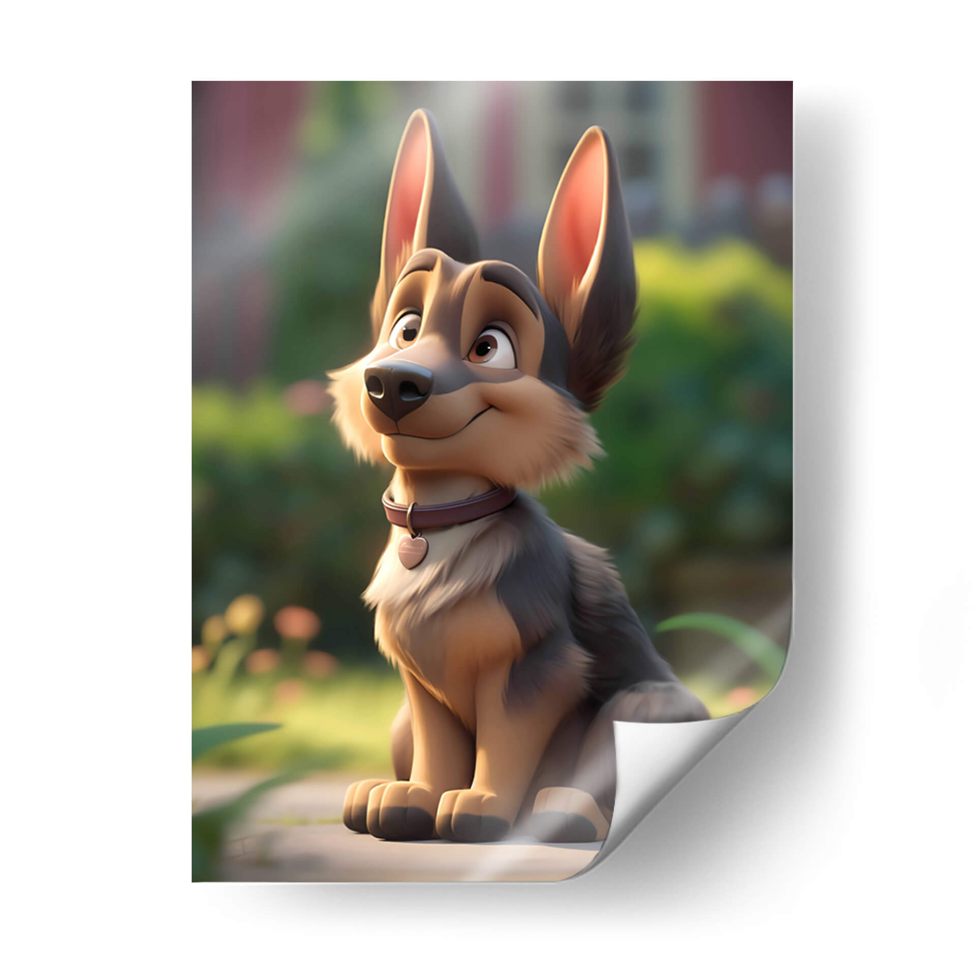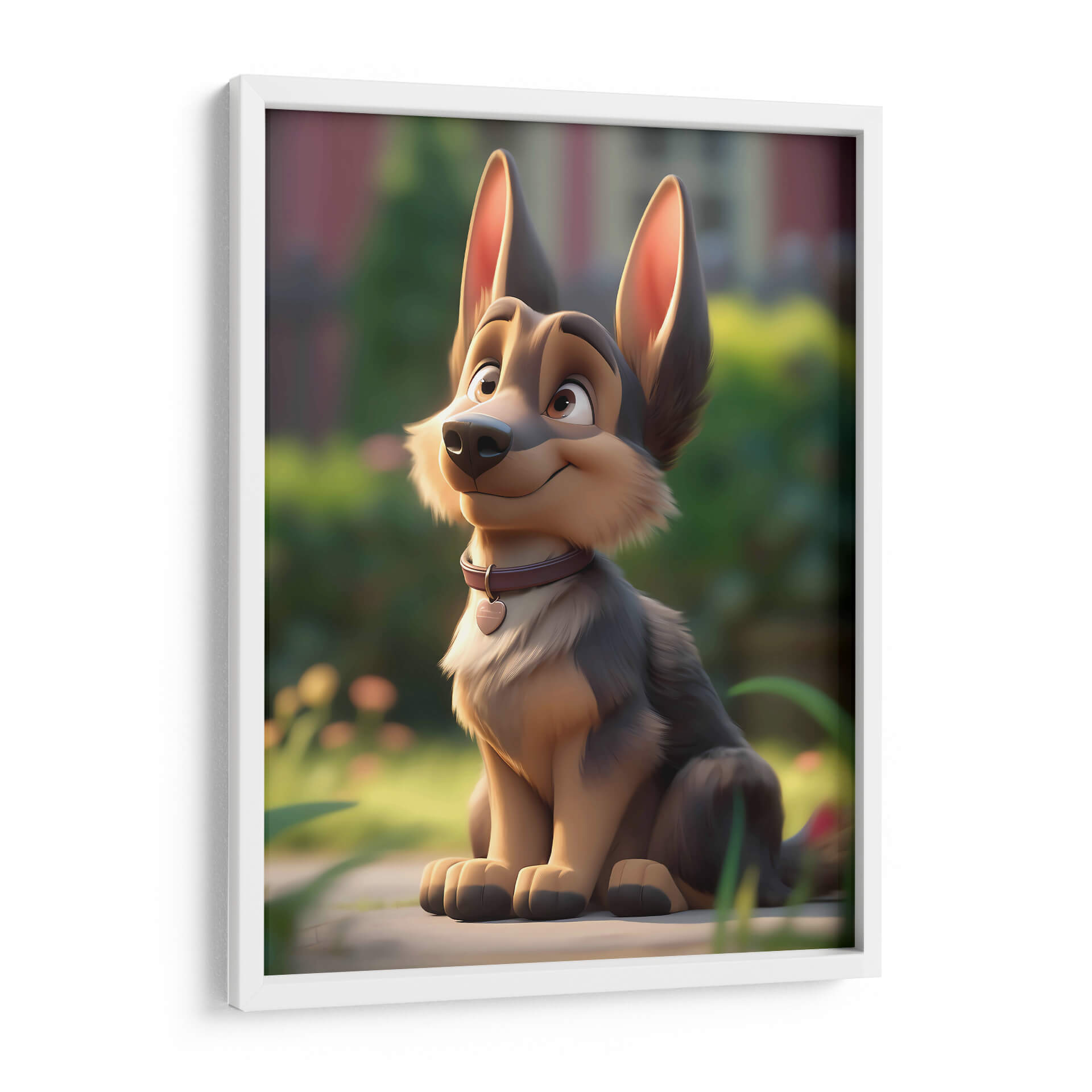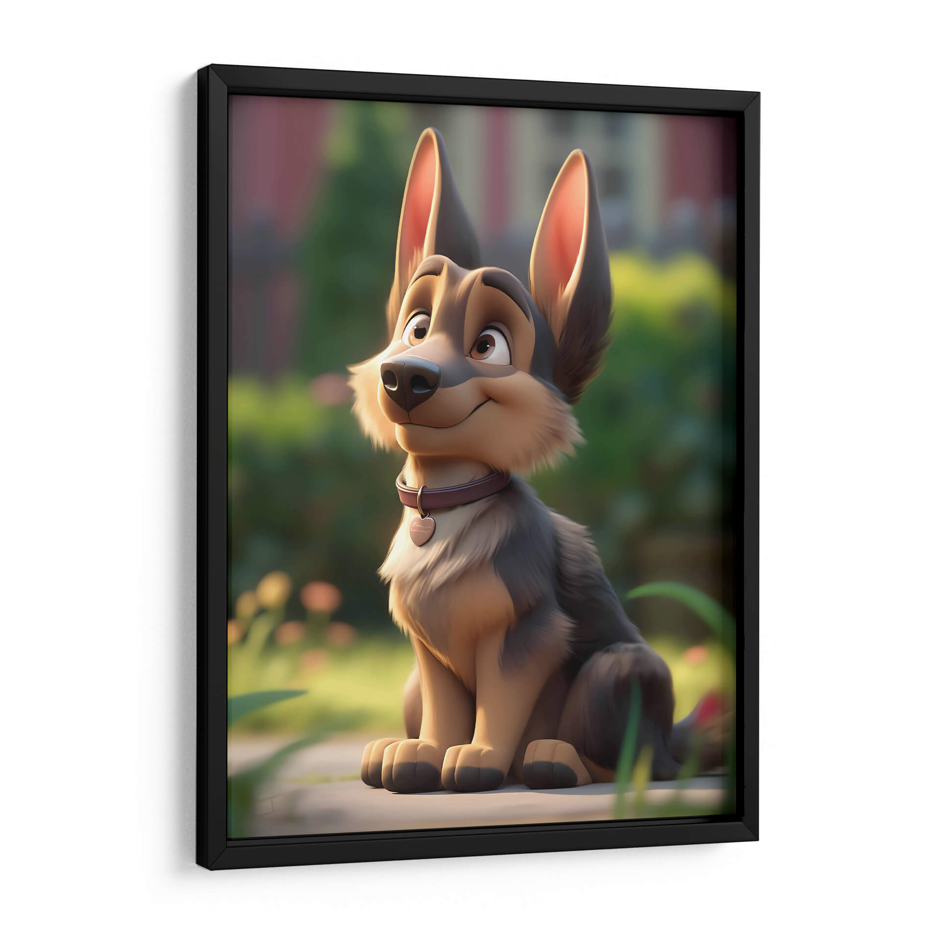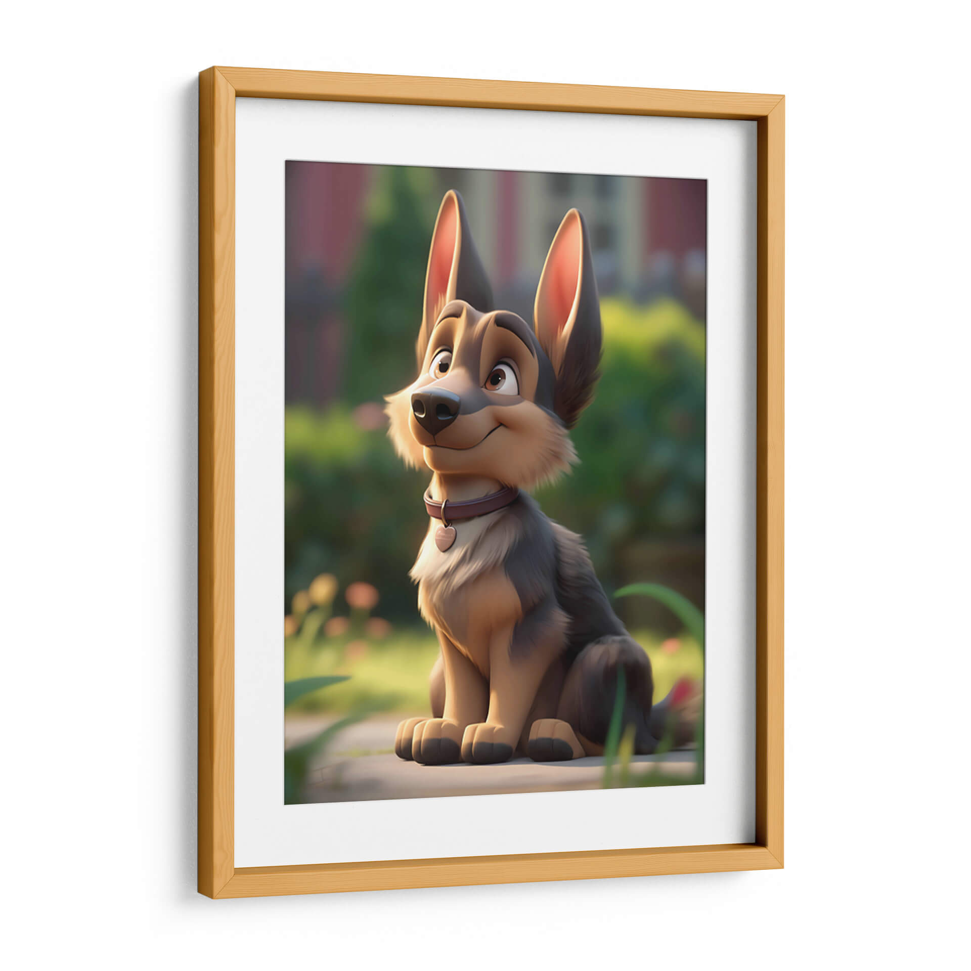 Este encantador cuadro decorativo, titulado "Mi Perro Amigo - 9" por DeLaVegaGaming, captura la esencia juguetona y leal de un compañero canino. La obra presenta un diseño estilizado y animado de un perro de raza pastor alemán sentado pacientemente en un entorno natural, con un suave enfoque en el fondo que resalta al protagonista. Los colores predominantes son tonos tierra cálidos y naturales, con acentos de verde exuberante y un toque de color en el collar del perro, que añade un punto de interés visual. El estilo de ilustración digital evoca una sensación de alegría y ternura, perfecta para añadir un toque de calidez a cualquier espacio. La composición, centrada en el amigable animal, invita a la conexión emocional y a la admiración. Ideal para salones, dormitorios o cuartos infantiles, este cuadro decorativo es una pieza única que celebra el amor por las mascotas y el espíritu alegre de la vida. Su estética amigable lo convierte en un regalo perfecto para amantes de los perros y para quienes buscan una decoración con personalidad y sentimiento positivo.