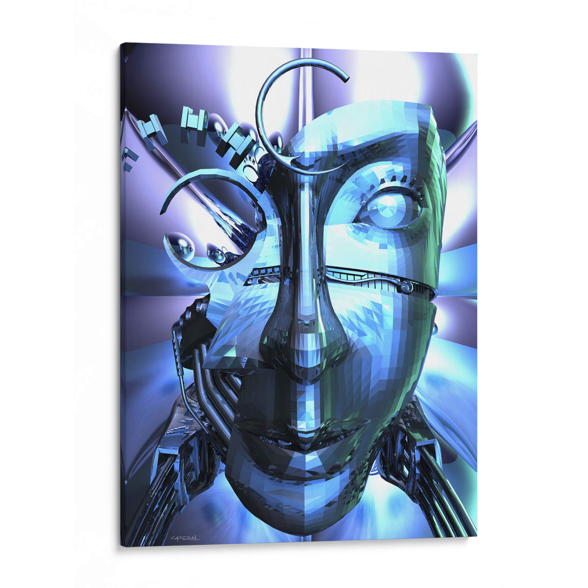 Sumérgete en el fascinante mundo de la tecnología y la estética con este cuadro decorativo "Mi Robot" del artista Caperh. Esta obra digital de arte contemporáneo presenta una figura robótica que fusiona la frialdad del metal con una inesperada delicadeza en sus facciones. Los tonos fríos, dominados por azules y plateados, crean una atmósfera futurista y enigmática, ideal para espacios que buscan un toque de modernidad y vanguardia. La composición, con un enfoque en el rostro y detalles mecánicos intrincados, invita a la reflexión sobre la inteligencia artificial y la identidad. Este cuadro decorativo es perfecto para salas de estar, estudios u oficinas, aportando un aire de sofisticación y originalidad. Su estilo único lo convierte en una pieza de conversación, capaz de transformar cualquier ambiente en una galería de arte personal. Añade una dimensión de ciencia ficción y arte digital a tu hogar u oficina, celebrando la creatividad humana en su máxima expresión tecnológica. Ideal para quienes aprecian el diseño innovador y las piezas con carácter.