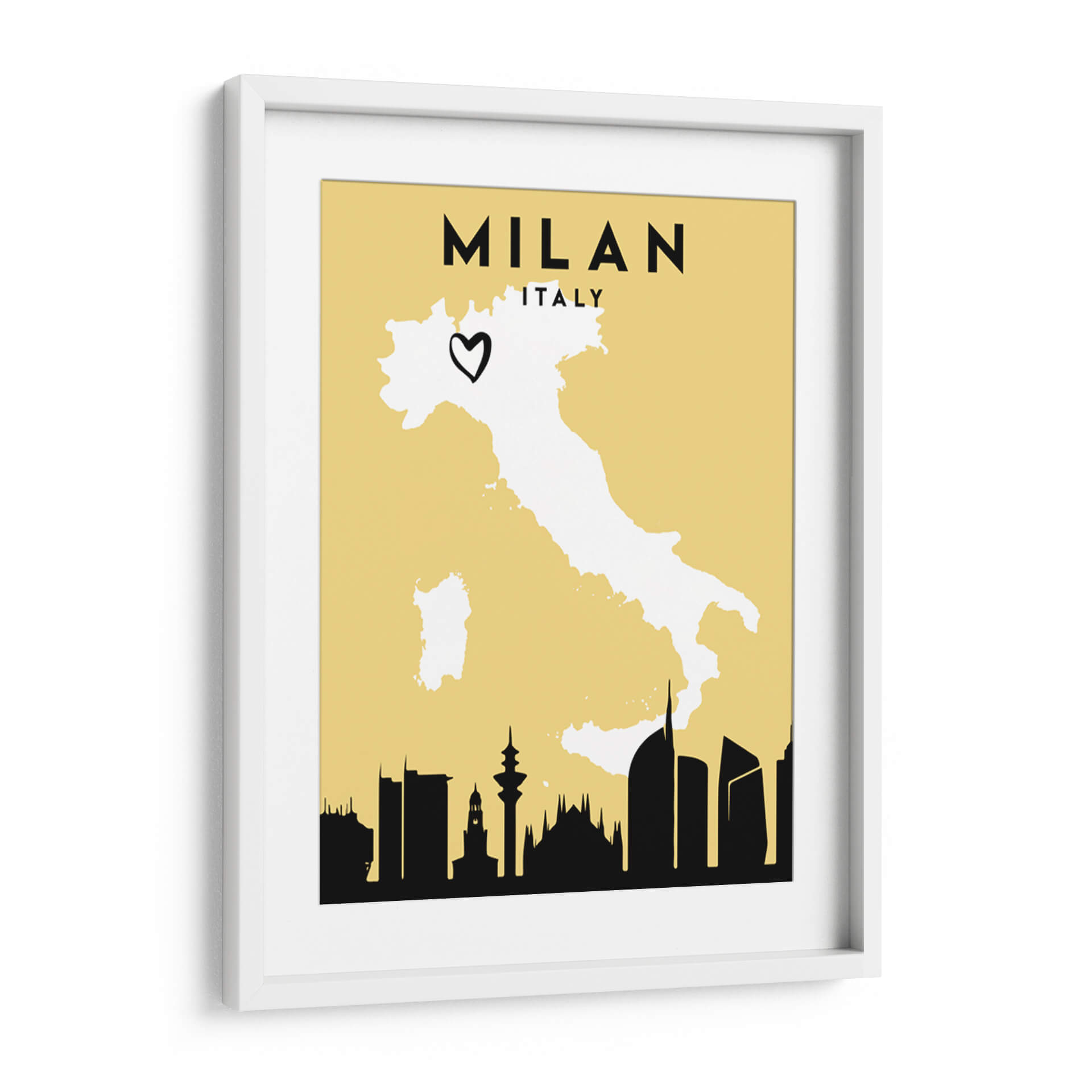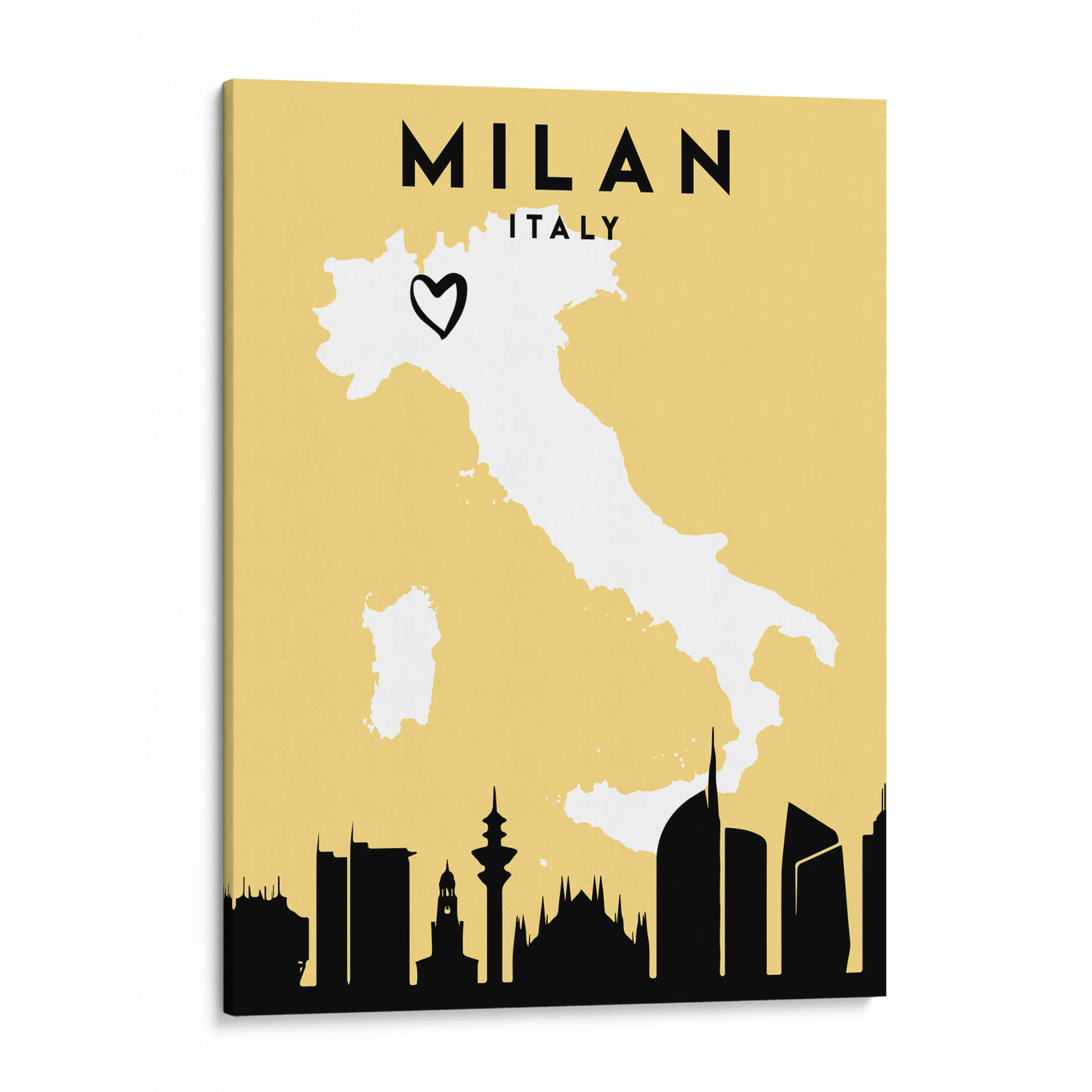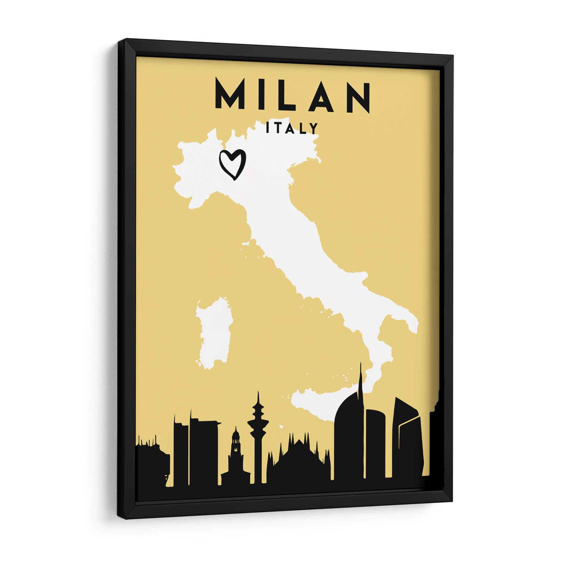 Capture la esencia de una de las ciudades más icónicas de Italia con este cautivador cuadro decorativo de Milán. La obra presenta un mapa estilizado de Italia, destacando Milán con un corazón dibujado a mano, sobre un fondo de color amarillo cálido. En la parte inferior, una silueta negra detallada representa el distintivo horizonte de la ciudad, con edificios emblemáticos que evocan su rica historia y arquitectura moderna. Este diseño minimalista y a la vez lleno de carácter es perfecto para los amantes de los viajes, los soñadores y cualquiera que guarde un afecto especial por la moda, el diseño y la cultura italiana. La paleta de colores, dominada por el amarillo ocre y el negro contrastante, aporta una sensación de calidez y sofisticación, ideal para cualquier espacio que busque un toque de elegancia urbana. Imagine este cuadro decorativo como un punto focal en su sala de estar, un recordatorio de aventuras pasadas o inspirando futuros viajes. Es una pieza versátil que se integra fácilmente en decoraciones modernas, contemporáneas o incluso eclécticas, añadiendo personalidad y un toque de estilo internacional. Celebre su conexión con Milán o exprese su anhelo por explorar sus calles con esta obra de arte única.