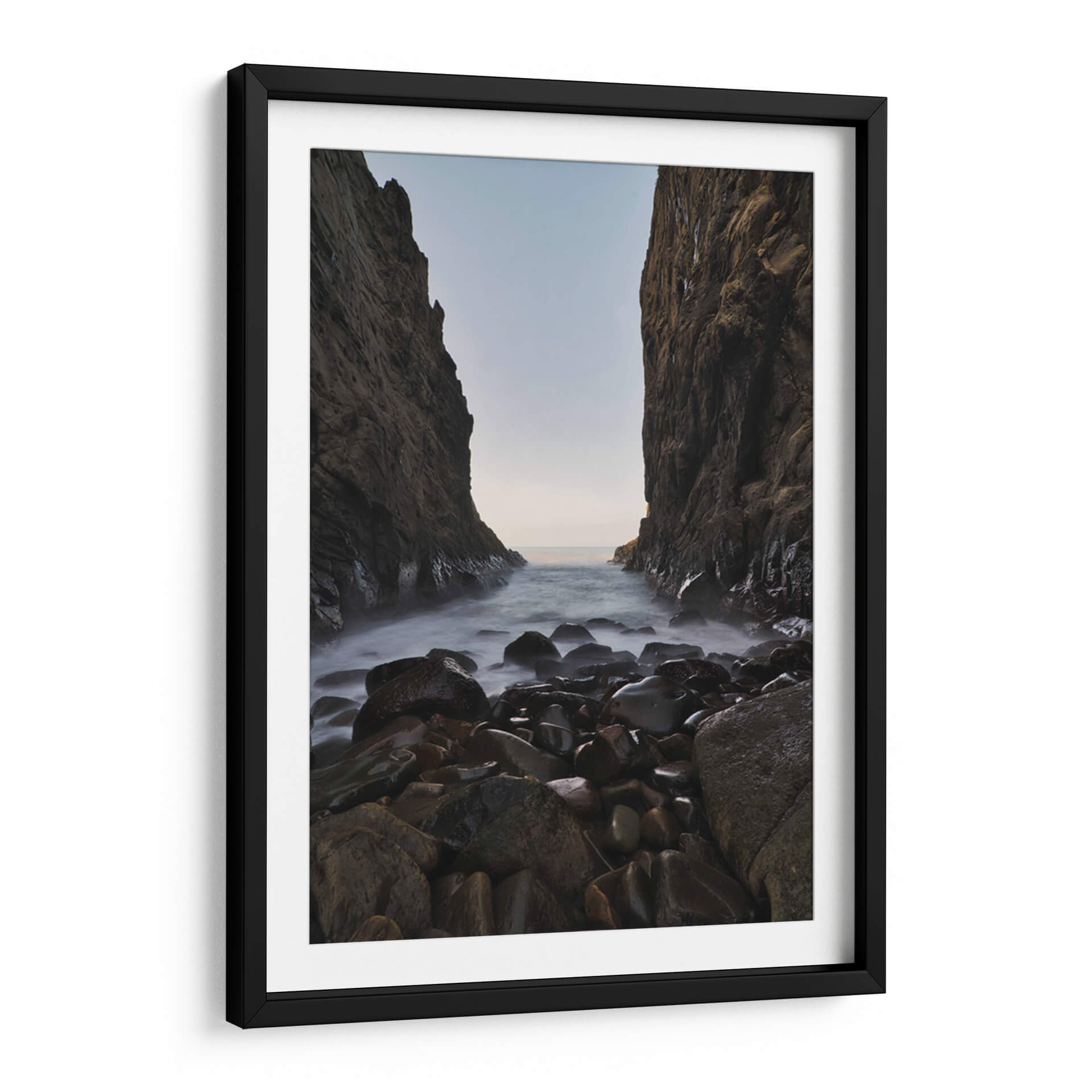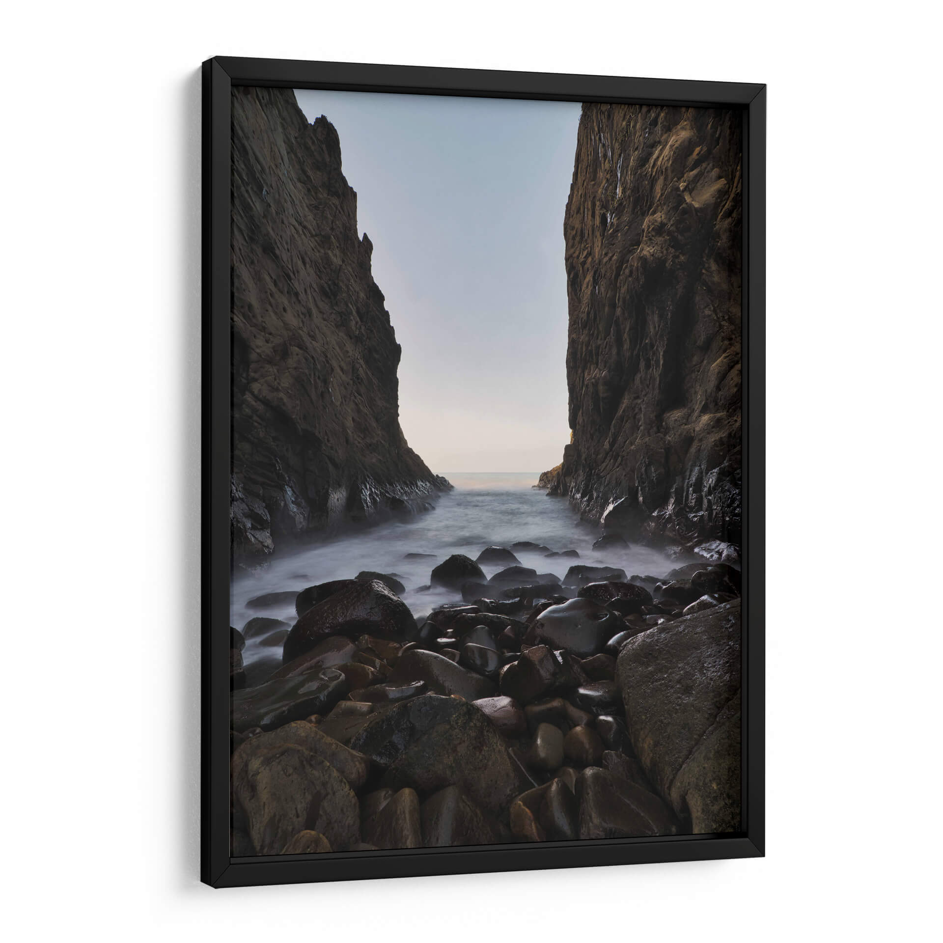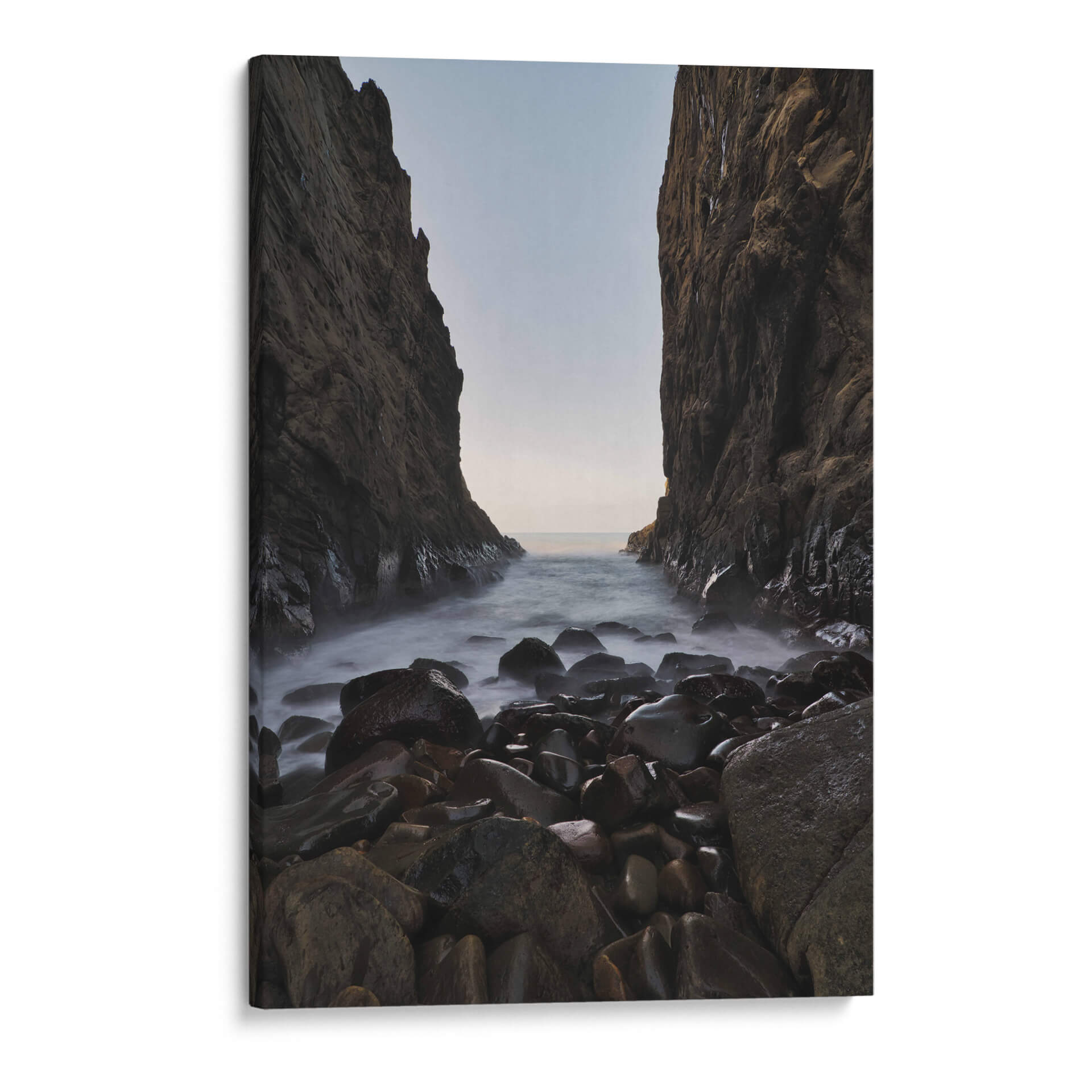 Sumérgete en la serenidad y la majestuosidad de la naturaleza con 'Mirada al Mar', una obra de arte que captura la esencia de un paisaje costero rocoso. Esta pieza, creada por el artista Jorge Vargas, te transporta a un rincón salvaje donde imponentes acantilados flanquean una entrada de mar, cuyas aguas se deslizan suavemente sobre guijarros pulidos por el tiempo. La paleta de colores, dominada por tonos tierra, grises profundos y la sutil luminosidad del horizonte, crea una atmósfera de calma profunda y contemplación. La técnica utilizada, que resalta la textura de las rocas y la neblina etérea del agua, invita a la reflexión y a la conexión con la fuerza elemental del océano. 'Mirada al Mar' es más que una simple decoración de pared; es una ventana a la tranquilidad, una pieza que transformará cualquier espacio en un santuario de paz y belleza natural. Ideal para salones, dormitorios o estudios que buscan un toque de sofisticación natural y serenidad, este cuadro decorativo es perfecto para aquellos que aprecian la fotografía de paisajes y el arte evocador.