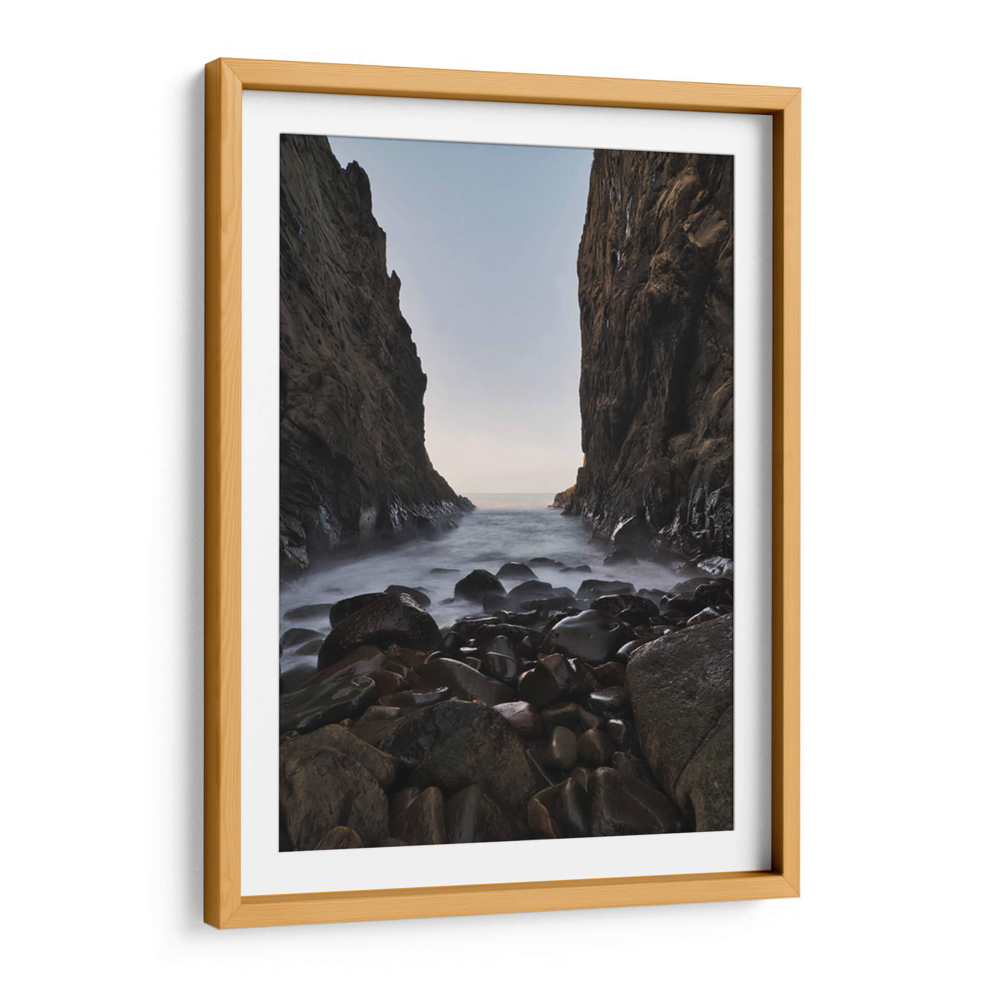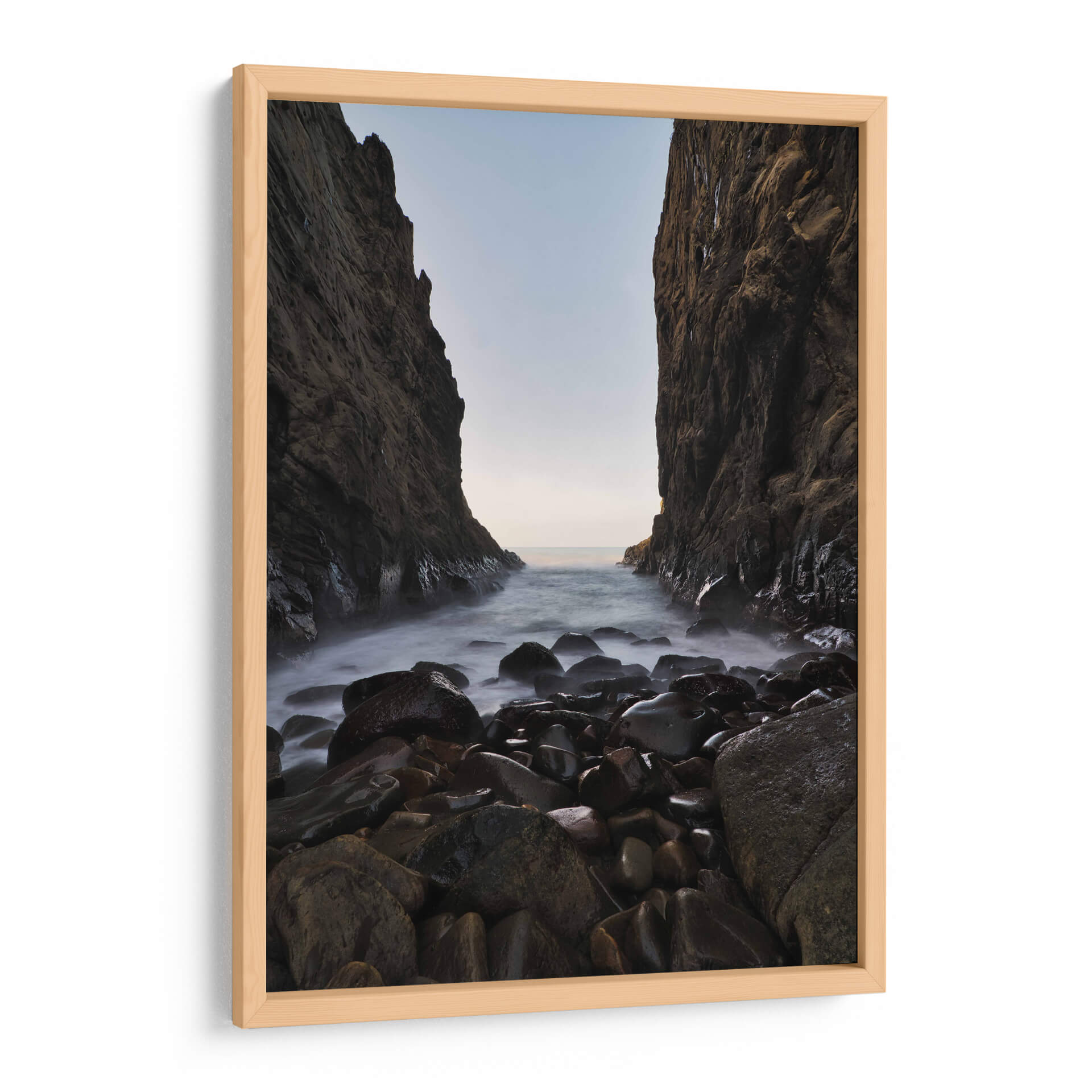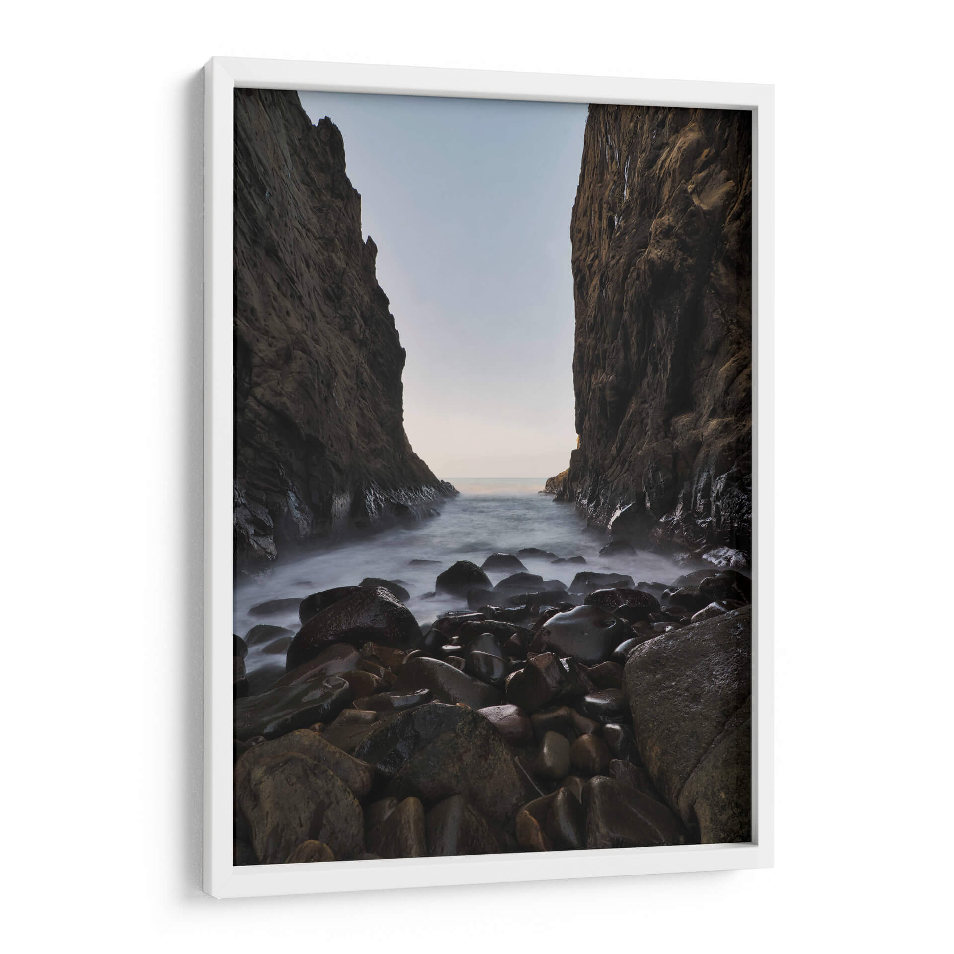Sumérgete en la serenidad y la majestuosidad de la naturaleza con 'Mirada al Mar', una obra de arte que captura la esencia de un paisaje costero rocoso. Esta pieza, creada por el artista Jorge Vargas, te transporta a un rincón salvaje donde imponentes acantilados flanquean una entrada de mar, cuyas aguas se deslizan suavemente sobre guijarros pulidos por el tiempo. La paleta de colores, dominada por tonos tierra, grises profundos y la sutil luminosidad del horizonte, crea una atmósfera de calma profunda y contemplación. La técnica utilizada, que resalta la textura de las rocas y la neblina etérea del agua, invita a la reflexión y a la conexión con la fuerza elemental del océano. 'Mirada al Mar' es más que una simple decoración de pared; es una ventana a la tranquilidad, una pieza que transformará cualquier espacio en un santuario de paz y belleza natural. Ideal para salones, dormitorios o estudios que buscan un toque de sofisticación natural y serenidad, este cuadro decorativo es perfecto para aquellos que aprecian la fotografía de paisajes y el arte evocador.