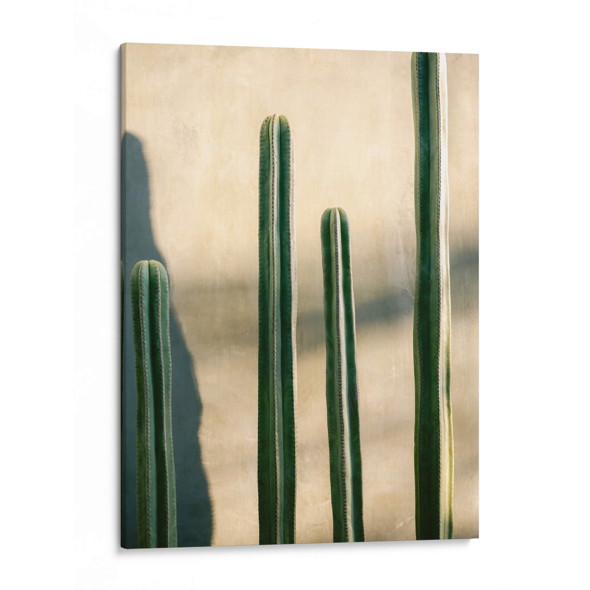 Captura la esencia del vibrante paisaje mexicano con "Oaxaca Tonos de Verde", una impresionante fotografía de viaje de Raisa Zwart. Esta obra de arte captura la majestuosidad de los cactus en un entorno de tonos tierra, creando una atmósfera serena y exótica. La composición se centra en las líneas verticales y la textura de los cactus, contrastando con la suavidad del muro de fondo y las sombras proyectadas. Los tonos verdes profundos de los cactus se complementan a la perfección con los cálidos ocres del fondo, evocando la luz solar intensa y la tranquilidad de un día en el desierto mexicano. Es una pieza que transporta, perfecta para añadir un toque de naturaleza y sofisticación a cualquier espacio, desde salones modernos hasta dormitorios de inspiración bohemia. Su estilo fotográfico realista y su paleta de colores terrosos la convierten en una adición versátil y atemporal para tu decoración, inspirando calma y conexión con la naturaleza.