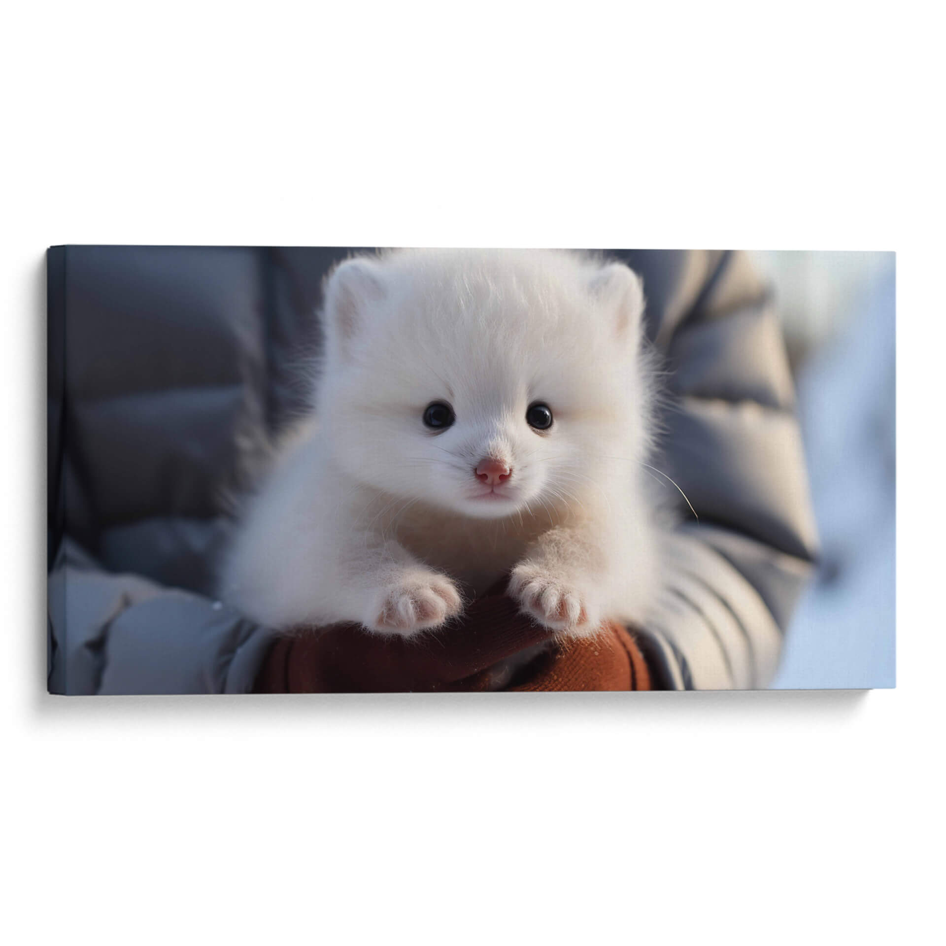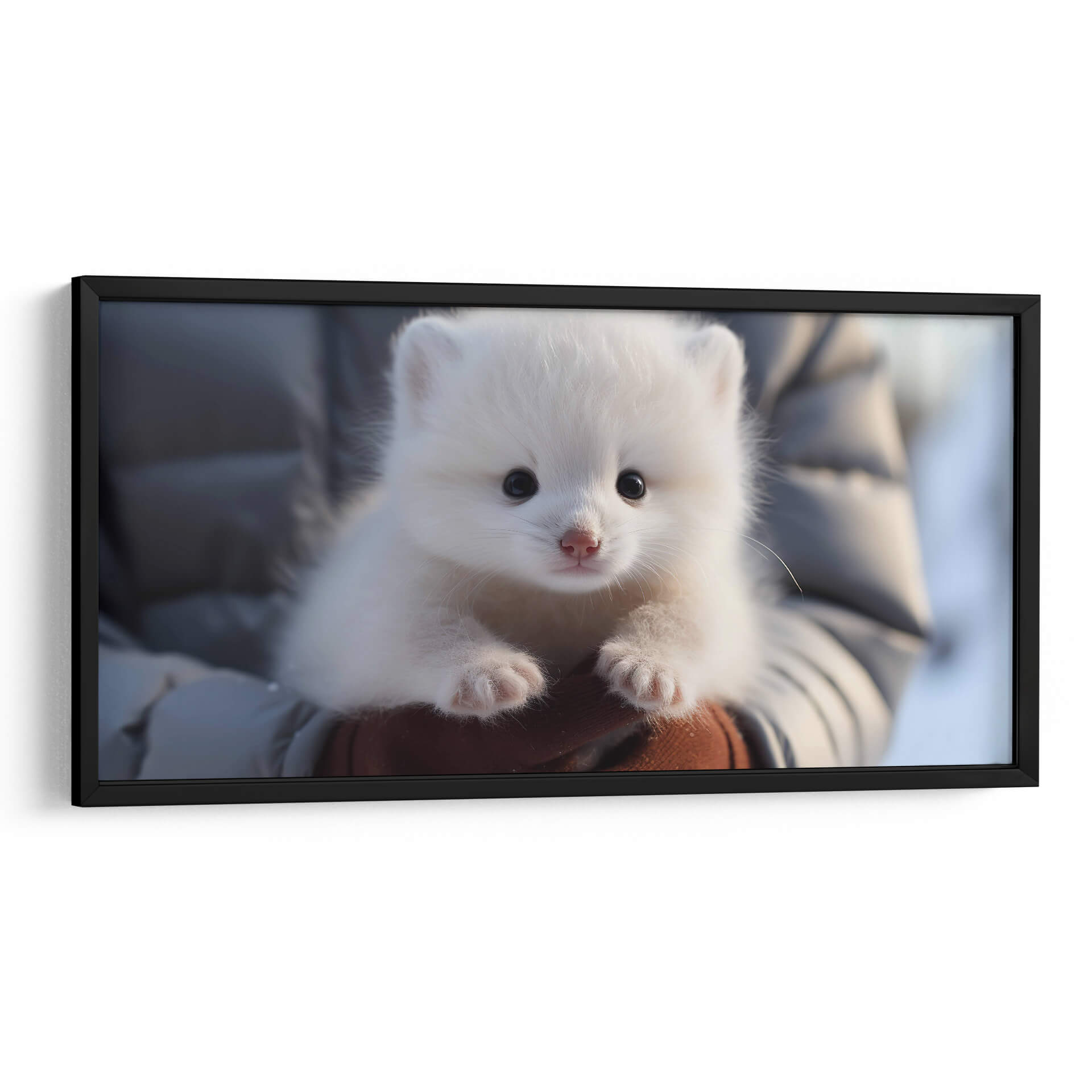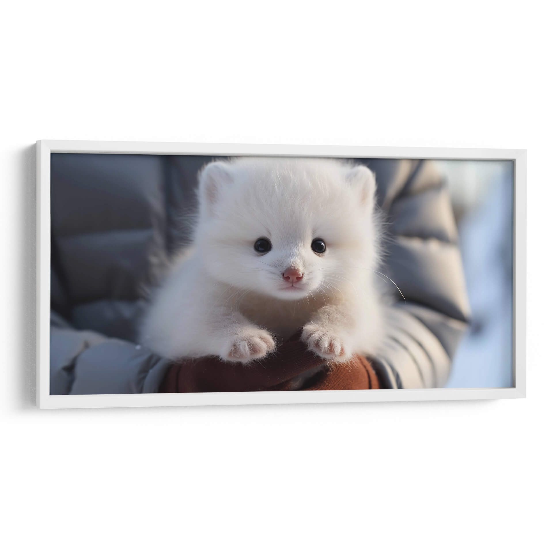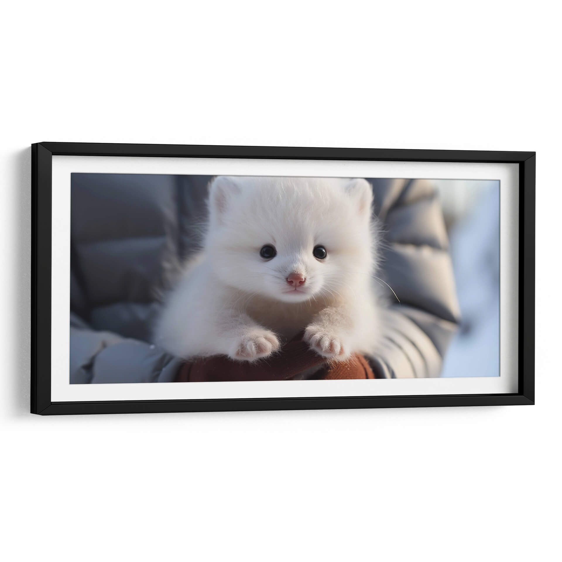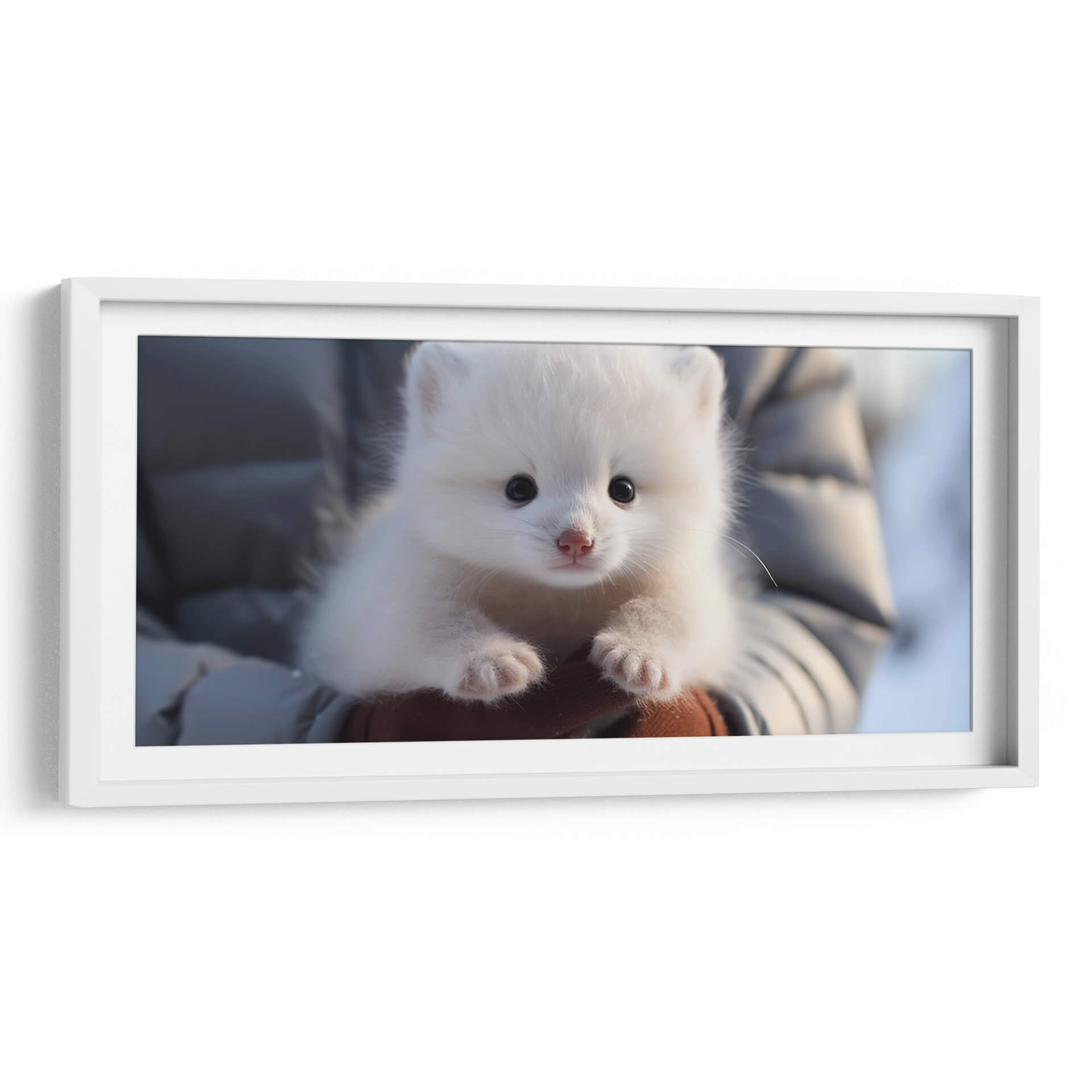 Captura la ternura y pureza de la naturaleza con nuestro exquisito cuadro decorativo 'Oso Polar' de Cecilia Flores. Esta obra maestra presenta a un adorable osezno polar, con su pelaje blanco y esponjoso que evoca la inocencia y la calidez, contrastando sutilmente con sus pequeños ojos oscuros y su nariz rosada. La composición, centrada en este tierno animal, crea una conexión emocional instantánea, invitando a la contemplación y a la admiración. Los tonos predominantes de blanco y grises suaves, con un toque de marrón en las manos que lo sostienen, generan una atmósfera de serenidad y paz, ideal para espacios que buscan transmitir calma y dulzura. Este cuadro es perfecto para añadir un toque de vida salvaje y encanto a cualquier habitación, desde una guardería hasta una sala de estar acogedora o un estudio sereno. El estilo realista y el enfoque en la expresión del animal lo convierten en una pieza conmovedora que aportará alegría y una sensación de conexión con la naturaleza. Decora tu hogar con la inocencia de este pequeño oso polar y siente la magia del ártico en tu día a día.