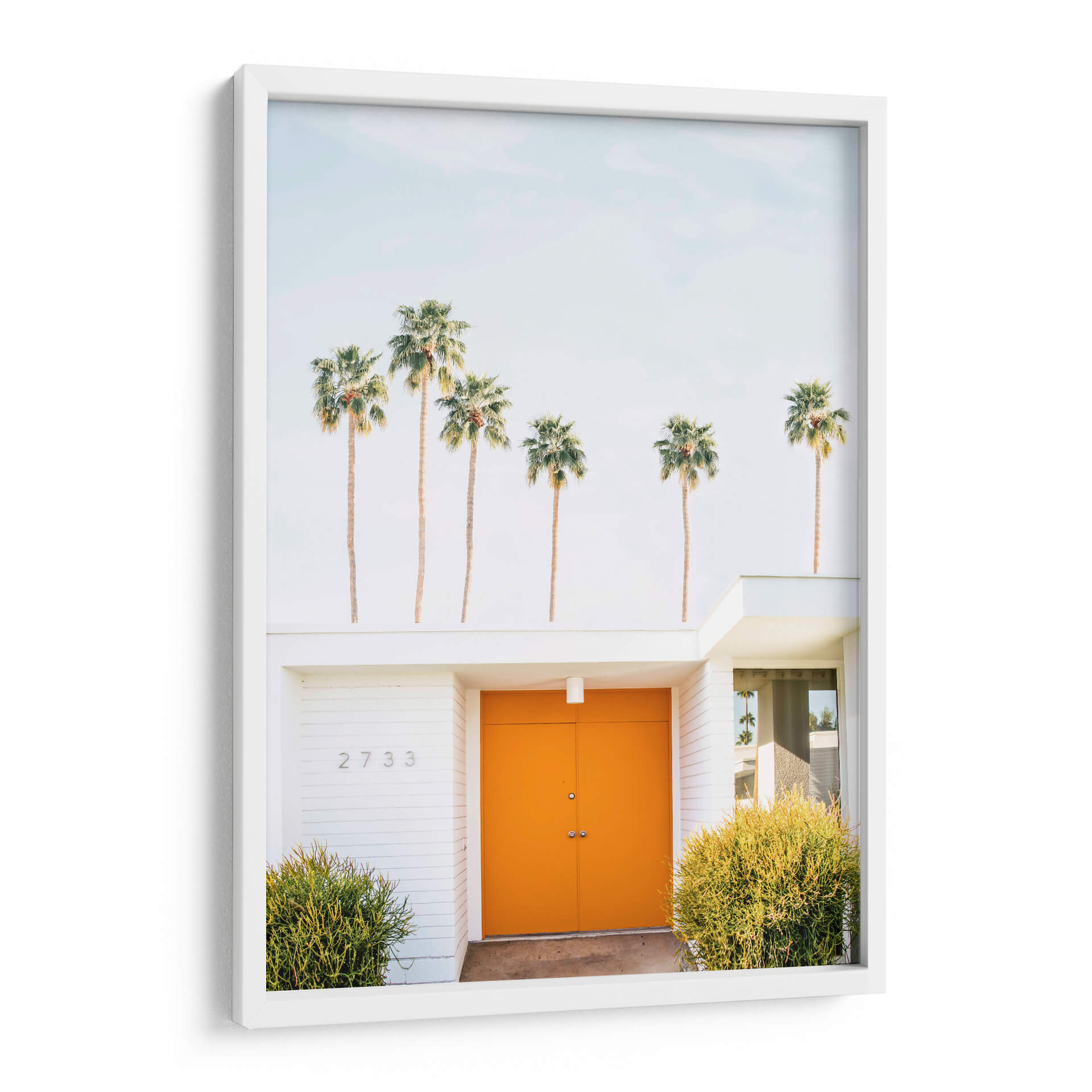 Sumérgete en la calidez y el encanto arquitectónico de "Palm Springs 1", una obra de Kathrin Pienaar que captura la esencia de un estilo de vida soleado y sofisticado. Este cuadro decorativo te transporta a un día idílico bajo el cielo azul claro, donde las esbeltas palmeras se alzan majestuosamente contra una pared blanca impoluta. El punto focal vibrante es una puerta doble de color naranja intenso, que irradia energía y da la bienvenida con su audacia. La composición, de corte minimalista y moderno, se ve realzada por el contraste entre las líneas limpias de la arquitectura y la textura natural de las palmeras y la vegetación circundante. La paleta de colores, dominada por blancos nítidos, verdes exuberantes y el impactante naranja, crea una atmósfera de optimismo y frescura. Ideal para espacios que buscan un toque de vitalidad y un aire vacacional, esta pieza es perfecta para añadir personalidad a tu sala de estar, recibidor o incluso una oficina moderna. "Palm Springs 1" no es solo una imagen, es una invitación a un destino soñado, infundiendo a tu hogar una sensación de paz y estilo contemporáneo.