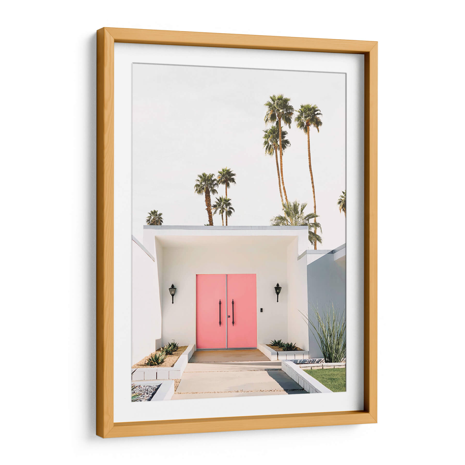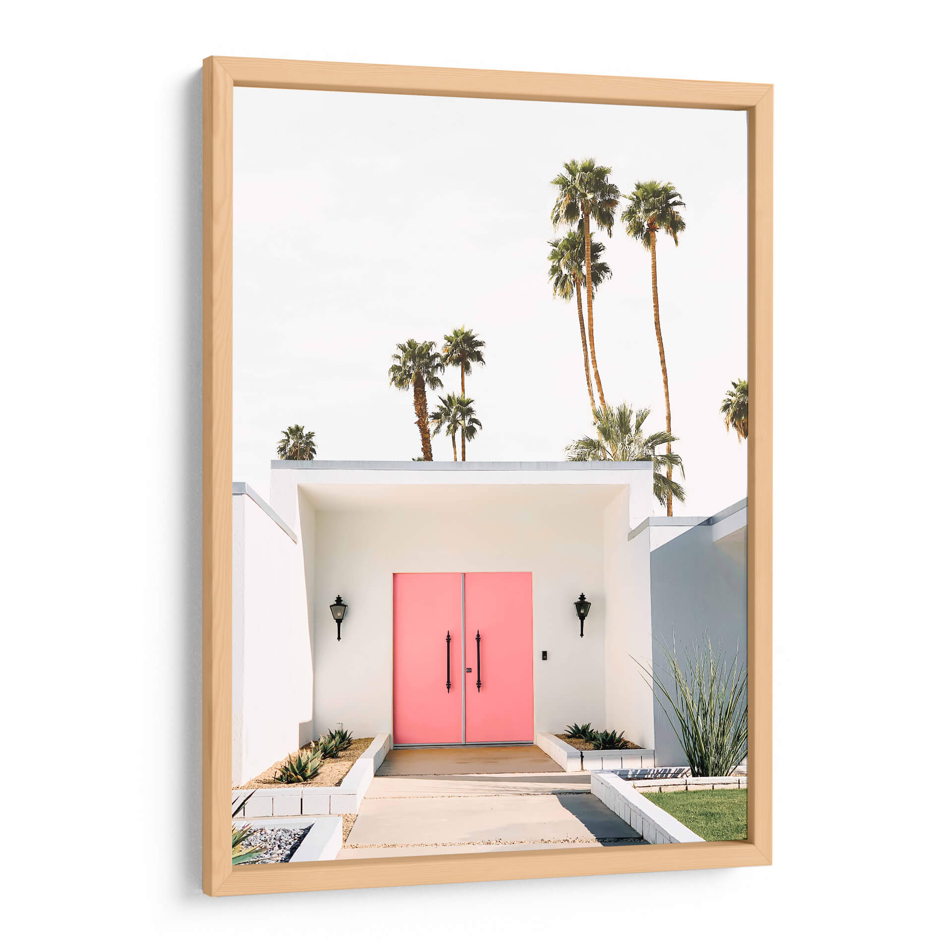 Sumérgete en la atmósfera vibrante y soleada de Palm Springs con esta cautivadora obra de arte, 'Palm Springs 3', de Kathrin Pienaar. La imagen captura la icónica arquitectura de mediados de siglo con un enfoque en una entrada destacada por unas llamativas puertas de color rosa chicle. Palmeras esbeltas se elevan contra un cielo pálido y despejado, añadiendo un toque tropical y exótico a la escena. La paleta de colores, dominada por blancos nítidos, tonos tierra suaves y el audaz rosa de las puertas, crea una composición visualmente atractiva y moderna. El diseño limpio y las líneas arquitectónicas definidas evocan una sensación de calma y sofisticación, mientras que las palmeras insinúan un estilo de vida relajado y lujoso. Este cuadro decorativo es perfecto para añadir un toque de color y personalidad a cualquier espacio, ya sea una sala de estar moderna, un dormitorio tranquilo o una oficina chic. Su estilo fotográfico y su temática arquitectónica lo convierten en una pieza versátil que complementa una amplia gama de decoraciones, desde la minimalista hasta la contemporánea. Deja que 'Palm Springs 3' te transporte a un oasis de estilo y serenidad, inyectando un aire de vacaciones y elegancia en tu hogar. La obra de Kathrin Pienaar invita a la contemplación y a la apreciación de la belleza en lo cotidiano.