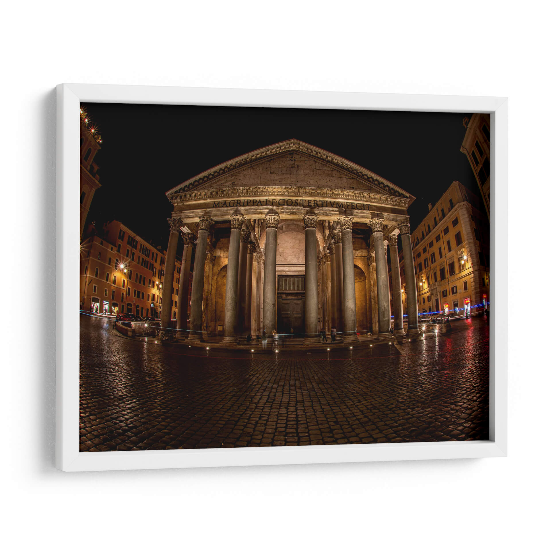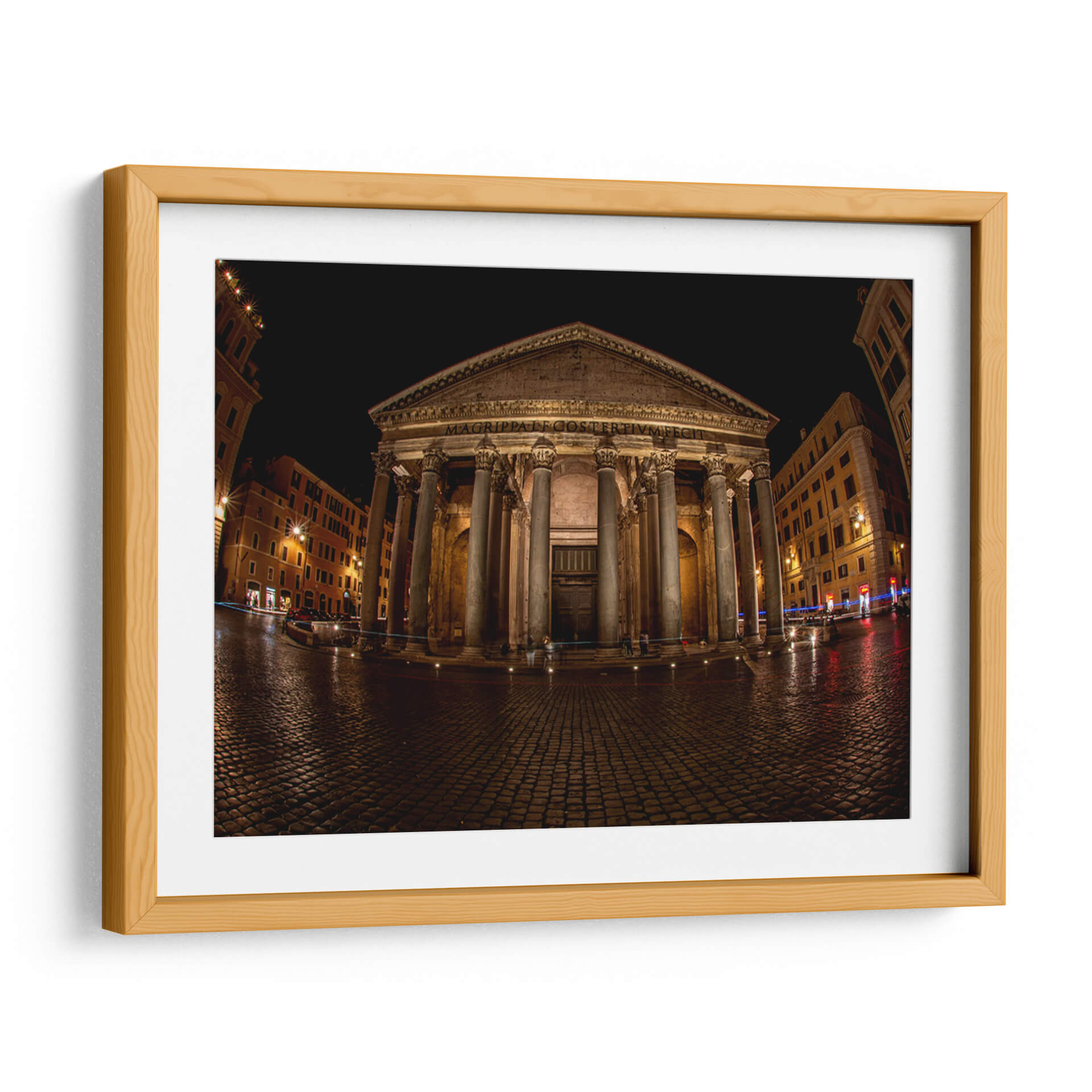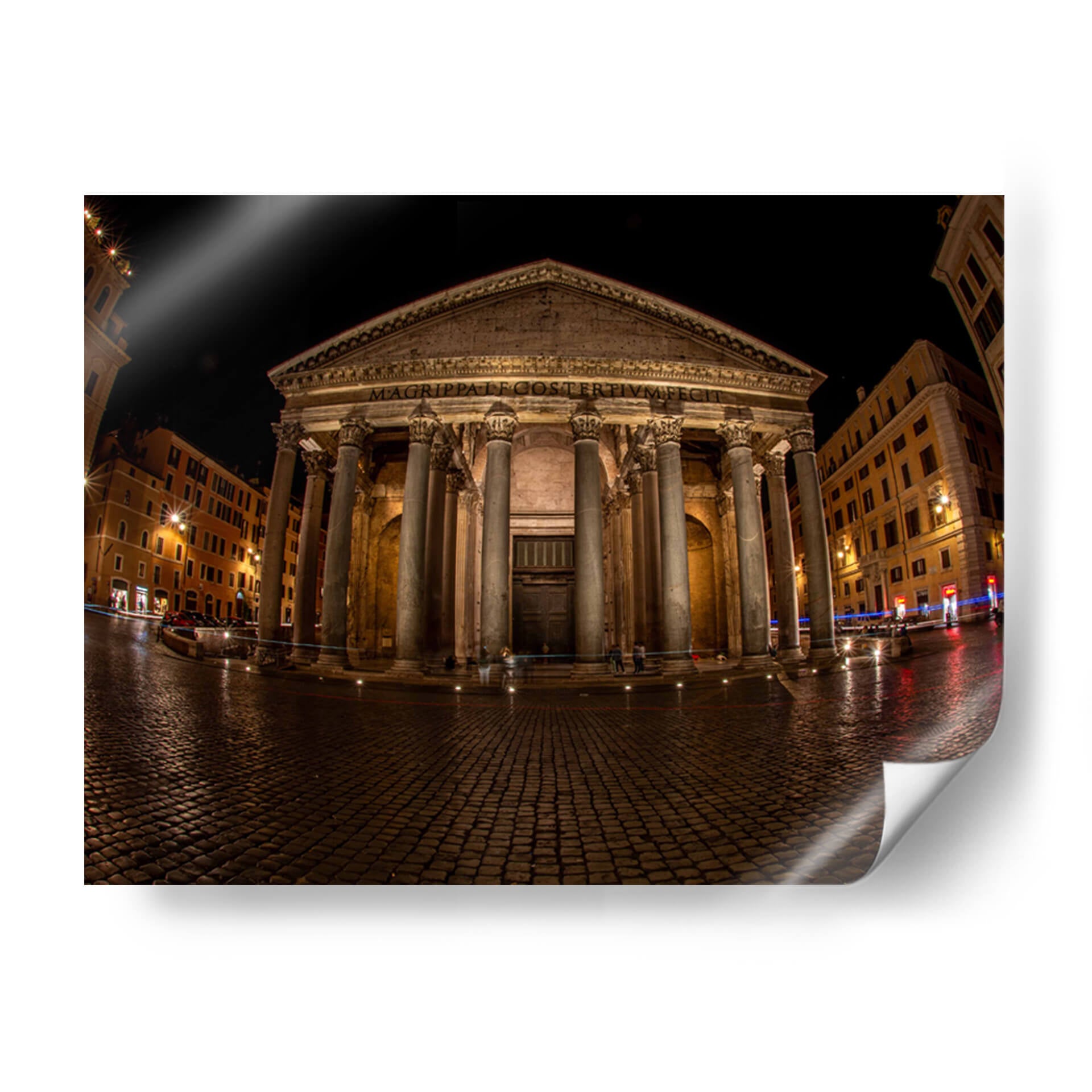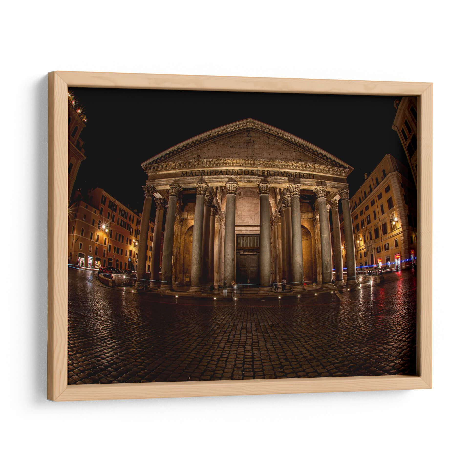 Capta la magnificencia atemporal de Roma con este evocador cuadro decorativo de la Piazza della Rotonda iluminada por la noche. La obra maestra 'Pantheon 1' de Gustavo Cohen inmortaliza la majestuosidad del Panteón, con sus imponentes columnas de mármol y la intrincada arquitectura clásica bañadas por la luz cálida de las farolas. El suelo empedrado refleja las luces, creando una atmósfera vibrante y casi mística, acentuada por el cielo nocturno profundo. La perspectiva ligeramente distorsionada añade un toque moderno y dinámico a la escena histórica. Este cuadro es una invitación a transportarse a las calles de la Ciudad Eterna, capturando la esencia de su patrimonio arquitectónico y la energía de una noche romana. Ideal para añadir un toque de sofisticación, historia y carácter a tu sala de estar, estudio u oficina, este cuadro decorativo es perfecto para amantes de la arquitectura, la historia y los viajes. Transforma tu espacio en una galería personal con esta impresionante vista nocturna.