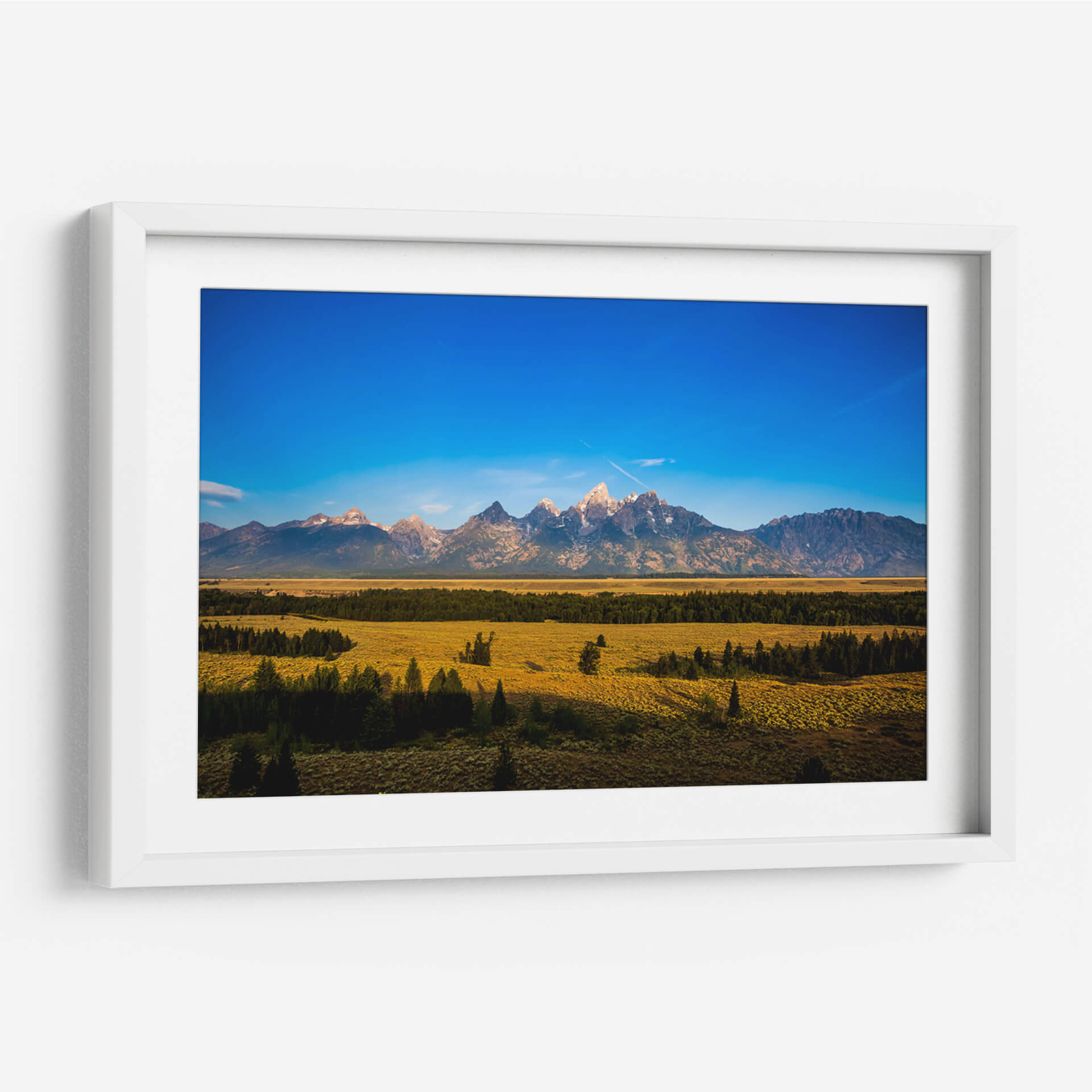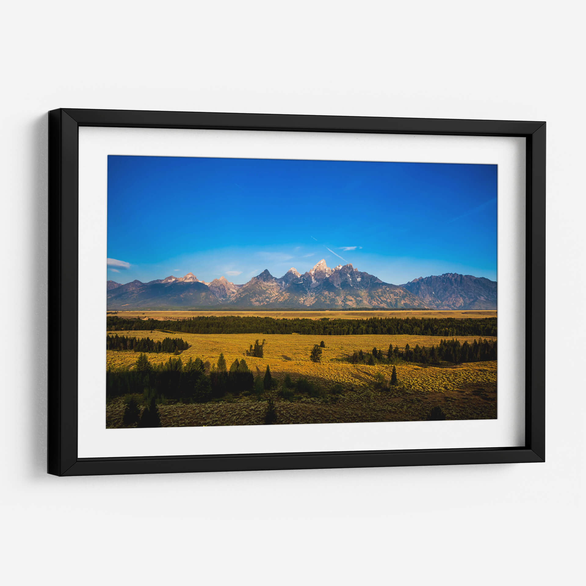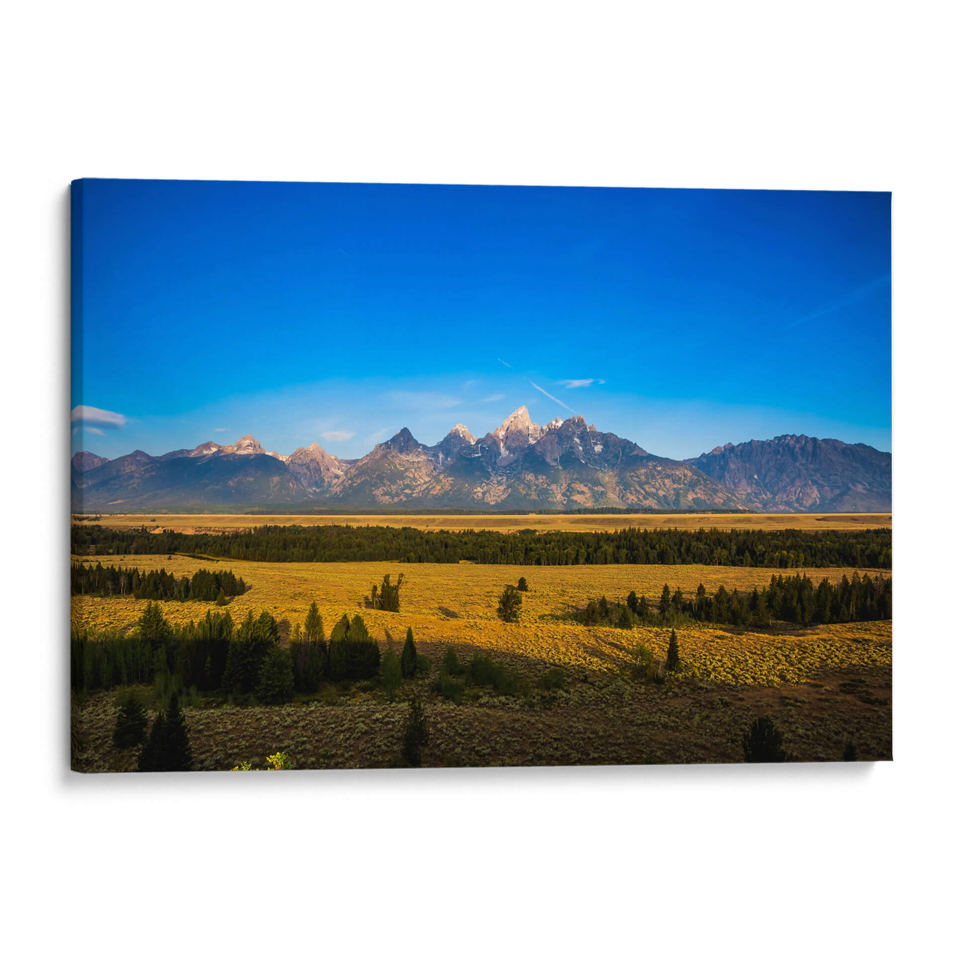 Captura la majestuosidad de la naturaleza con este impresionante cuadro decorativo del Parque Nacional de Grand Teton, obra del artista Guillermo Aparicio. La pieza te transporta a un paisaje imponente, dominado por las afiladas cumbres montañosas que se alzan majestuosamente bajo un cielo azul profundo y despejado. La paleta de colores se centra en tonos tierra cálidos y dorados que cubren la vasta pradera en primer plano, contrastando bellamente con el verde oscuro de los bosques de pinos que se extienden a lo largo de la base de las montañas. La luz del atardecer o amanecer baña la escena, proyectando sombras alargadas y realzando la textura del terreno, creando una atmósfera de serenidad y grandeza natural. Este cuadro es ideal para aquellos que buscan infundir calma y conexión con la naturaleza en sus espacios, ya sea en un salón, un estudio o un dormitorio. Su composición panorámica y la fuerza visual de las montañas lo convierten en un punto focal cautivador, perfecto para inspirar tranquilidad y admiración. Añade un toque de aventura y belleza salvaje a tu decoración con esta obra maestra paisajística, una ventana a uno de los parques nacionales más icónicos de Estados Unidos, capturada con maestría por Guillermo Aparicio.