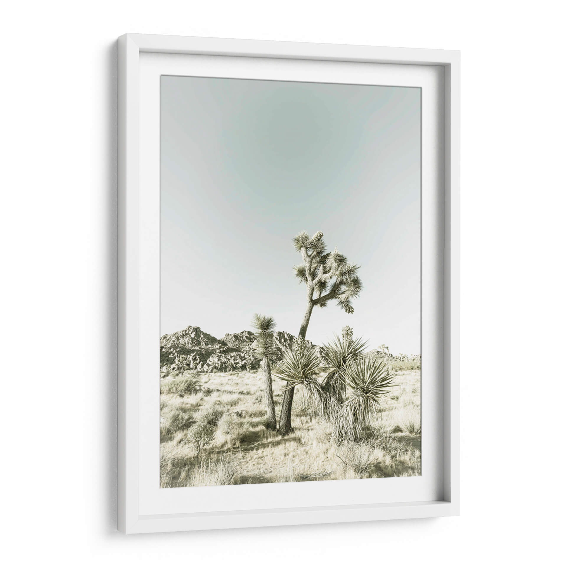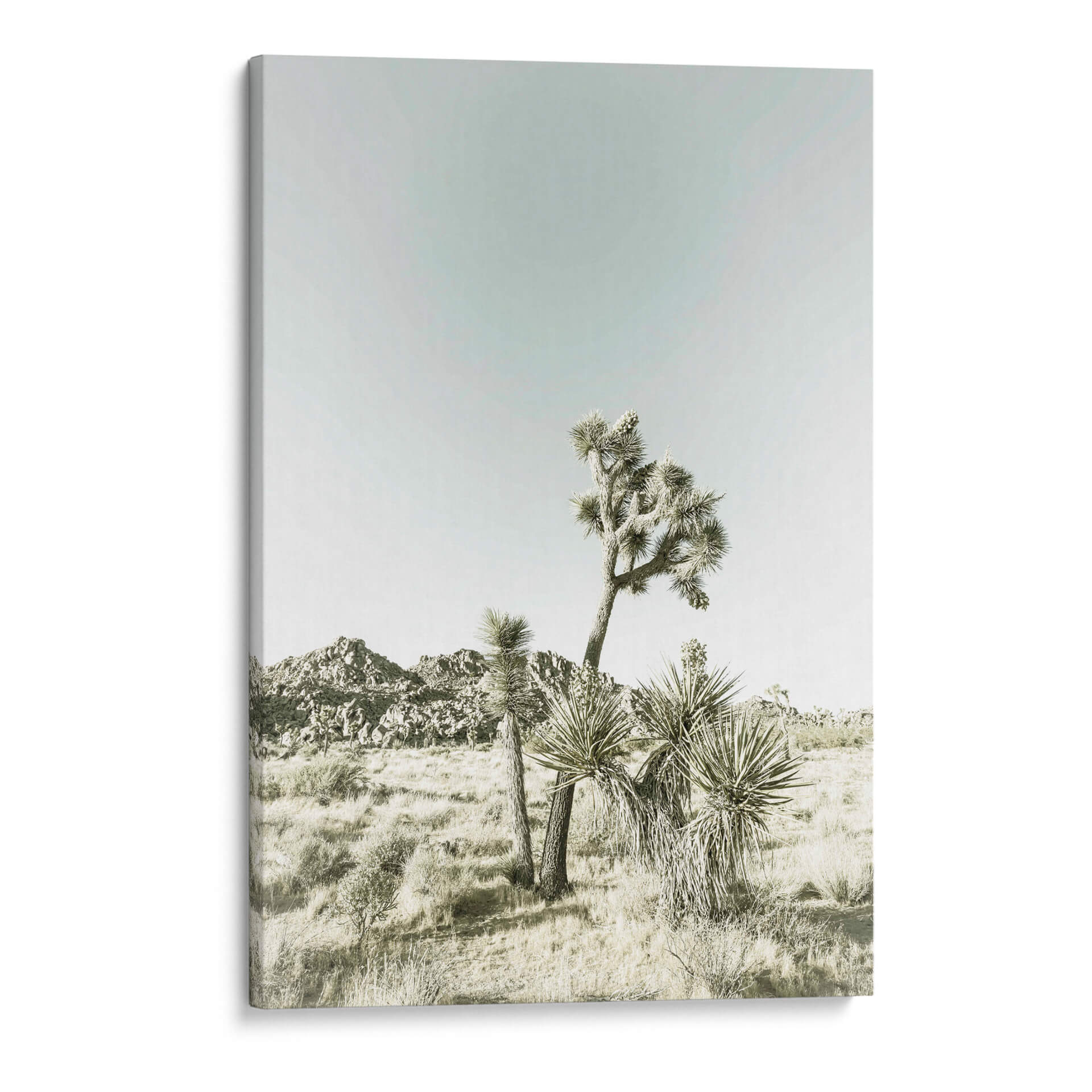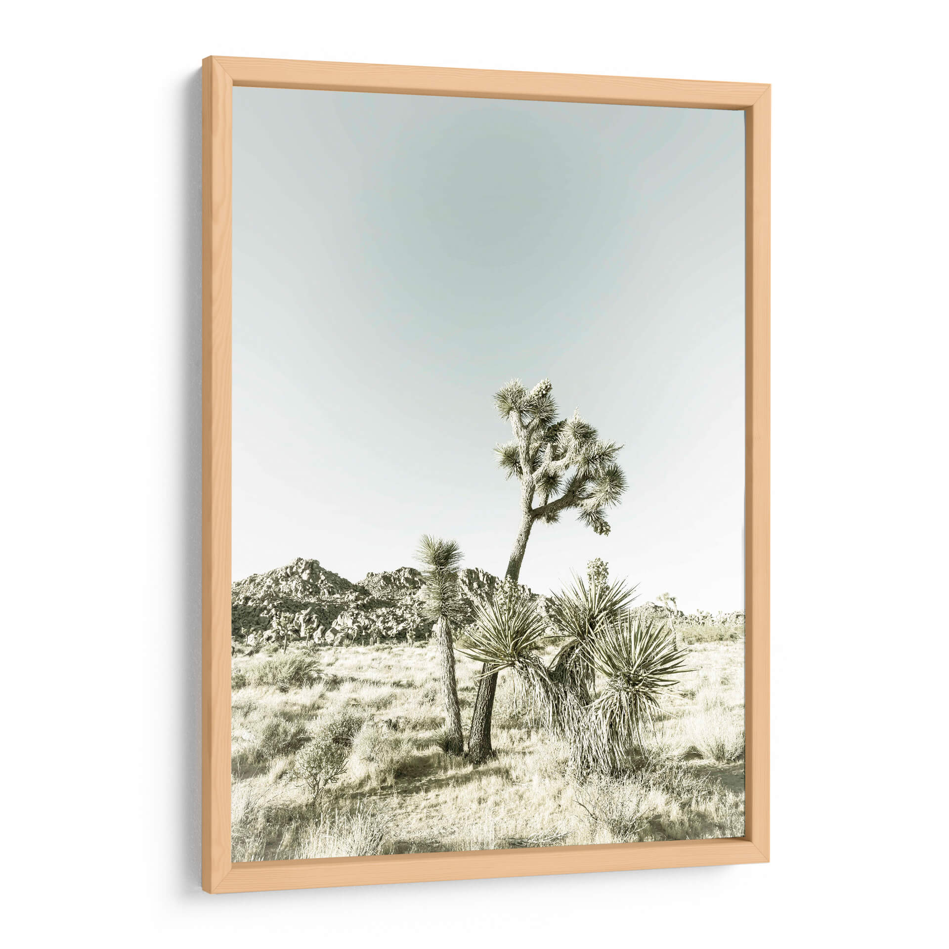 Sumérgete en la serenidad del desierto con este cautivador cuadro decorativo, "Parque Nacional Joshua Tree Impresión Vintage" de Melanie Viola. La obra captura la majestuosidad icónica de los árboles de Josué en un paisaje árido y evocador, bañado por una luz suave que realza las texturas y formas únicas de esta flora resistente. La paleta de colores, dominada por tonos tierra y un cielo de un azul pálido y etéreo, crea una atmósfera de calma y contemplación, transportándote directamente a la vastedad y el silencio del desierto californiano. La composición, centrada en los árboles como protagonistas, ofrece una perspectiva que invita a la reflexión sobre la belleza de la naturaleza en su estado más puro y salvaje. Este cuadro decorativo es la pieza perfecta para añadir un toque de tranquilidad y conexión con la naturaleza a cualquier espacio, ya sea un salón moderno, un dormitorio acogedor o una oficina que busque inspiración. Su estilo vintage, sutilmente logrado a través de la iluminación y la paleta, añade un aire atemporal y sofisticado, convirtiéndolo en una adición elegante y significativa a tu decoración de pared. Descubre la belleza sobria y el poder evocador del Parque Nacional Joshua Tree a través de la lente artística de Melanie Viola.