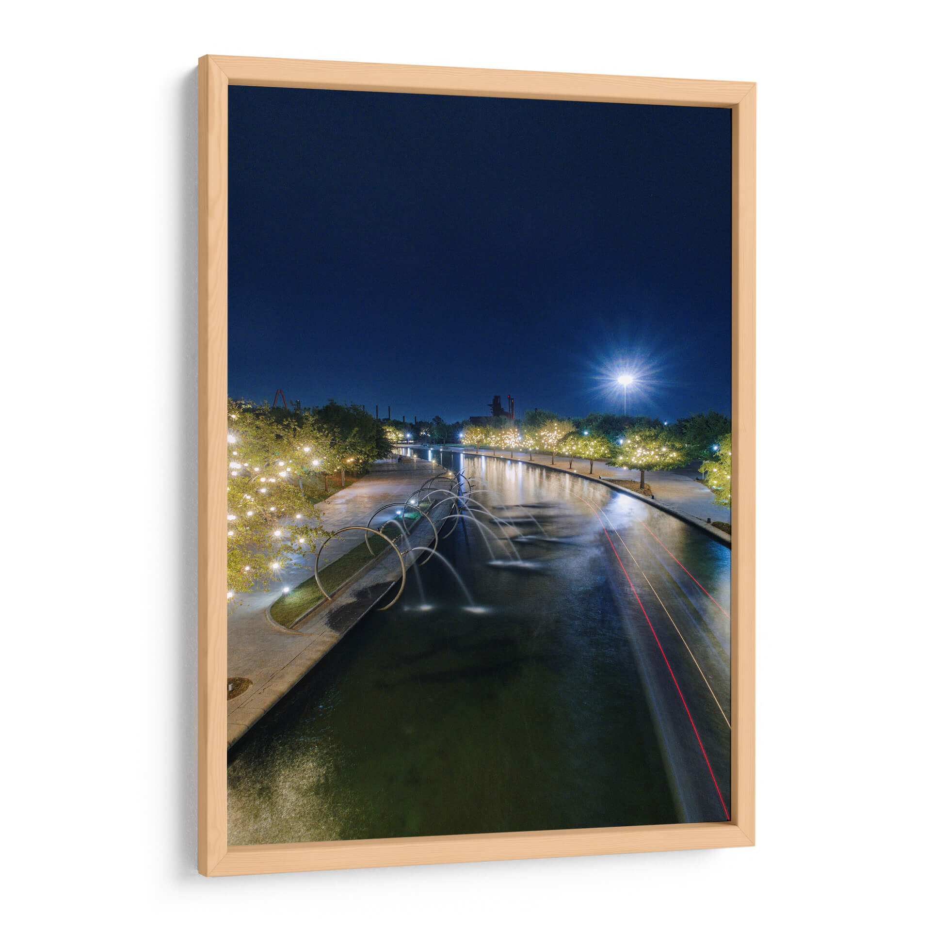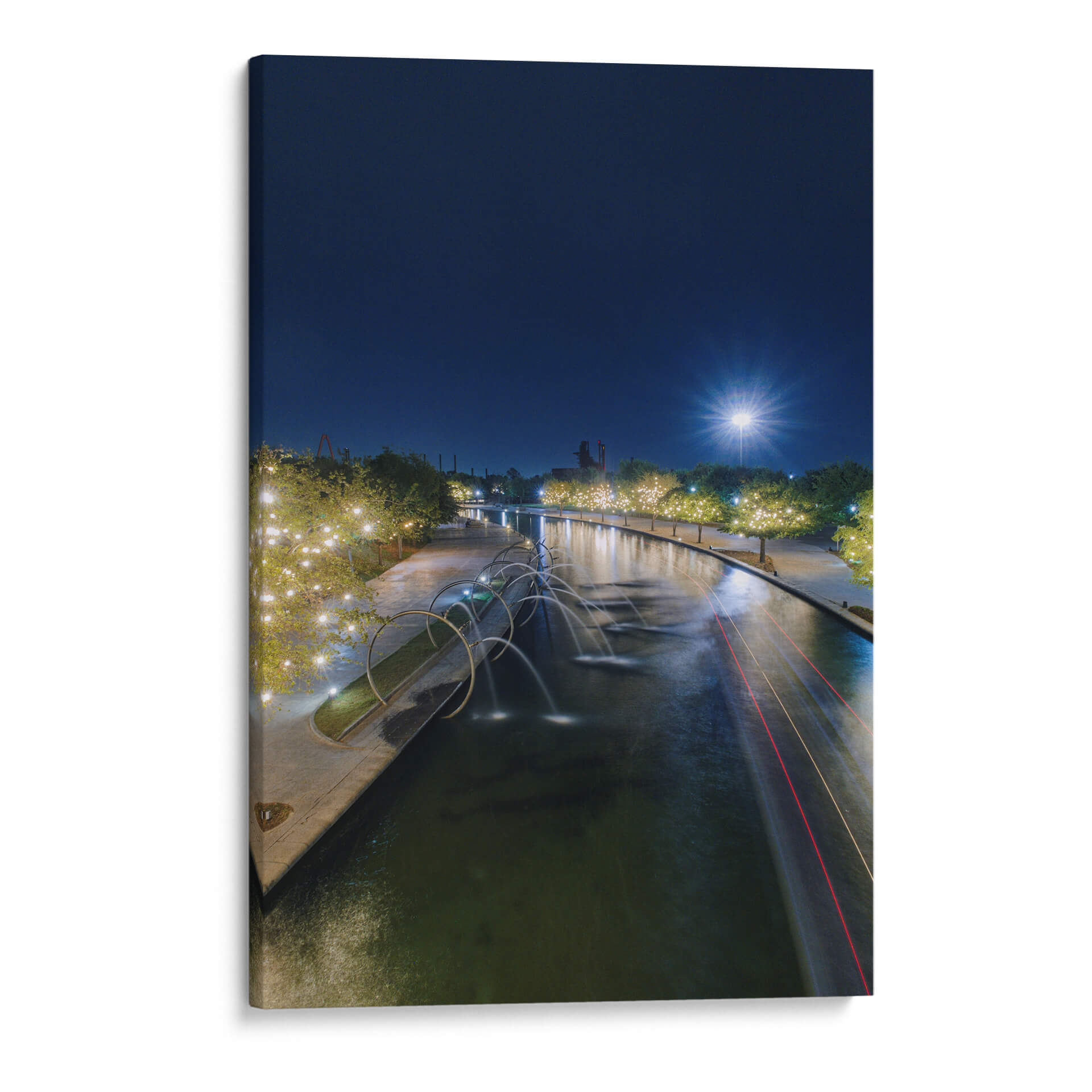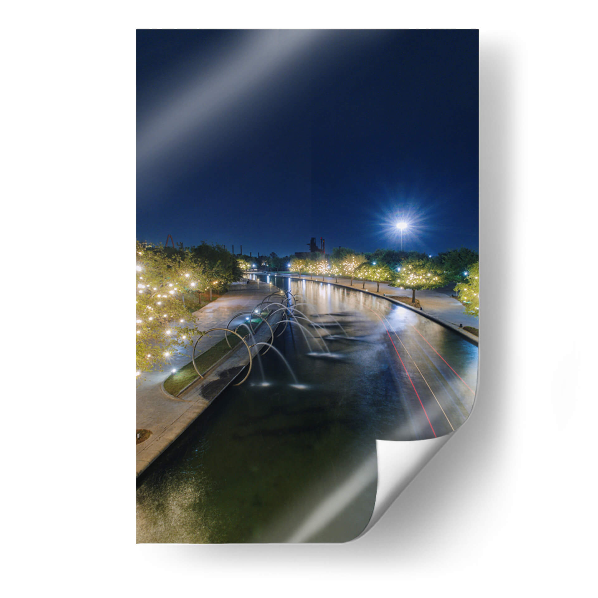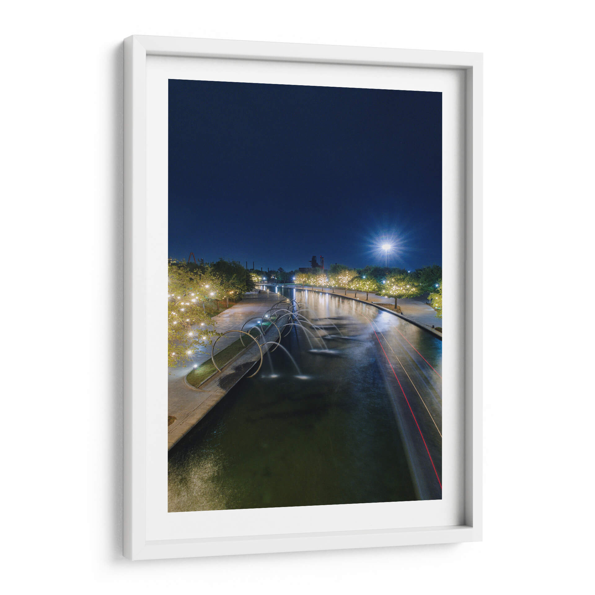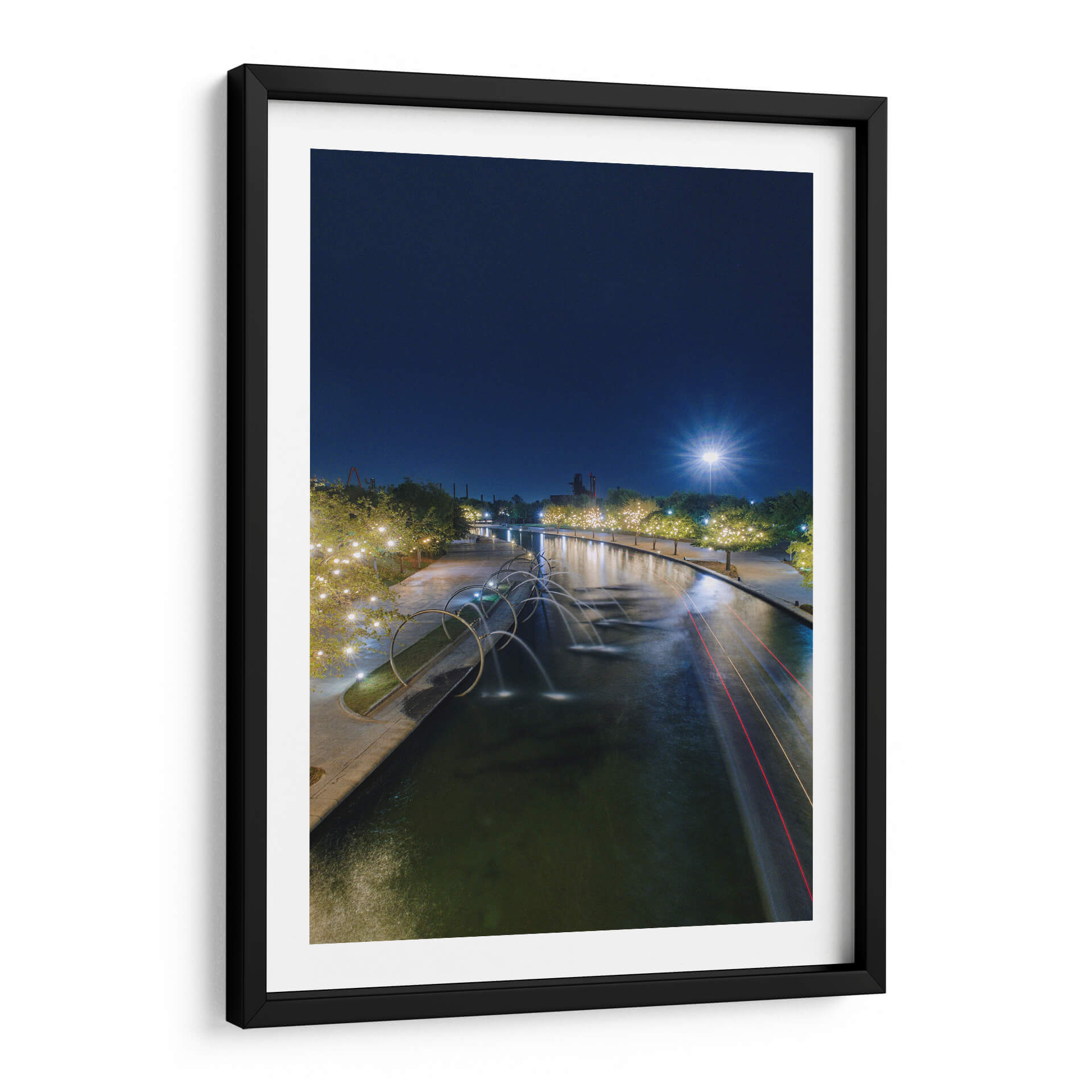 Sumérgete en la atmósfera nocturna y vibrante de "Paseo Santa Lucía" de Abner Fabian, un cuadro decorativo que captura la esencia de un paseo urbano iluminado. Esta obra de arte presenta un canal de agua sereno bajo un cielo estrellado, flanqueado por árboles adornados con luces cálidas que crean un ambiente mágico y acogedor. Las fuentes, con sus arcos de agua danzantes, añaden un toque de dinamismo a la escena, mientras que las sutiles estelas de luz de vehículos sugieren el movimiento de la vida nocturna. La paleta de colores, dominada por profundos azules nocturnos y el brillo dorado de las luces, evoca una sensación de calma y sofisticación. El estilo fotográfico, con un enfoque en la captura de la luz y el movimiento, convierte esta pieza en un punto focal cautivador para cualquier espacio. Ideal para salones modernos, recibidores o incluso oficinas que buscan añadir un toque de elegancia urbana y serenidad. "Paseo Santa Lucía" no es solo una imagen, es una invitación a soñar despierto y a traer la belleza de la noche a tu hogar.