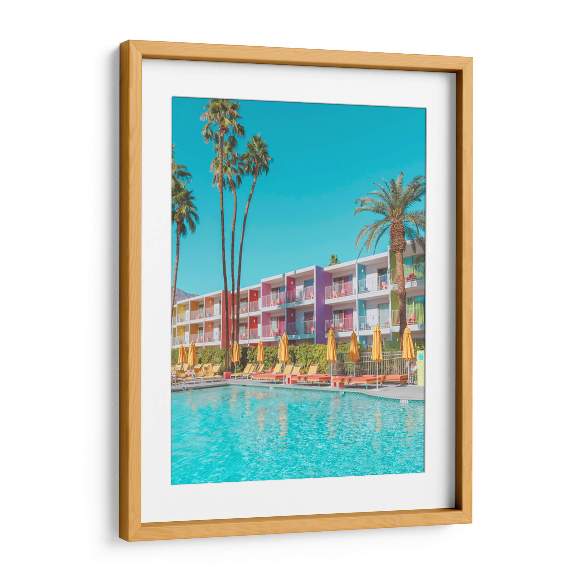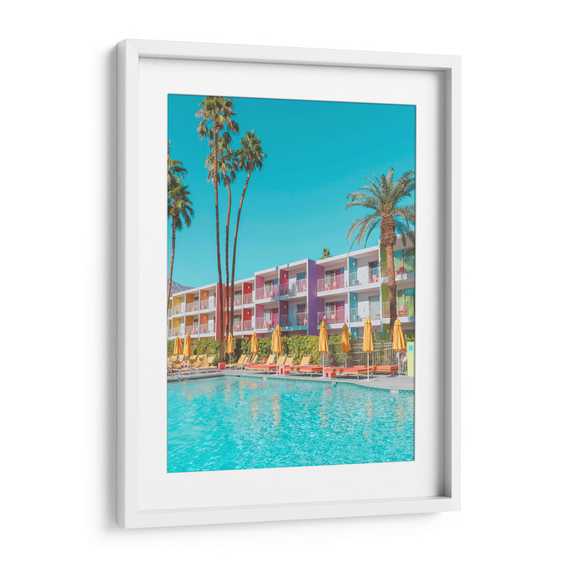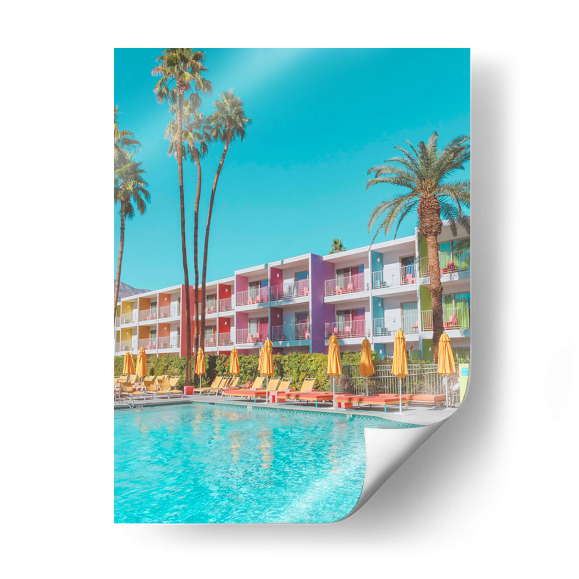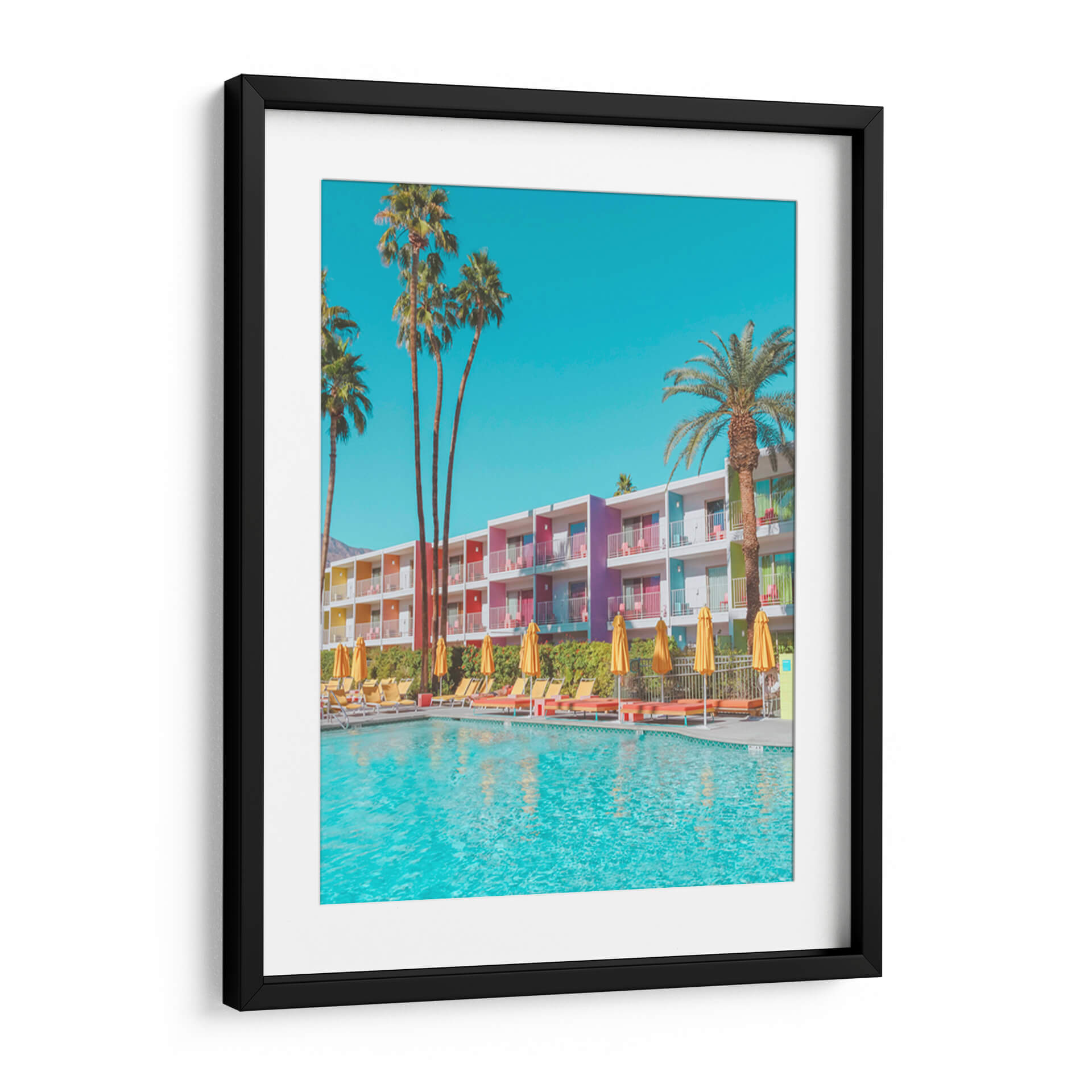 Sumérgete en la vibrante escena de Palm Springs con este cautivador cuadro decorativo, "Piscina del hotel Saguaro". La obra de Tom Windeknecht captura la esencia de un día soleado y relajado, invitándote a un oasis de tranquilidad y color. La imponente paleta de azules celestes y turquesas intensos del cielo y la piscina contrasta de manera exquisita con los vibrantes tonos pastel del hotel, que incluyen rosas, amarillos, púrpuras y blancos, creando una atmósfera de alegría y sofisticación moderna. Las esbeltas palmeras se alzan majestuosas contra el cielo despejado, añadiendo un toque exótico y tropical que evoca vacaciones y descanso. Las hileras de tumbonas y sombrillas amarillas invitan a la contemplación, sugiriendo un espacio de ocio y placer. Este cuadro es una celebración de la arquitectura retro y la vida al aire libre, transmitiendo una sensación de calma y escapismo. Ideal para transformar cualquier espacio, desde una sala de estar moderna hasta un dormitorio sereno o una oficina con un toque de personalidad, este lienzo decorativo aportará un aire de vacación perpetua y estilo inconfundible a tu hogar. Un recordatorio visual de la belleza del diseño y la serenidad del verano.