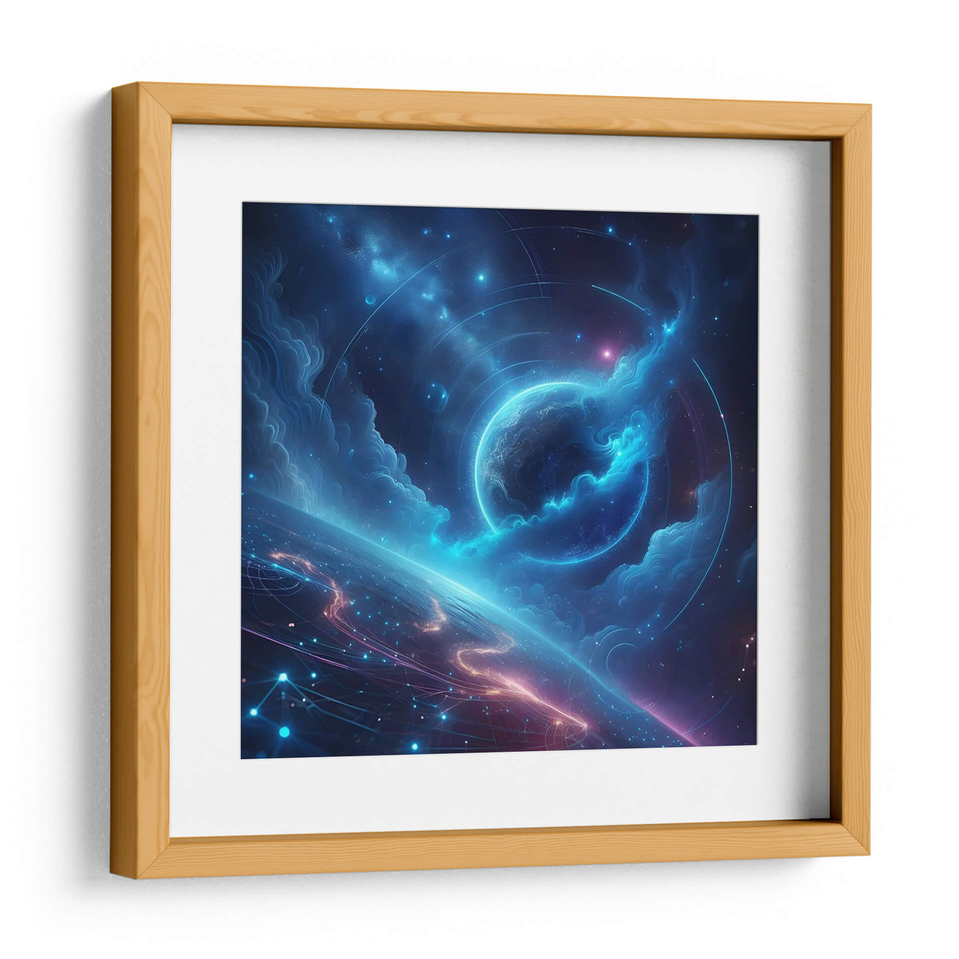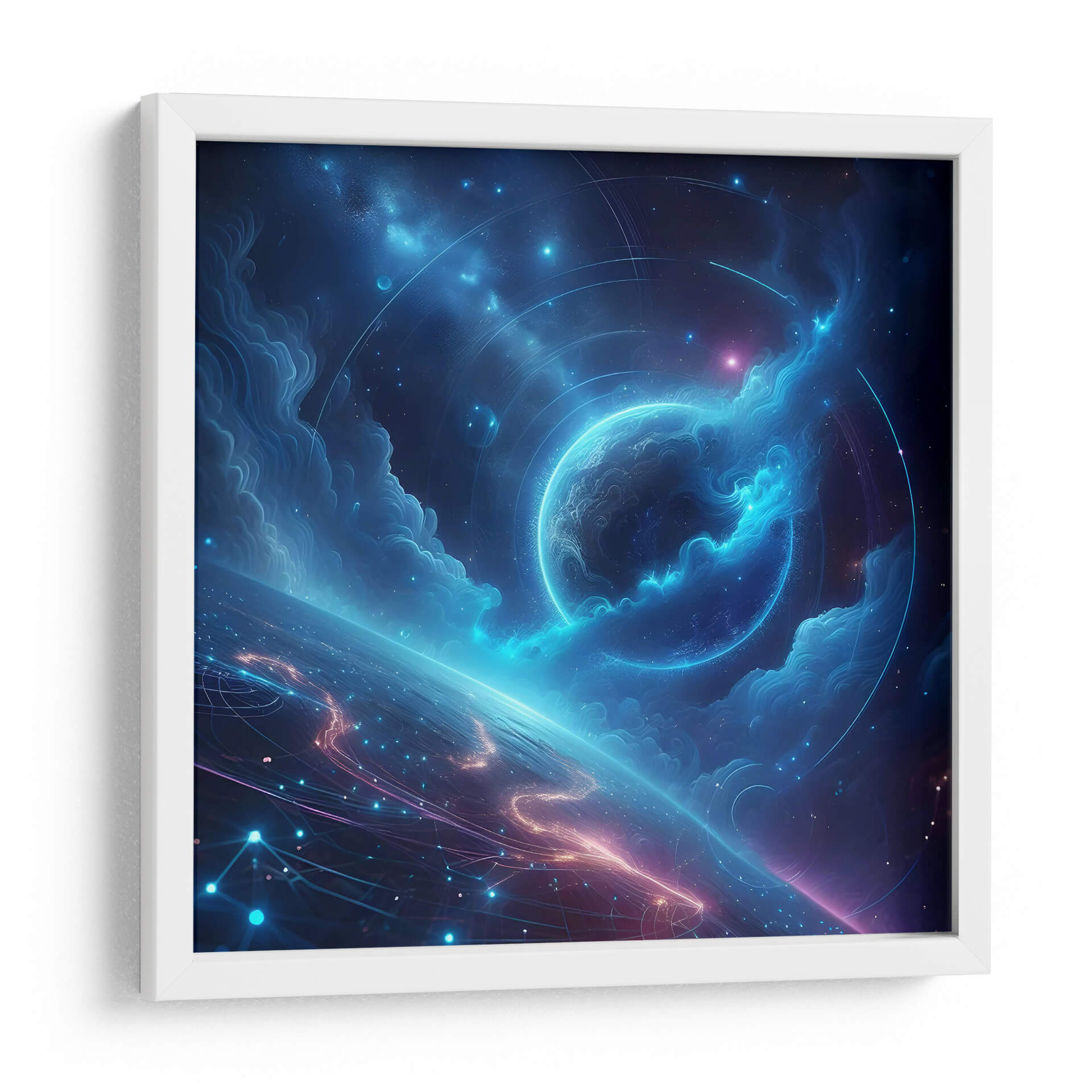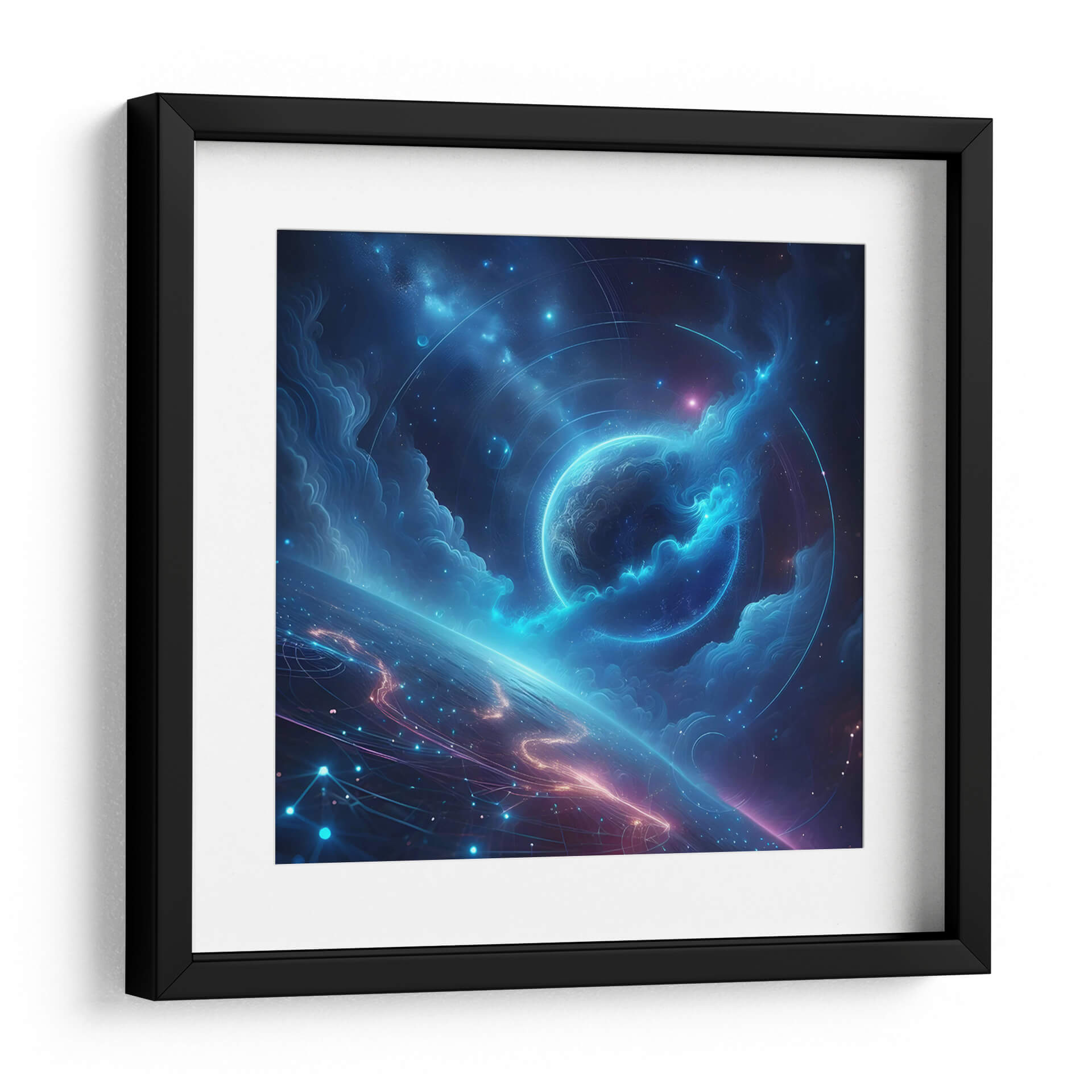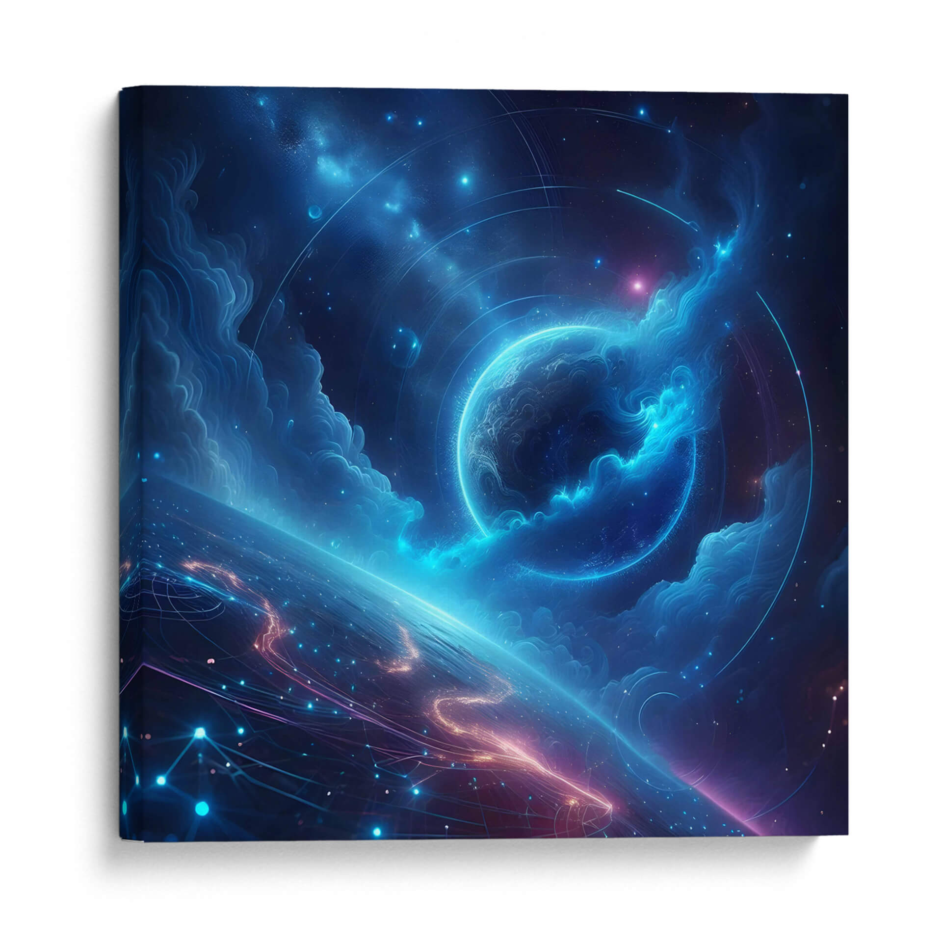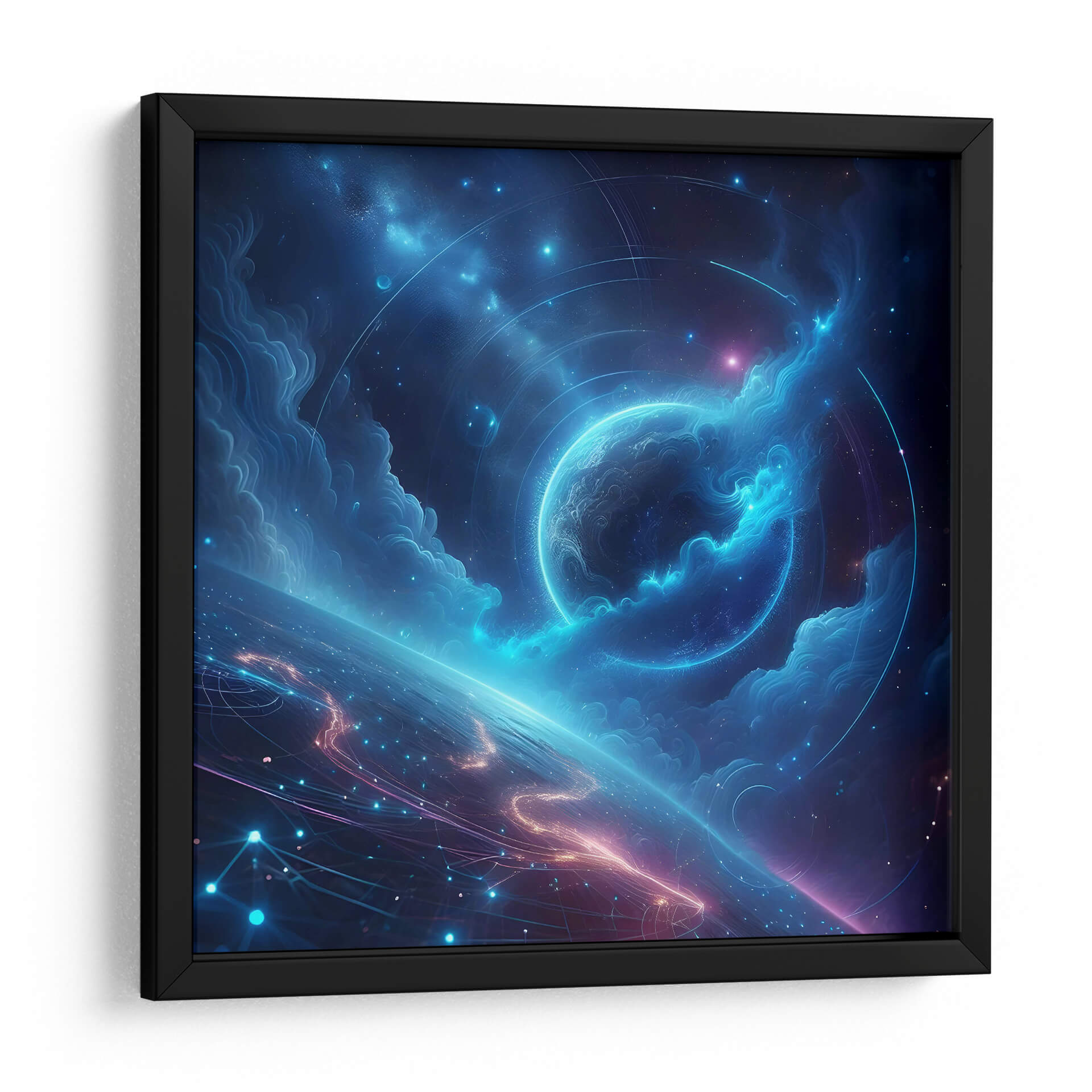Sumérgete en la inmensidad cósmica con "Planeta Neón", una obra de arte digital que redefine la decoración de paredes. Esta pieza cautiva con su vibrante paleta de azules eléctricos y toques de neón rosado, creando una atmósfera de misterio y exploración galáctica. La composición presenta un planeta o cuerpo celeste envuelto en nubes etéreas y surcado por senderos luminosos de energía, evocando un viaje interdimensional o el descubrimiento de un nuevo mundo. Las sutiles referencias a redes o constelaciones añaden una capa de complejidad, sugiriendo interconexión y el vasto universo que nos rodea. "Planeta Neón" es perfecto para añadir un toque futurista y enérgico a cualquier espacio moderno, ya sea una sala de estar, un estudio de diseño o una oficina. Su estilo abstracto y su temática espacial lo convierten en un punto focal intrigante que estimula la imaginación y fomenta la conversación. Ideal para quienes buscan una decoración de pared única y contemporánea que inspire asombro y curiosidad. Transforma tu hogar u oficina en un portal a lo desconocido con este cuadro decorativo de impacto visual innegable. Una pieza que ilumina tus sentidos y te transporta a paisajes oníricos y tecnológicos.