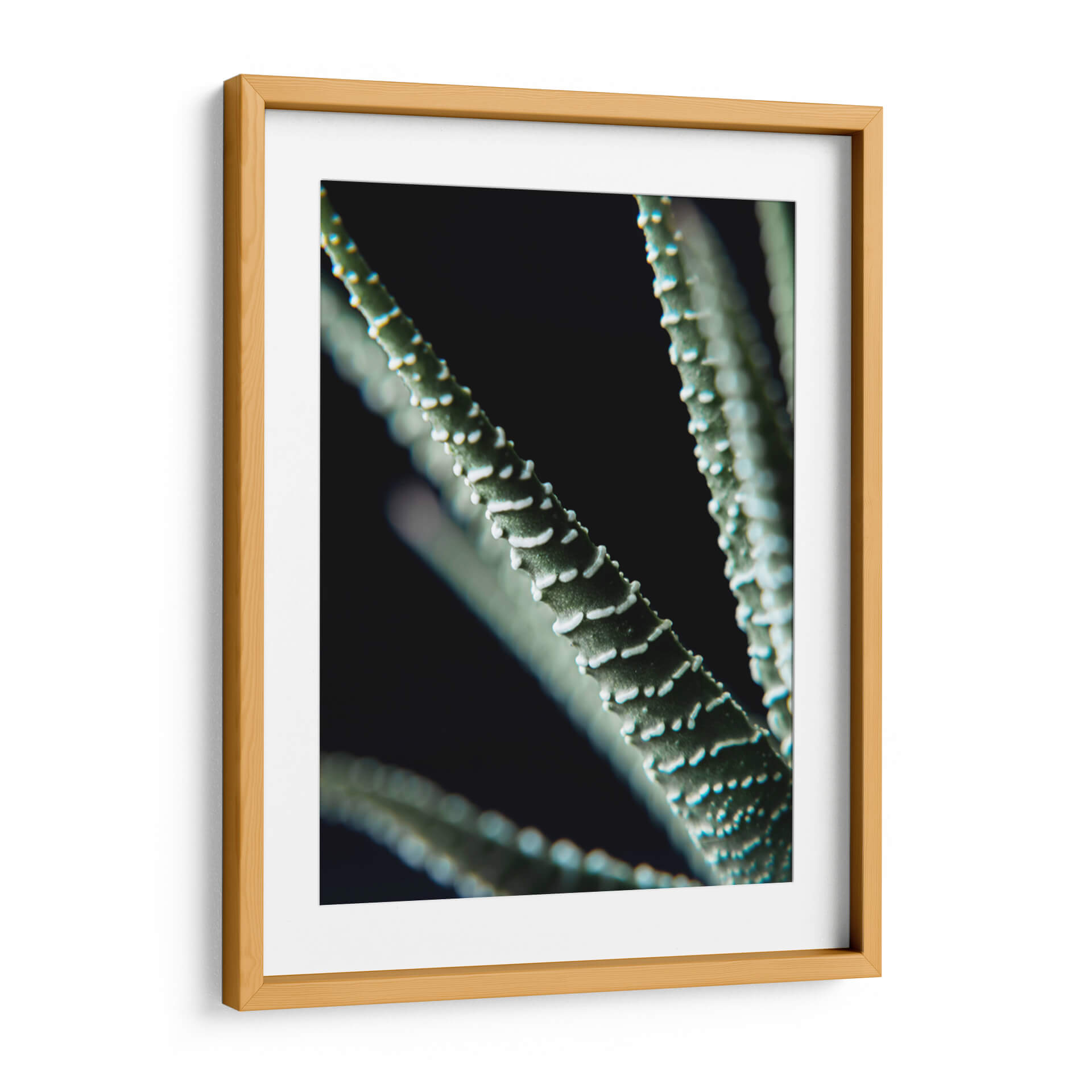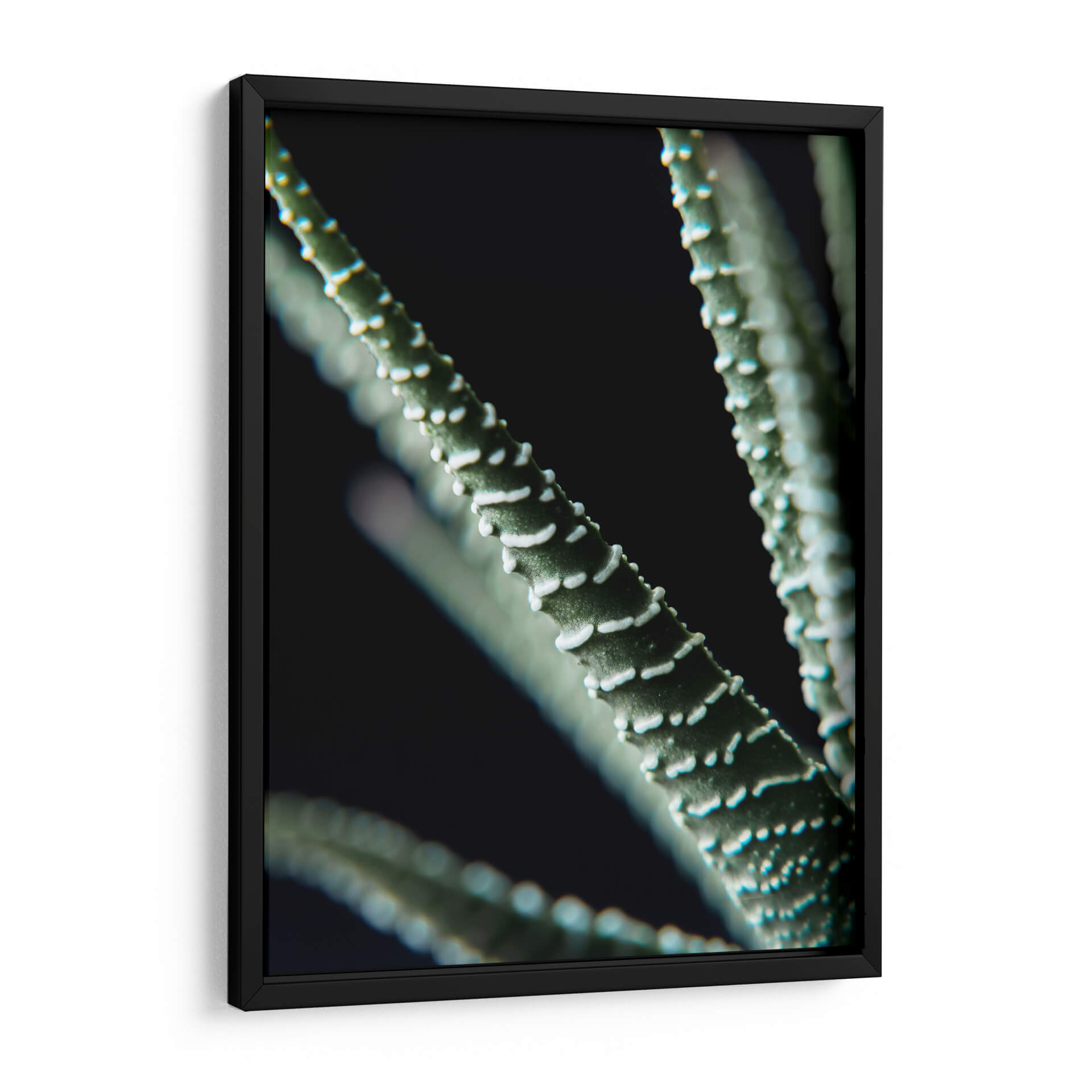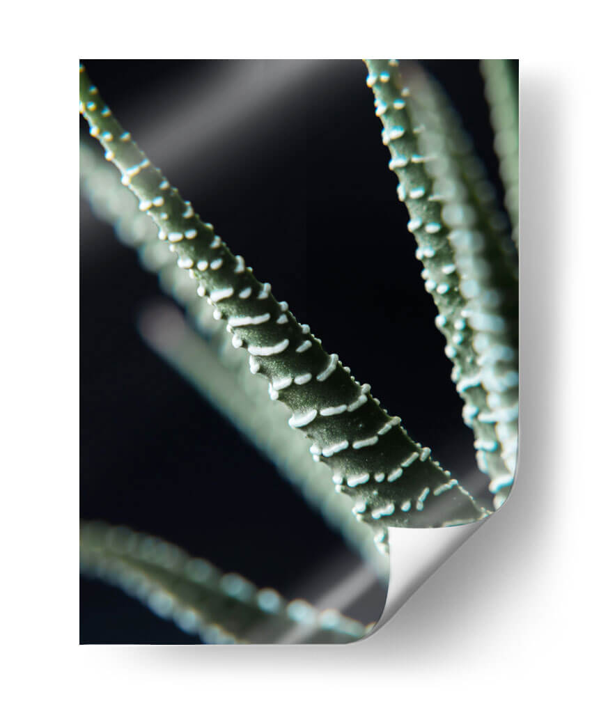 Sumérgete en la belleza detallada de "Planta de Cerca", una obra de arte visualmente cautivadora que captura la intrincada textura de una suculenta con un enfoque cercano y dramático. Los tonos verdes profundos se entrelazan con sutiles matices de blanco en las protuberancias de la planta, creando un contraste suave pero pronunciado contra un fondo oscuro y misterioso. La composición se centra en las líneas orgánicas y las formas naturales, invitando a la contemplación y a una conexión íntima con el mundo botánico. Esta pieza es perfecta para aquellos que buscan añadir un toque de naturaleza serena y sofisticada a su hogar u oficina. Ideal para espacios que requieren un elemento de calma y elegancia, "Planta de Cerca" funciona maravillosamente en salas de estar modernas, dormitorios tranquilos o estudios donde la concentración y la serenidad son clave. Su estilo fotográfico macro resalta la complejidad y la delicadeza de la vida vegetal, ofreciendo una perspectiva única que embellecerá cualquier pared.