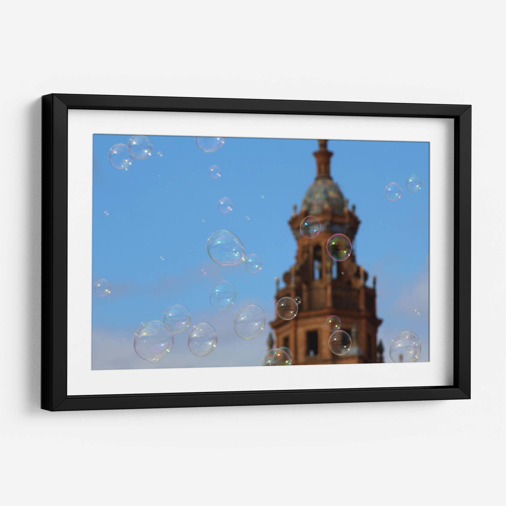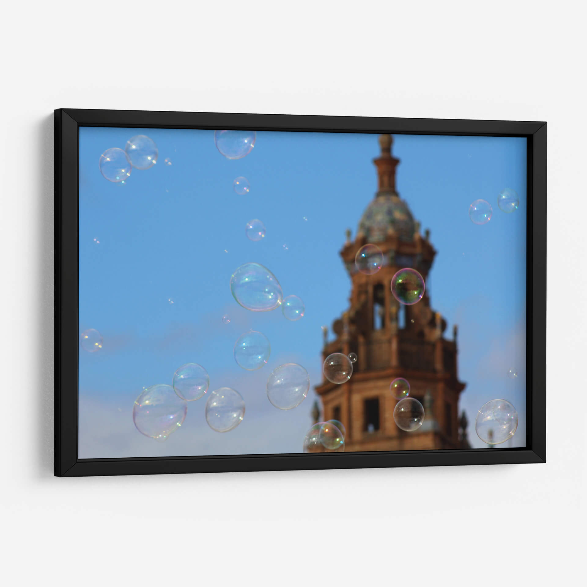 Captura la magia efímera y la belleza serena con el cuadro decorativo "Plaza España y Burbujas" de Carlos Franken. Esta obra transporta al espectador a un momento lúdico y contemplativo bajo un cielo azul vibrante, donde las burbujas iridiscentes flotan con gracia frente a la imponente arquitectura de la Plaza de España. La composición se centra en el contraste entre la solidez de la edificación y la ligereza etérea de las esferas translúcidas, creando una atmósfera de ensueño y espontaneidad. La paleta de colores, dominada por el azul claro del cielo y los tonos cálidos y terrosos de la torre, se ve realzada por los destellos multicolores reflejados en las burbujas, añadiendo un toque de vitalidad y alegría. El estilo fotográfico, con un enfoque suave en el fondo, resalta la nitidez y el brillo de las burbujas en primer plano, invitando a la reflexión sobre la fugacidad de la vida y la belleza en lo cotidiano. "Plaza España y Burbujas" es una pieza ideal para añadir un toque de originalidad y optimismo a cualquier espacio, ya sea una sala de estar moderna, un recibidor acogedor o una oficina que busca inspiración. Su estética única la convierte en un punto focal que atrae miradas y conversaciones, aportando una sensación de calma y asombro a tu decoración mural. Descubre la poesía visual de Carlos Franken y transforma tu hogar con este cuadro decorativo único.