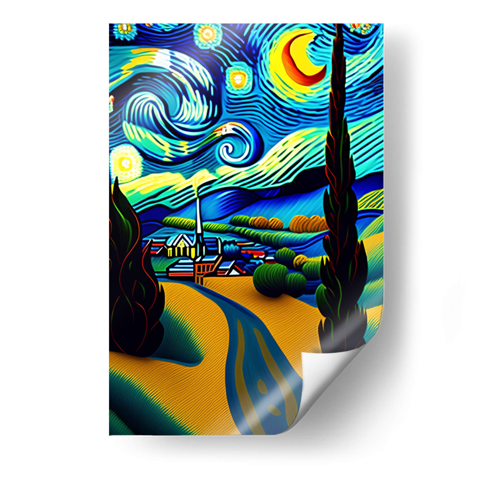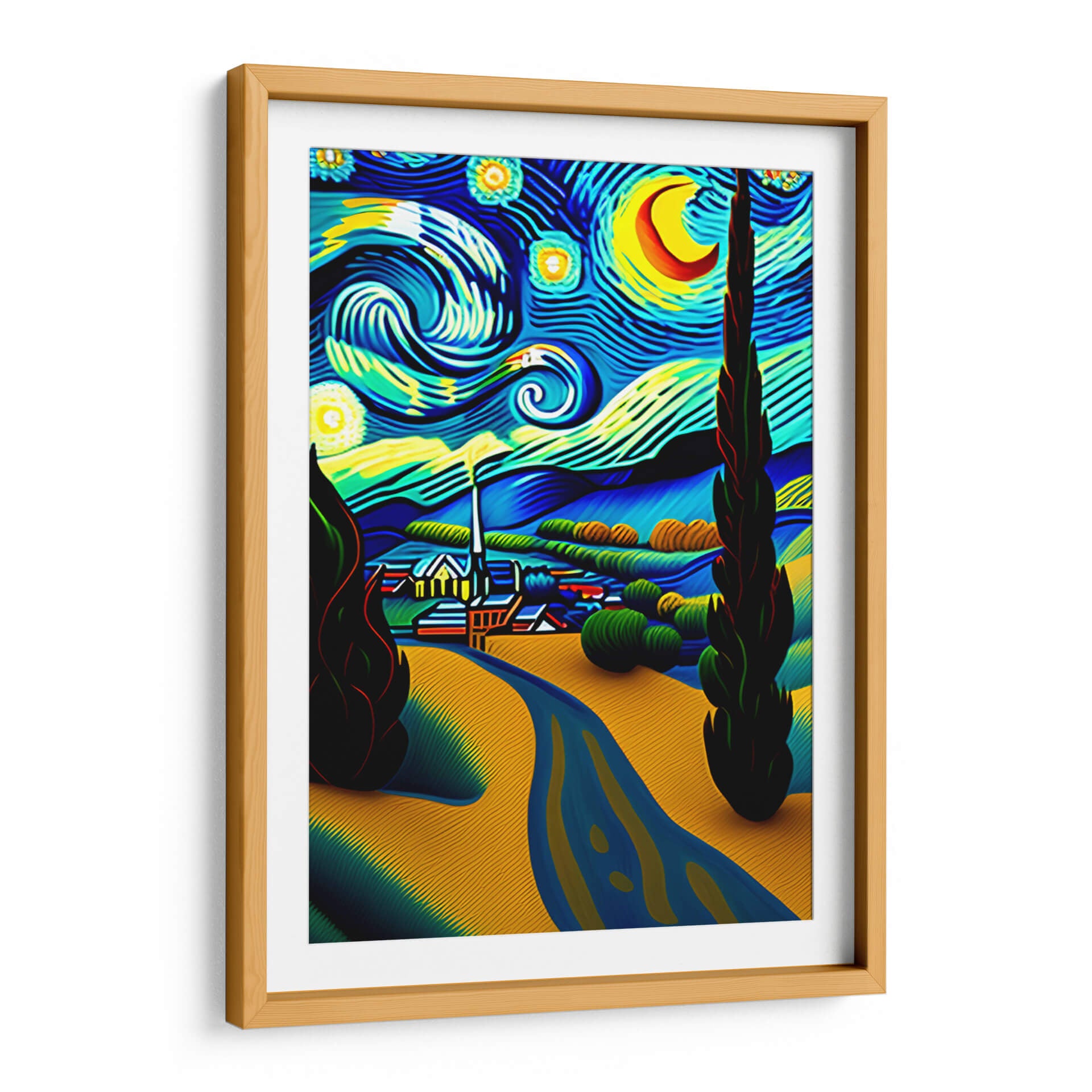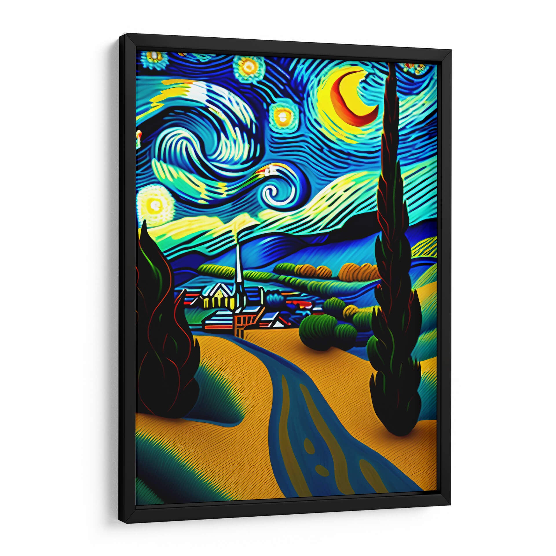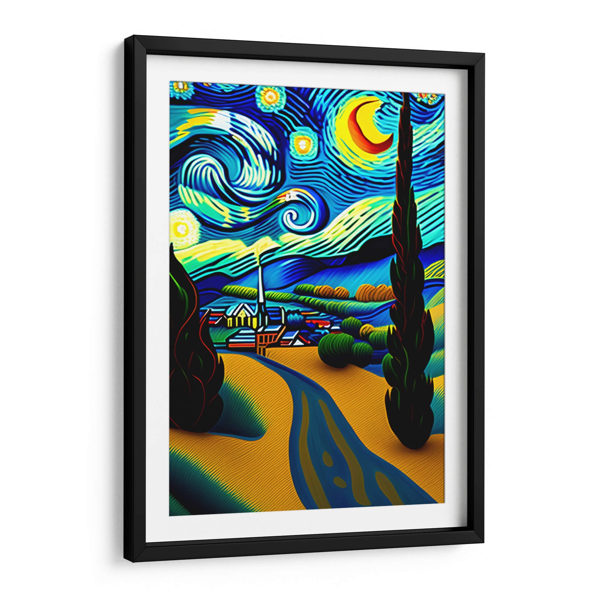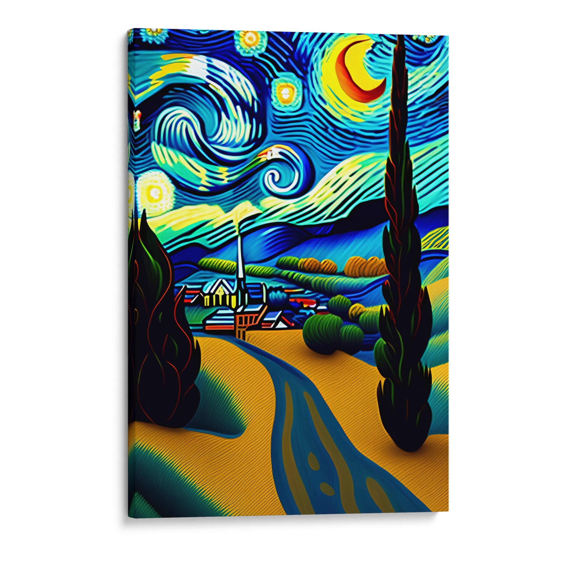 Embárcate en un viaje visual a través de "Pueblo en el Valle Impresionista", una obra de arte que captura la esencia de un paisaje rural bañado por la luz de la luna y las estrellas. Este cuadro decorativo, inspirado en el vibrante estilo impresionista, te transportará a un rincón sereno donde la naturaleza y la arquitectura se fusionan en armonía. La paleta de colores, dominada por profundos azules nocturnos, amarillos luminosos y verdes terrosos, crea una atmósfera de ensueño y tranquilidad. Las pinceladas dinámicas y fluidas evocan el movimiento del cielo estrellado y la suavidad de las colinas, invitando a la contemplación. La composición, con sus cipreses imponentes flanqueando un pintoresco pueblo, guía la mirada del espectador hacia el corazón de la escena, donde un cielo turbulento pero hermoso domina el firmamento. Esta pieza es ideal para añadir un toque de magia y serenidad a tu sala de estar, dormitorio u oficina, transformando cualquier espacio en un refugio de paz y belleza artística. Descubre la obra de DEA Digital Esoteric Art y deja que su encanto impresionista enriquezca tu decoración.