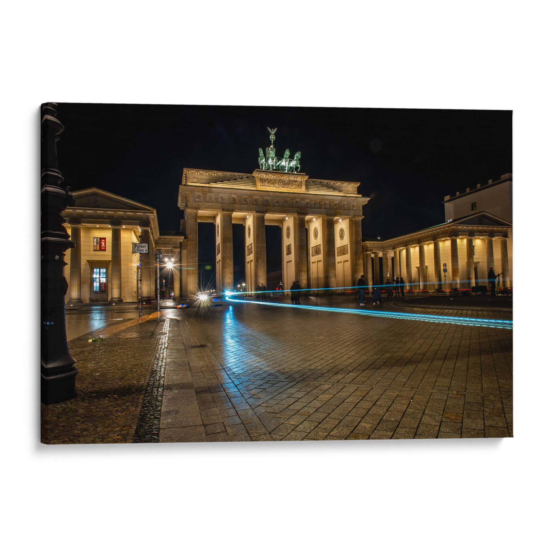 Captura la majestuosidad de Berlín con este evocador cuadro decorativo de la Puerta de Brandeburgo. La obra transporta al espectador a una noche vibrante en la capital alemana, donde la arquitectura icónica se ilumina bajo el cielo estrellado. El artista Gustavo Cohen ha logrado plasmar la esencia monumental de este símbolo histórico a través de una perspectiva que resalta su grandeza, con luces de vehículos creando estelas de movimiento que añaden dinamismo a la escena. La paleta de colores nocturnos, dominada por tonos oscuros y acentos de luz dorada y azul eléctrico, genera una atmósfera sofisticada y enérgica. Los detalles de la fachada, las columnas imponentes y la cuadriga en la cima invitan a la contemplación y evocan un sentido de historia y poder. Este cuadro decorativo es perfecto para añadir un toque de elegancia urbana y un aire de viaje a cualquier espacio, ideal para salones modernos, estudios o recibidores que buscan una pieza de conversación impactante y con carácter. Transforma tu hogar u oficina con la presencia imponente de este icono arquitectónico, una ventana a la historia y la vitalidad de una ciudad legendaria.
