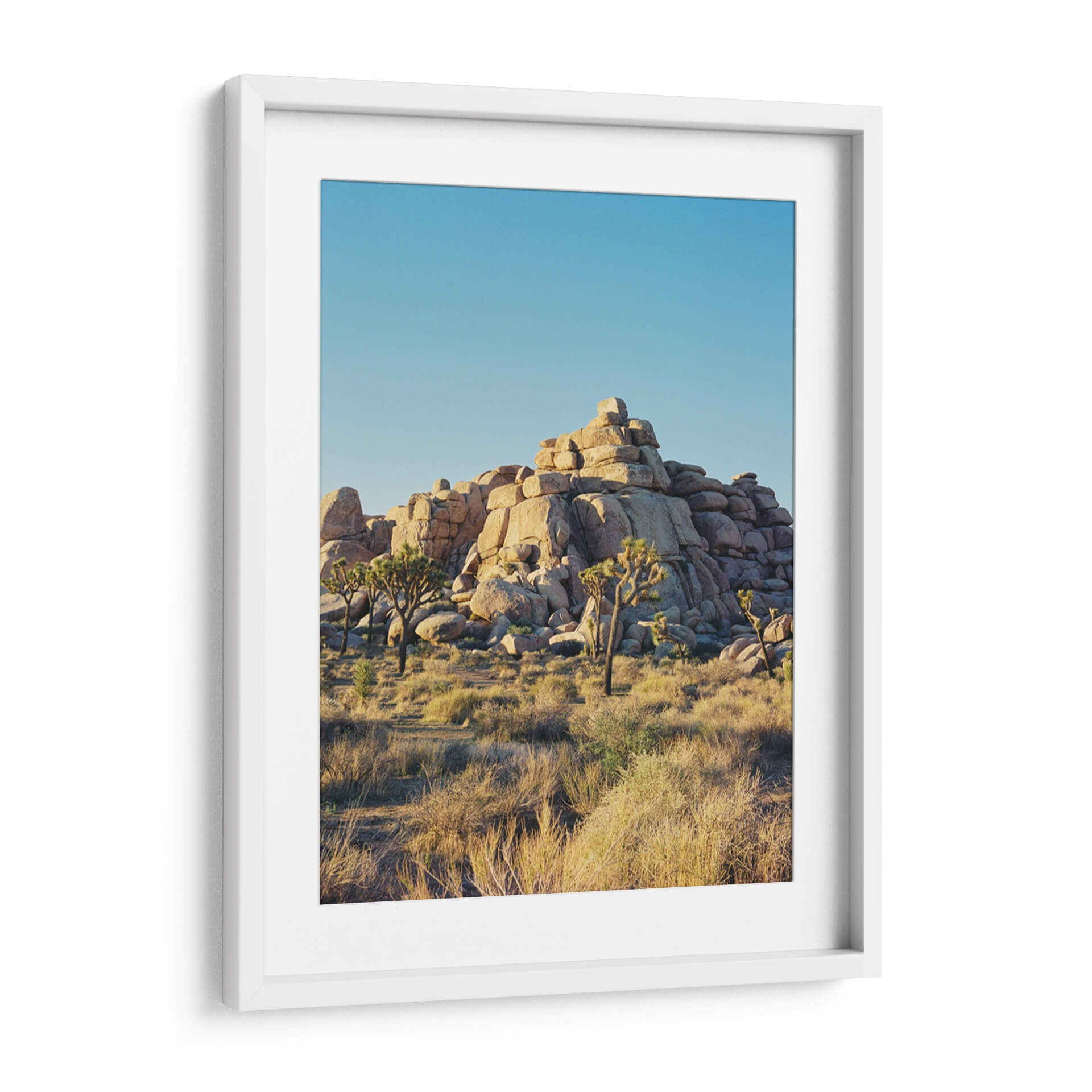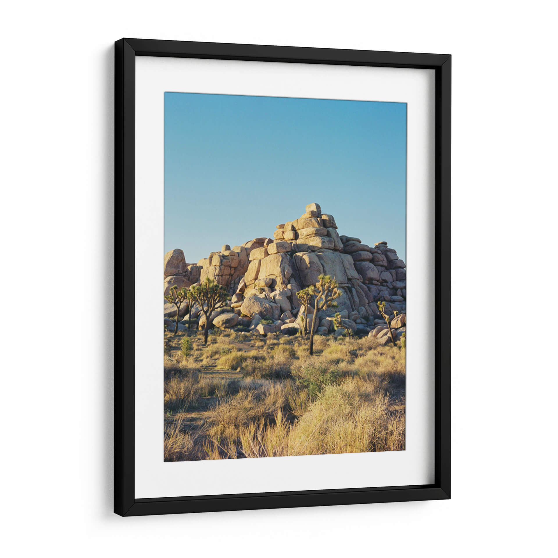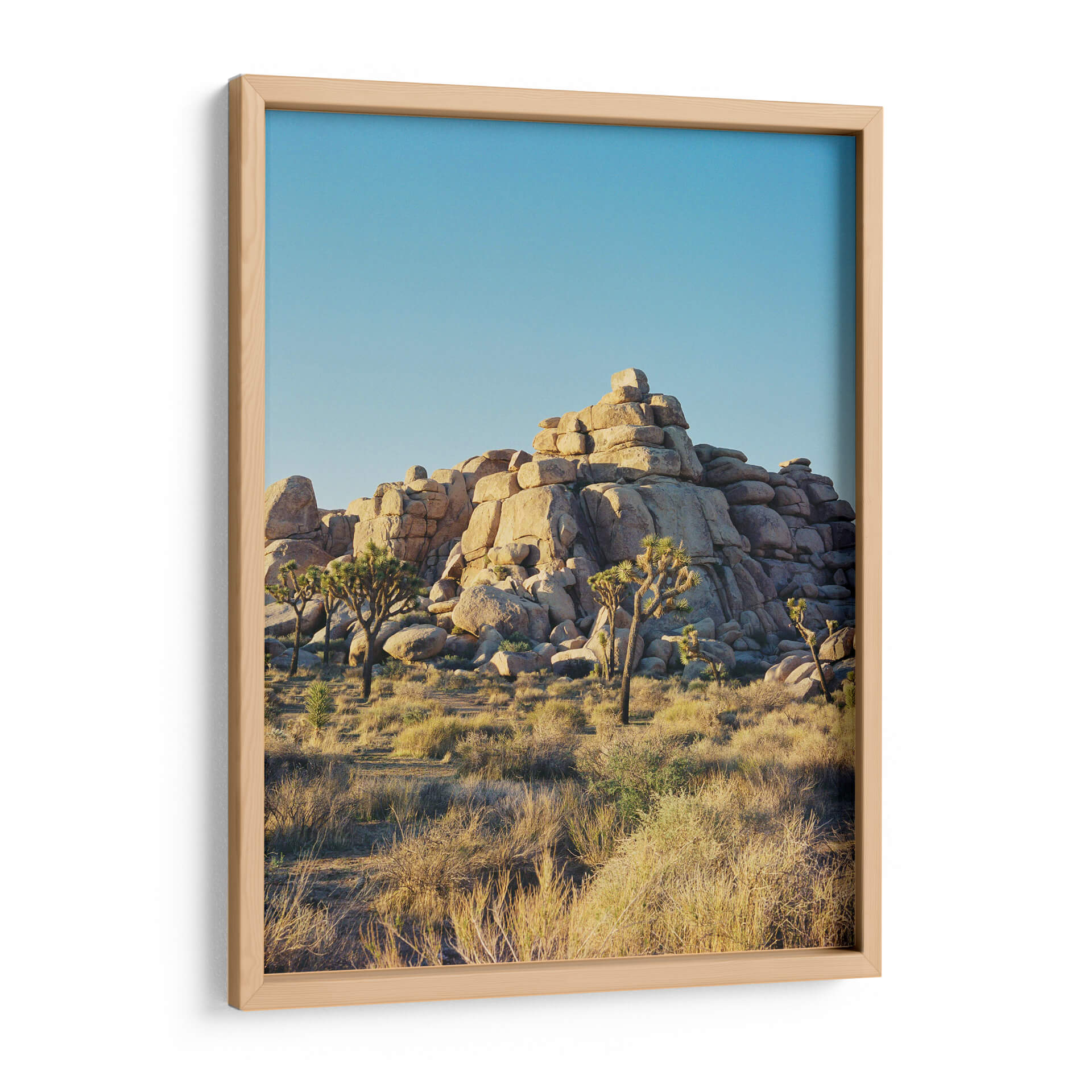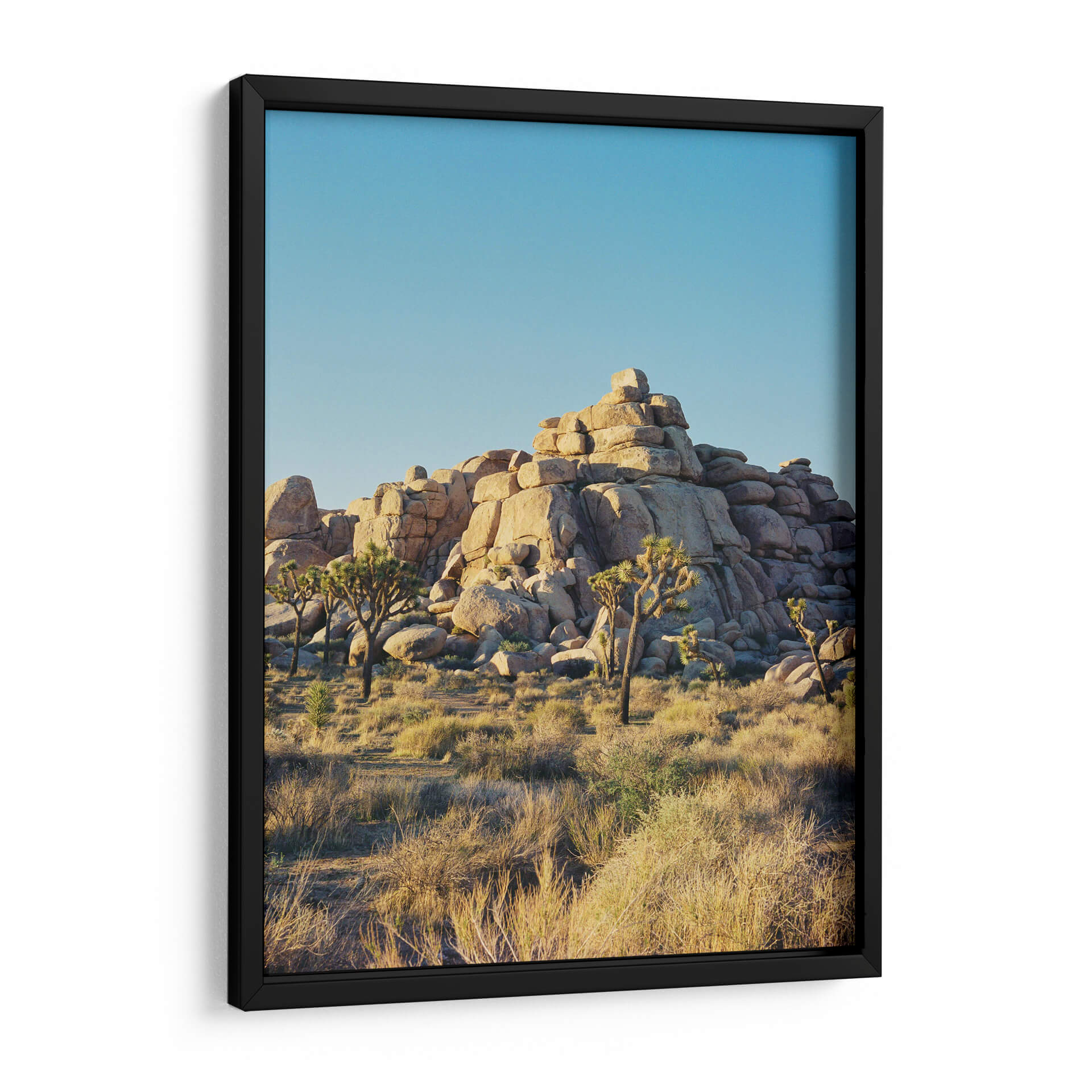 Captura la esencia atemporal del desierto con este evocador cuadro decorativo "Puesta de sol en Joshua Tree", una obra maestra de Bethany Young. Esta pieza traslada la majestuosidad de un paisaje icónico directamente a tu hogar u oficina, invitando a la contemplación y la serenidad. La obra presenta una imponente formación rocosa bañada por la cálida luz del atardecer, destacando las texturas rugosas y las formas orgánicas que definen este ecosistema único. Los árboles de Joshua, con sus siluetas distintivas, se alzan con resiliencia entre la vegetación seca y dorada, creando un contraste visual cautivador. La paleta de colores, dominada por tonos tierra cálidos, ocres dorados y el azul sereno del cielo despejado, evoca una sensación de paz y conexión con la naturaleza. El estilo fotográfico y realista de la obra permite apreciar cada detalle, desde las sombras proyectadas por el sol hasta la delicada textura de la hierba seca. "Puesta de sol en Joshua Tree" es una invitación a la calma y la introspección, perfecta para espacios que buscan un toque de naturaleza salvaje y una atmósfera de tranquilidad. Ideal para salas de estar, dormitorios o estudios que deseen un punto focal inspirado en la belleza del desierto, este cuadro decorativo añadirá profundidad y carácter a cualquier decoración.