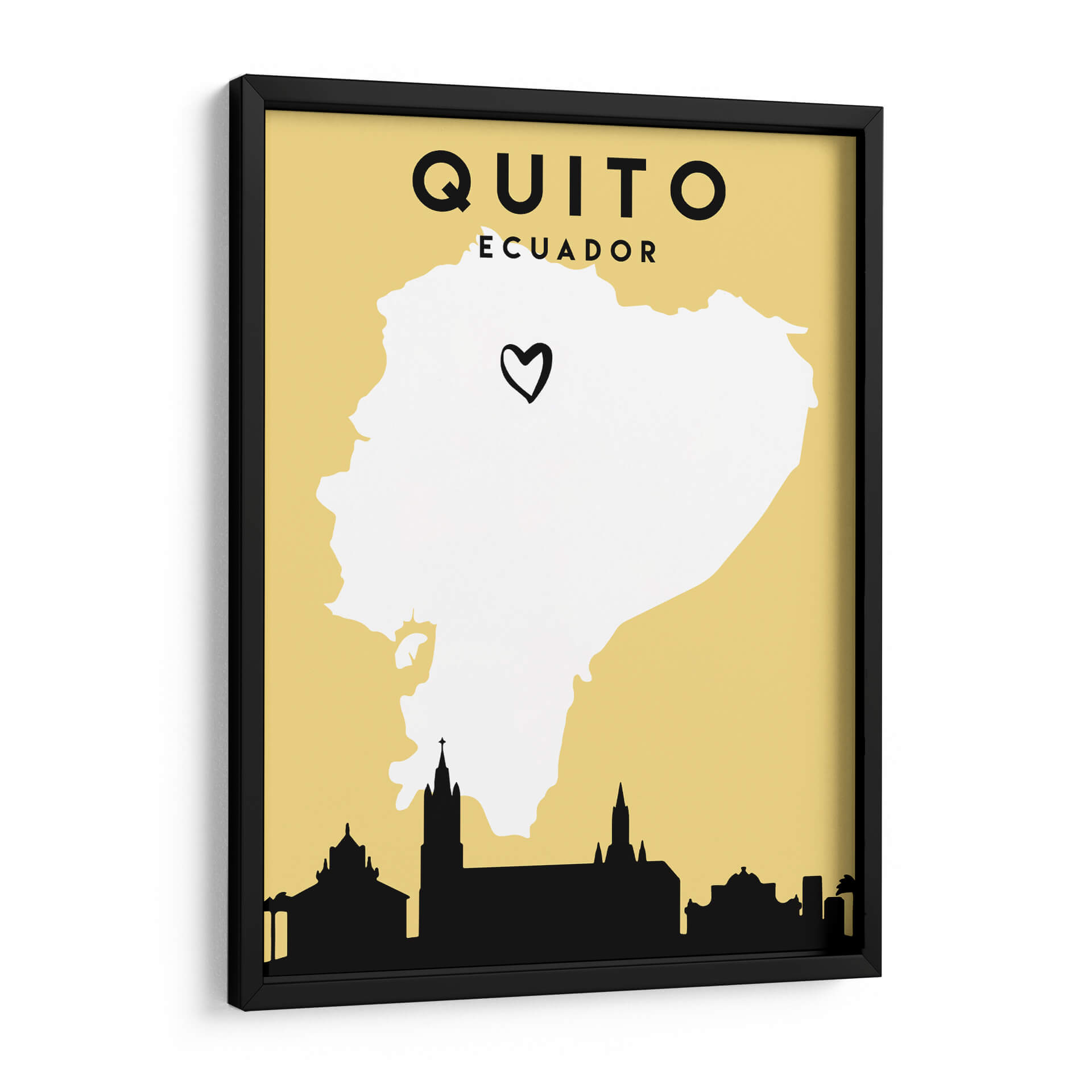 Captura la esencia de la capital ecuatoriana con este evocador cuadro decorativo de Quito, Ecuador. La obra presenta un diseño minimalista y estilizado del contorno del país, destacando la ubicación de Quito con un sutil corazón. El fondo en tono amarillo mostaza vibrante contrasta elegantemente con la silueta negra de la arquitectura emblemática de la ciudad, que incluye iglesias y edificios históricos, evocando la rica historia y cultura de la capital. La paleta de colores, dominada por el amarillo, el blanco y el negro, confiere una atmósfera moderna y sofisticada, ideal para cualquier espacio que busque un toque de identidad y diseño contemporáneo. Este cuadro es una pieza perfecta para quienes aman Quito, desean celebrar sus raíces ecuatorianas o buscan una decoración de pared única y con significado. Su estilo gráfico y limpio lo convierte en un acento visual potente para salas de estar, oficinas o estudios, añadiendo carácter y un punto de conversación. Integrado de forma natural, este cuadro decorativo de Quito es más que una simple imagen; es una declaración de afecto por una ciudad llena de encanto y vida. Añade este toque de arte geográfico a tu hogar.