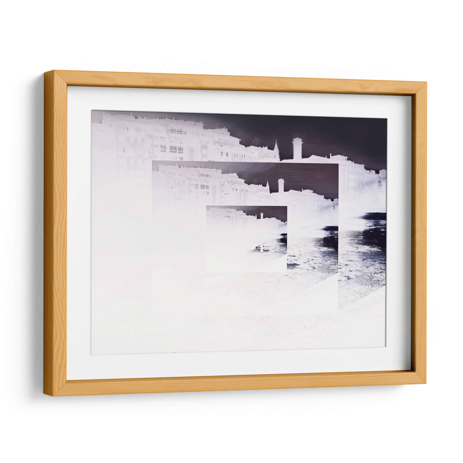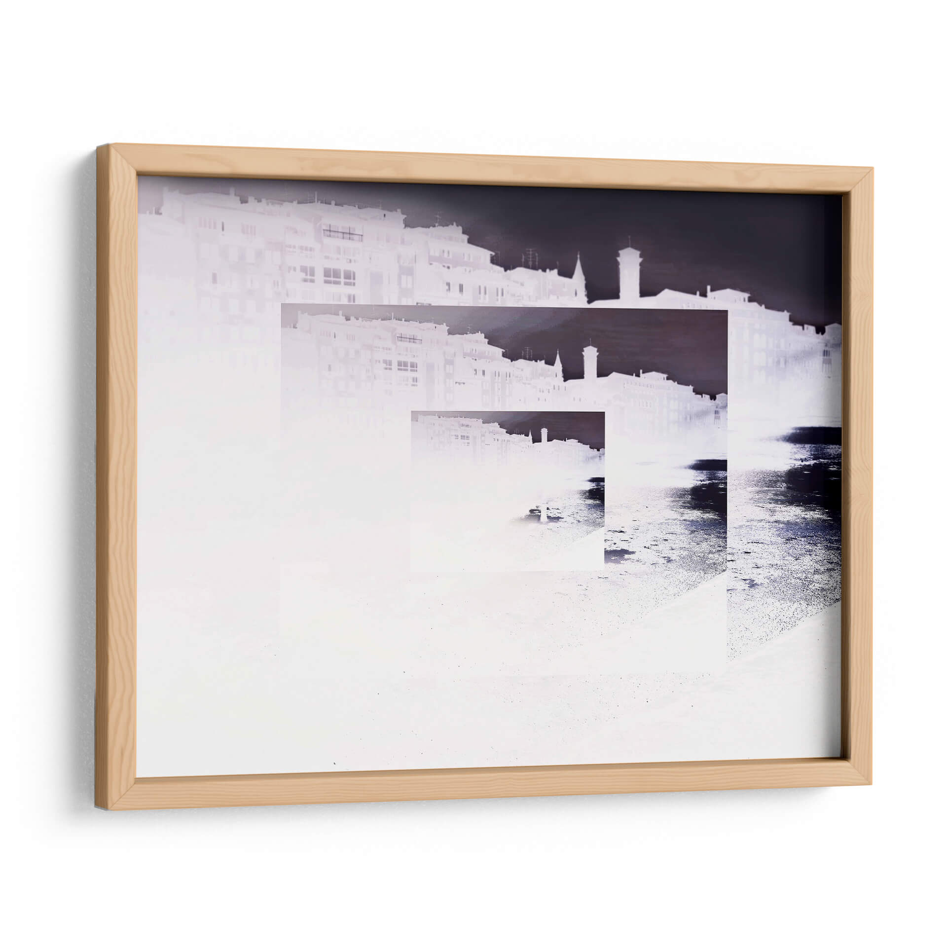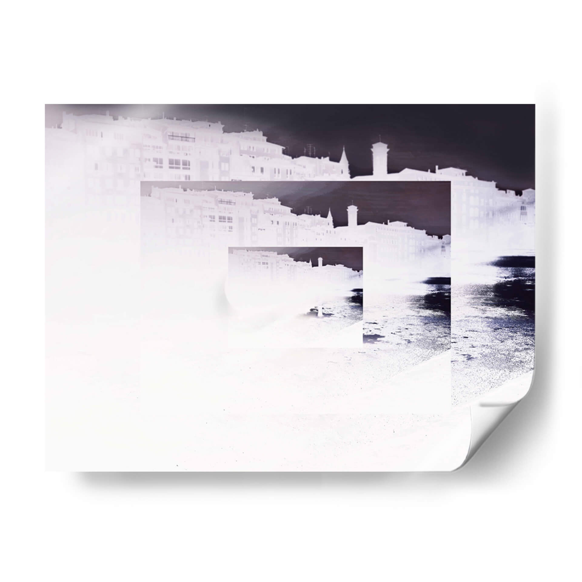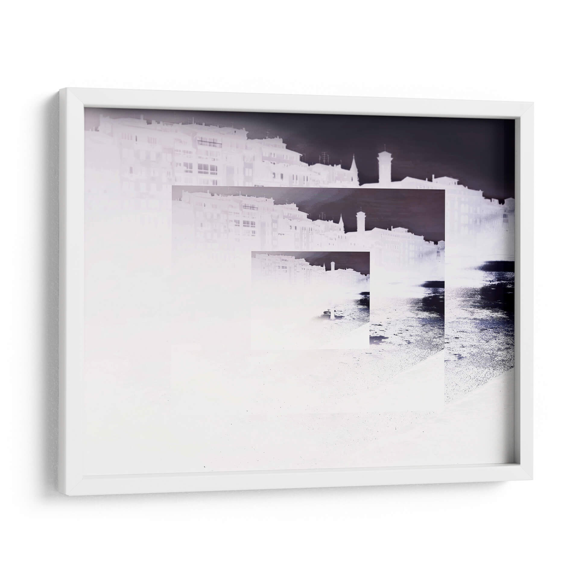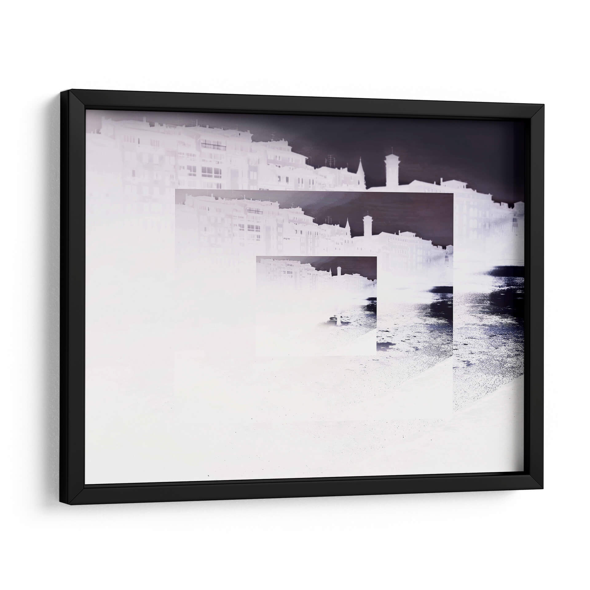 Sumérgete en la evocadora obra "RECUERDOS" del artista Salminda, una pieza que invita a la reflexión y a la introspección. Este cuadro decorativo presenta una composición abstracta y fragmentada de una silueta urbana, que parece emerger de la neblina o del tiempo. La paleta de colores se centra en tonos blancos y grises, con sutiles acentos de azul oscuro y negro que crean un contraste dramático y enigmático. Las formas arquitectónicas se superponen y se desvanecen, sugiriendo la naturaleza efímera de la memoria y la constante transformación de las ciudades. La técnica empleada, que juega con la luz y la oscuridad, aporta una atmósfera de misterio y nostalgia, ideal para espacios que buscan un toque de sofisticación y profundidad emocional. "RECUERDOS" es perfecto para añadir un punto focal artístico a tu sala de estar, estudio u oficina, estimulando la conversación y la contemplación. Su estilo contemporáneo y su temática universal sobre la memoria lo convierten en una adición valiosa a cualquier colección de arte, aportando una sensación de calma reflexiva y una estética moderna a tu decoración.