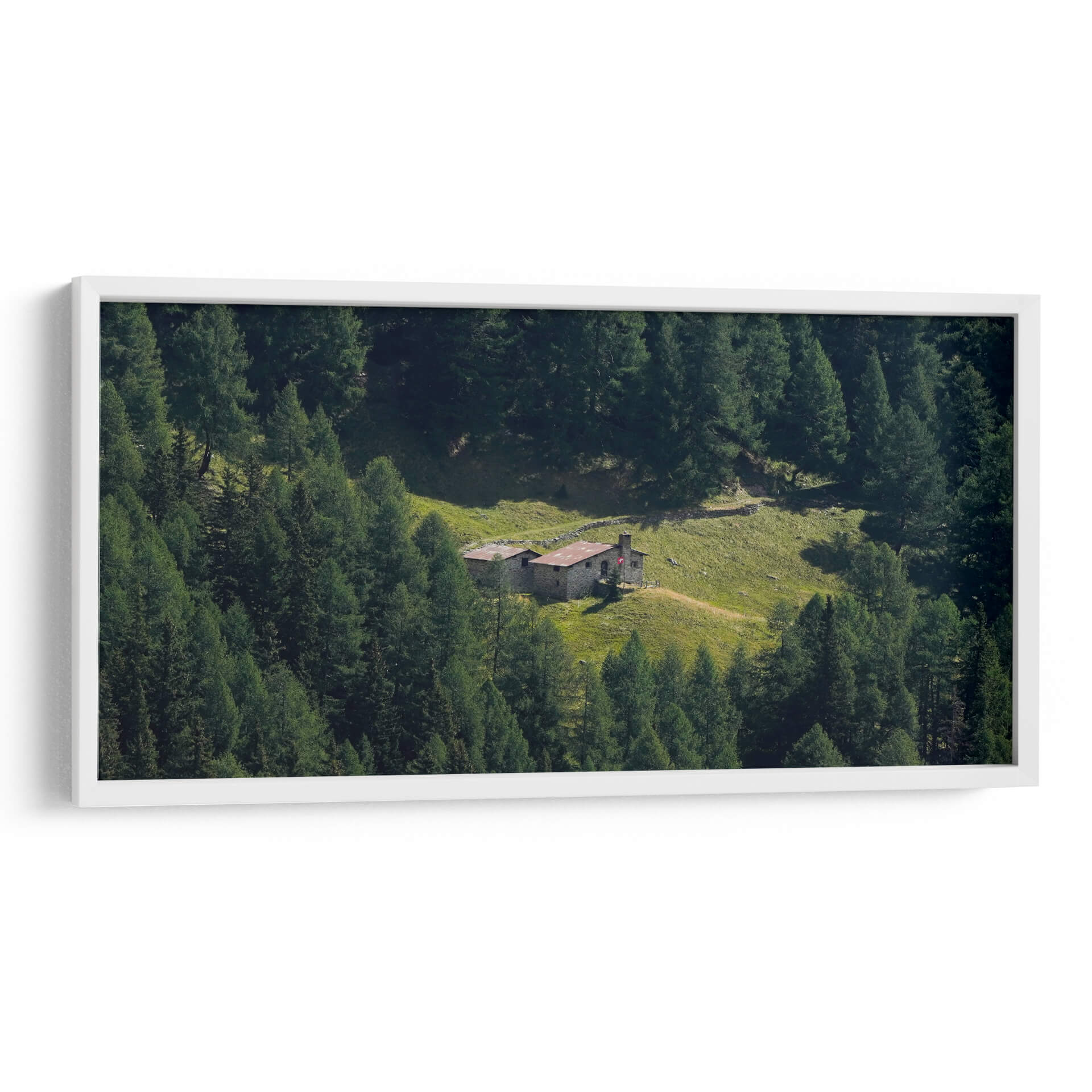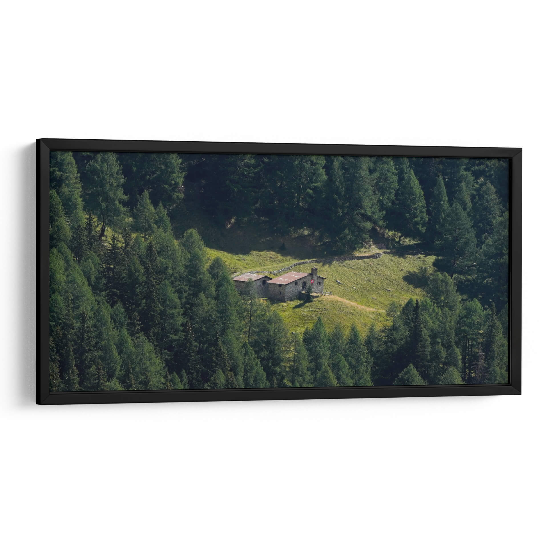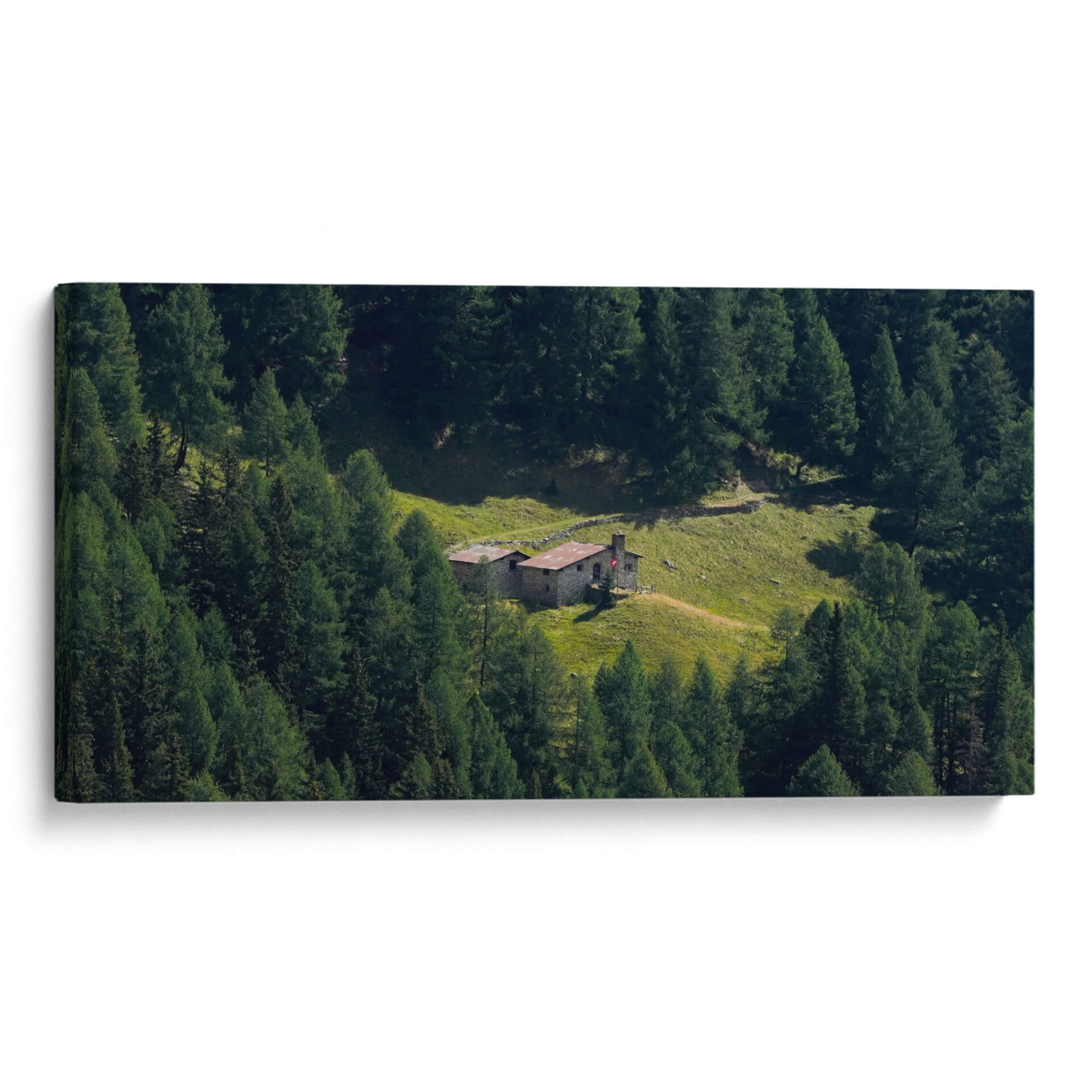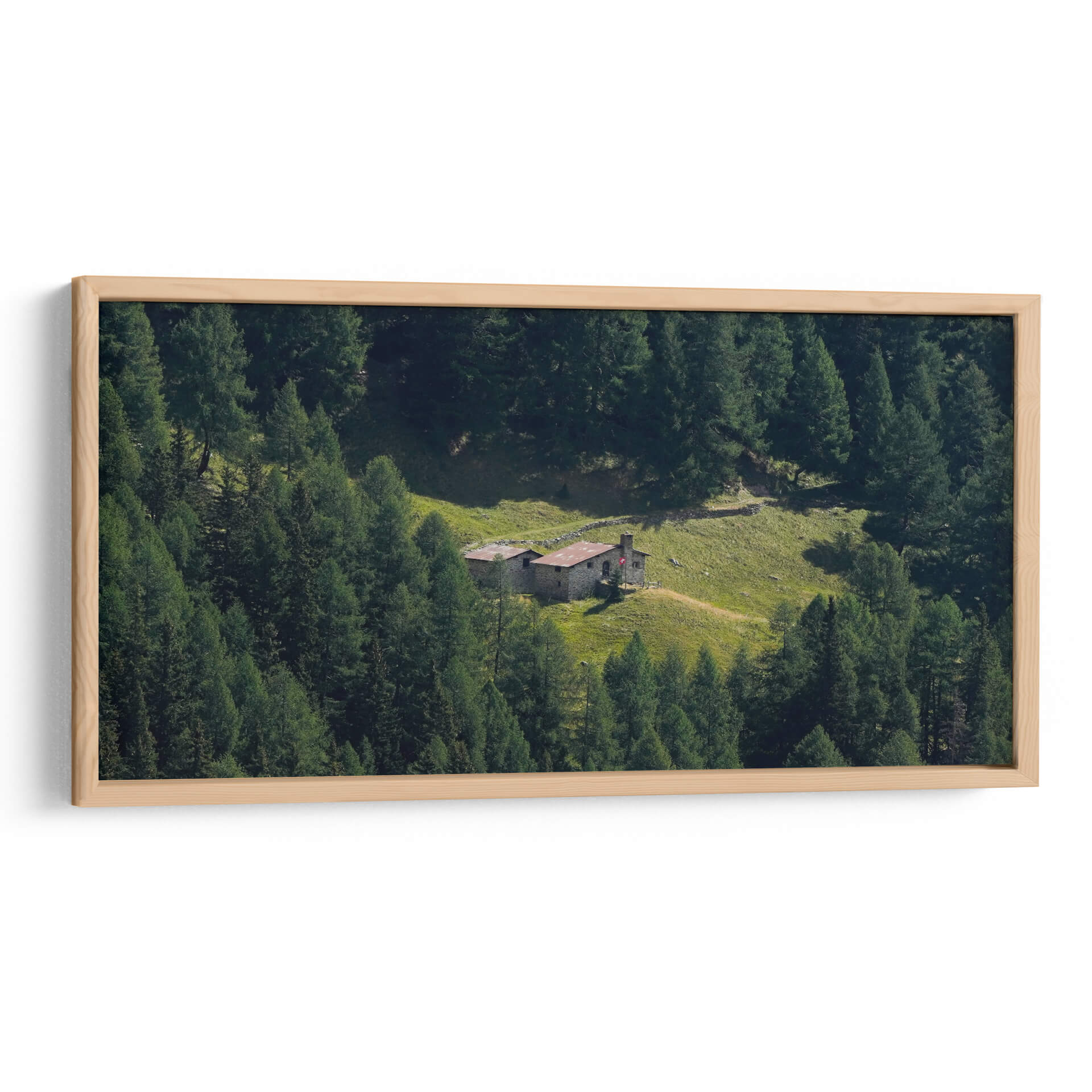Transporta tu hogar a la serenidad de las montañas con "Rincón en los Alpes Suizos", una obra de arte que captura la esencia de la naturaleza en su estado más puro. Este cuadro decorativo presenta un idílico refugio de piedra enclavado en una ladera verde, rodeado por la majestuosidad de un bosque de coníferas. La luz del sol baña sutilmente la escena, creando un juego de luces y sombras que añade profundidad y realismo a la composición. La paleta de colores, dominada por verdes intensos de los árboles y los tonos terrosos de las construcciones, evoca una sensación de paz y conexión con la tierra. El estilo fotográfico realista de la obra, con un enfoque nítido en los detalles arquitectónicos y el follaje, permite al espectador casi sentir la brisa fresca de la montaña. Es una pieza ideal para crear un oasis de tranquilidad en tu salón, dormitorio o incluso en un espacio de trabajo que necesite un respiro de la rutina urbana. Este cuadro decorativo es más que una imagen; es una ventana a un paraje natural que inspira calma, contemplación y un profundo aprecio por la belleza escénica.