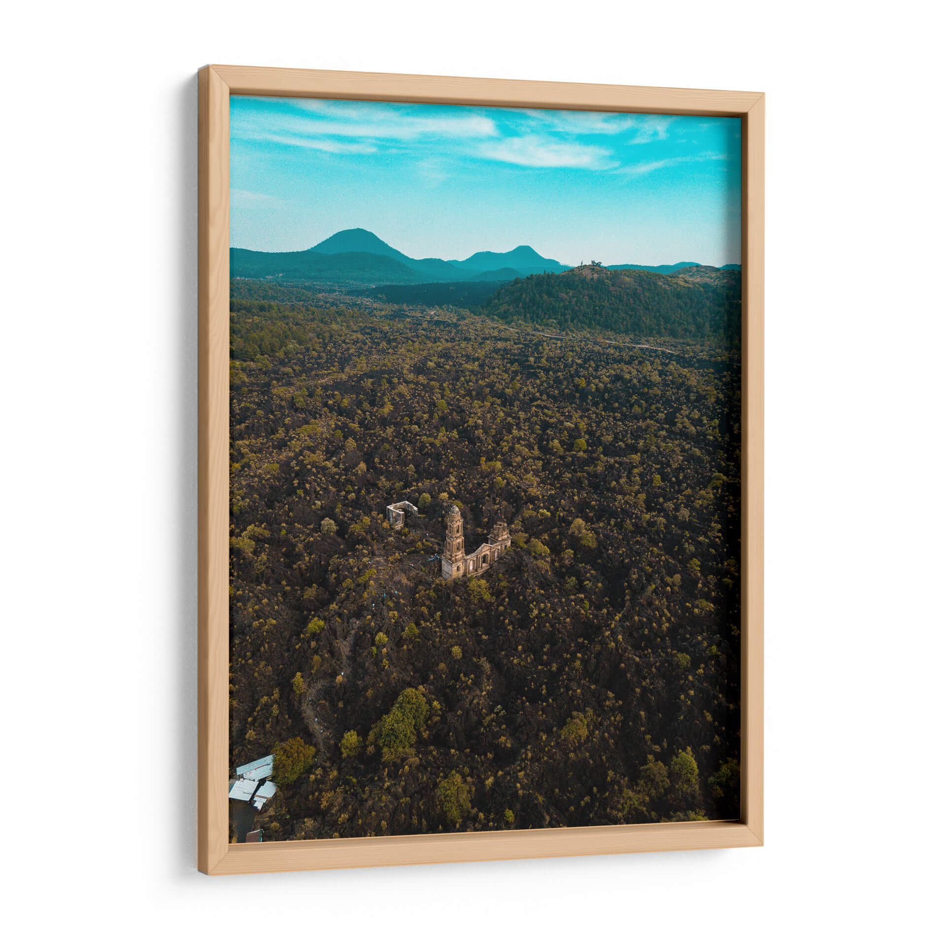 Sumérgete en la majestuosidad de "Ruinas de Volcán Paricutín - Michoacán", una obra de arte que captura la sobrecogedora belleza de un paisaje volcánico enigmático. Desde una perspectiva aérea, este cuadro decorativo nos transporta a las faldas del icónico Paricutín, donde los vestigios de una antigua estructura se alzan con solemnidad entre la densa vegetación y el terreno rocoso. La paleta de colores, dominada por tonos tierra, verdes profundos y un cielo azul vibrante, crea una atmósfera de misterio y contemplación, evocando la fuerza de la naturaleza y el paso del tiempo. El contraste entre la robustez del volcán y la delicadeza de la vegetación que lo reconquista, junto con la arquitectura casi fantasmal, genera una narrativa visual potente. Ideal para salones, estudios u oficinas que buscan una pieza con carácter e historia, este cuadro decorativo invita a la reflexión y añade un toque de drama sereno a cualquier espacio. Es una invitación a explorar la resiliencia y la transformación, un diálogo visual entre lo humano y lo geológico que fascinará a los amantes de la fotografía de paisajes y el arte con narrativa.