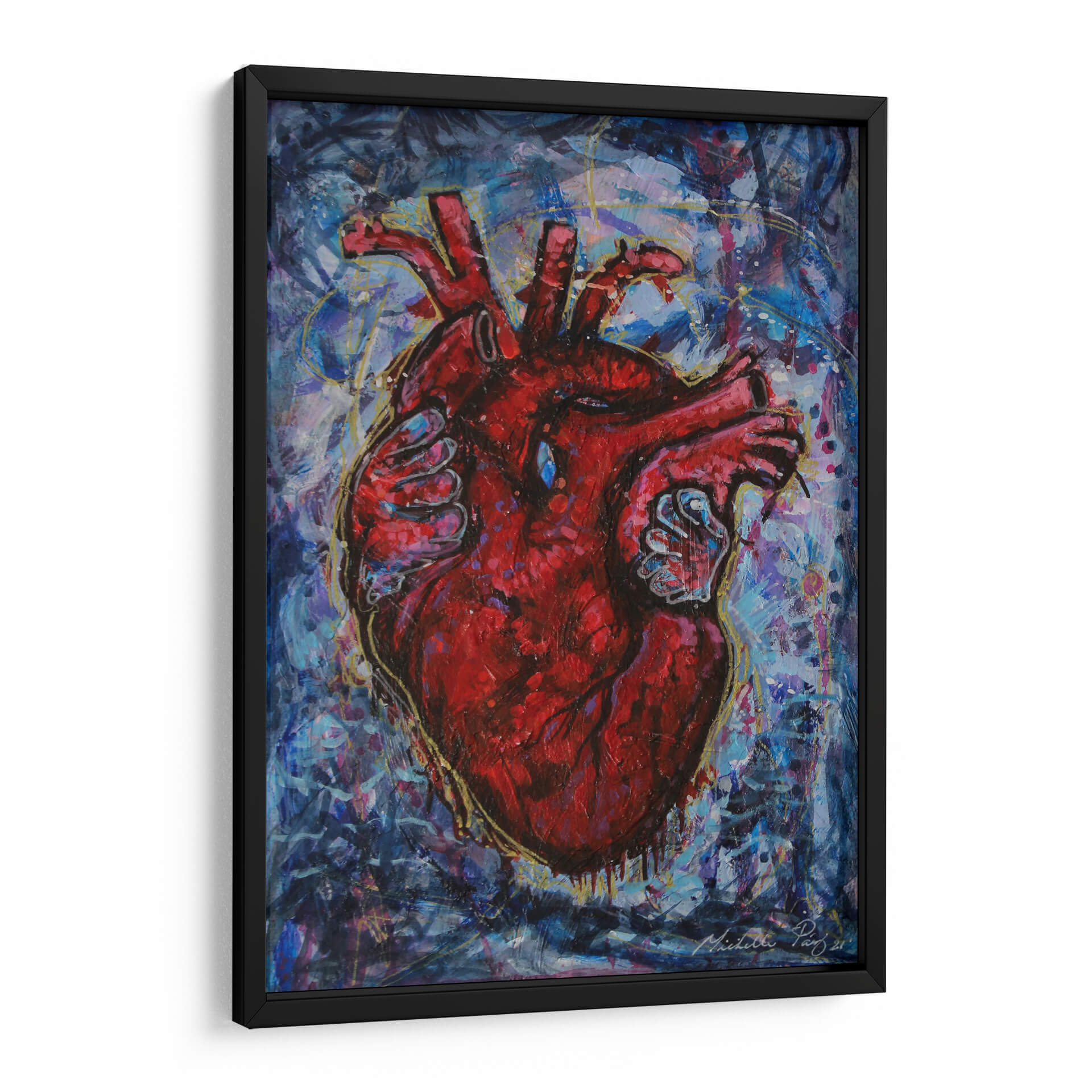 Sumérgete en la intensidad emocional de "Serie Corazonas #8", una obra de arte contemporáneo que captura la esencia vital del corazón humano con una audacia expresiva. Michelle Páez nos presenta una representación vibrante y texturizada de este órgano vital, envuelto en un torbellino de azules profundos y salpicaduras de color que evocan tanto la complejidad de las emociones como la energía que nos impulsa. La paleta de rojos intensos domina el centro, transmitiendo pasión y vitalidad, mientras que el fondo abstracto en tonos azules y morados añade una capa de misterio y profundidad. Este cuadro decorativo, con su estilo abstracto y detallado, es perfecto para aquellos que buscan una pieza que hable de la vida, el amor y la conexión. Ideal para dar un toque audaz y lleno de sentimiento a tu sala de estar, estudio u oficina, "Serie Corazonas #8" se convertirá en un punto focal que invita a la reflexión y la conversación. Su impacto visual y su carga simbólica lo convierten en una adición poderosa a cualquier espacio que busque arte con alma.