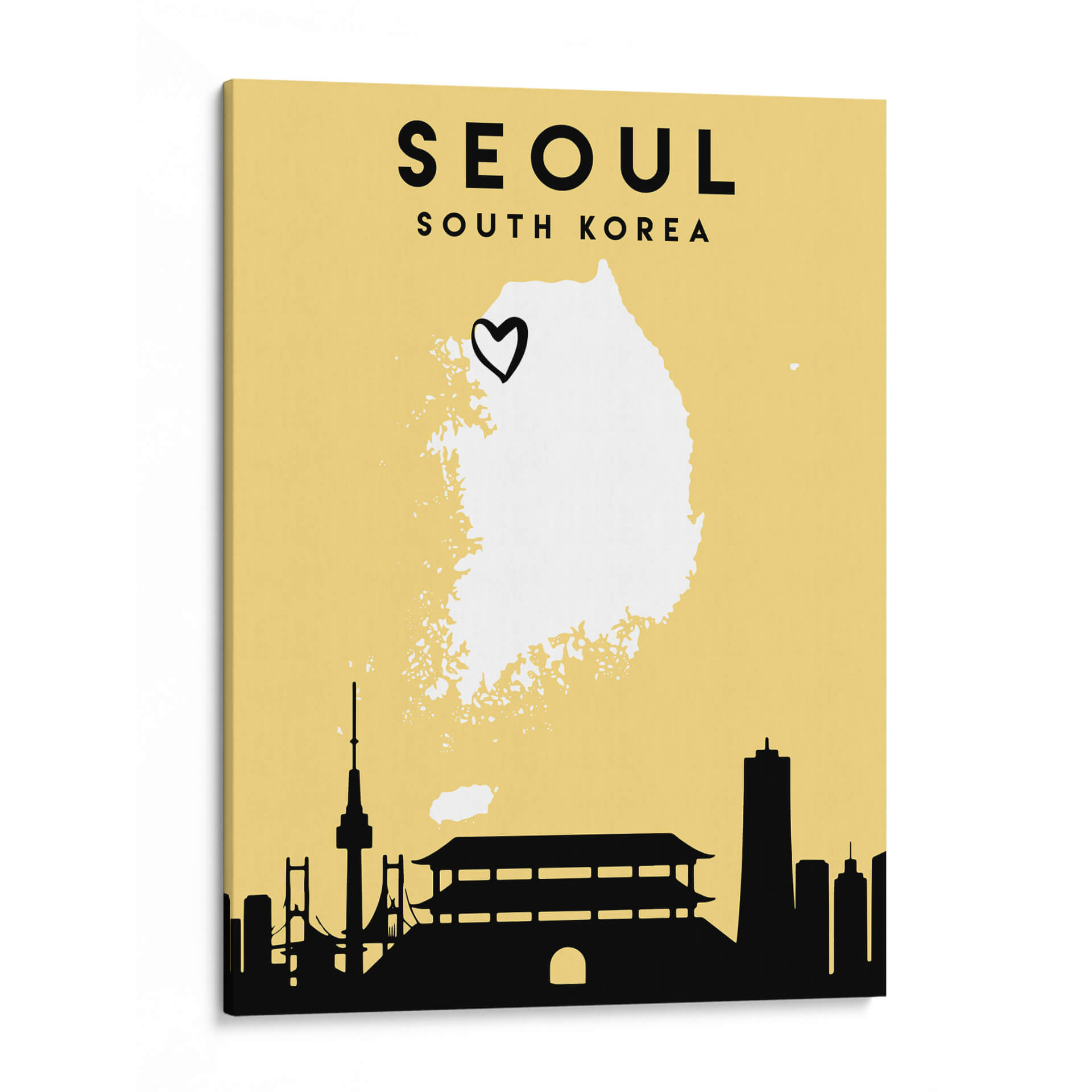 Celebra tu amor por la vibrante capital de Corea del Sur con este cautivador cuadro decorativo que representa a Seúl. La obra presenta un diseño estilizado y minimalista, centrado en la silueta icónica de la ciudad sobre un fondo de color amarillo cálido y acogedor. El mapa de Corea, con un corazón marcado en Seúl, añade un toque personal y romántico, evocando la conexión especial que muchos sienten con esta metrópoli. La paleta de colores, dominada por el amarillo, el blanco y el negro, crea un contraste moderno y elegante. La parte inferior de la obra muestra un horizonte urbano reconocible, incluyendo la Torre N de Seúl y la Puerta de Sungnyemun, fusionando historia y modernidad. Este cuadro decorativo es perfecto para añadir un toque de sofisticación urbana a tu sala de estar, oficina o dormitorio. Ideal para quienes aprecian el diseño gráfico, la arquitectura y la cultura coreana, este arte de pared es una declaración de estilo y un recordatorio de los lugares que amamos. Su estética contemporánea lo convierte en una pieza versátil que complementará diversos estilos de decoración, desde el moderno hasta el escandinavo, aportando carácter y un toque de personalidad a cualquier espacio.