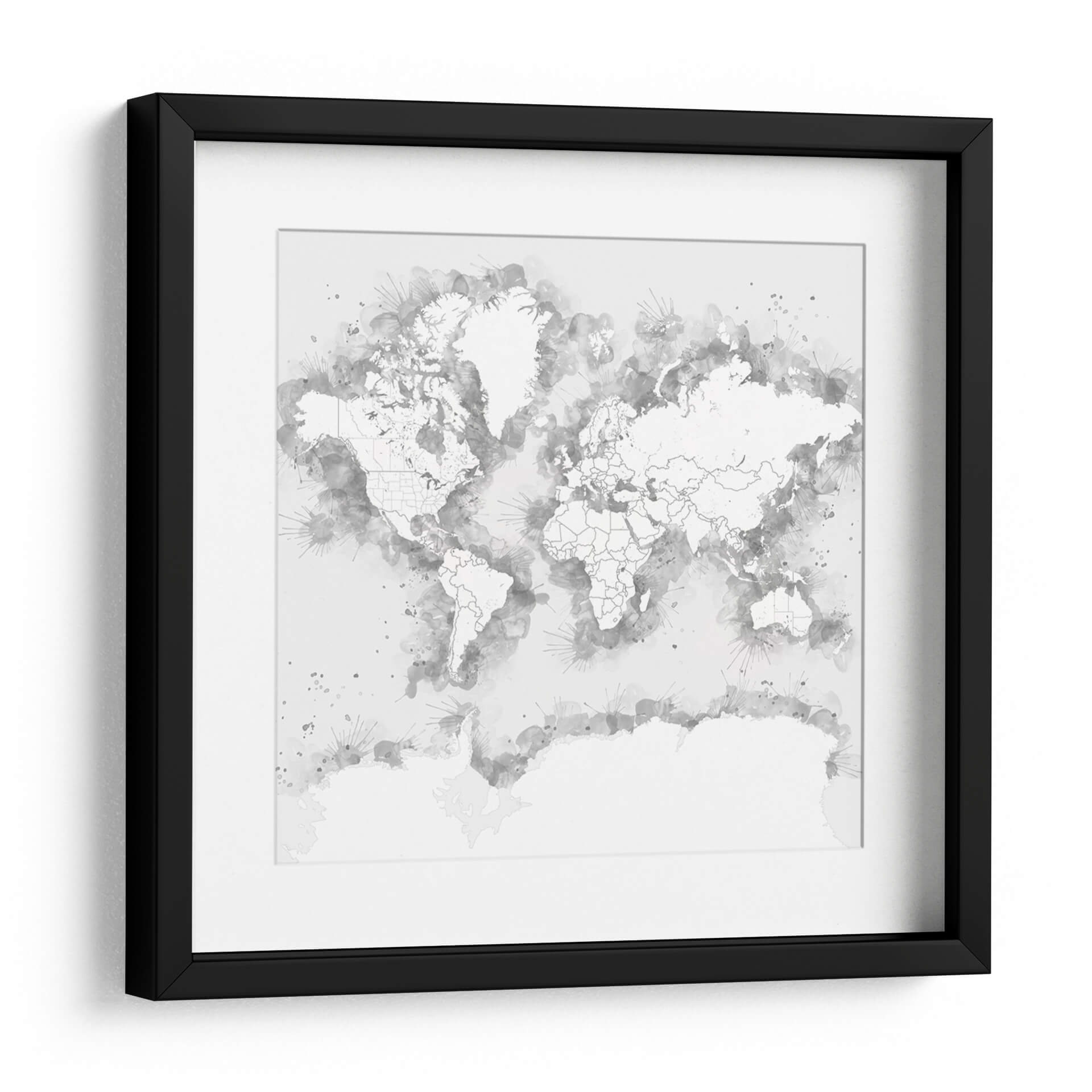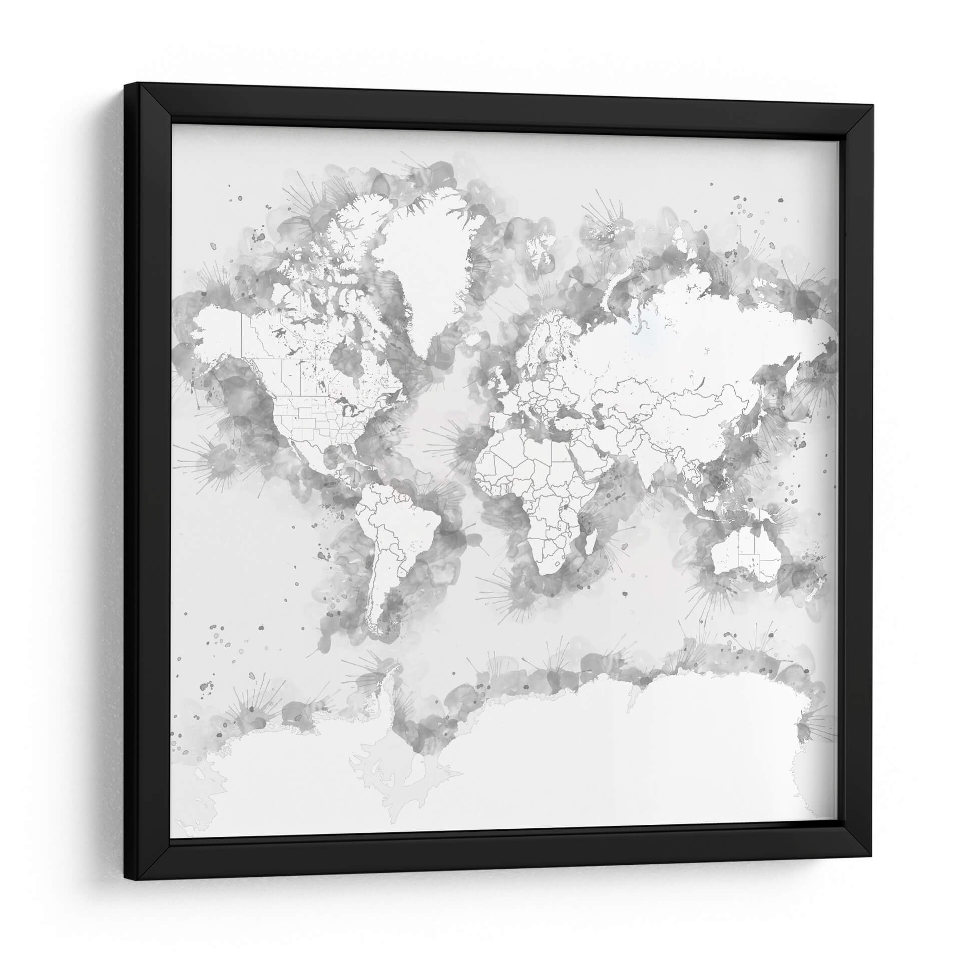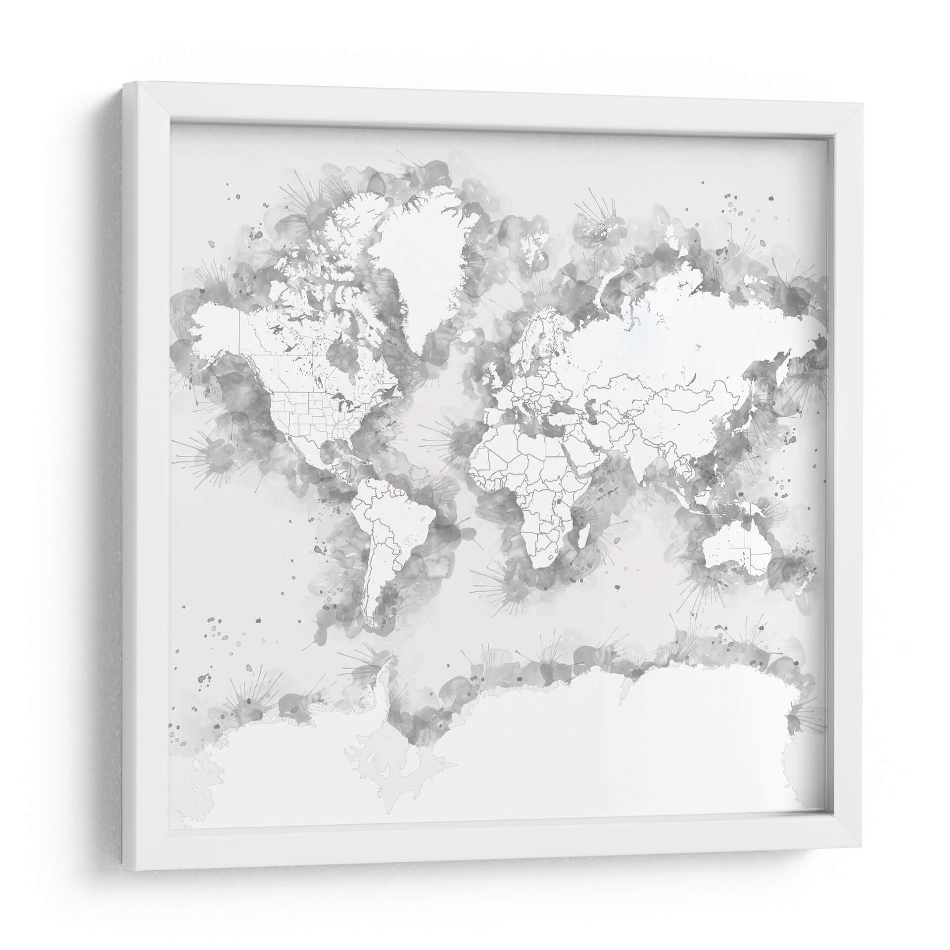Embárcate en un viaje visual con nuestro cautivador cuadro decorativo del mapa mundial, "Silueta del mapa mundial Louiss", de Rosana Laiz Blursbyai. Esta obra de arte contemporánea presenta una interpretación artística del globo terráqueo en una paleta de grises y blancos, evocando una sensación de calma y sofisticación. La técnica de acuarela digital, con sus delicados salpicaduras y bordes difuminados, añade una dimensión etérea y moderna a la representación cartográfica. Las líneas finas de los contornos de los países se contrastan maravillosamente con las manchas de tinta, creando un equilibrio dinámico. Ideal para cualquier espacio que busque un toque de inspiración global y un estilo minimalista, este cuadro es perfecto para salas de estar, oficinas o estudios. Su diseño atemporal lo convierte en un punto focal versátil, capaz de complementar tanto decoraciones modernas como clásicas. Transforma tu hogar u oficina con esta pieza única que celebra la belleza del mundo y la expresión artística contemporánea, invitando a la reflexión y al descubrimiento. Un regalo perfecto para los amantes de la geografía y el arte.