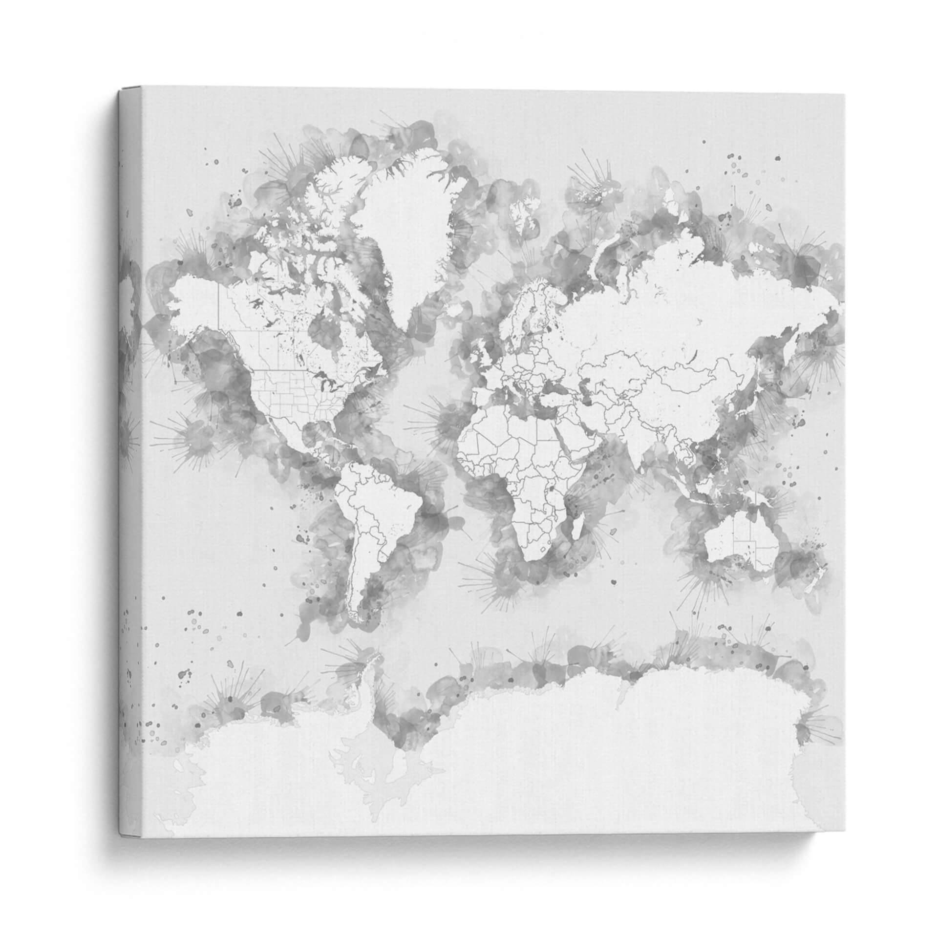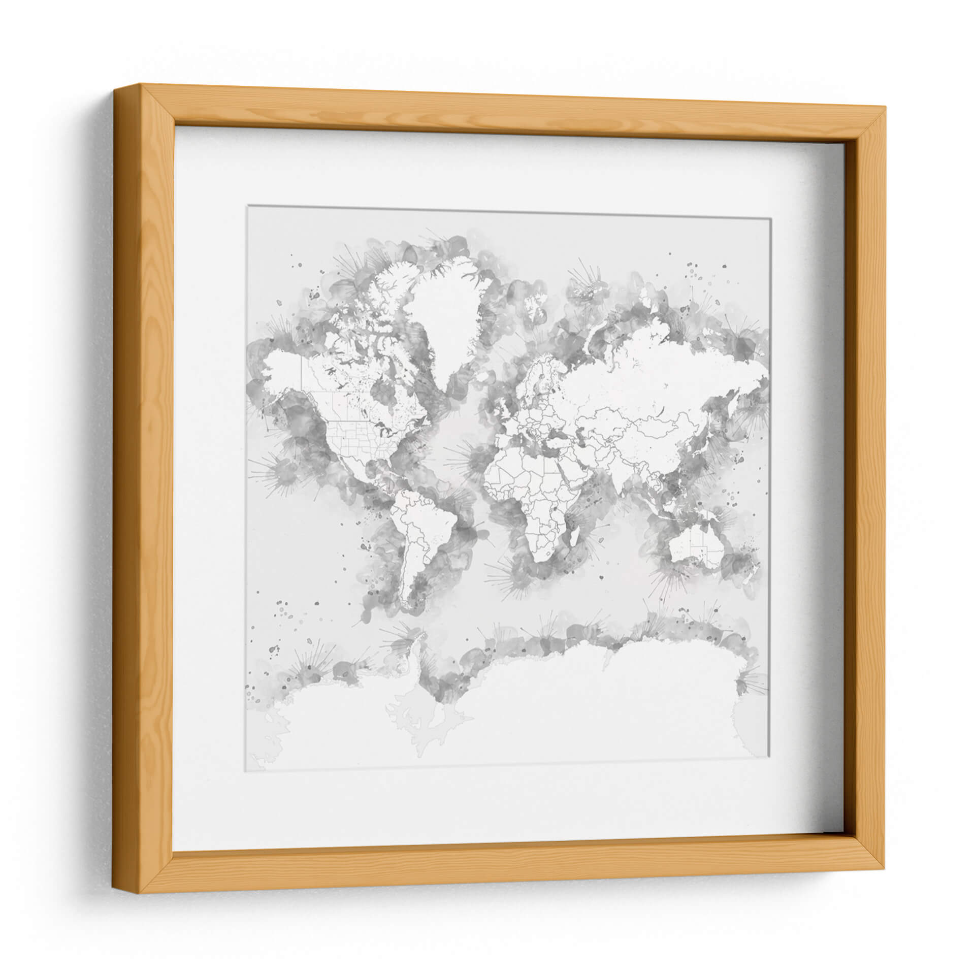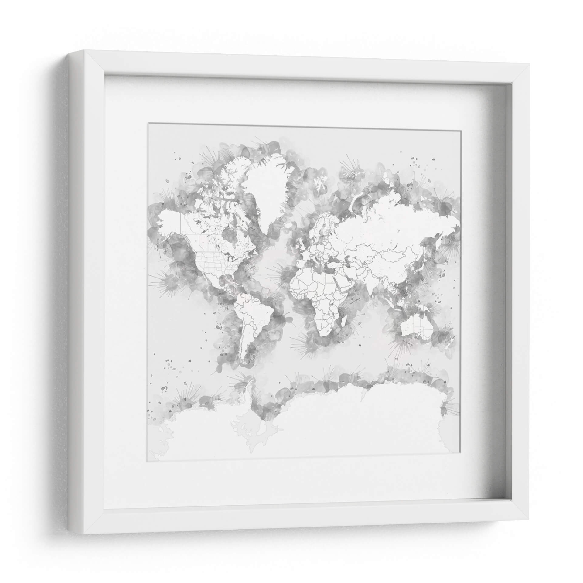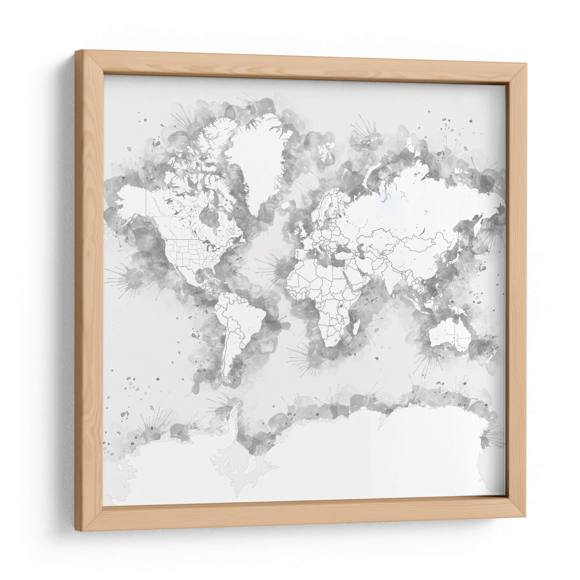 Embárcate en un viaje visual con nuestro cautivador cuadro decorativo del mapa mundial, "Silueta del mapa mundial Louiss", de Rosana Laiz Blursbyai. Esta obra de arte contemporánea presenta una interpretación artística del globo terráqueo en una paleta de grises y blancos, evocando una sensación de calma y sofisticación. La técnica de acuarela digital, con sus delicados salpicaduras y bordes difuminados, añade una dimensión etérea y moderna a la representación cartográfica. Las líneas finas de los contornos de los países se contrastan maravillosamente con las manchas de tinta, creando un equilibrio dinámico. Ideal para cualquier espacio que busque un toque de inspiración global y un estilo minimalista, este cuadro es perfecto para salas de estar, oficinas o estudios. Su diseño atemporal lo convierte en un punto focal versátil, capaz de complementar tanto decoraciones modernas como clásicas. Transforma tu hogar u oficina con esta pieza única que celebra la belleza del mundo y la expresión artística contemporánea, invitando a la reflexión y al descubrimiento. Un regalo perfecto para los amantes de la geografía y el arte.