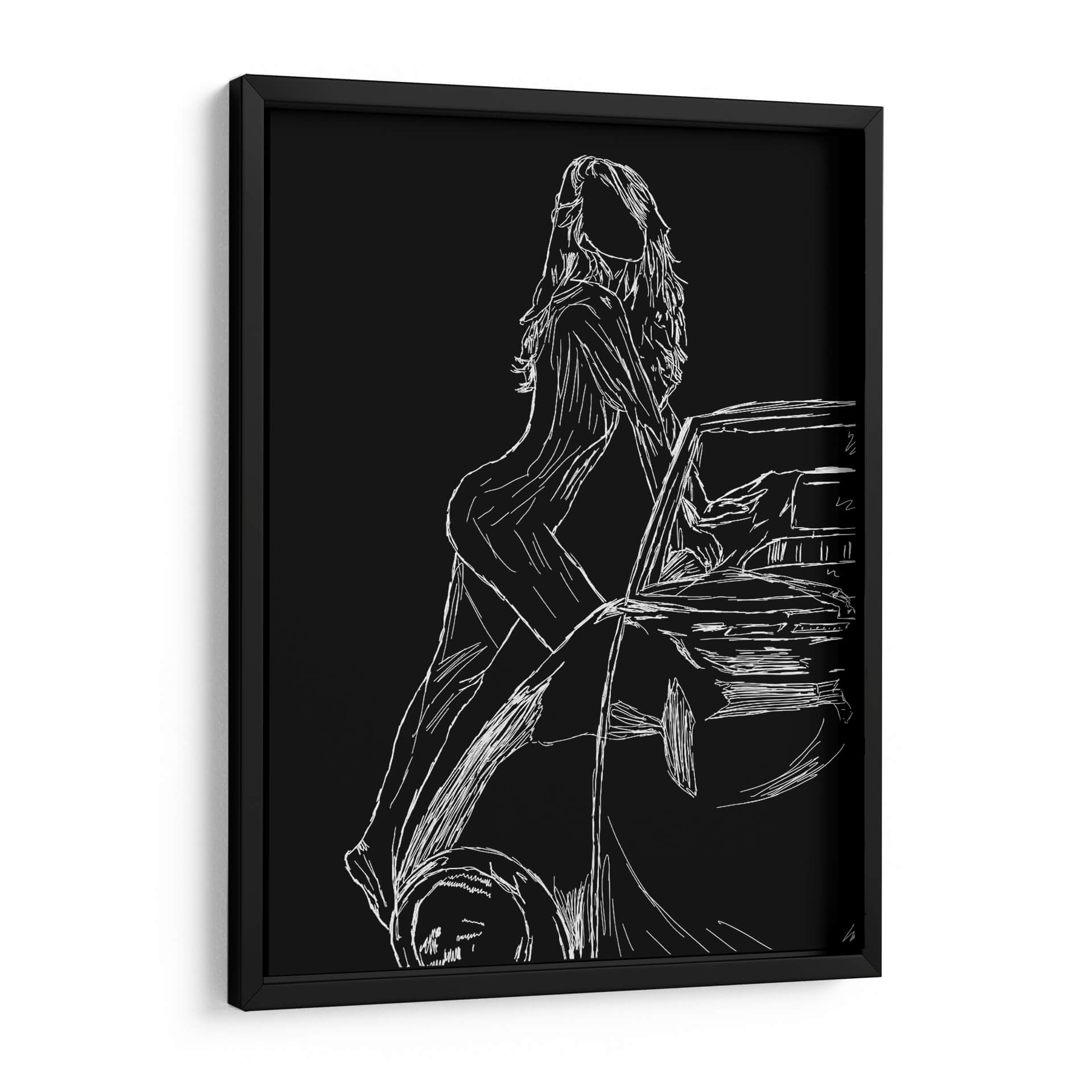 Sumérgete en la cautivadora elegancia de "Silueta Desnudo Automovil", una obra de arte contemporáneo que fusiona la figura humana con la estética automotriz de una manera audaz y minimalista. Esta pieza, caracterizada por su trazo de línea blanca sobre un profundo fondo negro, evoca una sensación de misterio y sofisticación. La figura femenina se entrelaza de forma sensual con las líneas fluidas de un automóvil clásico, creando una composición dinámica que invita a la interpretación. Los contrastes marcados y la simplicidad del estilo sugieren un ambiente moderno y chic, ideal para espacios que buscan un toque de vanguardia y personalidad. Es la elección perfecta para añadir un punto focal intrigante a tu sala de estar, estudio o incluso a un espacio comercial que desee transmitir audacia y un estilo inconfundible. "Silueta Desnudo Automovil" no es solo una decoración, es una declaración de estilo y una pieza que generará conversación. Su diseño atemporal la convierte en una adición valiosa a cualquier colección de arte decorativo.